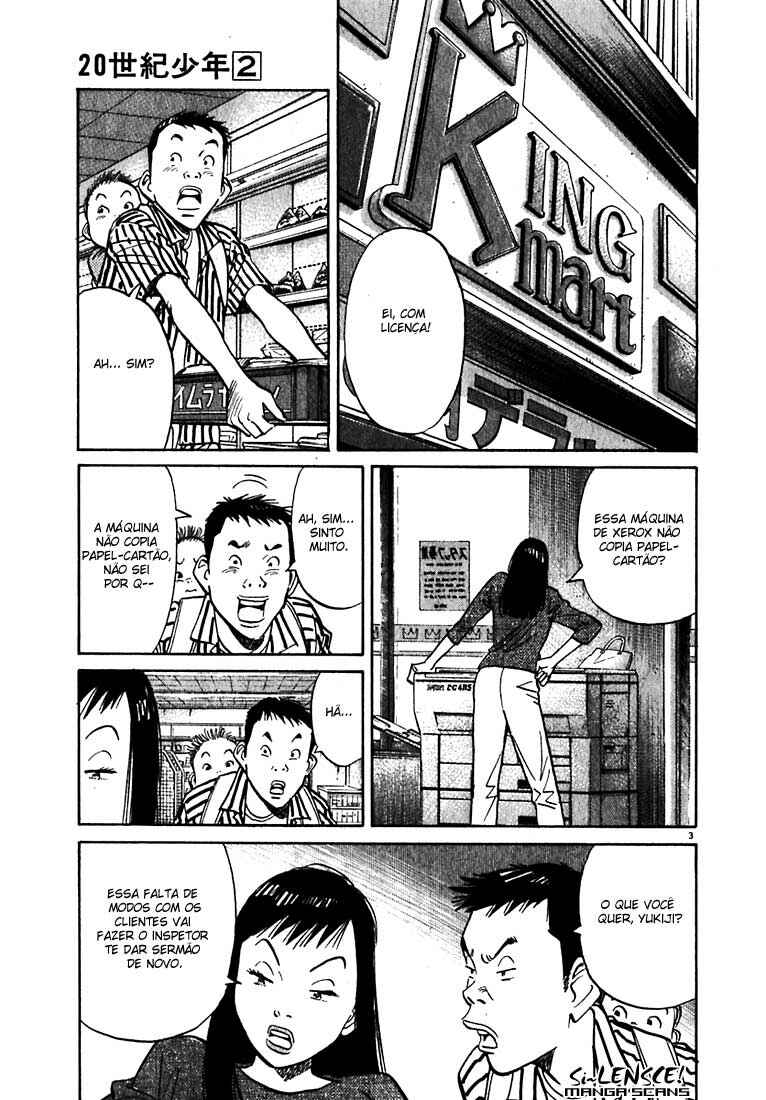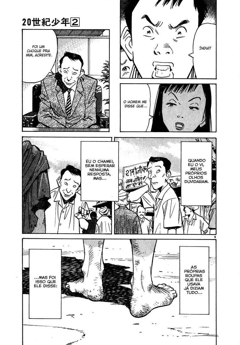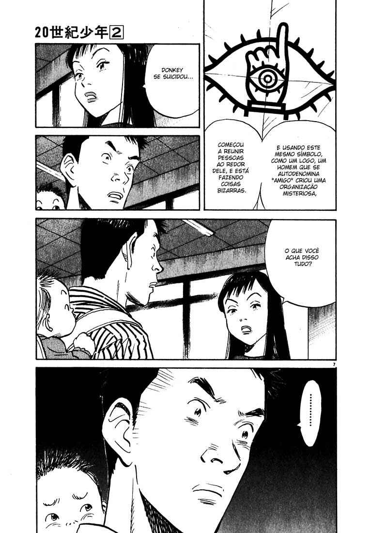 Capítulo 1 - AmigoCapítulo 2 - KaraokêCapítulo 3 - O Garoto Que Comprou um ViolãoCapítulo 4 - Toalha de MelecaCapítulo 5 - Noite no Laboratório de CiênciaCapítulo 6 - Bandeira na LuaCapítulo 7 - SoftballCapítulo 8 - Cave um BuracoCapítulo 9 - MensagemCapítulo 10 - YukijiCapítulo 11 - AmizadeCapítulo 12 - OtchoCapítulo 13 - Chou-sanCapítulo 14 - Yama-sanCapítulo 15 - Momento da Extinção da HumanidadeCapítulo 16 - DeusCapítulo 17 - A Escrivaninha da IrmãCapítulo 18 - O Amor da IrmãCapítulo 19 - O Homem Por Trás de TudoCapítulo 20 - ProfetaCapítulo 21 - Abra Seus OlhosCapítulo 22 - Herói de GuitarraCapítulo 23 - DeterminaçãoCapítulo 24 - EspetáculoCapítulo 25 - IrmãoCapítulo 26 - Colega de TurmaCapítulo 27 - Mais Um... Capítulo 28 - SadakiyoCapítulo 29 - Explosão no AeroportoCapítulo 30 - Criança DestinadaCapítulo 31 - Desde Então... Capítulo 32 - Homem em BangkokCapítulo 33 - Partido da AmizadeCapítulo 34 - FugaCapítulo 35 - ConexõesCapítulo 36 - Paz e AmorCapítulo 37 - Menino do Arco-írisCapítulo 38 - LuzCapítulo 39 - ExplosãoCapítulo 40 - Base secretaCapítulo 41 - Reunião do robõCapítulo 42 - Imperador do mundo inferiorCapítulo 43 - Nas trevas Capítulo 44 - Convite Capítulo 45 - Não está sóCapítulo 46 - Tio KenjiCapítulo 47 - SinalCapítulo 48 - 31 de dezembroCapítulo 49 - O último capítuloCapítulo 50 - ReuniãoCapítulo 51 - MonumentoCapítulo 52 - Detetive ChounoCapítulo 53 - BorboletaCapítulo 54 - Duas aspirações Capítulo 55 - TestemunhaCapítulo 56 - O Verdadeiro AssasinoCapítulo 57 - Vaga-LumeCapítulo 58 - MonstroCapítulo 59 - TúnelCapítulo 60 - Bancando a Caça... Capítulo 61 - Poderoso AliadoCapítulo 62 - Amuleto de Boa SorteCapítulo 63 - A Última EsperançaCapítulo 64 - Fugindo do InfernoCapítulo 65 - Um Teste de CoragemCapítulo 66 - FugaCapítulo 67 - ArCapítulo 68 - ChegadaCapítulo 69 - Feira de SonhosCapítulo 70 - KoizumiCapítulo 71 - Autógrafo de DeusCapítulo 72 - VerdadeCapítulo 73 - Sala de ControleCapítulo 74 - EspetáculoCapítulo 75 - FukubeiCapítulo 76 - EntradaCapítulo 77 - DecisãoCapítulo 78 - RobôCapítulo 79 - A Música de KenjiCapítulo 80 - Sua CaronaCapítulo 81 - AmigolândiaCapítulo 82 - FugaCapítulo 83 - Um PedidoCapítulo 84 - NotasCapítulo 85 - O PlanoCapítulo 86 - O DecliveCapítulo 87 - Vozes ReverberantesCapítulo 88 - Não veja!Capítulo 89 - PesadeloCapítulo 90 - Verdadeira batalhaCapítulo 91 - Coelho NabokovCapítulo 92 - P.E.S.Capítulo 93 - ConfissõesCapítulo 94 - O novo livro de profecias Capítulo 95 - Ao púlpitoCapítulo 96 - SalvadorCapítulo 97 - O assassinatoCapítulo 98 - A bala da pistoleiroCapítulo 99 - Cessar-fogoCapítulo 100 - CruzamentoCapítulo 101 - VigilânciaCapítulo 102 - Novo ProfessorCapítulo 103 - Respostas AterrorizadorasCapítulo 104 - ColecionadorCapítulo 105 - SolilóquioCapítulo 106 - Quarto de Um AmigoCapítulo 107 - Menino sem RostoCapítulo 108 - Menino com RostoCapítulo 109 - TrovãoCapítulo 110 - Um Abismo de DesesperoCapítulo 111 - Lista de IngredientesCapítulo 112 - A Mentira de 1970Capítulo 113 - Velha AmizadeCapítulo 114 - Devoção CompletaCapítulo 115 - AliensCapítulo 116 - A Decisão de SadakiyoCapítulo 117 - RuínasCapítulo 118 - GodzillaCapítulo 119 - Palavras de MãeCapítulo 120 - YamaneCapítulo 121 - Memórias do Laboratório de CiênciasCapítulo 122 - Diferentes Anos NovosCapítulo 123 - PeregrinaçãoCapítulo 124 - AutodestruiçãoCapítulo 125 - Conexão SecretaCapítulo 126 - BibliotecaCapítulo 127 - Laboratório de CiênciasCapítulo 128 - Sob a Lâmpada a ÁlcoolCapítulo 129 - EleCapítulo 130 - Um Tiro (1) Capítulo 131 - Um Tiro (2)Capítulo 132 - O Verdadeiro TiroCapítulo 133 - A Face de um AmigoCapítulo 134 - Um homem EsquecidoCapítulo 135 - A morte do AmigoCapítulo 136 - Encontro da Távola RedondaCapítulo 137 - Tempo de Reuniões Capítulo 138 - Confissões em 2003Capítulo 139 - Um homem de Verdade Capítulo 140 - O começo do FimCapítulo 141 - O império Sapo Contra-Ataca (1)Capítulo 142 - O Império Sapo Contra-Ataca (2)Capítulo 143 - Uma cidade Calma da Alemanha Capítulo 144 - Um terror que Espreita Sorrateiramente Capítulo 145 - Novas OrdensCapítulo 146 - MemorialCapítulo 147 - A Verdade Por Trás de 1971Capítulo 148 - Imperador do MalCapítulo 149 - IntrusoCapítulo 150 - O Dia em Que Ele Viu Algo DiferenteCapítulo 151 - O Entortador de ColheresCapítulo 152 - Laboratório de Ciências, 1971Capítulo 153 - Encontro Com o PassadoCapítulo 154 - IdentidadeCapítulo 155 - Memórias PerdidasCapítulo 156 - Minhas Férias de VerãoCapítulo 157 - Juventude e SonhosCapítulo 158 - Profecias MedíocresCapítulo 159 - Um Japonês Medíocre Capítulo 160 - O homem Tatuado Capítulo 161 - A verdade Retorcida Capítulo 162 - Coragem Em 2001Capítulo 163 - Adeus Em 2001Capítulo 164 - Que Mundo Maravilhoso Capítulo 165 - O Maior Espetáculo Da Terra Capítulo 166 - A Ambulante Da Máscara de Gás Capítulo 167 - Hora Crítica Capítulo 168 - Vida Longa À EXPOCapítulo 169 - Aquém Do Arco-Íris Capítulo 170 - Além Do Arco-Íris Capítulo 171 - O Começo do Arco-írisCapítulo 172 - Um Verdadeiro AmigoCapítulo 173 - No EspelhoCapítulo 174 - O Verdadeiro DecliveCapítulo 175 - O Verdadeiro FantasmaCapítulo 176 - Super-HomemCapítulo 177 - Depois do AmigoCapítulo 178 - O Salto Com VaraCapítulo 179 - História ModernaCapítulo 180 - A Imaginação das CriançasCapítulo 181 - Caixa de BrinquedosCapítulo 182 - Força de Defesa da TerraCapítulo 183 - Força, Katsuo! Capítulo 184 - Limite do SuplícioCapítulo 185 - A Rainha do GeloCapítulo 186 - O Despertar do SuplícioCapítulo 187 - Em JornadaCapítulo 188 - O Fardo da JornadaCapítulo 189 - Policial do Fim do UniversoCapítulo 190 - Canção do Fim do UniversoCapítulo 191 - Dever de Casa de FériasCapítulo 192 - Encontro no Cruzamento: Cruzado de DireitaCapítulo 193 - Guitarra SuddararaCapít
