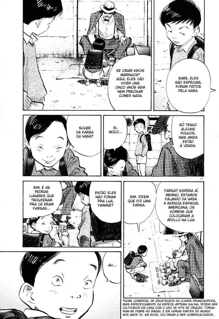 Capítulo 1 - AmigoCapítulo 2 - KaraokêCapítulo 3 - O Garoto Que Comprou um ViolãoCapítulo 4 - Toalha de MelecaCapítulo 5 - Noite no Laboratório de CiênciaCapítulo 6 - Bandeira na LuaCapítulo 7 - SoftballCapítulo 8 - Cave um BuracoCapítulo 9 - MensagemCapítulo 10 - YukijiCapítulo 11 - AmizadeCapítulo 12 - OtchoCapítulo 13 - Chou-sanCapítulo 14 - Yama-sanCapítulo 15 - Momento da Extinção da HumanidadeCapítulo 16 - DeusCapítulo 17 - A Escrivaninha da IrmãCapítulo 18 - O Amor da IrmãCapítulo 19 - O Homem Por Trás de TudoCapítulo 20 - ProfetaCapítulo 21 - Abra Seus OlhosCapítulo 22 - Herói de GuitarraCapítulo 23 - DeterminaçãoCapítulo 24 - EspetáculoCapítulo 25 - IrmãoCapítulo 26 - Colega de TurmaCapítulo 27 - Mais Um... Capítulo 28 - SadakiyoCapítulo 29 - Explosão no AeroportoCapítulo 30 - Criança DestinadaCapítulo 31 - Desde Então... Capítulo 32 - Homem em BangkokCapítulo 33 - Partido da AmizadeCapítulo 34 - FugaCapítulo 35 - ConexõesCapítulo 36 - Paz e AmorCapítulo 37 - Menino do Arco-írisCapítulo 38 - LuzCapítulo 39 - ExplosãoCapítulo 40 - Base secretaCapítulo 41 - Reunião do robõCapítulo 42 - Imperador do mundo inferiorCapítulo 43 - Nas trevas Capítulo 44 - Convite Capítulo 45 - Não está sóCapítulo 46 - Tio KenjiCapítulo 47 - SinalCapítulo 48 - 31 de dezembroCapítulo 49 - O último capítuloCapítulo 50 - ReuniãoCapítulo 51 - MonumentoCapítulo 52 - Detetive ChounoCapítulo 53 - BorboletaCapítulo 54 - Duas aspirações Capítulo 55 - TestemunhaCapítulo 56 - O Verdadeiro AssasinoCapítulo 57 - Vaga-LumeCapítulo 58 - MonstroCapítulo 59 - TúnelCapítulo 60 - Bancando a Caça... Capítulo 61 - Poderoso AliadoCapítulo 62 - Amuleto de Boa SorteCapítulo 63 - A Última EsperançaCapítulo 64 - Fugindo do InfernoCapítulo 65 - Um Teste de CoragemCapítulo 66 - FugaCapítulo 67 - ArCapítulo 68 - ChegadaCapítulo 69 - Feira de SonhosCapítulo 70 - KoizumiCapítulo 71 - Autógrafo de DeusCapítulo 72 - VerdadeCapítulo 73 - Sala de ControleCapítulo 74 - EspetáculoCapítulo 75 - FukubeiCapítulo 76 - EntradaCapítulo 77 - DecisãoCapítulo 78 - RobôCapítulo 79 - A Música de KenjiCapítulo 80 - Sua CaronaCapítulo 81 - AmigolândiaCapítulo 82 - FugaCapítulo 83 - Um PedidoCapítulo 84 - NotasCapítulo 85 - O PlanoCapítulo 86 - O DecliveCapítulo 87 - Vozes ReverberantesCapítulo 88 - Não veja!Capítulo 89 - PesadeloCapítulo 90 - Verdadeira batalhaCapítulo 91 - Coelho NabokovCapítulo 92 - P.E.S.Capítulo 93 - ConfissõesCapítulo 94 - O novo livro de profecias Capítulo 95 - Ao púlpitoCapítulo 96 - SalvadorCapítulo 97 - O assassinatoCapítulo 98 - A bala da pistoleiroCapítulo 99 - Cessar-fogoCapítulo 100 - CruzamentoCapítulo 101 - VigilânciaCapítulo 102 - Novo ProfessorCapítulo 103 - Respostas AterrorizadorasCapítulo 104 - ColecionadorCapítulo 105 - SolilóquioCapítulo 106 - Quarto de Um AmigoCapítulo 107 - Menino sem RostoCapítulo 108 - Menino com RostoCapítulo 109 - TrovãoCapítulo 110 - Um Abismo de DesesperoCapítulo 111 - Lista de IngredientesCapítulo 112 - A Mentira de 1970Capítulo 113 - Velha AmizadeCapítulo 114 - Devoção CompletaCapítulo 115 - AliensCapítulo 116 - A Decisão de SadakiyoCapítulo 117 - RuínasCapítulo 118 - GodzillaCapítulo 119 - Palavras de MãeCapítulo 120 - YamaneCapítulo 121 - Memórias do Laboratório de CiênciasCapítulo 122 - Diferentes Anos NovosCapítulo 123 - PeregrinaçãoCapítulo 124 - AutodestruiçãoCapítulo 125 - Conexão SecretaCapítulo 126 - BibliotecaCapítulo 127 - Laboratório de CiênciasCapítulo 128 - Sob a Lâmpada a ÁlcoolCapítulo 129 - EleCapítulo 130 - Um Tiro (1) Capítulo 131 - Um Tiro (2)Capítulo 132 - O Verdadeiro TiroCapítulo 133 - A Face de um AmigoCapítulo 134 - Um homem EsquecidoCapítulo 135 - A morte do AmigoCapítulo 136 - Encontro da Távola RedondaCapítulo 137 - Tempo de Reuniões Capítulo 138 - Confissões em 2003Capítulo 139 - Um homem de Verdade Capítulo 140 - O começo do FimCapítulo 141 - O império Sapo Contra-Ataca (1)Capítulo 142 - O Império Sapo Contra-Ataca (2)Capítulo 143 - Uma cidade Calma da Alemanha Capítulo 144 - Um terror que Espreita Sorrateiramente Capítulo 145 - Novas OrdensCapítulo 146 - MemorialCapítulo 147 - A Verdade Por Trás de 1971Capítulo 148 - Imperador do MalCapítulo 149 - IntrusoCapítulo 150 - O Dia em Que Ele Viu Algo DiferenteCapítulo 151 - O Entortador de ColheresCapítulo 152 - Laboratório de Ciências, 1971Capítulo 153 - Encontro Com o PassadoCapítulo 154 - IdentidadeCapítulo 155 - Memórias PerdidasCapítulo 156 - Minhas Férias de VerãoCapítulo 157 - Juventude e SonhosCapítulo 158 - Profecias MedíocresCapítulo 159 - Um Japonês Medíocre Capítulo 160 - O homem Tatuado Capítulo 161 - A verdade Retorcida Capítulo 162 - Coragem Em 2001Capítulo 163 - Adeus Em 2001Capítulo 164 - Que Mundo Maravilhoso Capítulo 165 - O Maior Espetáculo Da Terra Capítulo 166 - A Ambulante Da Máscara de Gás Capítulo 167 - Hora Crítica Capítulo 168 - Vida Longa À EXPOCapítulo 169 - Aquém Do Arco-Íris Capítulo 170 - Além Do Arco-Íris Capítulo 171 - O Começo do Arco-írisCapítulo 172 - Um Verdadeiro AmigoCapítulo 173 - No EspelhoCapítulo 174 - O Verdadeiro DecliveCapítulo 175 - O Verdadeiro FantasmaCapítulo 176 - Super-HomemCapítulo 177 - Depois do AmigoCapítulo 178 - O Salto Com VaraCapítulo 179 - História ModernaCapítulo 180 - A Imaginação das CriançasCapítulo 181 - Caixa de BrinquedosCapítulo 182 - Força de Defesa da TerraCapítulo 183 - Força, Katsuo! Capítulo 184 - Limite do SuplícioCapítulo 185 - A Rainha do GeloCapítulo 186 - O Despertar do SuplícioCapítulo 187 - Em JornadaCapítulo 188 - O Fardo da JornadaCapítulo 189 - Policial do Fim do UniversoCapítulo 190 - Canção do Fim do UniversoCapítulo 191 - Dever de Casa de FériasCapítulo 192 - Encontro no Cruzamento: Cruzado de DireitaCapítulo 193 - Guitarra SuddararaCapít