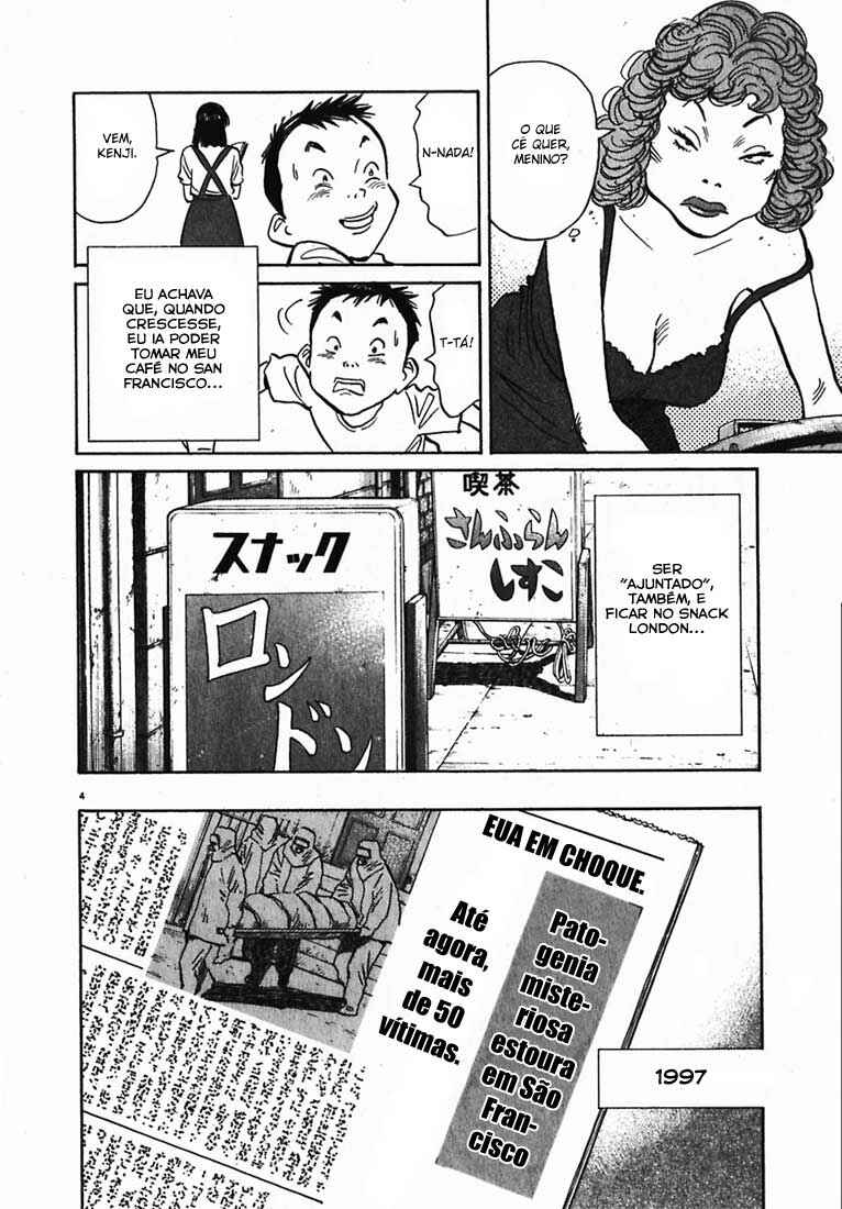 Capítulo 1 - AmigoCapítulo 2 - KaraokêCapítulo 3 - O Garoto Que Comprou um ViolãoCapítulo 4 - Toalha de MelecaCapítulo 5 - Noite no Laboratório de CiênciaCapítulo 6 - Bandeira na LuaCapítulo 7 - SoftballCapítulo 8 - Cave um BuracoCapítulo 9 - MensagemCapítulo 10 - YukijiCapítulo 11 - AmizadeCapítulo 12 - OtchoCapítulo 13 - Chou-sanCapítulo 14 - Yama-sanCapítulo 15 - Momento da Extinção da HumanidadeCapítulo 16 - DeusCapítulo 17 - A Escrivaninha da IrmãCapítulo 18 - O Amor da IrmãCapítulo 19 - O Homem Por Trás de TudoCapítulo 20 - ProfetaCapítulo 21 - Abra Seus OlhosCapítulo 22 - Herói de GuitarraCapítulo 23 - DeterminaçãoCapítulo 24 - EspetáculoCapítulo 25 - IrmãoCapítulo 26 - Colega de TurmaCapítulo 27 - Mais Um... Capítulo 28 - SadakiyoCapítulo 29 - Explosão no AeroportoCapítulo 30 - Criança DestinadaCapítulo 31 - Desde Então... Capítulo 32 - Homem em BangkokCapítulo 33 - Partido da AmizadeCapítulo 34 - FugaCapítulo 35 - ConexõesCapítulo 36 - Paz e AmorCapítulo 37 - Menino do Arco-írisCapítulo 38 - LuzCapítulo 39 - ExplosãoCapítulo 40 - Base secretaCapítulo 41 - Reunião do robõCapítulo 42 - Imperador do mundo inferiorCapítulo 43 - Nas trevas Capítulo 44 - Convite Capítulo 45 - Não está sóCapítulo 46 - Tio KenjiCapítulo 47 - SinalCapítulo 48 - 31 de dezembroCapítulo 49 - O último capítuloCapítulo 50 - ReuniãoCapítulo 51 - MonumentoCapítulo 52 - Detetive ChounoCapítulo 53 - BorboletaCapítulo 54 - Duas aspirações Capítulo 55 - TestemunhaCapítulo 56 - O Verdadeiro AssasinoCapítulo 57 - Vaga-LumeCapítulo 58 - MonstroCapítulo 59 - TúnelCapítulo 60 - Bancando a Caça... Capítulo 61 - Poderoso AliadoCapítulo 62 - Amuleto de Boa SorteCapítulo 63 - A Última EsperançaCapítulo 64 - Fugindo do InfernoCapítulo 65 - Um Teste de CoragemCapítulo 66 - FugaCapítulo 67 - ArCapítulo 68 - ChegadaCapítulo 69 - Feira de SonhosCapítulo 70 - KoizumiCapítulo 71 - Autógrafo de DeusCapítulo 72 - VerdadeCapítulo 73 - Sala de ControleCapítulo 74 - EspetáculoCapítulo 75 - FukubeiCapítulo 76 - EntradaCapítulo 77 - DecisãoCapítulo 78 - RobôCapítulo 79 - A Música de KenjiCapítulo 80 - Sua CaronaCapítulo 81 - AmigolândiaCapítulo 82 - FugaCapítulo 83 - Um PedidoCapítulo 84 - NotasCapítulo 85 - O PlanoCapítulo 86 - O DecliveCapítulo 87 - Vozes ReverberantesCapítulo 88 - Não veja!Capítulo 89 - PesadeloCapítulo 90 - Verdadeira batalhaCapítulo 91 - Coelho NabokovCapítulo 92 - P.E.S.Capítulo 93 - ConfissõesCapítulo 94 - O novo livro de profecias Capítulo 95 - Ao púlpitoCapítulo 96 - SalvadorCapítulo 97 - O assassinatoCapítulo 98 - A bala da pistoleiroCapítulo 99 - Cessar-fogoCapítulo 100 - CruzamentoCapítulo 101 - VigilânciaCapítulo 102 - Novo ProfessorCapítulo 103 - Respostas AterrorizadorasCapítulo 104 - ColecionadorCapítulo 105 - SolilóquioCapítulo 106 - Quarto de Um AmigoCapítulo 107 - Menino sem RostoCapítulo 108 - Menino com RostoCapítulo 109 - TrovãoCapítulo 110 - Um Abismo de DesesperoCapítulo 111 - Lista de IngredientesCapítulo 112 - A Mentira de 1970Capítulo 113 - Velha AmizadeCapítulo 114 - Devoção CompletaCapítulo 115 - AliensCapítulo 116 - A Decisão de SadakiyoCapítulo 117 - RuínasCapítulo 118 - GodzillaCapítulo 119 - Palavras de MãeCapítulo 120 - YamaneCapítulo 121 - Memórias do Laboratório de CiênciasCapítulo 122 - Diferentes Anos NovosCapítulo 123 - PeregrinaçãoCapítulo 124 - AutodestruiçãoCapítulo 125 - Conexão SecretaCapítulo 126 - BibliotecaCapítulo 127 - Laboratório de CiênciasCapítulo 128 - Sob a Lâmpada a ÁlcoolCapítulo 129 - EleCapítulo 130 - Um Tiro (1) Capítulo 131 - Um Tiro (2)Capítulo 132 - O Verdadeiro TiroCapítulo 133 - A Face de um AmigoCapítulo 134 - Um homem EsquecidoCapítulo 135 - A morte do AmigoCapítulo 136 - Encontro da Távola RedondaCapítulo 137 - Tempo de Reuniões Capítulo 138 - Confissões em 2003Capítulo 139 - Um homem de Verdade Capítulo 140 - O começo do FimCapítulo 141 - O império Sapo Contra-Ataca (1)Capítulo 142 - O Império Sapo Contra-Ataca (2)Capítulo 143 - Uma cidade Calma da Alemanha Capítulo 144 - Um terror que Espreita Sorrateiramente Capítulo 145 - Novas OrdensCapítulo 146 - MemorialCapítulo 147 - A Verdade Por Trás de 1971Capítulo 148 - Imperador do MalCapítulo 149 - IntrusoCapítulo 150 - O Dia em Que Ele Viu Algo DiferenteCapítulo 151 - O Entortador de ColheresCapítulo 152 - Laboratório de Ciências, 1971Capítulo 153 - Encontro Com o PassadoCapítulo 154 - IdentidadeCapítulo 155 - Memórias PerdidasCapítulo 156 - Minhas Férias de VerãoCapítulo 157 - Juventude e SonhosCapítulo 158 - Profecias MedíocresCapítulo 159 - Um Japonês Medíocre Capítulo 160 - O homem Tatuado Capítulo 161 - A verdade Retorcida Capítulo 162 - Coragem Em 2001Capítulo 163 - Adeus Em 2001Capítulo 164 - Que Mundo Maravilhoso Capítulo 165 - O Maior Espetáculo Da Terra Capítulo 166 - A Ambulante Da Máscara de Gás Capítulo 167 - Hora Crítica Capítulo 168 - Vida Longa À EXPOCapítulo 169 - Aquém Do Arco-Íris Capítulo 170 - Além Do Arco-Íris Capítulo 171 - O Começo do Arco-írisCapítulo 172 - Um Verdadeiro AmigoCapítulo 173 - No EspelhoCapítulo 174 - O Verdadeiro DecliveCapítulo 175 - O Verdadeiro FantasmaCapítulo 176 - Super-HomemCapítulo 177 - Depois do AmigoCapítulo 178 - O Salto Com VaraCapítulo 179 - História ModernaCapítulo 180 - A Imaginação das CriançasCapítulo 181 - Caixa de BrinquedosCapítulo 182 - Força de Defesa da TerraCapítulo 183 - Força, Katsuo! Capítulo 184 - Limite do SuplícioCapítulo 185 - A Rainha do GeloCapítulo 186 - O Despertar do SuplícioCapítulo 187 - Em JornadaCapítulo 188 - O Fardo da JornadaCapítulo 189 - Policial do Fim do UniversoCapítulo 190 - Canção do Fim do UniversoCapítulo 191 - Dever de Casa de FériasCapítulo 192 - Encontro no Cruzamento: Cruzado de DireitaCapítulo 193 - Guitarra SuddararaCapít
