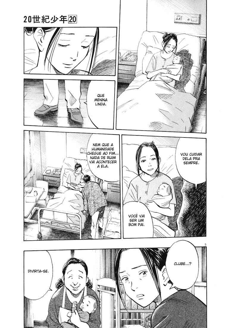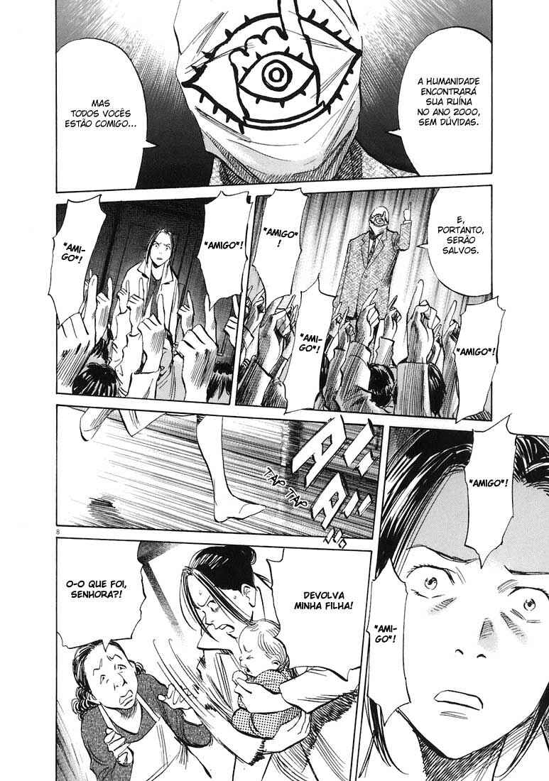 Capítulo 1 - AmigoCapítulo 2 - KaraokêCapítulo 3 - O Garoto Que Comprou um ViolãoCapítulo 4 - Toalha de MelecaCapítulo 5 - Noite no Laboratório de CiênciaCapítulo 6 - Bandeira na LuaCapítulo 7 - SoftballCapítulo 8 - Cave um BuracoCapítulo 9 - MensagemCapítulo 10 - YukijiCapítulo 11 - AmizadeCapítulo 12 - OtchoCapítulo 13 - Chou-sanCapítulo 14 - Yama-sanCapítulo 15 - Momento da Extinção da HumanidadeCapítulo 16 - DeusCapítulo 17 - A Escrivaninha da IrmãCapítulo 18 - O Amor da IrmãCapítulo 19 - O Homem Por Trás de TudoCapítulo 20 - ProfetaCapítulo 21 - Abra Seus OlhosCapítulo 22 - Herói de GuitarraCapítulo 23 - DeterminaçãoCapítulo 24 - EspetáculoCapítulo 25 - IrmãoCapítulo 26 - Colega de TurmaCapítulo 27 - Mais Um... Capítulo 28 - SadakiyoCapítulo 29 - Explosão no AeroportoCapítulo 30 - Criança DestinadaCapítulo 31 - Desde Então... Capítulo 32 - Homem em BangkokCapítulo 33 - Partido da AmizadeCapítulo 34 - FugaCapítulo 35 - ConexõesCapítulo 36 - Paz e AmorCapítulo 37 - Menino do Arco-írisCapítulo 38 - LuzCapítulo 39 - ExplosãoCapítulo 40 - Base secretaCapítulo 41 - Reunião do robõCapítulo 42 - Imperador do mundo inferiorCapítulo 43 - Nas trevas Capítulo 44 - Convite Capítulo 45 - Não está sóCapítulo 46 - Tio KenjiCapítulo 47 - SinalCapítulo 48 - 31 de dezembroCapítulo 49 - O último capítuloCapítulo 50 - ReuniãoCapítulo 51 - MonumentoCapítulo 52 - Detetive ChounoCapítulo 53 - BorboletaCapítulo 54 - Duas aspirações Capítulo 55 - TestemunhaCapítulo 56 - O Verdadeiro AssasinoCapítulo 57 - Vaga-LumeCapítulo 58 - MonstroCapítulo 59 - TúnelCapítulo 60 - Bancando a Caça... Capítulo 61 - Poderoso AliadoCapítulo 62 - Amuleto de Boa SorteCapítulo 63 - A Última EsperançaCapítulo 64 - Fugindo do InfernoCapítulo 65 - Um Teste de CoragemCapítulo 66 - FugaCapítulo 67 - ArCapítulo 68 - ChegadaCapítulo 69 - Feira de SonhosCapítulo 70 - KoizumiCapítulo 71 - Autógrafo de DeusCapítulo 72 - VerdadeCapítulo 73 - Sala de ControleCapítulo 74 - EspetáculoCapítulo 75 - FukubeiCapítulo 76 - EntradaCapítulo 77 - DecisãoCapítulo 78 - RobôCapítulo 79 - A Música de KenjiCapítulo 80 - Sua CaronaCapítulo 81 - AmigolândiaCapítulo 82 - FugaCapítulo 83 - Um PedidoCapítulo 84 - NotasCapítulo 85 - O PlanoCapítulo 86 - O DecliveCapítulo 87 - Vozes ReverberantesCapítulo 88 - Não veja!Capítulo 89 - PesadeloCapítulo 90 - Verdadeira batalhaCapítulo 91 - Coelho NabokovCapítulo 92 - P.E.S.Capítulo 93 - ConfissõesCapítulo 94 - O novo livro de profecias Capítulo 95 - Ao púlpitoCapítulo 96 - SalvadorCapítulo 97 - O assassinatoCapítulo 98 - A bala da pistoleiroCapítulo 99 - Cessar-fogoCapítulo 100 - CruzamentoCapítulo 101 - VigilânciaCapítulo 102 - Novo ProfessorCapítulo 103 - Respostas AterrorizadorasCapítulo 104 - ColecionadorCapítulo 105 - SolilóquioCapítulo 106 - Quarto de Um AmigoCapítulo 107 - Menino sem RostoCapítulo 108 - Menino com RostoCapítulo 109 - TrovãoCapítulo 110 - Um Abismo de DesesperoCapítulo 111 - Lista de IngredientesCapítulo 112 - A Mentira de 1970Capítulo 113 - Velha AmizadeCapítulo 114 - Devoção CompletaCapítulo 115 - AliensCapítulo 116 - A Decisão de SadakiyoCapítulo 117 - RuínasCapítulo 118 - GodzillaCapítulo 119 - Palavras de MãeCapítulo 120 - YamaneCapítulo 121 - Memórias do Laboratório de CiênciasCapítulo 122 - Diferentes Anos NovosCapítulo 123 - PeregrinaçãoCapítulo 124 - AutodestruiçãoCapítulo 125 - Conexão SecretaCapítulo 126 - BibliotecaCapítulo 127 - Laboratório de CiênciasCapítulo 128 - Sob a Lâmpada a ÁlcoolCapítulo 129 - EleCapítulo 130 - Um Tiro (1) Capítulo 131 - Um Tiro (2)Capítulo 132 - O Verdadeiro TiroCapítulo 133 - A Face de um AmigoCapítulo 134 - Um homem EsquecidoCapítulo 135 - A morte do AmigoCapítulo 136 - Encontro da Távola RedondaCapítulo 137 - Tempo de Reuniões Capítulo 138 - Confissões em 2003Capítulo 139 - Um homem de Verdade Capítulo 140 - O começo do FimCapítulo 141 - O império Sapo Contra-Ataca (1)Capítulo 142 - O Império Sapo Contra-Ataca (2)Capítulo 143 - Uma cidade Calma da Alemanha Capítulo 144 - Um terror que Espreita Sorrateiramente Capítulo 145 - Novas OrdensCapítulo 146 - MemorialCapítulo 147 - A Verdade Por Trás de 1971Capítulo 148 - Imperador do MalCapítulo 149 - IntrusoCapítulo 150 - O Dia em Que Ele Viu Algo DiferenteCapítulo 151 - O Entortador de ColheresCapítulo 152 - Laboratório de Ciências, 1971Capítulo 153 - Encontro Com o PassadoCapítulo 154 - IdentidadeCapítulo 155 - Memórias PerdidasCapítulo 156 - Minhas Férias de VerãoCapítulo 157 - Juventude e SonhosCapítulo 158 - Profecias MedíocresCapítulo 159 - Um Japonês Medíocre Capítulo 160 - O homem Tatuado Capítulo 161 - A verdade Retorcida Capítulo 162 - Coragem Em 2001Capítulo 163 - Adeus Em 2001Capítulo 164 - Que Mundo Maravilhoso Capítulo 165 - O Maior Espetáculo Da Terra Capítulo 166 - A Ambulante Da Máscara de Gás Capítulo 167 - Hora Crítica Capítulo 168 - Vida Longa À EXPOCapítulo 169 - Aquém Do Arco-Íris Capítulo 170 - Além Do Arco-Íris Capítulo 171 - O Começo do Arco-írisCapítulo 172 - Um Verdadeiro AmigoCapítulo 173 - No EspelhoCapítulo 174 - O Verdadeiro DecliveCapítulo 175 - O Verdadeiro FantasmaCapítulo 176 - Super-HomemCapítulo 177 - Depois do AmigoCapítulo 178 - O Salto Com VaraCapítulo 179 - História ModernaCapítulo 180 - A Imaginação das CriançasCapítulo 181 - Caixa de BrinquedosCapítulo 182 - Força de Defesa da TerraCapítulo 183 - Força, Katsuo! Capítulo 184 - Limite do SuplícioCapítulo 185 - A Rainha do GeloCapítulo 186 - O Despertar do SuplícioCapítulo 187 - Em JornadaCapítulo 188 - O Fardo da JornadaCapítulo 189 - Policial do Fim do UniversoCapítulo 190 - Canção do Fim do UniversoCapítulo 191 - Dever de Casa de FériasCapítulo 192 - Encontro no Cruzamento: Cruzado de DireitaCapítulo 193 - Guitarra SuddararaCapít