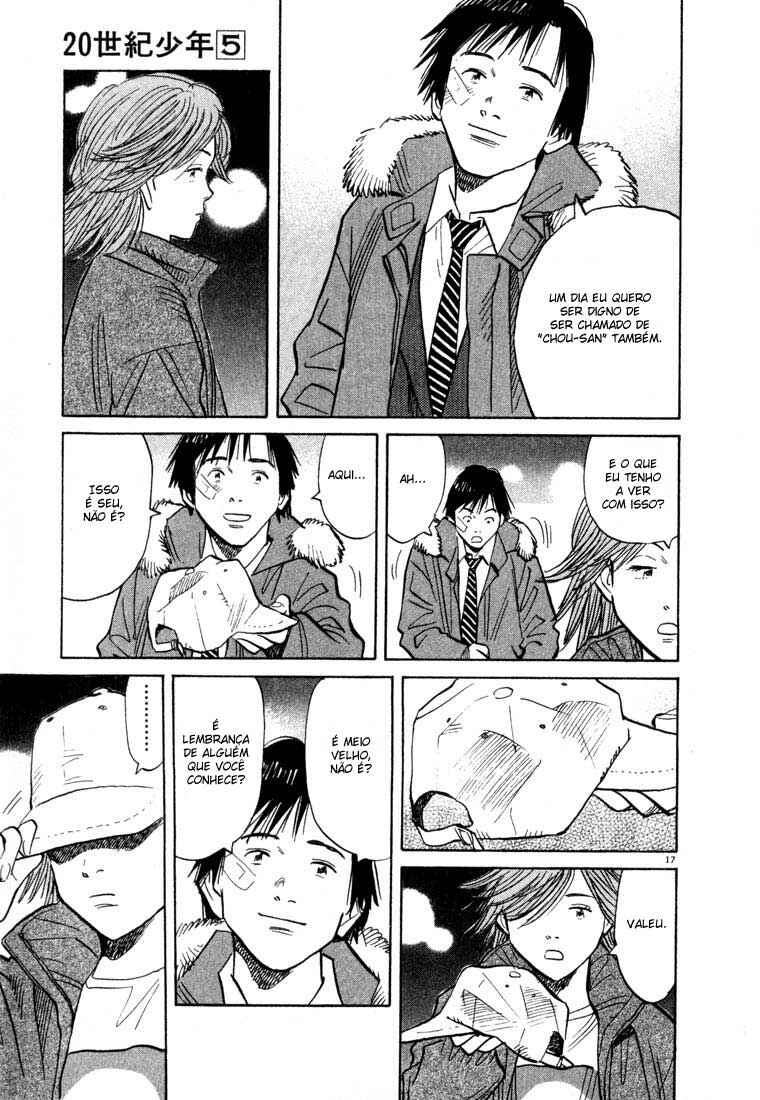 Capítulo 1 - AmigoCapítulo 2 - KaraokêCapítulo 3 - O Garoto Que Comprou um ViolãoCapítulo 4 - Toalha de MelecaCapítulo 5 - Noite no Laboratório de CiênciaCapítulo 6 - Bandeira na LuaCapítulo 7 - SoftballCapítulo 8 - Cave um BuracoCapítulo 9 - MensagemCapítulo 10 - YukijiCapítulo 11 - AmizadeCapítulo 12 - OtchoCapítulo 13 - Chou-sanCapítulo 14 - Yama-sanCapítulo 15 - Momento da Extinção da HumanidadeCapítulo 16 - DeusCapítulo 17 - A Escrivaninha da IrmãCapítulo 18 - O Amor da IrmãCapítulo 19 - O Homem Por Trás de TudoCapítulo 20 - ProfetaCapítulo 21 - Abra Seus OlhosCapítulo 22 - Herói de GuitarraCapítulo 23 - DeterminaçãoCapítulo 24 - EspetáculoCapítulo 25 - IrmãoCapítulo 26 - Colega de TurmaCapítulo 27 - Mais Um... Capítulo 28 - SadakiyoCapítulo 29 - Explosão no AeroportoCapítulo 30 - Criança DestinadaCapítulo 31 - Desde Então... Capítulo 32 - Homem em BangkokCapítulo 33 - Partido da AmizadeCapítulo 34 - FugaCapítulo 35 - ConexõesCapítulo 36 - Paz e AmorCapítulo 37 - Menino do Arco-írisCapítulo 38 - LuzCapítulo 39 - ExplosãoCapítulo 40 - Base secretaCapítulo 41 - Reunião do robõCapítulo 42 - Imperador do mundo inferiorCapítulo 43 - Nas trevas Capítulo 44 - Convite Capítulo 45 - Não está sóCapítulo 46 - Tio KenjiCapítulo 47 - SinalCapítulo 48 - 31 de dezembroCapítulo 49 - O último capítuloCapítulo 50 - ReuniãoCapítulo 51 - MonumentoCapítulo 52 - Detetive ChounoCapítulo 53 - BorboletaCapítulo 54 - Duas aspirações Capítulo 55 - TestemunhaCapítulo 56 - O Verdadeiro AssasinoCapítulo 57 - Vaga-LumeCapítulo 58 - MonstroCapítulo 59 - TúnelCapítulo 60 - Bancando a Caça... Capítulo 61 - Poderoso AliadoCapítulo 62 - Amuleto de Boa SorteCapítulo 63 - A Última EsperançaCapítulo 64 - Fugindo do InfernoCapítulo 65 - Um Teste de CoragemCapítulo 66 - FugaCapítulo 67 - ArCapítulo 68 - ChegadaCapítulo 69 - Feira de SonhosCapítulo 70 - KoizumiCapítulo 71 - Autógrafo de DeusCapítulo 72 - VerdadeCapítulo 73 - Sala de ControleCapítulo 74 - EspetáculoCapítulo 75 - FukubeiCapítulo 76 - EntradaCapítulo 77 - DecisãoCapítulo 78 - RobôCapítulo 79 - A Música de KenjiCapítulo 80 - Sua CaronaCapítulo 81 - AmigolândiaCapítulo 82 - FugaCapítulo 83 - Um PedidoCapítulo 84 - NotasCapítulo 85 - O PlanoCapítulo 86 - O DecliveCapítulo 87 - Vozes ReverberantesCapítulo 88 - Não veja!Capítulo 89 - PesadeloCapítulo 90 - Verdadeira batalhaCapítulo 91 - Coelho NabokovCapítulo 92 - P.E.S.Capítulo 93 - ConfissõesCapítulo 94 - O novo livro de profecias Capítulo 95 - Ao púlpitoCapítulo 96 - SalvadorCapítulo 97 - O assassinatoCapítulo 98 - A bala da pistoleiroCapítulo 99 - Cessar-fogoCapítulo 100 - CruzamentoCapítulo 101 - VigilânciaCapítulo 102 - Novo ProfessorCapítulo 103 - Respostas AterrorizadorasCapítulo 104 - ColecionadorCapítulo 105 - SolilóquioCapítulo 106 - Quarto de Um AmigoCapítulo 107 - Menino sem RostoCapítulo 108 - Menino com RostoCapítulo 109 - TrovãoCapítulo 110 - Um Abismo de DesesperoCapítulo 111 - Lista de IngredientesCapítulo 112 - A Mentira de 1970Capítulo 113 - Velha AmizadeCapítulo 114 - Devoção CompletaCapítulo 115 - AliensCapítulo 116 - A Decisão de SadakiyoCapítulo 117 - RuínasCapítulo 118 - GodzillaCapítulo 119 - Palavras de MãeCapítulo 120 - YamaneCapítulo 121 - Memórias do Laboratório de CiênciasCapítulo 122 - Diferentes Anos NovosCapítulo 123 - PeregrinaçãoCapítulo 124 - AutodestruiçãoCapítulo 125 - Conexão SecretaCapítulo 126 - BibliotecaCapítulo 127 - Laboratório de CiênciasCapítulo 128 - Sob a Lâmpada a ÁlcoolCapítulo 129 - EleCapítulo 130 - Um Tiro (1) Capítulo 131 - Um Tiro (2)Capítulo 132 - O Verdadeiro TiroCapítulo 133 - A Face de um AmigoCapítulo 134 - Um homem EsquecidoCapítulo 135 - A morte do AmigoCapítulo 136 - Encontro da Távola RedondaCapítulo 137 - Tempo de Reuniões Capítulo 138 - Confissões em 2003Capítulo 139 - Um homem de Verdade Capítulo 140 - O começo do FimCapítulo 141 - O império Sapo Contra-Ataca (1)Capítulo 142 - O Império Sapo Contra-Ataca (2)Capítulo 143 - Uma cidade Calma da Alemanha Capítulo 144 - Um terror que Espreita Sorrateiramente Capítulo 145 - Novas OrdensCapítulo 146 - MemorialCapítulo 147 - A Verdade Por Trás de 1971Capítulo 148 - Imperador do MalCapítulo 149 - IntrusoCapítulo 150 - O Dia em Que Ele Viu Algo DiferenteCapítulo 151 - O Entortador de ColheresCapítulo 152 - Laboratório de Ciências, 1971Capítulo 153 - Encontro Com o PassadoCapítulo 154 - IdentidadeCapítulo 155 - Memórias PerdidasCapítulo 156 - Minhas Férias de VerãoCapítulo 157 - Juventude e SonhosCapítulo 158 - Profecias MedíocresCapítulo 159 - Um Japonês Medíocre Capítulo 160 - O homem Tatuado Capítulo 161 - A verdade Retorcida Capítulo 162 - Coragem Em 2001Capítulo 163 - Adeus Em 2001Capítulo 164 - Que Mundo Maravilhoso Capítulo 165 - O Maior Espetáculo Da Terra Capítulo 166 - A Ambulante Da Máscara de Gás Capítulo 167 - Hora Crítica Capítulo 168 - Vida Longa À EXPOCapítulo 169 - Aquém Do Arco-Íris Capítulo 170 - Além Do Arco-Íris Capítulo 171 - O Começo do Arco-írisCapítulo 172 - Um Verdadeiro AmigoCapítulo 173 - No EspelhoCapítulo 174 - O Verdadeiro DecliveCapítulo 175 - O Verdadeiro FantasmaCapítulo 176 - Super-HomemCapítulo 177 - Depois do AmigoCapítulo 178 - O Salto Com VaraCapítulo 179 - História ModernaCapítulo 180 - A Imaginação das CriançasCapítulo 181 - Caixa de BrinquedosCapítulo 182 - Força de Defesa da TerraCapítulo 183 - Força, Katsuo! Capítulo 184 - Limite do SuplícioCapítulo 185 - A Rainha do GeloCapítulo 186 - O Despertar do SuplícioCapítulo 187 - Em JornadaCapítulo 188 - O Fardo da JornadaCapítulo 189 - Policial do Fim do UniversoCapítulo 190 - Canção do Fim do UniversoCapítulo 191 - Dever de Casa de FériasCapítulo 192 - Encontro no Cruzamento: Cruzado de DireitaCapítulo 193 - Guitarra SuddararaCapít