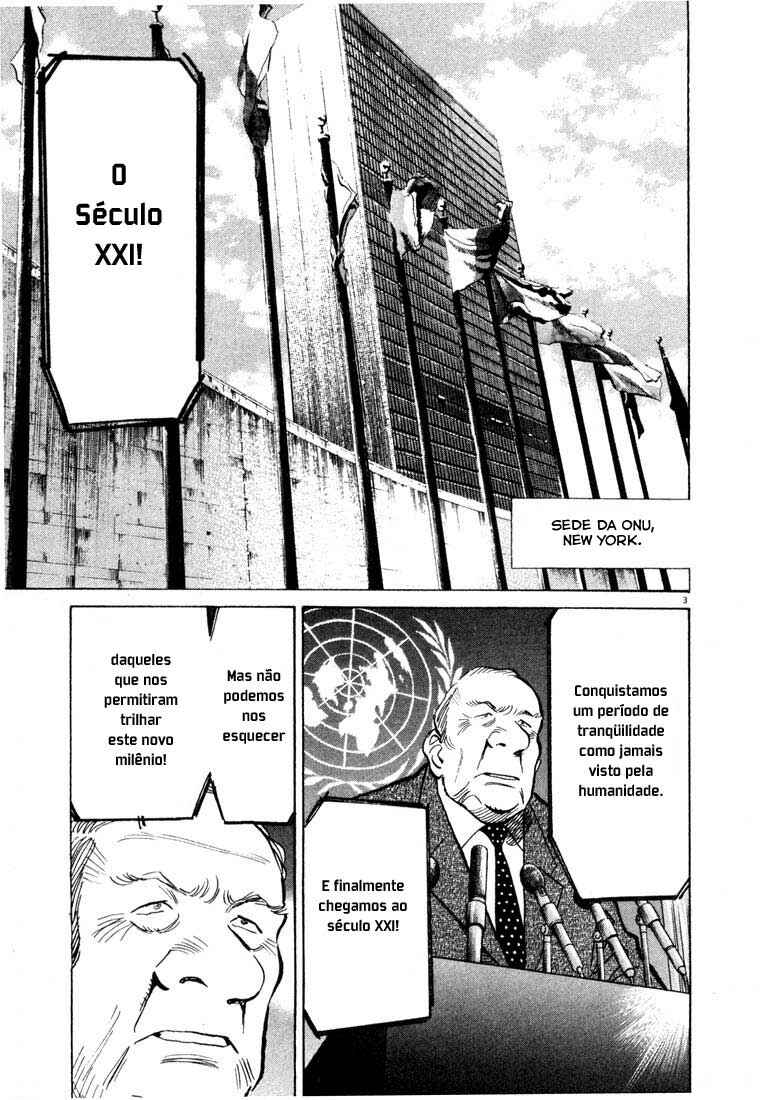 Capítulo 1 - AmigoCapítulo 2 - KaraokêCapítulo 3 - O Garoto Que Comprou um ViolãoCapítulo 4 - Toalha de MelecaCapítulo 5 - Noite no Laboratório de CiênciaCapítulo 6 - Bandeira na LuaCapítulo 7 - SoftballCapítulo 8 - Cave um BuracoCapítulo 9 - MensagemCapítulo 10 - YukijiCapítulo 11 - AmizadeCapítulo 12 - OtchoCapítulo 13 - Chou-sanCapítulo 14 - Yama-sanCapítulo 15 - Momento da Extinção da HumanidadeCapítulo 16 - DeusCapítulo 17 - A Escrivaninha da IrmãCapítulo 18 - O Amor da IrmãCapítulo 19 - O Homem Por Trás de TudoCapítulo 20 - ProfetaCapítulo 21 - Abra Seus OlhosCapítulo 22 - Herói de GuitarraCapítulo 23 - DeterminaçãoCapítulo 24 - EspetáculoCapítulo 25 - IrmãoCapítulo 26 - Colega de TurmaCapítulo 27 - Mais Um... Capítulo 28 - SadakiyoCapítulo 29 - Explosão no AeroportoCapítulo 30 - Criança DestinadaCapítulo 31 - Desde Então... Capítulo 32 - Homem em BangkokCapítulo 33 - Partido da AmizadeCapítulo 34 - FugaCapítulo 35 - ConexõesCapítulo 36 - Paz e AmorCapítulo 37 - Menino do Arco-írisCapítulo 38 - LuzCapítulo 39 - ExplosãoCapítulo 40 - Base secretaCapítulo 41 - Reunião do robõCapítulo 42 - Imperador do mundo inferiorCapítulo 43 - Nas trevas Capítulo 44 - Convite Capítulo 45 - Não está sóCapítulo 46 - Tio KenjiCapítulo 47 - SinalCapítulo 48 - 31 de dezembroCapítulo 49 - O último capítuloCapítulo 50 - ReuniãoCapítulo 51 - MonumentoCapítulo 52 - Detetive ChounoCapítulo 53 - BorboletaCapítulo 54 - Duas aspirações Capítulo 55 - TestemunhaCapítulo 56 - O Verdadeiro AssasinoCapítulo 57 - Vaga-LumeCapítulo 58 - MonstroCapítulo 59 - TúnelCapítulo 60 - Bancando a Caça... Capítulo 61 - Poderoso AliadoCapítulo 62 - Amuleto de Boa SorteCapítulo 63 - A Última EsperançaCapítulo 64 - Fugindo do InfernoCapítulo 65 - Um Teste de CoragemCapítulo 66 - FugaCapítulo 67 - ArCapítulo 68 - ChegadaCapítulo 69 - Feira de SonhosCapítulo 70 - KoizumiCapítulo 71 - Autógrafo de DeusCapítulo 72 - VerdadeCapítulo 73 - Sala de ControleCapítulo 74 - EspetáculoCapítulo 75 - FukubeiCapítulo 76 - EntradaCapítulo 77 - DecisãoCapítulo 78 - RobôCapítulo 79 - A Música de KenjiCapítulo 80 - Sua CaronaCapítulo 81 - AmigolândiaCapítulo 82 - FugaCapítulo 83 - Um PedidoCapítulo 84 - NotasCapítulo 85 - O PlanoCapítulo 86 - O DecliveCapítulo 87 - Vozes ReverberantesCapítulo 88 - Não veja!Capítulo 89 - PesadeloCapítulo 90 - Verdadeira batalhaCapítulo 91 - Coelho NabokovCapítulo 92 - P.E.S.Capítulo 93 - ConfissõesCapítulo 94 - O novo livro de profecias Capítulo 95 - Ao púlpitoCapítulo 96 - SalvadorCapítulo 97 - O assassinatoCapítulo 98 - A bala da pistoleiroCapítulo 99 - Cessar-fogoCapítulo 100 - CruzamentoCapítulo 101 - VigilânciaCapítulo 102 - Novo ProfessorCapítulo 103 - Respostas AterrorizadorasCapítulo 104 - ColecionadorCapítulo 105 - SolilóquioCapítulo 106 - Quarto de Um AmigoCapítulo 107 - Menino sem RostoCapítulo 108 - Menino com RostoCapítulo 109 - TrovãoCapítulo 110 - Um Abismo de DesesperoCapítulo 111 - Lista de IngredientesCapítulo 112 - A Mentira de 1970Capítulo 113 - Velha AmizadeCapítulo 114 - Devoção CompletaCapítulo 115 - AliensCapítulo 116 - A Decisão de SadakiyoCapítulo 117 - RuínasCapítulo 118 - GodzillaCapítulo 119 - Palavras de MãeCapítulo 120 - YamaneCapítulo 121 - Memórias do Laboratório de CiênciasCapítulo 122 - Diferentes Anos NovosCapítulo 123 - PeregrinaçãoCapítulo 124 - AutodestruiçãoCapítulo 125 - Conexão SecretaCapítulo 126 - BibliotecaCapítulo 127 - Laboratório de CiênciasCapítulo 128 - Sob a Lâmpada a ÁlcoolCapítulo 129 - EleCapítulo 130 - Um Tiro (1) Capítulo 131 - Um Tiro (2)Capítulo 132 - O Verdadeiro TiroCapítulo 133 - A Face de um AmigoCapítulo 134 - Um homem EsquecidoCapítulo 135 - A morte do AmigoCapítulo 136 - Encontro da Távola RedondaCapítulo 137 - Tempo de Reuniões Capítulo 138 - Confissões em 2003Capítulo 139 - Um homem de Verdade Capítulo 140 - O começo do FimCapítulo 141 - O império Sapo Contra-Ataca (1)Capítulo 142 - O Império Sapo Contra-Ataca (2)Capítulo 143 - Uma cidade Calma da Alemanha Capítulo 144 - Um terror que Espreita Sorrateiramente Capítulo 145 - Novas OrdensCapítulo 146 - MemorialCapítulo 147 - A Verdade Por Trás de 1971Capítulo 148 - Imperador do MalCapítulo 149 - IntrusoCapítulo 150 - O Dia em Que Ele Viu Algo DiferenteCapítulo 151 - O Entortador de ColheresCapítulo 152 - Laboratório de Ciências, 1971Capítulo 153 - Encontro Com o PassadoCapítulo 154 - IdentidadeCapítulo 155 - Memórias PerdidasCapítulo 156 - Minhas Férias de VerãoCapítulo 157 - Juventude e SonhosCapítulo 158 - Profecias MedíocresCapítulo 159 - Um Japonês Medíocre Capítulo 160 - O homem Tatuado Capítulo 161 - A verdade Retorcida Capítulo 162 - Coragem Em 2001Capítulo 163 - Adeus Em 2001Capítulo 164 - Que Mundo Maravilhoso Capítulo 165 - O Maior Espetáculo Da Terra Capítulo 166 - A Ambulante Da Máscara de Gás Capítulo 167 - Hora Crítica Capítulo 168 - Vida Longa À EXPOCapítulo 169 - Aquém Do Arco-Íris Capítulo 170 - Além Do Arco-Íris Capítulo 171 - O Começo do Arco-írisCapítulo 172 - Um Verdadeiro AmigoCapítulo 173 - No EspelhoCapítulo 174 - O Verdadeiro DecliveCapítulo 175 - O Verdadeiro FantasmaCapítulo 176 - Super-HomemCapítulo 177 - Depois do AmigoCapítulo 178 - O Salto Com VaraCapítulo 179 - História ModernaCapítulo 180 - A Imaginação das CriançasCapítulo 181 - Caixa de BrinquedosCapítulo 182 - Força de Defesa da TerraCapítulo 183 - Força, Katsuo! Capítulo 184 - Limite do SuplícioCapítulo 185 - A Rainha do GeloCapítulo 186 - O Despertar do SuplícioCapítulo 187 - Em JornadaCapítulo 188 - O Fardo da JornadaCapítulo 189 - Policial do Fim do UniversoCapítulo 190 - Canção do Fim do UniversoCapítulo 191 - Dever de Casa de FériasCapítulo 192 - Encontro no Cruzamento: Cruzado de DireitaCapítulo 193 - Guitarra SuddararaCapít