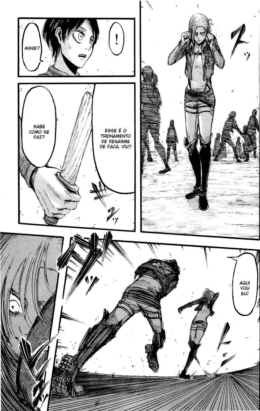 Capítulo 1 - Para Você, Após Dois Mil AnosCapítulo 2 - Aquele DiaCapítulo 3 - A Noite da GraduaçãoCapítulo 4 - Primeira BatalhaCapítulo 5 - Uma Fraca Luz em Meio ao DesesperoCapítulo 6 - O Mundo Que a Garota ViuCapítulo 7 - Lâmina PequenaCapítulo 8 - RugidoCapítulo 9 - Ouvindo as Batidas do CoraçãoCapítulo 10 - O Destino do Braço EsquerdoCapítulo 11 - RespostaCapítulo 12 - ÍconeCapítulo 13 - FeridaCapítulo 13.5Capítulo 14 - Desejo PrimordialCapítulo 15 - IndivíduosCapítulo 16 - NecessidadeCapítulo 17 - Força IlusóriaCapítulo 18 - O que Devo Fazer Agora?Capítulo 19 - Ainda Não VeemCapítulo 20 - Esquadrão de Operações EspeciaisCapítulo 21 - Abrem-se os PortõesCapítulo 22 - Formação de Detecção de Longo AlcanceCapítulo 22.5Capítulo 23 - A Titã FêmeaCapítulo 24 - A Floresta das Árvores GigantesCapítulo 25 - MordidaCapítulo 26 - Por um Caminho MelhorCapítulo 27 - Irvin SmithCapítulo 28 - Escolhas e ResultadosCapítulo 29 - Golpe de FerroCapítulo 30 - Os DerrotadosCapítulo 31 - SorrisoCapítulo 32 - ClemênciaCapítulo 33 - MuralhaCapítulo 34 - Os Guerreiros DançamCapítulo 35 - O Titã BestialCapítulo 36 - Estou em CasaCapítulo 37 - Ao SudesteCapítulo 38 - Castelo UtgardCapítulo 39 - SoldadoCapítulo 40 - YmirCapítulo 41 - HistoriaCapítulo 42 - GuerreiroCapítulo 43 - O Titã de ArmaduraCapítulo 44 - Golpear - Derrubar - DominarCapítulo 45 - Aqueles que PerseguemCapítulo 46 - AberturaCapítulo 47 - CriançasCapítulo 48 - AlguémCapítulo 49 - AtaqueCapítulo 50 - GritoCapítulo 50.5Capítulo 51 - Esquadrão LeviCapítulo 52 - Krista LenzCapítulo 53 - FumaçaCapítulo 54 - O Local do Contra-AtaqueCapítulo 55 - DorCapítulo 56 - AtoresCapítulo 57 - Kenny, o EstripadorCapítulo 58 - TiroteioCapítulo 59 - A Alma de um MonstroCapítulo 60 - ConfiançaCapítulo 61 - RespostasCapítulo 62 - CrimeCapítulo 63 - CorrentesCapítulo 64 - Festa de Boas VindasCapítulo 65 - Sonhos e MaldiçõesCapítulo 66 - DesejoCapítulo 67 - O Lado Externo do Distrito OrvudCapítulo 68 - O Rei da MuralhaCapítulo 69 - AmigosCapítulo 70 - Um Sonho do PassadoCapítulo 71 - EspectadorCapítulo 72 - A Noite da OperaçãoCapítulo 73 - A Cidade Onde Tudo ComeçouCapítulo 74 - Objetivos da MissãoCapítulo 75 - Duas Frentes de BatalhaCapítulo 76 - A Lança do TrovãoCapítulo 77 - O Mundo Que Eles ViramCapítulo 78 - VisitaCapítulo 79 - Jogo PerfeitoCapítulo 80 - Os Soldados DesconhecidosCapítulo 81 - PromessaCapítulo 82 - HeróiCapítulo 83 - Golpe de MachadoCapítulo 84 - Sol da Meia NoiteCapítulo 85 - PorãoCapítulo 86 - Aquele DiaCapítulo 87 - FronteiraCapítulo 88 - Ataque dos TitãsCapítulo 89 - ReuniãoCapítulo 90 - Para o Outro Lado da MuralhaCapítulo 91 - O Outro Lado do OceanoCapítulo 92 - Soldados de MarleyCapítulo 93 - Trem da Noite EscuraCapítulo 94 - O Garoto Dentro do MuroCapítulo 95 - MentirosoCapítulo 96 - O Portão da EsperançaCapítulo 97 - De Uma Mão para a OutraCapítulo 98 - Que BomCapítulo 99 - A Sombra de Uma Consciência CulpadaCapítulo 100 - Declaração de GuerraCapítulo 101 - O Gigante do Martelo de GuerraCapítulo 102 - E Tarde DemaisCapítulo 103 - AtaqueCapítulo 104 - VitoriososCapítulo 105 - A Bala do AssassinoCapítulo 106 - Soldados VoluntáriosCapítulo 107 - VisitanteCapítulo 108 - Um Bom ArgumentoCapítulo 109 - Aqueles Que GuiamCapítulo 110 - ImpostorCapítulo 111 - Crianças da FlorestaCapítulo 112 - IgnorânciaCapítulo 113 - ViolênciaCapítulo 114 - Única SalvaçãoCapítulo 115 - SuporteCapítulo 116 - Céu e TerraCapítulo 117 - JulgamentoCapítulo 118 - Ataque SurpresaCapítulo 119 - Irmãos Mais Velhos, Irmãos Mais NovosCapítulo 120 - Um Breve InstanteCapítulo 120 - InstanteCapítulo 121 - Memórias do FuturoCapítulo 121 - Memórias futurasCapítulo 122 - De Você 2000 Anos AtrásCapítulo 122 - De você, há 2000 anos.Capítulo 123 - Os demônios da ilhaCapítulo 123 - Demônios da ilhaCapítulo 124 - DerretimentoCapítulo 124 - DescongelamentoCapítulo 125 - Pôr do SolCapítulo 126 - OrgulhoCapítulo 126 - OrgulhoCapítulo 127 - Noite da Véspera do FimCapítulo 128 - TraidorCapítulo 129 - RetrospectivaCapítulo 130 - O amanhecer da humanidadeCapítulo 130 - Amanhecer Para a HumanidadeCapítulo 131 - EstrondoCapítulo 131 - O EstrondoCapítulo 132 - Asas da LiberdadeCapítulo 132 - As asas da liberdadeCapítulo 133 - PecadoresCapítulo 133 - PecadoresCapítulo 134 - Nas Profundezas do DesesperoCapítulo 135 - Batalha do Céu e da TerraCapítulo 135 - Batalha do Céu e da TerraCapítulo 136 - Dediquem Seus CoraçõesCapítulo 137 - TitãsCapítulo 138 - Um Longo SonhoCapítulo 139 - Em Direção a Árvore Naquela Colina