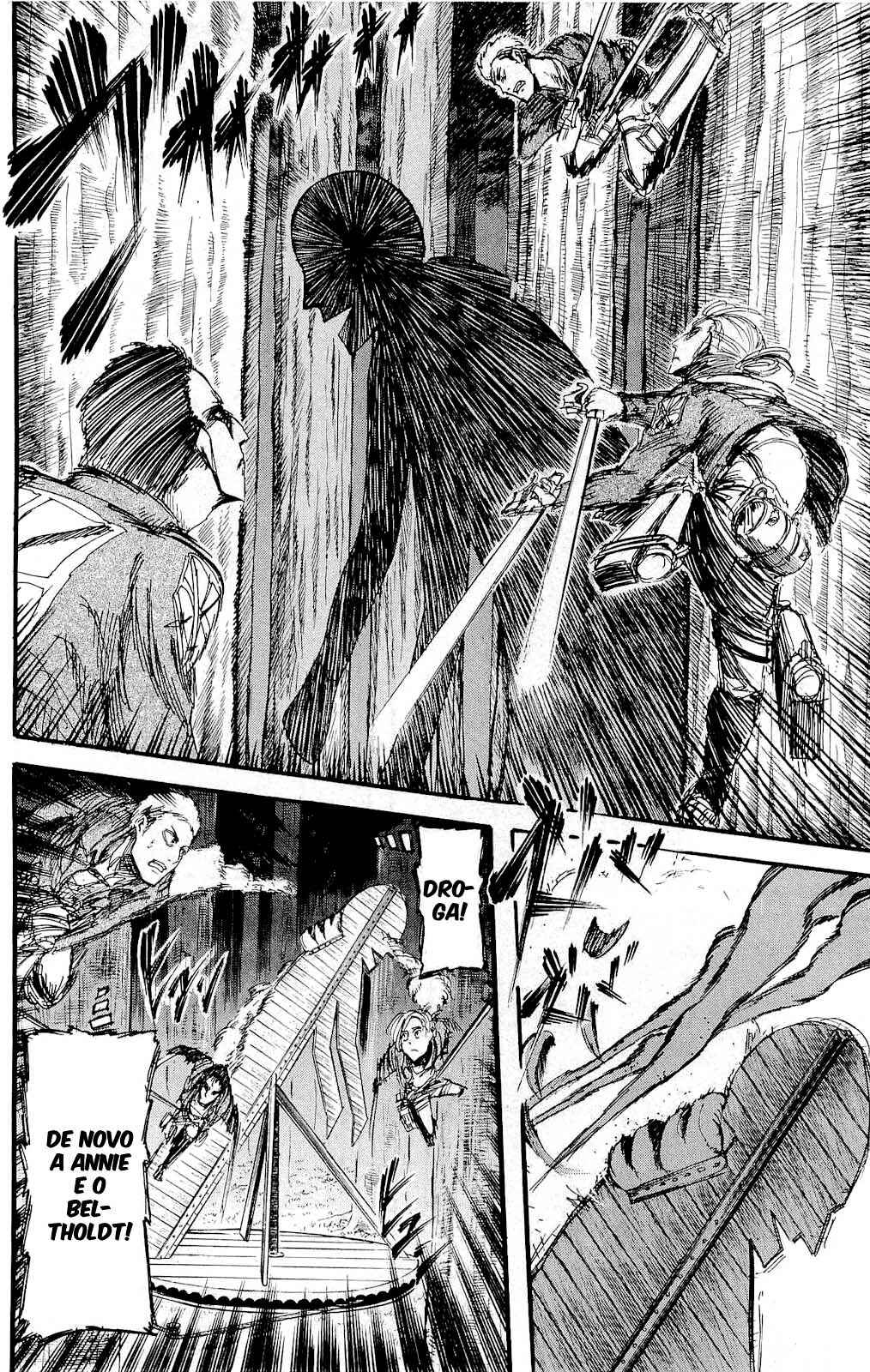 Capítulo 1 - Para Você, Após Dois Mil AnosCapítulo 2 - Aquele DiaCapítulo 3 - A Noite da GraduaçãoCapítulo 4 - Primeira BatalhaCapítulo 5 - Uma Fraca Luz em Meio ao DesesperoCapítulo 6 - O Mundo Que a Garota ViuCapítulo 7 - Lâmina PequenaCapítulo 8 - RugidoCapítulo 9 - Ouvindo as Batidas do CoraçãoCapítulo 10 - O Destino do Braço EsquerdoCapítulo 11 - RespostaCapítulo 12 - ÍconeCapítulo 13 - FeridaCapítulo 13.5Capítulo 14 - Desejo PrimordialCapítulo 15 - IndivíduosCapítulo 16 - NecessidadeCapítulo 17 - Força IlusóriaCapítulo 18 - O que Devo Fazer Agora?Capítulo 19 - Ainda Não VeemCapítulo 20 - Esquadrão de Operações EspeciaisCapítulo 21 - Abrem-se os PortõesCapítulo 22 - Formação de Detecção de Longo AlcanceCapítulo 22.5Capítulo 23 - A Titã FêmeaCapítulo 24 - A Floresta das Árvores GigantesCapítulo 25 - MordidaCapítulo 26 - Por um Caminho MelhorCapítulo 27 - Irvin SmithCapítulo 28 - Escolhas e ResultadosCapítulo 29 - Golpe de FerroCapítulo 30 - Os DerrotadosCapítulo 31 - SorrisoCapítulo 32 - ClemênciaCapítulo 33 - MuralhaCapítulo 34 - Os Guerreiros DançamCapítulo 35 - O Titã BestialCapítulo 36 - Estou em CasaCapítulo 37 - Ao SudesteCapítulo 38 - Castelo UtgardCapítulo 39 - SoldadoCapítulo 40 - YmirCapítulo 41 - HistoriaCapítulo 42 - GuerreiroCapítulo 43 - O Titã de ArmaduraCapítulo 44 - Golpear - Derrubar - DominarCapítulo 45 - Aqueles que PerseguemCapítulo 46 - AberturaCapítulo 47 - CriançasCapítulo 48 - AlguémCapítulo 49 - AtaqueCapítulo 50 - GritoCapítulo 50.5Capítulo 51 - Esquadrão LeviCapítulo 52 - Krista LenzCapítulo 53 - FumaçaCapítulo 54 - O Local do Contra-AtaqueCapítulo 55 - DorCapítulo 56 - AtoresCapítulo 57 - Kenny, o EstripadorCapítulo 58 - TiroteioCapítulo 59 - A Alma de um MonstroCapítulo 60 - ConfiançaCapítulo 61 - RespostasCapítulo 62 - CrimeCapítulo 63 - CorrentesCapítulo 64 - Festa de Boas VindasCapítulo 65 - Sonhos e MaldiçõesCapítulo 66 - DesejoCapítulo 67 - O Lado Externo do Distrito OrvudCapítulo 68 - O Rei da MuralhaCapítulo 69 - AmigosCapítulo 70 - Um Sonho do PassadoCapítulo 71 - EspectadorCapítulo 72 - A Noite da OperaçãoCapítulo 73 - A Cidade Onde Tudo ComeçouCapítulo 74 - Objetivos da MissãoCapítulo 75 - Duas Frentes de BatalhaCapítulo 76 - A Lança do TrovãoCapítulo 77 - O Mundo Que Eles ViramCapítulo 78 - VisitaCapítulo 79 - Jogo PerfeitoCapítulo 80 - Os Soldados DesconhecidosCapítulo 81 - PromessaCapítulo 82 - HeróiCapítulo 83 - Golpe de MachadoCapítulo 84 - Sol da Meia NoiteCapítulo 85 - PorãoCapítulo 86 - Aquele DiaCapítulo 87 - FronteiraCapítulo 88 - Ataque dos TitãsCapítulo 89 - ReuniãoCapítulo 90 - Para o Outro Lado da MuralhaCapítulo 91 - O Outro Lado do OceanoCapítulo 92 - Soldados de MarleyCapítulo 93 - Trem da Noite EscuraCapítulo 94 - O Garoto Dentro do MuroCapítulo 95 - MentirosoCapítulo 96 - O Portão da EsperançaCapítulo 97 - De Uma Mão para a OutraCapítulo 98 - Que BomCapítulo 99 - A Sombra de Uma Consciência CulpadaCapítulo 100 - Declaração de GuerraCapítulo 101 - O Gigante do Martelo de GuerraCapítulo 102 - E Tarde DemaisCapítulo 103 - AtaqueCapítulo 104 - VitoriososCapítulo 105 - A Bala do AssassinoCapítulo 106 - Soldados VoluntáriosCapítulo 107 - VisitanteCapítulo 108 - Um Bom ArgumentoCapítulo 109 - Aqueles Que GuiamCapítulo 110 - ImpostorCapítulo 111 - Crianças da FlorestaCapítulo 112 - IgnorânciaCapítulo 113 - ViolênciaCapítulo 114 - Única SalvaçãoCapítulo 115 - SuporteCapítulo 116 - Céu e TerraCapítulo 117 - JulgamentoCapítulo 118 - Ataque SurpresaCapítulo 119 - Irmãos Mais Velhos, Irmãos Mais NovosCapítulo 120 - Um Breve InstanteCapítulo 120 - InstanteCapítulo 121 - Memórias do FuturoCapítulo 121 - Memórias futurasCapítulo 122 - De Você 2000 Anos AtrásCapítulo 122 - De você, há 2000 anos.Capítulo 123 - Os demônios da ilhaCapítulo 123 - Demônios da ilhaCapítulo 124 - DerretimentoCapítulo 124 - DescongelamentoCapítulo 125 - Pôr do SolCapítulo 126 - OrgulhoCapítulo 126 - OrgulhoCapítulo 127 - Noite da Véspera do FimCapítulo 128 - TraidorCapítulo 129 - RetrospectivaCapítulo 130 - O amanhecer da humanidadeCapítulo 130 - Amanhecer Para a HumanidadeCapítulo 131 - EstrondoCapítulo 131 - O EstrondoCapítulo 132 - Asas da LiberdadeCapítulo 132 - As asas da liberdadeCapítulo 133 - PecadoresCapítulo 133 - PecadoresCapítulo 134 - Nas Profundezas do DesesperoCapítulo 135 - Batalha do Céu e da TerraCapítulo 135 - Batalha do Céu e da TerraCapítulo 136 - Dediquem Seus CoraçõesCapítulo 137 - TitãsCapítulo 138 - Um Longo SonhoCapítulo 139 - Em Direção a Árvore Naquela Colina