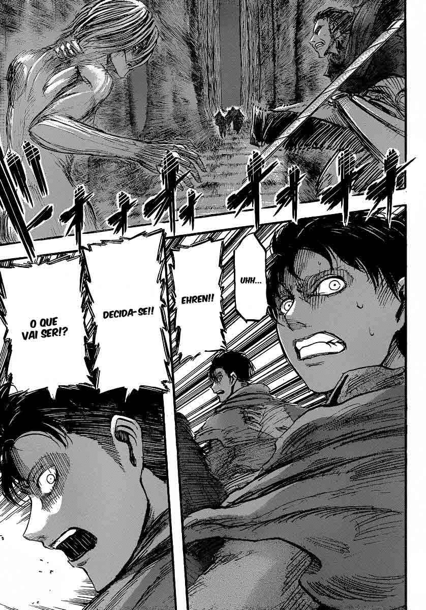 Capítulo 1 - Para Você, Após Dois Mil AnosCapítulo 2 - Aquele DiaCapítulo 3 - A Noite da GraduaçãoCapítulo 4 - Primeira BatalhaCapítulo 5 - Uma Fraca Luz em Meio ao DesesperoCapítulo 6 - O Mundo Que a Garota ViuCapítulo 7 - Lâmina PequenaCapítulo 8 - RugidoCapítulo 9 - Ouvindo as Batidas do CoraçãoCapítulo 10 - O Destino do Braço EsquerdoCapítulo 11 - RespostaCapítulo 12 - ÍconeCapítulo 13 - FeridaCapítulo 13.5Capítulo 14 - Desejo PrimordialCapítulo 15 - IndivíduosCapítulo 16 - NecessidadeCapítulo 17 - Força IlusóriaCapítulo 18 - O que Devo Fazer Agora?Capítulo 19 - Ainda Não VeemCapítulo 20 - Esquadrão de Operações EspeciaisCapítulo 21 - Abrem-se os PortõesCapítulo 22 - Formação de Detecção de Longo AlcanceCapítulo 22.5Capítulo 23 - A Titã FêmeaCapítulo 24 - A Floresta das Árvores GigantesCapítulo 25 - MordidaCapítulo 26 - Por um Caminho MelhorCapítulo 27 - Irvin SmithCapítulo 28 - Escolhas e ResultadosCapítulo 29 - Golpe de FerroCapítulo 30 - Os DerrotadosCapítulo 31 - SorrisoCapítulo 32 - ClemênciaCapítulo 33 - MuralhaCapítulo 34 - Os Guerreiros DançamCapítulo 35 - O Titã BestialCapítulo 36 - Estou em CasaCapítulo 37 - Ao SudesteCapítulo 38 - Castelo UtgardCapítulo 39 - SoldadoCapítulo 40 - YmirCapítulo 41 - HistoriaCapítulo 42 - GuerreiroCapítulo 43 - O Titã de ArmaduraCapítulo 44 - Golpear - Derrubar - DominarCapítulo 45 - Aqueles que PerseguemCapítulo 46 - AberturaCapítulo 47 - CriançasCapítulo 48 - AlguémCapítulo 49 - AtaqueCapítulo 50 - GritoCapítulo 50.5Capítulo 51 - Esquadrão LeviCapítulo 52 - Krista LenzCapítulo 53 - FumaçaCapítulo 54 - O Local do Contra-AtaqueCapítulo 55 - DorCapítulo 56 - AtoresCapítulo 57 - Kenny, o EstripadorCapítulo 58 - TiroteioCapítulo 59 - A Alma de um MonstroCapítulo 60 - ConfiançaCapítulo 61 - RespostasCapítulo 62 - CrimeCapítulo 63 - CorrentesCapítulo 64 - Festa de Boas VindasCapítulo 65 - Sonhos e MaldiçõesCapítulo 66 - DesejoCapítulo 67 - O Lado Externo do Distrito OrvudCapítulo 68 - O Rei da MuralhaCapítulo 69 - AmigosCapítulo 70 - Um Sonho do PassadoCapítulo 71 - EspectadorCapítulo 72 - A Noite da OperaçãoCapítulo 73 - A Cidade Onde Tudo ComeçouCapítulo 74 - Objetivos da MissãoCapítulo 75 - Duas Frentes de BatalhaCapítulo 76 - A Lança do TrovãoCapítulo 77 - O Mundo Que Eles ViramCapítulo 78 - VisitaCapítulo 79 - Jogo PerfeitoCapítulo 80 - Os Soldados DesconhecidosCapítulo 81 - PromessaCapítulo 82 - HeróiCapítulo 83 - Golpe de MachadoCapítulo 84 - Sol da Meia NoiteCapítulo 85 - PorãoCapítulo 86 - Aquele DiaCapítulo 87 - FronteiraCapítulo 88 - Ataque dos TitãsCapítulo 89 - ReuniãoCapítulo 90 - Para o Outro Lado da MuralhaCapítulo 91 - O Outro Lado do OceanoCapítulo 92 - Soldados de MarleyCapítulo 93 - Trem da Noite EscuraCapítulo 94 - O Garoto Dentro do MuroCapítulo 95 - MentirosoCapítulo 96 - O Portão da EsperançaCapítulo 97 - De Uma Mão para a OutraCapítulo 98 - Que BomCapítulo 99 - A Sombra de Uma Consciência CulpadaCapítulo 100 - Declaração de GuerraCapítulo 101 - O Gigante do Martelo de GuerraCapítulo 102 - E Tarde DemaisCapítulo 103 - AtaqueCapítulo 104 - VitoriososCapítulo 105 - A Bala do AssassinoCapítulo 106 - Soldados VoluntáriosCapítulo 107 - VisitanteCapítulo 108 - Um Bom ArgumentoCapítulo 109 - Aqueles Que GuiamCapítulo 110 - ImpostorCapítulo 111 - Crianças da FlorestaCapítulo 112 - IgnorânciaCapítulo 113 - ViolênciaCapítulo 114 - Única SalvaçãoCapítulo 115 - SuporteCapítulo 116 - Céu e TerraCapítulo 117 - JulgamentoCapítulo 118 - Ataque SurpresaCapítulo 119 - Irmãos Mais Velhos, Irmãos Mais NovosCapítulo 120 - Um Breve InstanteCapítulo 120 - InstanteCapítulo 121 - Memórias do FuturoCapítulo 121 - Memórias futurasCapítulo 122 - De Você 2000 Anos AtrásCapítulo 122 - De você, há 2000 anos.Capítulo 123 - Os demônios da ilhaCapítulo 123 - Demônios da ilhaCapítulo 124 - DerretimentoCapítulo 124 - DescongelamentoCapítulo 125 - Pôr do SolCapítulo 126 - OrgulhoCapítulo 126 - OrgulhoCapítulo 127 - Noite da Véspera do FimCapítulo 128 - TraidorCapítulo 129 - RetrospectivaCapítulo 130 - O amanhecer da humanidadeCapítulo 130 - Amanhecer Para a HumanidadeCapítulo 131 - EstrondoCapítulo 131 - O EstrondoCapítulo 132 - Asas da LiberdadeCapítulo 132 - As asas da liberdadeCapítulo 133 - PecadoresCapítulo 133 - PecadoresCapítulo 134 - Nas Profundezas do DesesperoCapítulo 135 - Batalha do Céu e da TerraCapítulo 135 - Batalha do Céu e da TerraCapítulo 136 - Dediquem Seus CoraçõesCapítulo 137 - TitãsCapítulo 138 - Um Longo SonhoCapítulo 139 - Em Direção a Árvore Naquela Colina