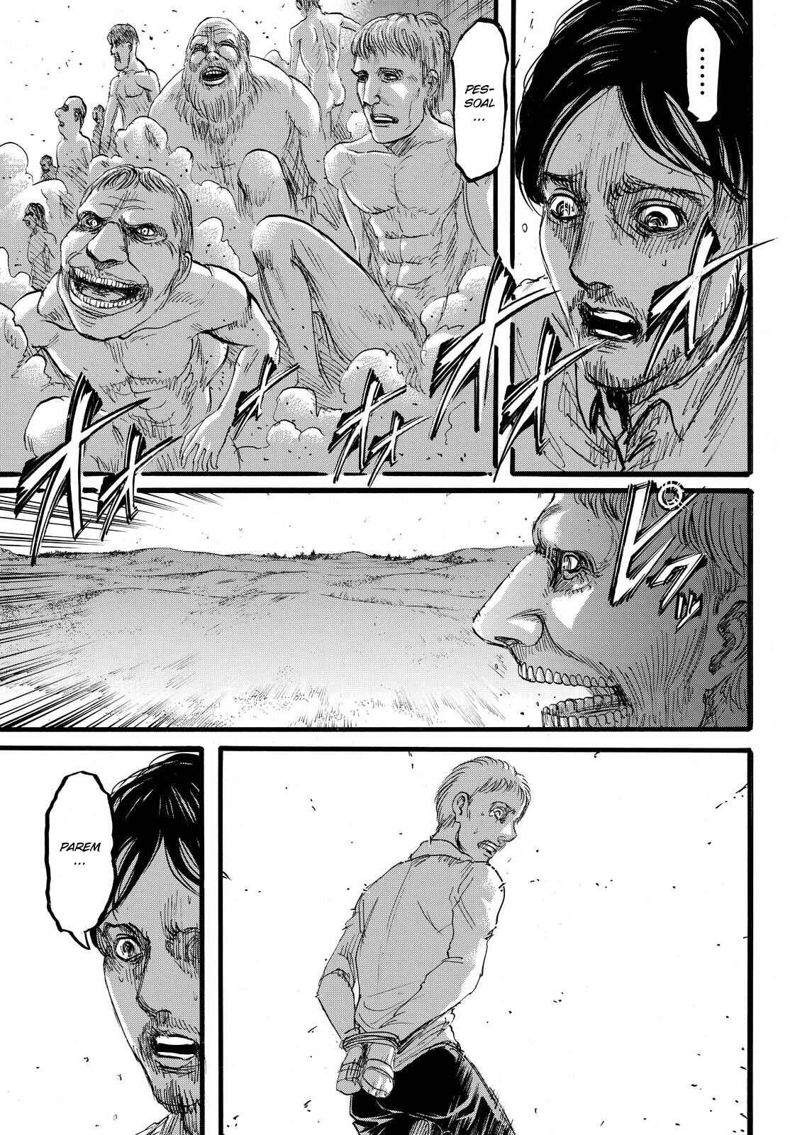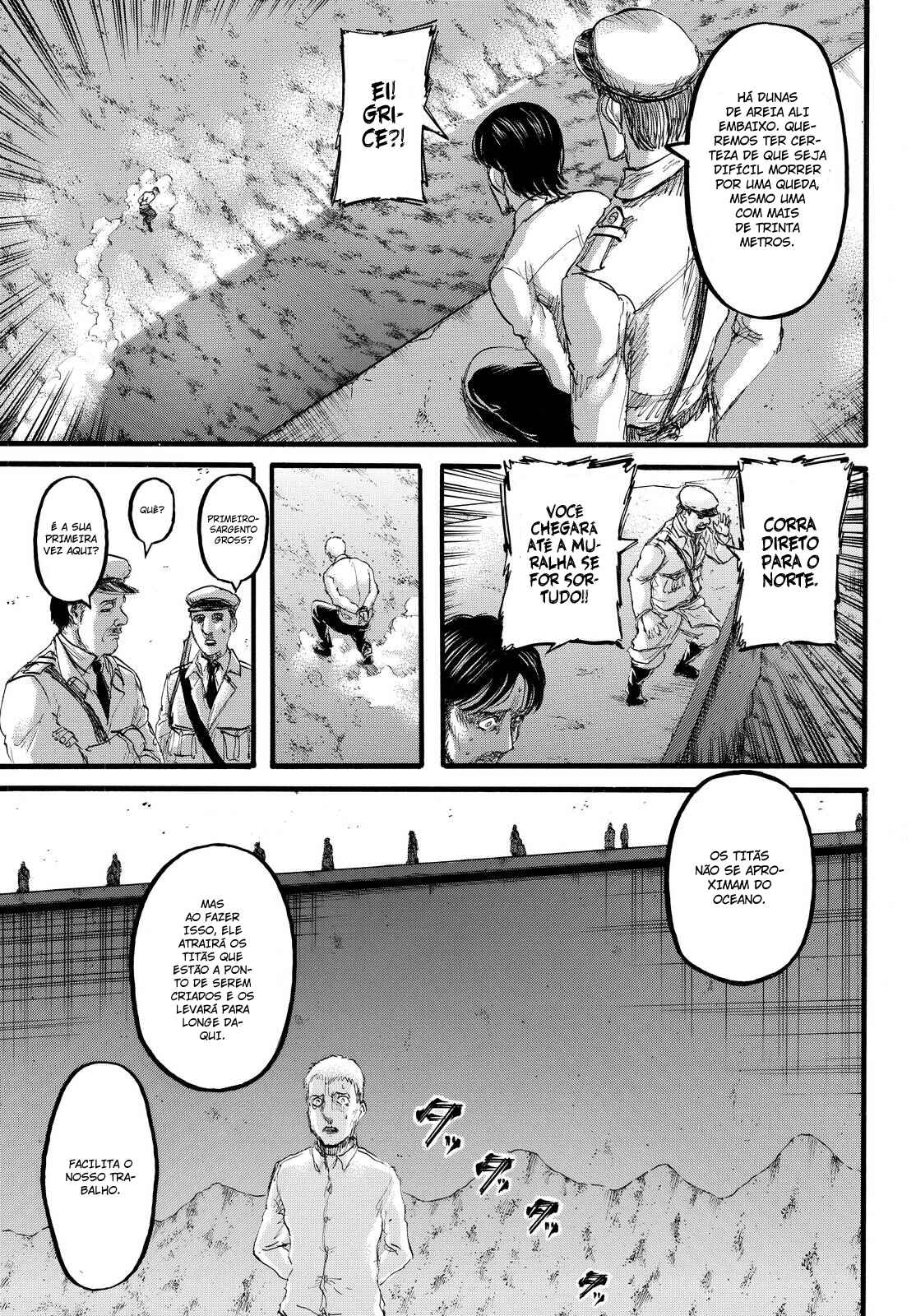 Capítulo 1 - Para Você, Após Dois Mil AnosCapítulo 2 - Aquele DiaCapítulo 3 - A Noite da GraduaçãoCapítulo 4 - Primeira BatalhaCapítulo 5 - Uma Fraca Luz em Meio ao DesesperoCapítulo 6 - O Mundo Que a Garota ViuCapítulo 7 - Lâmina PequenaCapítulo 8 - RugidoCapítulo 9 - Ouvindo as Batidas do CoraçãoCapítulo 10 - O Destino do Braço EsquerdoCapítulo 11 - RespostaCapítulo 12 - ÍconeCapítulo 13 - FeridaCapítulo 13.5Capítulo 14 - Desejo PrimordialCapítulo 15 - IndivíduosCapítulo 16 - NecessidadeCapítulo 17 - Força IlusóriaCapítulo 18 - O que Devo Fazer Agora?Capítulo 19 - Ainda Não VeemCapítulo 20 - Esquadrão de Operações EspeciaisCapítulo 21 - Abrem-se os PortõesCapítulo 22 - Formação de Detecção de Longo AlcanceCapítulo 22.5Capítulo 23 - A Titã FêmeaCapítulo 24 - A Floresta das Árvores GigantesCapítulo 25 - MordidaCapítulo 26 - Por um Caminho MelhorCapítulo 27 - Irvin SmithCapítulo 28 - Escolhas e ResultadosCapítulo 29 - Golpe de FerroCapítulo 30 - Os DerrotadosCapítulo 31 - SorrisoCapítulo 32 - ClemênciaCapítulo 33 - MuralhaCapítulo 34 - Os Guerreiros DançamCapítulo 35 - O Titã BestialCapítulo 36 - Estou em CasaCapítulo 37 - Ao SudesteCapítulo 38 - Castelo UtgardCapítulo 39 - SoldadoCapítulo 40 - YmirCapítulo 41 - HistoriaCapítulo 42 - GuerreiroCapítulo 43 - O Titã de ArmaduraCapítulo 44 - Golpear - Derrubar - DominarCapítulo 45 - Aqueles que PerseguemCapítulo 46 - AberturaCapítulo 47 - CriançasCapítulo 48 - AlguémCapítulo 49 - AtaqueCapítulo 50 - GritoCapítulo 50.5Capítulo 51 - Esquadrão LeviCapítulo 52 - Krista LenzCapítulo 53 - FumaçaCapítulo 54 - O Local do Contra-AtaqueCapítulo 55 - DorCapítulo 56 - AtoresCapítulo 57 - Kenny, o EstripadorCapítulo 58 - TiroteioCapítulo 59 - A Alma de um MonstroCapítulo 60 - ConfiançaCapítulo 61 - RespostasCapítulo 62 - CrimeCapítulo 63 - CorrentesCapítulo 64 - Festa de Boas VindasCapítulo 65 - Sonhos e MaldiçõesCapítulo 66 - DesejoCapítulo 67 - O Lado Externo do Distrito OrvudCapítulo 68 - O Rei da MuralhaCapítulo 69 - AmigosCapítulo 70 - Um Sonho do PassadoCapítulo 71 - EspectadorCapítulo 72 - A Noite da OperaçãoCapítulo 73 - A Cidade Onde Tudo ComeçouCapítulo 74 - Objetivos da MissãoCapítulo 75 - Duas Frentes de BatalhaCapítulo 76 - A Lança do TrovãoCapítulo 77 - O Mundo Que Eles ViramCapítulo 78 - VisitaCapítulo 79 - Jogo PerfeitoCapítulo 80 - Os Soldados DesconhecidosCapítulo 81 - PromessaCapítulo 82 - HeróiCapítulo 83 - Golpe de MachadoCapítulo 84 - Sol da Meia NoiteCapítulo 85 - PorãoCapítulo 86 - Aquele DiaCapítulo 87 - FronteiraCapítulo 88 - Ataque dos TitãsCapítulo 89 - ReuniãoCapítulo 90 - Para o Outro Lado da MuralhaCapítulo 91 - O Outro Lado do OceanoCapítulo 92 - Soldados de MarleyCapítulo 93 - Trem da Noite EscuraCapítulo 94 - O Garoto Dentro do MuroCapítulo 95 - MentirosoCapítulo 96 - O Portão da EsperançaCapítulo 97 - De Uma Mão para a OutraCapítulo 98 - Que BomCapítulo 99 - A Sombra de Uma Consciência CulpadaCapítulo 100 - Declaração de GuerraCapítulo 101 - O Gigante do Martelo de GuerraCapítulo 102 - E Tarde DemaisCapítulo 103 - AtaqueCapítulo 104 - VitoriososCapítulo 105 - A Bala do AssassinoCapítulo 106 - Soldados VoluntáriosCapítulo 107 - VisitanteCapítulo 108 - Um Bom ArgumentoCapítulo 109 - Aqueles Que GuiamCapítulo 110 - ImpostorCapítulo 111 - Crianças da FlorestaCapítulo 112 - IgnorânciaCapítulo 113 - ViolênciaCapítulo 114 - Única SalvaçãoCapítulo 115 - SuporteCapítulo 116 - Céu e TerraCapítulo 117 - JulgamentoCapítulo 118 - Ataque SurpresaCapítulo 119 - Irmãos Mais Velhos, Irmãos Mais NovosCapítulo 120 - Um Breve InstanteCapítulo 120 - InstanteCapítulo 121 - Memórias do FuturoCapítulo 121 - Memórias futurasCapítulo 122 - De Você 2000 Anos AtrásCapítulo 122 - De você, há 2000 anos.Capítulo 123 - Os demônios da ilhaCapítulo 123 - Demônios da ilhaCapítulo 124 - DerretimentoCapítulo 124 - DescongelamentoCapítulo 125 - Pôr do SolCapítulo 126 - OrgulhoCapítulo 126 - OrgulhoCapítulo 127 - Noite da Véspera do FimCapítulo 128 - TraidorCapítulo 129 - RetrospectivaCapítulo 130 - O amanhecer da humanidadeCapítulo 130 - Amanhecer Para a HumanidadeCapítulo 131 - EstrondoCapítulo 131 - O EstrondoCapítulo 132 - Asas da LiberdadeCapítulo 132 - As asas da liberdadeCapítulo 133 - PecadoresCapítulo 133 - PecadoresCapítulo 134 - Nas Profundezas do DesesperoCapítulo 135 - Batalha do Céu e da TerraCapítulo 135 - Batalha do Céu e da TerraCapítulo 136 - Dediquem Seus CoraçõesCapítulo 137 - TitãsCapítulo 138 - Um Longo SonhoCapítulo 139 - Em Direção a Árvore Naquela Colina