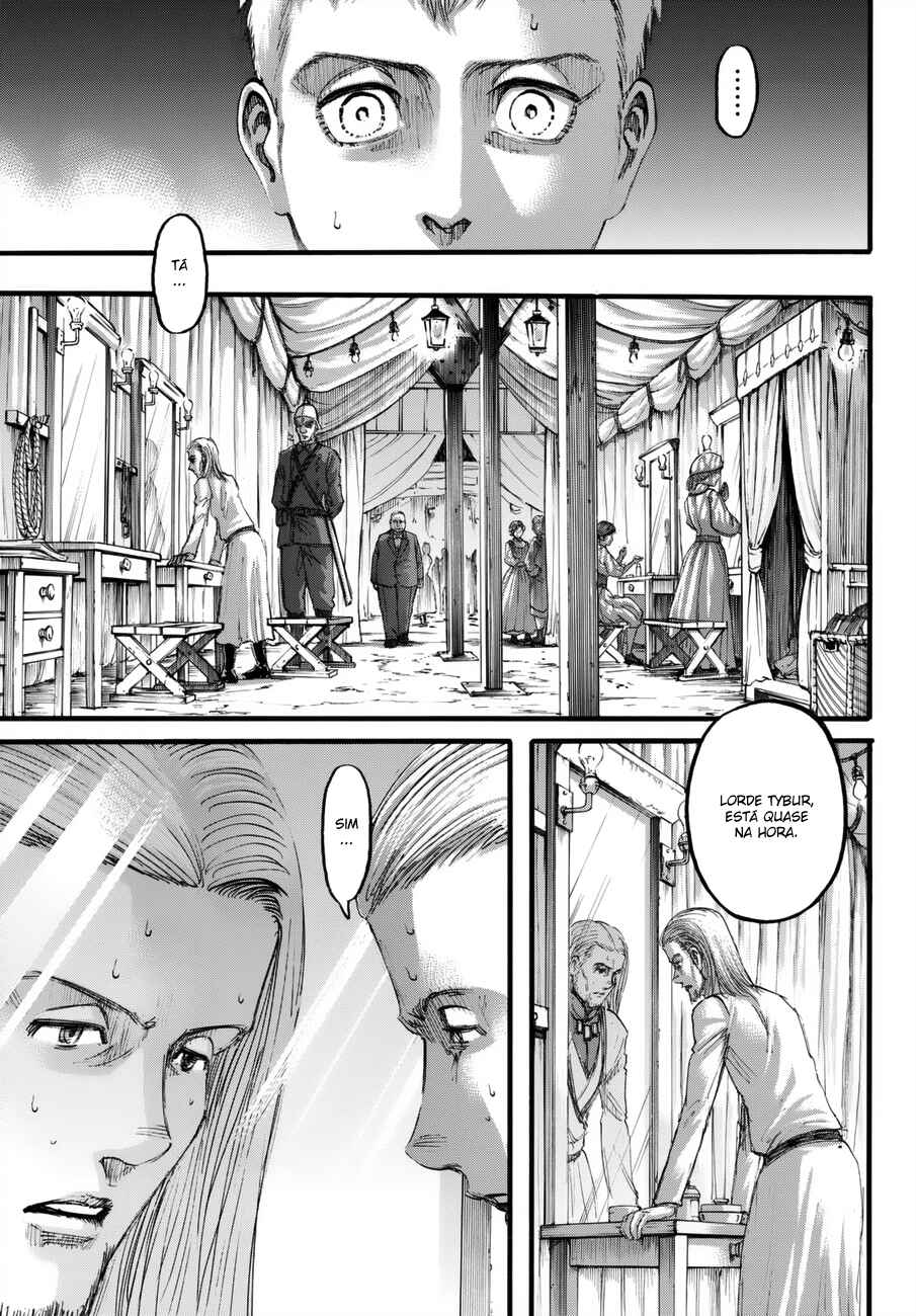 Capítulo 1 - Para Você, Após Dois Mil AnosCapítulo 2 - Aquele DiaCapítulo 3 - A Noite da GraduaçãoCapítulo 4 - Primeira BatalhaCapítulo 5 - Uma Fraca Luz em Meio ao DesesperoCapítulo 6 - O Mundo Que a Garota ViuCapítulo 7 - Lâmina PequenaCapítulo 8 - RugidoCapítulo 9 - Ouvindo as Batidas do CoraçãoCapítulo 10 - O Destino do Braço EsquerdoCapítulo 11 - RespostaCapítulo 12 - ÍconeCapítulo 13 - FeridaCapítulo 13.5Capítulo 14 - Desejo PrimordialCapítulo 15 - IndivíduosCapítulo 16 - NecessidadeCapítulo 17 - Força IlusóriaCapítulo 18 - O que Devo Fazer Agora?Capítulo 19 - Ainda Não VeemCapítulo 20 - Esquadrão de Operações EspeciaisCapítulo 21 - Abrem-se os PortõesCapítulo 22 - Formação de Detecção de Longo AlcanceCapítulo 22.5Capítulo 23 - A Titã FêmeaCapítulo 24 - A Floresta das Árvores GigantesCapítulo 25 - MordidaCapítulo 26 - Por um Caminho MelhorCapítulo 27 - Irvin SmithCapítulo 28 - Escolhas e ResultadosCapítulo 29 - Golpe de FerroCapítulo 30 - Os DerrotadosCapítulo 31 - SorrisoCapítulo 32 - ClemênciaCapítulo 33 - MuralhaCapítulo 34 - Os Guerreiros DançamCapítulo 35 - O Titã BestialCapítulo 36 - Estou em CasaCapítulo 37 - Ao SudesteCapítulo 38 - Castelo UtgardCapítulo 39 - SoldadoCapítulo 40 - YmirCapítulo 41 - HistoriaCapítulo 42 - GuerreiroCapítulo 43 - O Titã de ArmaduraCapítulo 44 - Golpear - Derrubar - DominarCapítulo 45 - Aqueles que PerseguemCapítulo 46 - AberturaCapítulo 47 - CriançasCapítulo 48 - AlguémCapítulo 49 - AtaqueCapítulo 50 - GritoCapítulo 50.5Capítulo 51 - Esquadrão LeviCapítulo 52 - Krista LenzCapítulo 53 - FumaçaCapítulo 54 - O Local do Contra-AtaqueCapítulo 55 - DorCapítulo 56 - AtoresCapítulo 57 - Kenny, o EstripadorCapítulo 58 - TiroteioCapítulo 59 - A Alma de um MonstroCapítulo 60 - ConfiançaCapítulo 61 - RespostasCapítulo 62 - CrimeCapítulo 63 - CorrentesCapítulo 64 - Festa de Boas VindasCapítulo 65 - Sonhos e MaldiçõesCapítulo 66 - DesejoCapítulo 67 - O Lado Externo do Distrito OrvudCapítulo 68 - O Rei da MuralhaCapítulo 69 - AmigosCapítulo 70 - Um Sonho do PassadoCapítulo 71 - EspectadorCapítulo 72 - A Noite da OperaçãoCapítulo 73 - A Cidade Onde Tudo ComeçouCapítulo 74 - Objetivos da MissãoCapítulo 75 - Duas Frentes de BatalhaCapítulo 76 - A Lança do TrovãoCapítulo 77 - O Mundo Que Eles ViramCapítulo 78 - VisitaCapítulo 79 - Jogo PerfeitoCapítulo 80 - Os Soldados DesconhecidosCapítulo 81 - PromessaCapítulo 82 - HeróiCapítulo 83 - Golpe de MachadoCapítulo 84 - Sol da Meia NoiteCapítulo 85 - PorãoCapítulo 86 - Aquele DiaCapítulo 87 - FronteiraCapítulo 88 - Ataque dos TitãsCapítulo 89 - ReuniãoCapítulo 90 - Para o Outro Lado da MuralhaCapítulo 91 - O Outro Lado do OceanoCapítulo 92 - Soldados de MarleyCapítulo 93 - Trem da Noite EscuraCapítulo 94 - O Garoto Dentro do MuroCapítulo 95 - MentirosoCapítulo 96 - O Portão da EsperançaCapítulo 97 - De Uma Mão para a OutraCapítulo 98 - Que BomCapítulo 99 - A Sombra de Uma Consciência CulpadaCapítulo 100 - Declaração de GuerraCapítulo 101 - O Gigante do Martelo de GuerraCapítulo 102 - E Tarde DemaisCapítulo 103 - AtaqueCapítulo 104 - VitoriososCapítulo 105 - A Bala do AssassinoCapítulo 106 - Soldados VoluntáriosCapítulo 107 - VisitanteCapítulo 108 - Um Bom ArgumentoCapítulo 109 - Aqueles Que GuiamCapítulo 110 - ImpostorCapítulo 111 - Crianças da FlorestaCapítulo 112 - IgnorânciaCapítulo 113 - ViolênciaCapítulo 114 - Única SalvaçãoCapítulo 115 - SuporteCapítulo 116 - Céu e TerraCapítulo 117 - JulgamentoCapítulo 118 - Ataque SurpresaCapítulo 119 - Irmãos Mais Velhos, Irmãos Mais NovosCapítulo 120 - Um Breve InstanteCapítulo 120 - InstanteCapítulo 121 - Memórias do FuturoCapítulo 121 - Memórias futurasCapítulo 122 - De Você 2000 Anos AtrásCapítulo 122 - De você, há 2000 anos.Capítulo 123 - Os demônios da ilhaCapítulo 123 - Demônios da ilhaCapítulo 124 - DerretimentoCapítulo 124 - DescongelamentoCapítulo 125 - Pôr do SolCapítulo 126 - OrgulhoCapítulo 126 - OrgulhoCapítulo 127 - Noite da Véspera do FimCapítulo 128 - TraidorCapítulo 129 - RetrospectivaCapítulo 130 - O amanhecer da humanidadeCapítulo 130 - Amanhecer Para a HumanidadeCapítulo 131 - EstrondoCapítulo 131 - O EstrondoCapítulo 132 - Asas da LiberdadeCapítulo 132 - As asas da liberdadeCapítulo 133 - PecadoresCapítulo 133 - PecadoresCapítulo 134 - Nas Profundezas do DesesperoCapítulo 135 - Batalha do Céu e da TerraCapítulo 135 - Batalha do Céu e da TerraCapítulo 136 - Dediquem Seus CoraçõesCapítulo 137 - TitãsCapítulo 138 - Um Longo SonhoCapítulo 139 - Em Direção a Árvore Naquela Colina