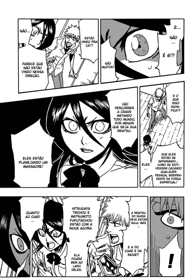Capítulo 1 - Morte & MorangoCapítulo 2 - InicianteCapítulo 3 - Batendo CabeçaCapítulo 4 - POR QUE VOCÊ COME ISSO?Capítulo 5 - Cego - cegoCapítulo 6 - pequena quebra.Capítulo 7 - O Periquito de Bochechas RosasCapítulo 8 - Persiga o ChadCapítulo 9 - Monstro e uma Transferência [Golpe Baixo]Capítulo 10 - Monstro e uma Transferência 2 [o Fruto da Morte]Capítulo 11 - De Volta [Bomba Sanguessuga ou Mãe]Capítulo 12 - O Portão do FimCapítulo 13 - MAU PADRÃOCapítulo 14 - Perturbação Escolar!!!Capítulo 15 - Macaco Saltitante, EletrizadoCapítulo 16 - Desperdiçado mas DesejadoCapítulo 17 - 17 de JunhoCapítulo 18 - 17 de Junho 2 "Sem Sorrir, Sem Culpa"Capítulo 19 - 17 de Junho 3 "memórias na chuva"Capítulo 20 - 17 de Junho 4 "encare novamente"Capítulo 21 - 17 de Junho 5 "Garoto Lutador"Capítulo 22 - 17 de Junho 6 "BATALHA NO CEMITÉRIO"Capítulo 23 - 17 de Junho 7 "Intenção Afiada, Lâmina Estúpida"Capítulo 24 - 17 de Junho 8 "Todo O Caminho à Simpatia"Capítulo 25 - 17 de Junho 9 "Garoto Lutador 2 [O Blues do Charuto Mix]"Capítulo 26 - Paraíso Fica em Lugar NenhumCapítulo 27 - Espíritos Não Estão Sempre CONOSCOCapítulo 28 - Sintoma de SinestesiaCapítulo 29 - Pare aquele estúpido!!Capítulo 30 - Segundo Contato (isso estava fora de nossa compreensão)Capítulo 31 - HERÓIS PODEM SALVAR VOCÊCapítulo 32 - Herói está Sempre Comigo?Capítulo 33 - FUTURO VIBRANTE 7Capítulo 34 - Arqueiro Quincy Odeia VocêCapítulo 35 - Quer Ser Meu Inimigo?Capítulo 36 - Em Nome da Vingança, Nos Leve à MorteCapítulo 37 - Cruzando a LinhaCapítulo 38 - CURVADOCapítulo 39 - Braço Direito do GiganteCapítulo 40 - Crescer?Capítulo 41 - Princesa & DragãoCapítulo 42 - Princesa & Dragão 2: "O Majestoso"Capítulo 43 - Princesa & Dragão 3: "Seis Flores"Capítulo 44 - Despertar [para a Ameaça]Capítulo 45 - Ponto de FinalidadeCapítulo 46 - Karneades ~ Costa-a-CostaCapítulo 47 - Costa-a-Costa ~ Céu DislaceradoCapítulo 48 - Menos GrandeCapítulo 49 - desacorrentadoCapítulo 50 - Arqueiro Quincy Odeia Você 2 [Cego Mas Sangrando Mix]Capítulo 51 - MORTE 3Capítulo 52 - Emoções DesnecessáriasCapítulo 53 - Prazer em conhecê-lo, vou te derrotarCapítulo 54 - O Novato que nem Pergunta o NomeCapítulo 55 - FECHADOCapítulo 56 - código quebradoCapítulo 57 - Infindável Chuva de JulhoCapítulo 58 - vazioCapítulo 59 - Lição 1: Um Golpe! + Prisioneiro em CasaCapítulo 60 - Lição 1-2: DETONADO!!Capítulo 61 - Lição 2: Eixo quebradoCapítulo 62 - Lição 2-2: Péssimo Fim no EixoCapítulo 63 - Lição 2-3: Colapso do Cicuito InternoCapítulo 64 - RETORNO EM PRETOCapítulo 65 - ColisõesCapítulo 66 - A ESPADA E EUCapítulo 67 - Fim das LiçõesCapítulo 68 - Últimas Férias de VerãoCapítulo 69 - 25:00 reuniãoCapítulo 70 - Onde os Hollows Temem PisarCapítulo 71 - INTRUSOZCapítulo 72 - O SupergrupoCapítulo 73 - Chuva de MachadosCapítulo 74 - Braço Perdido, Braço PerdidoCapítulo 75 - Chuva de SangueCapítulo 76 - Piloto de Javali ChegandoCapítulo 77 - Meu Nome é Ganju-samaCapítulo 78 - reuniãO nO porãOCapítulo 79 - QUATORZE DIAS PARA A CONSPIRAÇÃOCapítulo 80 - O Projeto Estrela CadenteCapítulo 81 - Reunião de Doze TonsCapítulo 82 - Composição do ConflitoCapítulo 83 - VENHA COMIGOCapítulo 84 - O Projeto Estrela Cadente 2 [Tatuagem No Céu]Capítulo 85 - INTRUSOZ 2 [Arrombando o telhado mix]Capítulo 86 - Estabelecendo Boas Relações, CERTO?Capítulo 87 - Dançando com LançasCapítulo 88 - SOMOS TÃO AZARADOSCapítulo 89 - Magistral! E Adeus!Capítulo 90 - Vejo Você Sob Fogos de ArtifícioCapítulo 91 - REI PROTETOR DA LIBERDADECapítulo 92 - Magistral! E Adeus! [Reprise]Capítulo 93 - Dirigindo-se para a EstrelaCapítulo 94 - Cadeia Chamada RemorsoCapítulo 95 - COLISÃOCapítulo 96 - CONFLITO SANGRENTOCapítulo 97 - Fale Sobre Seu MedoCapítulo 98 - A Estrela e o Vira-LataCapítulo 99 - Negra Nuvem de Guerra MortalCapítulo 100 - Como a Flor de um PrecipícioCapítulo 101 - Divisão Sob a Base VermelhaCapítulo 102 - Ninguém DerrubaCapítulo 103 - SoberaniaCapítulo 104 - O Morto-vivoCapítulo 105 - Pule, Pule, Encontre o TigreCapítulo 106 - Razão do ConfrontoCapítulo 107 - Paixão na ConfiançaCapítulo 108 - Tempo de PânicoCapítulo 109 - Como um Tigre Tentando Não Esmagar as FloresCapítulo 110 - Lado Negro do UniversoCapítulo 111 - Preto & BrancoCapítulo 112 - O Morto-vivo 2 [Ascensão & Loucura]Capítulo 113 - O Morto-vivo 3 [Acabando com a Loucura]Capítulo 114 - Tudo Sobre o Mundo que DesmoronaCapítulo 115 - RemanescênciasCapítulo 116 - Abalo à Torre BrancaCapítulo 117 - Remanescências 2 [Negação à Sombra]Capítulo 118 - O Elo CelestialCapítulo 119 - Segredo da LuaCapítulo 120 - Aperto de Mãos com GranadasCapítulo 121 - Confiamos na SanidadeCapítulo 122 - Não Perca o ControleCapítulo 123 - Juro pelo Meu OrgulhoCapítulo 124 - Pequenas Pessoas ChorandoCapítulo 125 - Insano & GenialCapítulo 126 - O Último de uma Guerra sem SentidoCapítulo 127 - Começo da Morte do AmanhãCapítulo 128 - O Grande Esforço ColetivoCapítulo 129 - Suspeita [de Assassinato]Capítulo 130 - Suspeita 2 [de Fazer Chorar]Capítulo 131 - O Verdadeiro DesejoCapítulo 132 - Limite AssustadorCapítulo 133 - memórias na chuva 2 "o noturno"Capítulo 134 - memórias na chuva 2 - 2 "Ânsia pelo Santuário"Capítulo 135 - memórias na chuva 2 - 3 "Afetados Pela Noite"Capítulo 136 - memórias na chuva 2 - 4 "noite do arrependimento"Capítulo 137 - Cerco ApertadoCapítulo 138 - Pensamentos IndividuaisCapítulo 139 - Cansado, Ensanguentado, LoucoCapítulo 140 - Mordida na LuaCapítulo 141 - Ajoelhe-se para o Rei dos BabuínosCapítulo 142 - Para Aqueles que Capturam a LuaCapítulo 143 - Almas ArdentesCapítulo 144 - Mais Vermelho que uma Rosa, Mais Branco que um LírioCapítulo 145 - AgitadoCapítulo 146 - Demônio Adora as TrevasCapítulo 147 - Contagem Regressiva para o Fim: 3 [Luz Cega, Batida Surda]Capítulo 148 - Contagem Regressiva par