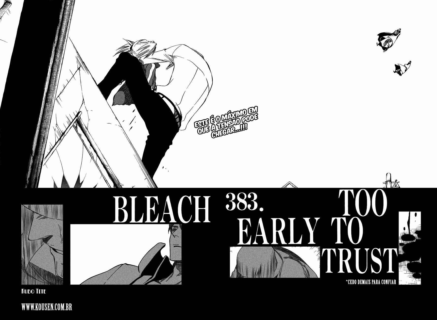 Capítulo 1 - Morte & MorangoCapítulo 2 - InicianteCapítulo 3 - Batendo CabeçaCapítulo 4 - POR QUE VOCÊ COME ISSO?Capítulo 5 - Cego - cegoCapítulo 6 - pequena quebra.Capítulo 7 - O Periquito de Bochechas RosasCapítulo 8 - Persiga o ChadCapítulo 9 - Monstro e uma Transferência [Golpe Baixo]Capítulo 10 - Monstro e uma Transferência 2 [o Fruto da Morte]Capítulo 11 - De Volta [Bomba Sanguessuga ou Mãe]Capítulo 12 - O Portão do FimCapítulo 13 - MAU PADRÃOCapítulo 14 - Perturbação Escolar!!!Capítulo 15 - Macaco Saltitante, EletrizadoCapítulo 16 - Desperdiçado mas DesejadoCapítulo 17 - 17 de JunhoCapítulo 18 - 17 de Junho 2 "Sem Sorrir, Sem Culpa"Capítulo 19 - 17 de Junho 3 "memórias na chuva"Capítulo 20 - 17 de Junho 4 "encare novamente"Capítulo 21 - 17 de Junho 5 "Garoto Lutador"Capítulo 22 - 17 de Junho 6 "BATALHA NO CEMITÉRIO"Capítulo 23 - 17 de Junho 7 "Intenção Afiada, Lâmina Estúpida"Capítulo 24 - 17 de Junho 8 "Todo O Caminho à Simpatia"Capítulo 25 - 17 de Junho 9 "Garoto Lutador 2 [O Blues do Charuto Mix]"Capítulo 26 - Paraíso Fica em Lugar NenhumCapítulo 27 - Espíritos Não Estão Sempre CONOSCOCapítulo 28 - Sintoma de SinestesiaCapítulo 29 - Pare aquele estúpido!!Capítulo 30 - Segundo Contato (isso estava fora de nossa compreensão)Capítulo 31 - HERÓIS PODEM SALVAR VOCÊCapítulo 32 - Herói está Sempre Comigo?Capítulo 33 - FUTURO VIBRANTE 7Capítulo 34 - Arqueiro Quincy Odeia VocêCapítulo 35 - Quer Ser Meu Inimigo?Capítulo 36 - Em Nome da Vingança, Nos Leve à MorteCapítulo 37 - Cruzando a LinhaCapítulo 38 - CURVADOCapítulo 39 - Braço Direito do GiganteCapítulo 40 - Crescer?Capítulo 41 - Princesa & DragãoCapítulo 42 - Princesa & Dragão 2: "O Majestoso"Capítulo 43 - Princesa & Dragão 3: "Seis Flores"Capítulo 44 - Despertar [para a Ameaça]Capítulo 45 - Ponto de FinalidadeCapítulo 46 - Karneades ~ Costa-a-CostaCapítulo 47 - Costa-a-Costa ~ Céu DislaceradoCapítulo 48 - Menos GrandeCapítulo 49 - desacorrentadoCapítulo 50 - Arqueiro Quincy Odeia Você 2 [Cego Mas Sangrando Mix]Capítulo 51 - MORTE 3Capítulo 52 - Emoções DesnecessáriasCapítulo 53 - Prazer em conhecê-lo, vou te derrotarCapítulo 54 - O Novato que nem Pergunta o NomeCapítulo 55 - FECHADOCapítulo 56 - código quebradoCapítulo 57 - Infindável Chuva de JulhoCapítulo 58 - vazioCapítulo 59 - Lição 1: Um Golpe! + Prisioneiro em CasaCapítulo 60 - Lição 1-2: DETONADO!!Capítulo 61 - Lição 2: Eixo quebradoCapítulo 62 - Lição 2-2: Péssimo Fim no EixoCapítulo 63 - Lição 2-3: Colapso do Cicuito InternoCapítulo 64 - RETORNO EM PRETOCapítulo 65 - ColisõesCapítulo 66 - A ESPADA E EUCapítulo 67 - Fim das LiçõesCapítulo 68 - Últimas Férias de VerãoCapítulo 69 - 25:00 reuniãoCapítulo 70 - Onde os Hollows Temem PisarCapítulo 71 - INTRUSOZCapítulo 72 - O SupergrupoCapítulo 73 - Chuva de MachadosCapítulo 74 - Braço Perdido, Braço PerdidoCapítulo 75 - Chuva de SangueCapítulo 76 - Piloto de Javali ChegandoCapítulo 77 - Meu Nome é Ganju-samaCapítulo 78 - reuniãO nO porãOCapítulo 79 - QUATORZE DIAS PARA A CONSPIRAÇÃOCapítulo 80 - O Projeto Estrela CadenteCapítulo 81 - Reunião de Doze TonsCapítulo 82 - Composição do ConflitoCapítulo 83 - VENHA COMIGOCapítulo 84 - O Projeto Estrela Cadente 2 [Tatuagem No Céu]Capítulo 85 - INTRUSOZ 2 [Arrombando o telhado mix]Capítulo 86 - Estabelecendo Boas Relações, CERTO?Capítulo 87 - Dançando com LançasCapítulo 88 - SOMOS TÃO AZARADOSCapítulo 89 - Magistral! E Adeus!Capítulo 90 - Vejo Você Sob Fogos de ArtifícioCapítulo 91 - REI PROTETOR DA LIBERDADECapítulo 92 - Magistral! E Adeus! [Reprise]Capítulo 93 - Dirigindo-se para a EstrelaCapítulo 94 - Cadeia Chamada RemorsoCapítulo 95 - COLISÃOCapítulo 96 - CONFLITO SANGRENTOCapítulo 97 - Fale Sobre Seu MedoCapítulo 98 - A Estrela e o Vira-LataCapítulo 99 - Negra Nuvem de Guerra MortalCapítulo 100 - Como a Flor de um PrecipícioCapítulo 101 - Divisão Sob a Base VermelhaCapítulo 102 - Ninguém DerrubaCapítulo 103 - SoberaniaCapítulo 104 - O Morto-vivoCapítulo 105 - Pule, Pule, Encontre o TigreCapítulo 106 - Razão do ConfrontoCapítulo 107 - Paixão na ConfiançaCapítulo 108 - Tempo de PânicoCapítulo 109 - Como um Tigre Tentando Não Esmagar as FloresCapítulo 110 - Lado Negro do UniversoCapítulo 111 - Preto & BrancoCapítulo 112 - O Morto-vivo 2 [Ascensão & Loucura]Capítulo 113 - O Morto-vivo 3 [Acabando com a Loucura]Capítulo 114 - Tudo Sobre o Mundo que DesmoronaCapítulo 115 - RemanescênciasCapítulo 116 - Abalo à Torre BrancaCapítulo 117 - Remanescências 2 [Negação à Sombra]Capítulo 118 - O Elo CelestialCapítulo 119 - Segredo da LuaCapítulo 120 - Aperto de Mãos com GranadasCapítulo 121 - Confiamos na SanidadeCapítulo 122 - Não Perca o ControleCapítulo 123 - Juro pelo Meu OrgulhoCapítulo 124 - Pequenas Pessoas ChorandoCapítulo 125 - Insano & GenialCapítulo 126 - O Último de uma Guerra sem SentidoCapítulo 127 - Começo da Morte do AmanhãCapítulo 128 - O Grande Esforço ColetivoCapítulo 129 - Suspeita [de Assassinato]Capítulo 130 - Suspeita 2 [de Fazer Chorar]Capítulo 131 - O Verdadeiro DesejoCapítulo 132 - Limite AssustadorCapítulo 133 - memórias na chuva 2 "o noturno"Capítulo 134 - memórias na chuva 2 - 2 "Ânsia pelo Santuário"Capítulo 135 - memórias na chuva 2 - 3 "Afetados Pela Noite"Capítulo 136 - memórias na chuva 2 - 4 "noite do arrependimento"Capítulo 137 - Cerco ApertadoCapítulo 138 - Pensamentos IndividuaisCapítulo 139 - Cansado, Ensanguentado, LoucoCapítulo 140 - Mordida na LuaCapítulo 141 - Ajoelhe-se para o Rei dos BabuínosCapítulo 142 - Para Aqueles que Capturam a LuaCapítulo 143 - Almas ArdentesCapítulo 144 - Mais Vermelho que uma Rosa, Mais Branco que um LírioCapítulo 145 - AgitadoCapítulo 146 - Demônio Adora as TrevasCapítulo 147 - Contagem Regressiva para o Fim: 3 [Luz Cega, Batida Surda]Capítulo 148 - Contagem Regressiva par