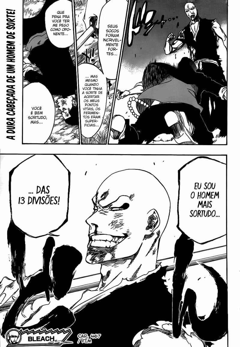 Capítulo 1 - Morte & MorangoCapítulo 2 - InicianteCapítulo 3 - Batendo CabeçaCapítulo 4 - POR QUE VOCÊ COME ISSO?Capítulo 5 - Cego - cegoCapítulo 6 - pequena quebra.Capítulo 7 - O Periquito de Bochechas RosasCapítulo 8 - Persiga o ChadCapítulo 9 - Monstro e uma Transferência [Golpe Baixo]Capítulo 10 - Monstro e uma Transferência 2 [o Fruto da Morte]Capítulo 11 - De Volta [Bomba Sanguessuga ou Mãe]Capítulo 12 - O Portão do FimCapítulo 13 - MAU PADRÃOCapítulo 14 - Perturbação Escolar!!!Capítulo 15 - Macaco Saltitante, EletrizadoCapítulo 16 - Desperdiçado mas DesejadoCapítulo 17 - 17 de JunhoCapítulo 18 - 17 de Junho 2 "Sem Sorrir, Sem Culpa"Capítulo 19 - 17 de Junho 3 "memórias na chuva"Capítulo 20 - 17 de Junho 4 "encare novamente"Capítulo 21 - 17 de Junho 5 "Garoto Lutador"Capítulo 22 - 17 de Junho 6 "BATALHA NO CEMITÉRIO"Capítulo 23 - 17 de Junho 7 "Intenção Afiada, Lâmina Estúpida"Capítulo 24 - 17 de Junho 8 "Todo O Caminho à Simpatia"Capítulo 25 - 17 de Junho 9 "Garoto Lutador 2 [O Blues do Charuto Mix]"Capítulo 26 - Paraíso Fica em Lugar NenhumCapítulo 27 - Espíritos Não Estão Sempre CONOSCOCapítulo 28 - Sintoma de SinestesiaCapítulo 29 - Pare aquele estúpido!!Capítulo 30 - Segundo Contato (isso estava fora de nossa compreensão)Capítulo 31 - HERÓIS PODEM SALVAR VOCÊCapítulo 32 - Herói está Sempre Comigo?Capítulo 33 - FUTURO VIBRANTE 7Capítulo 34 - Arqueiro Quincy Odeia VocêCapítulo 35 - Quer Ser Meu Inimigo?Capítulo 36 - Em Nome da Vingança, Nos Leve à MorteCapítulo 37 - Cruzando a LinhaCapítulo 38 - CURVADOCapítulo 39 - Braço Direito do GiganteCapítulo 40 - Crescer?Capítulo 41 - Princesa & DragãoCapítulo 42 - Princesa & Dragão 2: "O Majestoso"Capítulo 43 - Princesa & Dragão 3: "Seis Flores"Capítulo 44 - Despertar [para a Ameaça]Capítulo 45 - Ponto de FinalidadeCapítulo 46 - Karneades ~ Costa-a-CostaCapítulo 47 - Costa-a-Costa ~ Céu DislaceradoCapítulo 48 - Menos GrandeCapítulo 49 - desacorrentadoCapítulo 50 - Arqueiro Quincy Odeia Você 2 [Cego Mas Sangrando Mix]Capítulo 51 - MORTE 3Capítulo 52 - Emoções DesnecessáriasCapítulo 53 - Prazer em conhecê-lo, vou te derrotarCapítulo 54 - O Novato que nem Pergunta o NomeCapítulo 55 - FECHADOCapítulo 56 - código quebradoCapítulo 57 - Infindável Chuva de JulhoCapítulo 58 - vazioCapítulo 59 - Lição 1: Um Golpe! + Prisioneiro em CasaCapítulo 60 - Lição 1-2: DETONADO!!Capítulo 61 - Lição 2: Eixo quebradoCapítulo 62 - Lição 2-2: Péssimo Fim no EixoCapítulo 63 - Lição 2-3: Colapso do Cicuito InternoCapítulo 64 - RETORNO EM PRETOCapítulo 65 - ColisõesCapítulo 66 - A ESPADA E EUCapítulo 67 - Fim das LiçõesCapítulo 68 - Últimas Férias de VerãoCapítulo 69 - 25:00 reuniãoCapítulo 70 - Onde os Hollows Temem PisarCapítulo 71 - INTRUSOZCapítulo 72 - O SupergrupoCapítulo 73 - Chuva de MachadosCapítulo 74 - Braço Perdido, Braço PerdidoCapítulo 75 - Chuva de SangueCapítulo 76 - Piloto de Javali ChegandoCapítulo 77 - Meu Nome é Ganju-samaCapítulo 78 - reuniãO nO porãOCapítulo 79 - QUATORZE DIAS PARA A CONSPIRAÇÃOCapítulo 80 - O Projeto Estrela CadenteCapítulo 81 - Reunião de Doze TonsCapítulo 82 - Composição do ConflitoCapítulo 83 - VENHA COMIGOCapítulo 84 - O Projeto Estrela Cadente 2 [Tatuagem No Céu]Capítulo 85 - INTRUSOZ 2 [Arrombando o telhado mix]Capítulo 86 - Estabelecendo Boas Relações, CERTO?Capítulo 87 - Dançando com LançasCapítulo 88 - SOMOS TÃO AZARADOSCapítulo 89 - Magistral! E Adeus!Capítulo 90 - Vejo Você Sob Fogos de ArtifícioCapítulo 91 - REI PROTETOR DA LIBERDADECapítulo 92 - Magistral! E Adeus! [Reprise]Capítulo 93 - Dirigindo-se para a EstrelaCapítulo 94 - Cadeia Chamada RemorsoCapítulo 95 - COLISÃOCapítulo 96 - CONFLITO SANGRENTOCapítulo 97 - Fale Sobre Seu MedoCapítulo 98 - A Estrela e o Vira-LataCapítulo 99 - Negra Nuvem de Guerra MortalCapítulo 100 - Como a Flor de um PrecipícioCapítulo 101 - Divisão Sob a Base VermelhaCapítulo 102 - Ninguém DerrubaCapítulo 103 - SoberaniaCapítulo 104 - O Morto-vivoCapítulo 105 - Pule, Pule, Encontre o TigreCapítulo 106 - Razão do ConfrontoCapítulo 107 - Paixão na ConfiançaCapítulo 108 - Tempo de PânicoCapítulo 109 - Como um Tigre Tentando Não Esmagar as FloresCapítulo 110 - Lado Negro do UniversoCapítulo 111 - Preto & BrancoCapítulo 112 - O Morto-vivo 2 [Ascensão & Loucura]Capítulo 113 - O Morto-vivo 3 [Acabando com a Loucura]Capítulo 114 - Tudo Sobre o Mundo que DesmoronaCapítulo 115 - RemanescênciasCapítulo 116 - Abalo à Torre BrancaCapítulo 117 - Remanescências 2 [Negação à Sombra]Capítulo 118 - O Elo CelestialCapítulo 119 - Segredo da LuaCapítulo 120 - Aperto de Mãos com GranadasCapítulo 121 - Confiamos na SanidadeCapítulo 122 - Não Perca o ControleCapítulo 123 - Juro pelo Meu OrgulhoCapítulo 124 - Pequenas Pessoas ChorandoCapítulo 125 - Insano & GenialCapítulo 126 - O Último de uma Guerra sem SentidoCapítulo 127 - Começo da Morte do AmanhãCapítulo 128 - O Grande Esforço ColetivoCapítulo 129 - Suspeita [de Assassinato]Capítulo 130 - Suspeita 2 [de Fazer Chorar]Capítulo 131 - O Verdadeiro DesejoCapítulo 132 - Limite AssustadorCapítulo 133 - memórias na chuva 2 "o noturno"Capítulo 134 - memórias na chuva 2 - 2 "Ânsia pelo Santuário"Capítulo 135 - memórias na chuva 2 - 3 "Afetados Pela Noite"Capítulo 136 - memórias na chuva 2 - 4 "noite do arrependimento"Capítulo 137 - Cerco ApertadoCapítulo 138 - Pensamentos IndividuaisCapítulo 139 - Cansado, Ensanguentado, LoucoCapítulo 140 - Mordida na LuaCapítulo 141 - Ajoelhe-se para o Rei dos BabuínosCapítulo 142 - Para Aqueles que Capturam a LuaCapítulo 143 - Almas ArdentesCapítulo 144 - Mais Vermelho que uma Rosa, Mais Branco que um LírioCapítulo 145 - AgitadoCapítulo 146 - Demônio Adora as TrevasCapítulo 147 - Contagem Regressiva para o Fim: 3 [Luz Cega, Batida Surda]Capítulo 148 - Contagem Regressiva par