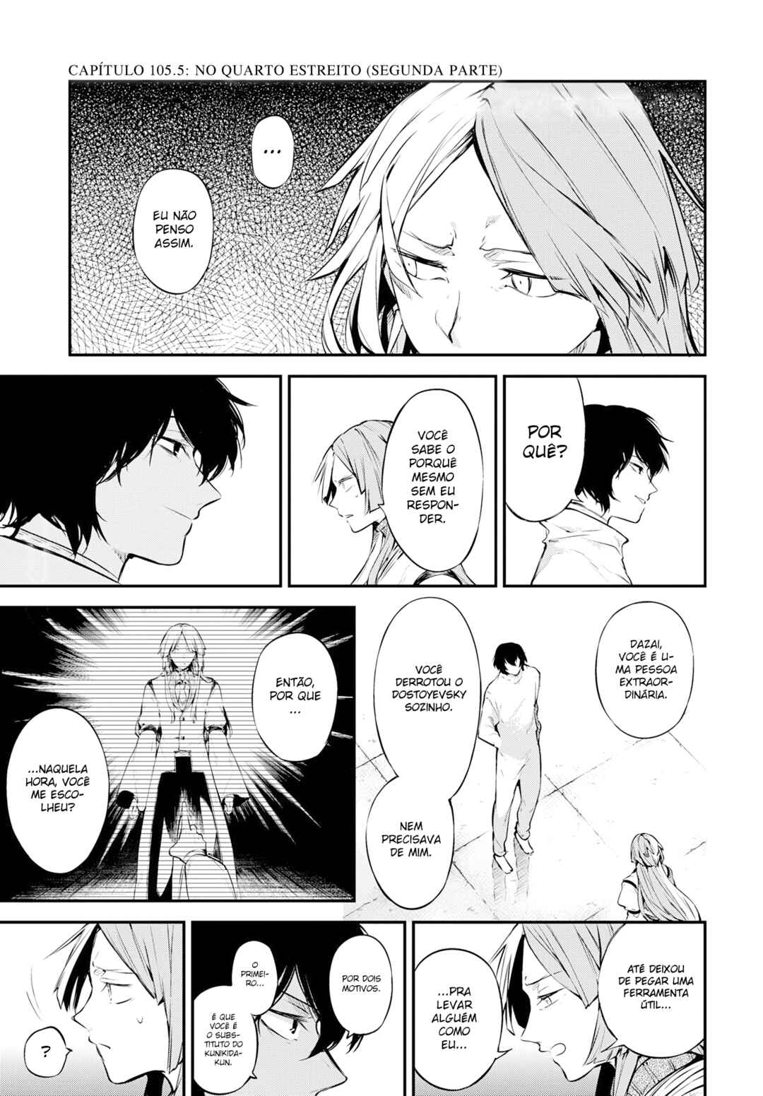 Capítulo 1Capítulo 2Capítulo 3Capítulo 4Capítulo 5Capítulo 6Capítulo 7Capítulo 8Capítulo 9Capítulo 10Capítulo 11Capítulo 12Capítulo 13Capítulo 14Capítulo 15Capítulo 16Capítulo 17Capítulo 18Capítulo 19Capítulo 20Capítulo 21Capítulo 22Capítulo 23Capítulo 24Capítulo 25Capítulo 26Capítulo 27Capítulo 28Capítulo 29Capítulo 30Capítulo 31Capítulo 32Capítulo 33Capítulo 34Capítulo 35Capítulo 36Capítulo 37Capítulo 38Capítulo 39Capítulo 40Capítulo 41Capítulo 42Capítulo 43Capítulo 44Capítulo 45Capítulo 46Capítulo 47Capítulo 47.5Capítulo 48Capítulo 48.5Capítulo 49Capítulo 50Capítulo 51Capítulo 52Capítulo 53Capítulo 54Capítulo 55Capítulo 56Capítulo 57Capítulo 58Capítulo 58.5Capítulo 59Capítulo 60Capítulo 61Capítulo 62Capítulo 63Capítulo 64Capítulo 64.5Capítulo 65Capítulo 66Capítulo 67Capítulo 68 - Será que um corpo sem asas é triste? - Segunda ParteCapítulo 69 - Registro de uma Fuga de PrisãoCapítulo 70 - Registro de uma Fuga de Prisão - ConclusãoCapítulo 71 - Cães de Caça Literários - Primeira ParteCapítulo 72 - Cães de Caça Literários - Segunda ParteCapítulo 73 - Cães de Caça Literários - Terceira ParteCapítulo 74 - SKYFALLCapítulo 74.5 - SKYFALL: Primeira Parte (Continuação)Capítulo 75 - SKYFALL: Segunda ParteCapítulo 76 - SKYFALL: Terceira ParteCapítulo 77 - SKYFALL: Quarta ParteCapítulo 78 - Ameaçando a Deus: Primeira ParteCapítulo 79 - Ameaçando a Deus: Segunda ParteCapítulo 80 - Ameaçando a Deus: Terceira ParteCapítulo 81 - O Homem Mais Forte - Última ParteCapítulo 82 - O Cooperador Mais ForteCapítulo 83 - Em Direção a Todas as Respostas (Parte 1)Capítulo 83.5 - Em Direção a Todas as Respostas (Parte 2)Capítulo 84 - Herói vs CriminosoCapítulo 85 - Herói vs Criminoso (Parte 2)Capítulo 86 - Herói vs Criminoso (Parte 3)Capítulo 87 - Herói vs Criminoso (Parte 4)Capítulo 88 - Rolando para BaixoCapítulo 89 - HERO WAR, GANG WARCapítulo 89.5 - HERO WAR, GANG WAR (Parte Final)Capítulo 90 - HERO WAR, GANG WAR (Parte Final)Capítulo 91 - Novamente na Casa dos DetetivesCapítulo 92 - Porto do CéuCapítulo 92.5 - Porto do CéuCapítulo 93 - Porto do Céu (Parte 2)Capítulo 94 - Porto do Céu (Parte 3)Capítulo 94.5 - Porto do Céu (Parte 3)Capítulo 95 - Porto do Céu (Parte 4)Capítulo 96 - Porto do Céu (Parte 5)Capítulo 97 - Porto do Céu (Parte 6)Capítulo 98 - Porto do Céu (Parte 7)Capítulo 99 - Porto do Céu (Parte 8)Capítulo 100 - Porto do Céu (Parte 9)Capítulo 100.5 - Porto do Céu (Parte 9, Segunda Parte)Capítulo 101 - No Fundo D'águaCapítulo 102 - Além da Humanidade (Parte 1)Capítulo 102.5 - Além da Humanidade (Parte 1, Segunda Parte)Capítulo 103 - Além da Humanidade (Parte 2, Primeira Parte)Capítulo 103.5 - Além da Humanidade (Parte 2, Segunda Parte)Capítulo 104 - Os Dois Fuku (Parte 1)Capítulo 104.5 - Os Dois Fuku (Parte 2)Capítulo 105 - No Quarto Estreito (Primeira Parte)Capítulo 105.5 - No Quarto Estreito (Segunda Parte)Capítulo 106 - No Quarto Estreito (Parte 2, Primeira Parte)Capítulo 106.5 - No Quarto Estreito (Parte 2, Segunda Parte)Capítulo 107 - No Quarto Estreito (Parte 3, Primeira Parte)Capítulo 107.5 - No Quarto Estreito (Parte 3, Segunda Parte)Capítulo 108 - No Quarto Estreito (Parte 4)Capítulo 109 - No Quarto Estreito (Parte 5)Capítulo 110 - No Quarto Estreito (Parte 6)Capítulo 110.5 - No Quarto Estreito (Parte 6, Segunda Parte)Capítulo 111 - Você Não Pode Me MatarCapítulo 111.5 - Você Não Pode Me Matar (Segunda Parte)Capítulo 112 - Por que nos Abandonaste?Capítulo 113 - Paz MundialCapítulo 114 - ressurectioCapítulo 114.5 - ressurectio (Segunda Parte)Capítulo 115 - Uma Escura EspumaCapítulo 116 - Para os InsignificantesCapítulo 117 - Bastão RecebidoCapítulo 118 - Algo DesconhecidoCapítulo 119 - Após o Derrame Sobre o Porto do LamentoCapítulo 120 - Aquilo Que ImpulsionaCapítulo 120.5 - Aquilo Que Impulsiona (Parte 2)Capítulo 121Capítulo 121.5 - Um Corpo Desconhecido Chamado CoraçãoCapítulo 122 - O que Nos Motiva