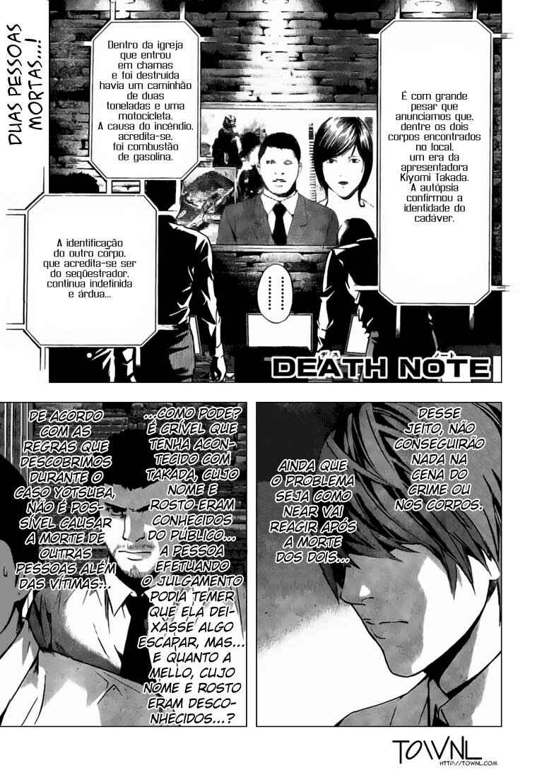 Capítulo 0 - Episode 0Capítulo 1 - TédioCapítulo 2 - LCapítulo 3 - FamíliaCapítulo 4 - Corrente elétricaCapítulo 5 - OlhoCapítulo 6 - ControleCapítulo 7 - AlvoCapítulo 8 - MulherCapítulo 9 - BuracoCapítulo 10 - JunçãoCapítulo 11 - UmCapítulo 12 - DeusCapítulo 13 - Contagem regressivaCapítulo 14 - SeduçãoCapítulo 15 - TelefoneCapítulo 16 - De ponta-capeçaCapítulo 17 - LixoCapítulo 18 - VazioCapítulo 19 - HumilhaçãoCapítulo 20 - Primeira mãoCapítulo 21 - Ás avessasCapítulo 22 - AzarCapítulo 23 - FrenesiCapítulo 24 - EscudoCapítulo 25 - ToloCapítulo 26 - InversãoCapítulo 27 - AmorCapítulo 28 - JulgamentoCapítulo 29 - ArmaCapítulo 30 - BombaCapítulo 31 - Fácil Capítulo 32 - JogatinaCapítulo 33 - MovimentoCapítulo 34 - RendiçãoCapítulo 35 - Folha em brancoCapítulo 36 - Pai e filhoCapítulo 37 - 8 pessoasCapítulo 38 - AtaqueCapítulo 39 - SeparaçãoCapítulo 40 - CamaradasCapítulo 41 - MatsudaCapítulo 42 - FirmamentoCapítulo 43 - EscuridãoCapítulo 44 - SucessorCapítulo 45 - AbsurdoCapítulo 46 - Fique longeCapítulo 47 - Fuga deliberadaCapítulo 48 - TrocaCapítulo 49 - Plano irresistível Capítulo 50 - YotsubaCapítulo 51 - Mal-entendidoCapítulo 52 - Segundo inacabávelCapítulo 53 - GritoCapítulo 54 - InteriorCapítulo 55 - EspeculaçãoCapítulo 56 - AbraçoCapítulo 57 - Duas escolhasCapítulo 58 - No meio da linhaCapítulo 59 - ZeroCapítulo 60 - SequestroCapítulo 61 - O segundoCapítulo 62 - DecisãoCapítulo 63 - AlvoCapítulo 64 - Ângulo certoCapítulo 65 - ResponsabilidadeCapítulo 66 - MorteCapítulo 67 - O botãoCapítulo 68 - DescobertaCapítulo 69 - VôoCapítulo 70 - EstremecimentoCapítulo 71 - ContatoCapítulo 72 - ConfirmaçãoCapítulo 73 - Performance finalCapítulo 74 - Performance entusiástica Capítulo 75 - ReconhecimentoCapítulo 76 - GratidãoCapítulo 77 - UsoCapítulo 78 - PrognósticoCapítulo 79 - SimulaçãoCapítulo 80 - ArrastãoCapítulo 81 - AvisoCapítulo 82 - IntrospecçãoCapítulo 83 - EliminaçãoCapítulo 84 - AcidenteCapítulo 85 - EleitoCapítulo 86 - JapãoCapítulo 87 - AmanhãCapítulo 88 - ConversaçãoCapítulo 89 - FocoCapítulo 90 - De antemãoCapítulo 91 - CessaçãoCapítulo 92 - NoiteCapítulo 93 - DecisãoCapítulo 94 - Lado de foraCapítulo 95 - AceitaçãoCapítulo 96 - Enquanto issoCapítulo 97 - Várias coisasCapítulo 98 - TodosCapítulo 99 - Duas pessoasCapítulo 100 - EncontroCapítulo 101 - OrientaçãoCapítulo 102 - Paciência Capítulo 103 - DeclaraçãoCapítulo 104 - RespostaCapítulo 105 - ImpossívelCapítulo 106 - Intento assassinoCapítulo 107 - Fecham-se as cortinasCapítulo 108 - O fim