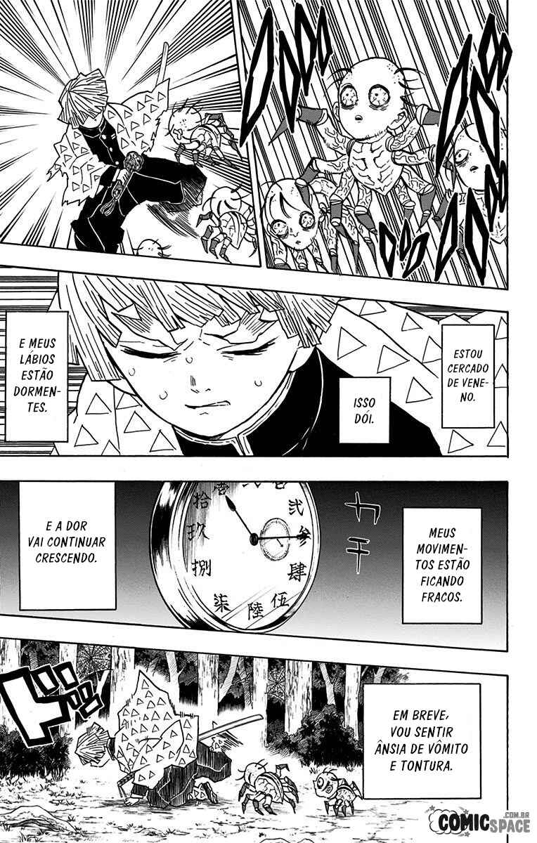 Capítulo 1 - CrueldadeCapítulo 2 - Alguém desconhecidoCapítulo 3 - Volte antes do amanhecerCapítulo 4 - Diário de Tanjirou - parte 1Capítulo 5 - Diário de Tanjirou - parte 2Capítulo 6 - Pilha de mãosCapítulo 7 - Espíritos da morteCapítulo 8 - IrmãozãoCapítulo 9 - Bem vindo de voltaCapítulo 10 - Pântano do sequestroCapítulo 11 - EnsinamentosCapítulo 12 - Eu não posso falarCapítulo 13 - Você é...Capítulo 14 - A fúria de Kibutsuji, a sedutora fragrância de sangueCapítulo 15 - A opinião da doutoraCapítulo 16 - O jogo das esferasCapítulo 17 - O demônio das flechasCapítulo 18 - MaldiçãoCapítulo 19 - Sempre juntosCapítulo 20 - Agatsuma ZenitsuCapítulo 21 - A casa do tamborCapítulo 22 - A aparição repentina de um porcoCapítulo 22.5 - EspecialCapítulo 23 - O porco descobre suas presas - Zenitsu dormeCapítulo 24 - Ex-lua demoníacaCapítulo 25 - Auto-inspiraçãoCapítulo 25.5 - EspecialCapítulo 26 - Luta de mãos nuasCapítulo 27 - Hashibira InosukeCapítulo 28 - Convocação de emergênciaCapítulo 29 - Montanha NatagumoCapítulo 30 - MarionetesCapítulo 31 - Se eu não seguir em frente sozinho, que seguirá?Capítulo 32 - Fedor forteCapítulo 33 - Dor, avançando enquanto se contorceCapítulo 34 - A espada mais forteCapítulo 35 - DispersoCapítulo 36 - Isso é mauCapítulo 37 - Espada quebradaCapítulo 38 - Genuíno e falsoCapítulo 39 - Quando a vida passa diante dos olhosCapítulo 40 - Deus do fogoCapítulo 41 - Kochou ShinobuCapítulo 42 - AtrásCapítulo 43 - Para o infernoCapítulo 43.5 - ExtraCapítulo 44 - Violação na conduta dos caçadores de demôniosCapítulo 45 - Julgamento conjunto dos Pilares caçadores de demôniosCapítulo 46 - Oyakata-samaCapítulo 47 - HuffCapítulo 48 - A área borboletaCapítulo 49 - Treino funcional de recuperação: parte 1Capítulo 50 - Treino funcional de recuperação: parte 2Capítulo 51 - A espada de nichirin volta para casaCapítulo 52 - ImpiedosoCapítulo 53 - Você é...Capítulo 54 - Boa noite, Rengoku-sanCapítulo 55 - O trem dos sonhos infinitosCapítulo 56 - AcordeCapítulo 57 - Você tem sua espadaCapítulo 58 - Bom diaCapítulo 59 - InsultoCapítulo 59.1 - ExtraCapítulo 59.5 - Arco extraCapítulo 60 - Protegendo 200 pessoasCapítulo 61 - Lutando em um espaço estreitoCapítulo 62 - O pesadelo acabaCapítulo 63 - AkazaCapítulo 64 - A força dos demônios superiores e a força dos PilaresCapítulo 65 - Quem ganhou?Capítulo 66 - O amanhecer se espalhaCapítulo 67 - O que você está buscandoCapítulo 68 - UsuárioCapítulo 69 - Siga em frente. Não importa se for pouco a poucoCapítulo 70 - SequestroCapítulo 71 - O grande distrito da luz vermelha, operação infiltraçãoCapítulo 71.5 - GIGA - Extra: Os contos de InosukeCapítulo 72 - A procura pelas esposasCapítulo 73 - PerseguiçãoCapítulo 74 - DakiCapítulo 75 - O pensamento de cada umCapítulo 76 - O lugar de cada umCapítulo 77 - TrovejanteCapítulo 78 - VagandoCapítulo 79 - Buraco de arCapítulo 80 - ValorCapítulo 81 - Sobrepondo memóriasCapítulo 82 - Humanos e DemôniosCapítulo 83 - TransfiguraçãoCapítulo 84 - Coisa PreciosaCapítulo 85 - BerrandoCapítulo 86 - GyuutarouCapítulo 87 - ReunindoCapítulo 88 - O caminho para a VitóriaCapítulo 89 - Vale tudoCapítulo 90 - Em dívida com vocêCapítulo 91 - Mudança de PlanosCapítulo 92 - Verme, estúpido, covarde entre os idiotasCapítulo 93 - Nunca desistaCapítulo 94 - Faça alguma coisaCapítulo 95 - Momentos FinaisCapítulo 95.5 - Extra Jump GIGACapítulo 96 - Não importa quantas vezes eu nasça de novo (parte 1)Capítulo 97 - Não importa quantas vezes eu nasça de novo (parte 2)Capítulo 98 - Reunião das Luas superioresCapítulo 99 - O sonho de alguémCapítulo 100 - Agora, para a vila!!Capítulo 101 - Conversa secretaCapítulo 102 - Olá, Tokitou-kunCapítulo 103 - Yorichi ZeroshikiCapítulo 104 - Kotetsu-sanCapítulo 105 - Alguma coisa apareceuCapítulo 106 - Ataque inimigoCapítulo 107 - No caminhoCapítulo 108 - Obrigado, Tokitou-kunCapítulo 109 - Não vou morrerCapítulo 110 - Barulhos no galpão abandonadoCapítulo 111 - Ares de um artistaCapítulo 112 - Transição completaCapítulo 113 - Espada vermelhaCapítulo 114 - Querendo ser aceitoCapítulo 115 - Para ser um PilarCapítulo 116Capítulo 117Capítulo 118Capítulo 119Capítulo 120Capítulo 121Capítulo 122Capítulo 123Capítulo 124Capítulo 125Capítulo 126Capítulo 127Capítulo 128Capítulo 129Capítulo 130Capítulo 131Capítulo 132Capítulo 133Capítulo 134Capítulo 135Capítulo 136Capítulo 137Capítulo 138Capítulo 139Capítulo 140Capítulo 141Capítulo 142Capítulo 143Capítulo 144Capítulo 145Capítulo 146Capítulo 147Capítulo 148Capítulo 149Capítulo 150Capítulo 151Capítulo 152Capítulo 153Capítulo 154Capítulo 155Capítulo 156Capítulo 157Capítulo 158Capítulo 159Capítulo 160Capítulo 161Capítulo 162Capítulo 163Capítulo 164Capítulo 165Capítulo 166Capítulo 167Capítulo 168Capítulo 169Capítulo 170Capítulo 171Capítulo 172Capítulo 173Capítulo 174Capítulo 175Capítulo 176Capítulo 177Capítulo 178Capítulo 179Capítulo 180Capítulo 181Capítulo 182Capítulo 183Capítulo 184Capítulo 185Capítulo 186Capítulo 186 - Velhas LembrançasCapítulo 187Capítulo 187 - Pessoa InocenteCapítulo 188Capítulo 189Capítulo 190Capítulo 191Capítulo 192Capítulo 193Capítulo 194Capítulo 195Capítulo 196Capítulo 197Capítulo 198Capítulo 199Capítulo 200Capítulo 201Capítulo 202Capítulo 202 - Vamos Voltar Para CasaCapítulo 203Capítulo 204 - Um Mundo Sem DemôniosCapítulo 204Capítulo 205 - Vidas Que Brilham ao Longo dos AnosCapítulo 205.5