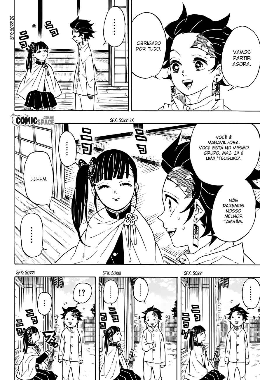 Capítulo 1 - CrueldadeCapítulo 2 - Alguém desconhecidoCapítulo 3 - Volte antes do amanhecerCapítulo 4 - Diário de Tanjirou - parte 1Capítulo 5 - Diário de Tanjirou - parte 2Capítulo 6 - Pilha de mãosCapítulo 7 - Espíritos da morteCapítulo 8 - IrmãozãoCapítulo 9 - Bem vindo de voltaCapítulo 10 - Pântano do sequestroCapítulo 11 - EnsinamentosCapítulo 12 - Eu não posso falarCapítulo 13 - Você é...Capítulo 14 - A fúria de Kibutsuji, a sedutora fragrância de sangueCapítulo 15 - A opinião da doutoraCapítulo 16 - O jogo das esferasCapítulo 17 - O demônio das flechasCapítulo 18 - MaldiçãoCapítulo 19 - Sempre juntosCapítulo 20 - Agatsuma ZenitsuCapítulo 21 - A casa do tamborCapítulo 22 - A aparição repentina de um porcoCapítulo 22.5 - EspecialCapítulo 23 - O porco descobre suas presas - Zenitsu dormeCapítulo 24 - Ex-lua demoníacaCapítulo 25 - Auto-inspiraçãoCapítulo 25.5 - EspecialCapítulo 26 - Luta de mãos nuasCapítulo 27 - Hashibira InosukeCapítulo 28 - Convocação de emergênciaCapítulo 29 - Montanha NatagumoCapítulo 30 - MarionetesCapítulo 31 - Se eu não seguir em frente sozinho, que seguirá?Capítulo 32 - Fedor forteCapítulo 33 - Dor, avançando enquanto se contorceCapítulo 34 - A espada mais forteCapítulo 35 - DispersoCapítulo 36 - Isso é mauCapítulo 37 - Espada quebradaCapítulo 38 - Genuíno e falsoCapítulo 39 - Quando a vida passa diante dos olhosCapítulo 40 - Deus do fogoCapítulo 41 - Kochou ShinobuCapítulo 42 - AtrásCapítulo 43 - Para o infernoCapítulo 43.5 - ExtraCapítulo 44 - Violação na conduta dos caçadores de demôniosCapítulo 45 - Julgamento conjunto dos Pilares caçadores de demôniosCapítulo 46 - Oyakata-samaCapítulo 47 - HuffCapítulo 48 - A área borboletaCapítulo 49 - Treino funcional de recuperação: parte 1Capítulo 50 - Treino funcional de recuperação: parte 2Capítulo 51 - A espada de nichirin volta para casaCapítulo 52 - ImpiedosoCapítulo 53 - Você é...Capítulo 54 - Boa noite, Rengoku-sanCapítulo 55 - O trem dos sonhos infinitosCapítulo 56 - AcordeCapítulo 57 - Você tem sua espadaCapítulo 58 - Bom diaCapítulo 59 - InsultoCapítulo 59.1 - ExtraCapítulo 59.5 - Arco extraCapítulo 60 - Protegendo 200 pessoasCapítulo 61 - Lutando em um espaço estreitoCapítulo 62 - O pesadelo acabaCapítulo 63 - AkazaCapítulo 64 - A força dos demônios superiores e a força dos PilaresCapítulo 65 - Quem ganhou?Capítulo 66 - O amanhecer se espalhaCapítulo 67 - O que você está buscandoCapítulo 68 - UsuárioCapítulo 69 - Siga em frente. Não importa se for pouco a poucoCapítulo 70 - SequestroCapítulo 71 - O grande distrito da luz vermelha, operação infiltraçãoCapítulo 71.5 - GIGA - Extra: Os contos de InosukeCapítulo 72 - A procura pelas esposasCapítulo 73 - PerseguiçãoCapítulo 74 - DakiCapítulo 75 - O pensamento de cada umCapítulo 76 - O lugar de cada umCapítulo 77 - TrovejanteCapítulo 78 - VagandoCapítulo 79 - Buraco de arCapítulo 80 - ValorCapítulo 81 - Sobrepondo memóriasCapítulo 82 - Humanos e DemôniosCapítulo 83 - TransfiguraçãoCapítulo 84 - Coisa PreciosaCapítulo 85 - BerrandoCapítulo 86 - GyuutarouCapítulo 87 - ReunindoCapítulo 88 - O caminho para a VitóriaCapítulo 89 - Vale tudoCapítulo 90 - Em dívida com vocêCapítulo 91 - Mudança de PlanosCapítulo 92 - Verme, estúpido, covarde entre os idiotasCapítulo 93 - Nunca desistaCapítulo 94 - Faça alguma coisaCapítulo 95 - Momentos FinaisCapítulo 95.5 - Extra Jump GIGACapítulo 96 - Não importa quantas vezes eu nasça de novo (parte 1)Capítulo 97 - Não importa quantas vezes eu nasça de novo (parte 2)Capítulo 98 - Reunião das Luas superioresCapítulo 99 - O sonho de alguémCapítulo 100 - Agora, para a vila!!Capítulo 101 - Conversa secretaCapítulo 102 - Olá, Tokitou-kunCapítulo 103 - Yorichi ZeroshikiCapítulo 104 - Kotetsu-sanCapítulo 105 - Alguma coisa apareceuCapítulo 106 - Ataque inimigoCapítulo 107 - No caminhoCapítulo 108 - Obrigado, Tokitou-kunCapítulo 109 - Não vou morrerCapítulo 110 - Barulhos no galpão abandonadoCapítulo 111 - Ares de um artistaCapítulo 112 - Transição completaCapítulo 113 - Espada vermelhaCapítulo 114 - Querendo ser aceitoCapítulo 115 - Para ser um PilarCapítulo 116Capítulo 117Capítulo 118Capítulo 119Capítulo 120Capítulo 121Capítulo 122Capítulo 123Capítulo 124Capítulo 125Capítulo 126Capítulo 127Capítulo 128Capítulo 129Capítulo 130Capítulo 131Capítulo 132Capítulo 133Capítulo 134Capítulo 135Capítulo 136Capítulo 137Capítulo 138Capítulo 139Capítulo 140Capítulo 141Capítulo 142Capítulo 143Capítulo 144Capítulo 145Capítulo 146Capítulo 147Capítulo 148Capítulo 149Capítulo 150Capítulo 151Capítulo 152Capítulo 153Capítulo 154Capítulo 155Capítulo 156Capítulo 157Capítulo 158Capítulo 159Capítulo 160Capítulo 161Capítulo 162Capítulo 163Capítulo 164Capítulo 165Capítulo 166Capítulo 167Capítulo 168Capítulo 169Capítulo 170Capítulo 171Capítulo 172Capítulo 173Capítulo 174Capítulo 175Capítulo 176Capítulo 177Capítulo 178Capítulo 179Capítulo 180Capítulo 181Capítulo 182Capítulo 183Capítulo 184Capítulo 185Capítulo 186Capítulo 186 - Velhas LembrançasCapítulo 187Capítulo 187 - Pessoa InocenteCapítulo 188Capítulo 189Capítulo 190Capítulo 191Capítulo 192Capítulo 193Capítulo 194Capítulo 195Capítulo 196Capítulo 197Capítulo 198Capítulo 199Capítulo 200Capítulo 201Capítulo 202Capítulo 202 - Vamos Voltar Para CasaCapítulo 203Capítulo 204 - Um Mundo Sem DemôniosCapítulo 204Capítulo 205 - Vidas Que Brilham ao Longo dos AnosCapítulo 205.5
