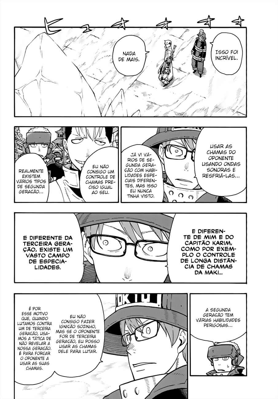 Capítulo 0 - Shinra Kusakabe entra na EquipeCapítulo - Roubar? ou Homenagem?Capítulo 1 - EstréiaCapítulo 2 - O Demônio, O Cavaleiro, E a BruxaCapítulo 3 - O Coração de um BombeiroCapítulo 4 - O Suspeito BlasfemoCapítulo 5 - O Torneio dos Bombeiros NovatosCapítulo 6 - O Mal de Descobrir a VerdadeCapítulo 7 - O Demônio e o JokerCapítulo 8 - Procurando pela VerdadeCapítulo 9 - O que a 8ª PersegueCapítulo 10 - O Indivíduo de Fogo com ConsciênciaCapítulo 11 - O Herói e a PrincesaCapítulo 12 - A 5ª e a 8ª BrigadaCapítulo 13 - EsperaCapítulo 14 - A Determinação da Donzela SagradaCapítulo 15 - A Guerra ComeçaCapítulo 16 - A Derrota do CavaleiroCapítulo 17 - Shinra VS HibanaCapítulo 18 - ConfrontoCapítulo 19 - A Promessa de HibanaCapítulo 20 - O Lugar Onde Nascem as ChamasCapítulo 21 - Início da InvestigaçãoCapítulo 22 - Plano de Infiltração no Primeiro BatalhãoCapítulo 24 - Shinra vs. BurnsCapítulo 25 - Persiga o InimigoCapítulo 26 - Inseto das ChamasCapítulo 27 - Mal ImperdoávelCapítulo 28 - Shinra vs. RekkaCapítulo 29 - Punho ou Perna?Capítulo 30 - O Homem Que Está por TrásCapítulo 31 - O Mal que se Espalha Como ChamasCapítulo 32 - Um Novo InimigoCapítulo 33 - Heróis se Reúnem!Capítulo 34 - Jovem CavaleiroCapítulo 35 - PromessaCapítulo 36 - Formação da Oitava Brigada Especial de Incêndio - 1ª ParteCapítulo 37 - Formação da Oitava Brigada Especial de Incêndio - 2ª ParteCapítulo 38 - Onde os Que Vestem Branco EstãoCapítulo 39 - Extintor Mais PotenteCapítulo 40 - A Noite Antes da Guerra de AsakusaCapítulo 41 - A Aliança de Bombeiros do ÓdioCapítulo 42 - Oubi VS BenimaruCapítulo 43 - O Motivo da LutaCapítulo 44 - O Sétimo Batalhão NasceCapítulo 45 - A Armadilha PlanejadaCapítulo 46 - Persiga o Atirador!Capítulo 47 - Luta de Dois Contra DoisCapítulo 48 - O Orgulho de AsakusaCapítulo 49 - Festival de BrigasCapítulo 50 - Chama Para Quem?Capítulo 51 - TaçasCapítulo 52 - O Mundo das ChamasCapítulo 53 - O Deus da Forja!Capítulo 54 - Aqueles com Manobras SecretasCapítulo 55 - O Sonho do EngenheiroCapítulo 56 - Rei Cavaleiro CavalgandoCapítulo 57 - Dilema!!Capítulo 58 - Nós Somos FamiliaCapítulo 59 - Chegada!Capítulo 60 - Preto, Branco e CinzaCapítulo 61 - Espada SagradaCapítulo 62 - PromessaCapítulo 63 - AmigoCapítulo 64 - O Local do TreinamentoCapítulo 65 - O Ponto de IgniçãoCapítulo 66 - Os Resultados de Cada UmCapítulo 67 - Indo ao NetherCapítulo 68 - Perdidos no EscuroCapítulo 69 - Maki Vs FlailCapítulo 70 - O Que é ProtegerCapítulo 71 - Tamaki vs AssaultCapítulo 72 - Aonde a Bala VaiCapítulo 73 - Se OrgulhandoCapítulo 74 - Espada Longa RelâmpagoCapítulo 75 - Orgulho da Brigada de IncêndioCapítulo 76 - Desejo PerfuranteCapítulo 77 - Aquele Que Se ConectaCapítulo 78 - IrmãosCapítulo 79 - Além da Luta até a MorteCapítulo 80 - A Habilidade de ShouCapítulo 81 - A Força de Vontade do IrmãoCapítulo 82 - A Proteção Divina do ConversorCapítulo 83 - Quarta GeraçãoCapítulo 84 - SorrisoCapítulo 85 - Conspiração DeclaradaCapítulo 86 - RecuperaçãoCapítulo 87 - Doutora e ChamaCapítulo 88 - O Passado e o PresenteCapítulo 89 - Passado em ChamasCapítulo 90 - O Final da TragédiaCapítulo 91 - A Luta dos HomensCapítulo 92 - Replanejamento do Chefe da CompanhiaCapítulo 93 - Quarto BatalhãoCapítulo 94 - Souichirou ArgCapítulo 95 - Chamas da RaivaCapítulo 96 - Colegas ReunidosCapítulo 97 - O Motivo do Cavaleiro ReiCapítulo 98 - Shinra vs. ArthurCapítulo 99 - Uma Nova LenhaCapítulo 100 - Aroma das ChamasCapítulo 101 - Tragédia em ChamasCapítulo 102 - Punho SelvagemCapítulo 103 - Tateando nas ChamasCapítulo 104 - Laços do IncêndioCapítulo 105 - ConclusãoCapítulo 106 - Segunda GeraçãoCapítulo 107 - Selo de ChifresCapítulo 108 - O Plano Secreto de LichtCapítulo 109 - Momento CriticoCapítulo 110 - A Hora da EscolhaCapítulo 111 - O Próximo PassoCapítulo 112 - Rumo ao DesconhecidoCapítulo 113 - O Mundo de ForaCapítulo 114 - O Caminho Para o OásisCapítulo 115 - OásisCapítulo 116 - Terra SagradaCapítulo 117 - O Mal Escondido nas ChamasCapítulo 118 - O LíderCapítulo 119 - O Mistério do DeusCapítulo 120 - NúcleoCapítulo 121 - 1 Segundo - 250 AnosCapítulo 122 - Mulher ObscuraCapítulo 123 - Uma Sombra ApareceCapítulo 124 - Herói SombrioCapítulo 125 - A Luz Que Nasce das TrevasCapítulo 126 - Na Sombra do SolCapítulo 127 - Ignição FrontalCapítulo 128 - Grupal e IndividualCapítulo 129 - Caolhos se EnfrentamCapítulo 130 - A Verdade OcultaCapítulo 131 - PesquisadorCapítulo 132 - Confiança e VerdadeCapítulo 133 - O Forte e o MalignoCapítulo 134 - A verdade da MaqueteCapítulo 135 - Shinigami das CinzasCapítulo 136 - Luta em Território InimigoCapítulo 137 - Anjo VS BruxaCapítulo 138 - Coração que confiaCapítulo 139 - Batalha Entre os Três GrandesCapítulo 140 - Batalha de MulheresCapítulo 141Capítulo 142Capítulo 143Capítulo 144Capítulo 145Capítulo 146Capítulo 147Capítulo 148Capítulo 149Capítulo 150Capítulo 151Capítulo 152Capítulo 153Capítulo 154Capítulo 155Capítulo 156Capítulo 157Capítulo 158Capítulo 159Capítulo 160Capítulo 161Capítulo 162Capítulo 163Capítulo 164Capítulo 165Capítulo 166Capítulo 167Capítulo 168Capítulo 169Capítulo 170Capítulo 171Capítulo 172Capítulo 173Capítulo 174Capítulo 175Capítulo 176Capítulo 177Capítulo 178Capítulo 179Capítulo 180Capítulo 181Capítulo 182Capítulo 183Capítulo 184Capítulo 185Capítulo 186Capítulo 187Capítulo 188Capítulo 189Capítulo 190Capítulo 191Capítulo 192Capítulo 193Capítulo 194Capítulo 195Capítulo 196Capítulo 197Capítulo 198Capítulo 199Capítulo 200Capítulo 201Capítulo 202 - A Grande Aventura do Cavaleiro ReiCapítulo 203 - Uma DescobertaCapítulo 204 - A Família do Cavaleiro ReiCapítulo 205 - A lâmina Sagrada Renasce!Capítulo 206 - ConexãoCapítulo 207 - FugaCapítulo 208 - A Reunião FinalCapítulo 209 - Feudo SecretoCapí