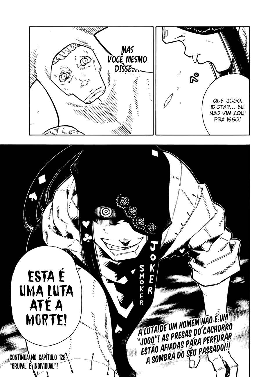 Capítulo 0 - Shinra Kusakabe entra na EquipeCapítulo - Roubar? ou Homenagem?Capítulo 1 - EstréiaCapítulo 2 - O Demônio, O Cavaleiro, E a BruxaCapítulo 3 - O Coração de um BombeiroCapítulo 4 - O Suspeito BlasfemoCapítulo 5 - O Torneio dos Bombeiros NovatosCapítulo 6 - O Mal de Descobrir a VerdadeCapítulo 7 - O Demônio e o JokerCapítulo 8 - Procurando pela VerdadeCapítulo 9 - O que a 8ª PersegueCapítulo 10 - O Indivíduo de Fogo com ConsciênciaCapítulo 11 - O Herói e a PrincesaCapítulo 12 - A 5ª e a 8ª BrigadaCapítulo 13 - EsperaCapítulo 14 - A Determinação da Donzela SagradaCapítulo 15 - A Guerra ComeçaCapítulo 16 - A Derrota do CavaleiroCapítulo 17 - Shinra VS HibanaCapítulo 18 - ConfrontoCapítulo 19 - A Promessa de HibanaCapítulo 20 - O Lugar Onde Nascem as ChamasCapítulo 21 - Início da InvestigaçãoCapítulo 22 - Plano de Infiltração no Primeiro BatalhãoCapítulo 24 - Shinra vs. BurnsCapítulo 25 - Persiga o InimigoCapítulo 26 - Inseto das ChamasCapítulo 27 - Mal ImperdoávelCapítulo 28 - Shinra vs. RekkaCapítulo 29 - Punho ou Perna?Capítulo 30 - O Homem Que Está por TrásCapítulo 31 - O Mal que se Espalha Como ChamasCapítulo 32 - Um Novo InimigoCapítulo 33 - Heróis se Reúnem!Capítulo 34 - Jovem CavaleiroCapítulo 35 - PromessaCapítulo 36 - Formação da Oitava Brigada Especial de Incêndio - 1ª ParteCapítulo 37 - Formação da Oitava Brigada Especial de Incêndio - 2ª ParteCapítulo 38 - Onde os Que Vestem Branco EstãoCapítulo 39 - Extintor Mais PotenteCapítulo 40 - A Noite Antes da Guerra de AsakusaCapítulo 41 - A Aliança de Bombeiros do ÓdioCapítulo 42 - Oubi VS BenimaruCapítulo 43 - O Motivo da LutaCapítulo 44 - O Sétimo Batalhão NasceCapítulo 45 - A Armadilha PlanejadaCapítulo 46 - Persiga o Atirador!Capítulo 47 - Luta de Dois Contra DoisCapítulo 48 - O Orgulho de AsakusaCapítulo 49 - Festival de BrigasCapítulo 50 - Chama Para Quem?Capítulo 51 - TaçasCapítulo 52 - O Mundo das ChamasCapítulo 53 - O Deus da Forja!Capítulo 54 - Aqueles com Manobras SecretasCapítulo 55 - O Sonho do EngenheiroCapítulo 56 - Rei Cavaleiro CavalgandoCapítulo 57 - Dilema!!Capítulo 58 - Nós Somos FamiliaCapítulo 59 - Chegada!Capítulo 60 - Preto, Branco e CinzaCapítulo 61 - Espada SagradaCapítulo 62 - PromessaCapítulo 63 - AmigoCapítulo 64 - O Local do TreinamentoCapítulo 65 - O Ponto de IgniçãoCapítulo 66 - Os Resultados de Cada UmCapítulo 67 - Indo ao NetherCapítulo 68 - Perdidos no EscuroCapítulo 69 - Maki Vs FlailCapítulo 70 - O Que é ProtegerCapítulo 71 - Tamaki vs AssaultCapítulo 72 - Aonde a Bala VaiCapítulo 73 - Se OrgulhandoCapítulo 74 - Espada Longa RelâmpagoCapítulo 75 - Orgulho da Brigada de IncêndioCapítulo 76 - Desejo PerfuranteCapítulo 77 - Aquele Que Se ConectaCapítulo 78 - IrmãosCapítulo 79 - Além da Luta até a MorteCapítulo 80 - A Habilidade de ShouCapítulo 81 - A Força de Vontade do IrmãoCapítulo 82 - A Proteção Divina do ConversorCapítulo 83 - Quarta GeraçãoCapítulo 84 - SorrisoCapítulo 85 - Conspiração DeclaradaCapítulo 86 - RecuperaçãoCapítulo 87 - Doutora e ChamaCapítulo 88 - O Passado e o PresenteCapítulo 89 - Passado em ChamasCapítulo 90 - O Final da TragédiaCapítulo 91 - A Luta dos HomensCapítulo 92 - Replanejamento do Chefe da CompanhiaCapítulo 93 - Quarto BatalhãoCapítulo 94 - Souichirou ArgCapítulo 95 - Chamas da RaivaCapítulo 96 - Colegas ReunidosCapítulo 97 - O Motivo do Cavaleiro ReiCapítulo 98 - Shinra vs. ArthurCapítulo 99 - Uma Nova LenhaCapítulo 100 - Aroma das ChamasCapítulo 101 - Tragédia em ChamasCapítulo 102 - Punho SelvagemCapítulo 103 - Tateando nas ChamasCapítulo 104 - Laços do IncêndioCapítulo 105 - ConclusãoCapítulo 106 - Segunda GeraçãoCapítulo 107 - Selo de ChifresCapítulo 108 - O Plano Secreto de LichtCapítulo 109 - Momento CriticoCapítulo 110 - A Hora da EscolhaCapítulo 111 - O Próximo PassoCapítulo 112 - Rumo ao DesconhecidoCapítulo 113 - O Mundo de ForaCapítulo 114 - O Caminho Para o OásisCapítulo 115 - OásisCapítulo 116 - Terra SagradaCapítulo 117 - O Mal Escondido nas ChamasCapítulo 118 - O LíderCapítulo 119 - O Mistério do DeusCapítulo 120 - NúcleoCapítulo 121 - 1 Segundo - 250 AnosCapítulo 122 - Mulher ObscuraCapítulo 123 - Uma Sombra ApareceCapítulo 124 - Herói SombrioCapítulo 125 - A Luz Que Nasce das TrevasCapítulo 126 - Na Sombra do SolCapítulo 127 - Ignição FrontalCapítulo 128 - Grupal e IndividualCapítulo 129 - Caolhos se EnfrentamCapítulo 130 - A Verdade OcultaCapítulo 131 - PesquisadorCapítulo 132 - Confiança e VerdadeCapítulo 133 - O Forte e o MalignoCapítulo 134 - A verdade da MaqueteCapítulo 135 - Shinigami das CinzasCapítulo 136 - Luta em Território InimigoCapítulo 137 - Anjo VS BruxaCapítulo 138 - Coração que confiaCapítulo 139 - Batalha Entre os Três GrandesCapítulo 140 - Batalha de MulheresCapítulo 141Capítulo 142Capítulo 143Capítulo 144Capítulo 145Capítulo 146Capítulo 147Capítulo 148Capítulo 149Capítulo 150Capítulo 151Capítulo 152Capítulo 153Capítulo 154Capítulo 155Capítulo 156Capítulo 157Capítulo 158Capítulo 159Capítulo 160Capítulo 161Capítulo 162Capítulo 163Capítulo 164Capítulo 165Capítulo 166Capítulo 167Capítulo 168Capítulo 169Capítulo 170Capítulo 171Capítulo 172Capítulo 173Capítulo 174Capítulo 175Capítulo 176Capítulo 177Capítulo 178Capítulo 179Capítulo 180Capítulo 181Capítulo 182Capítulo 183Capítulo 184Capítulo 185Capítulo 186Capítulo 187Capítulo 188Capítulo 189Capítulo 190Capítulo 191Capítulo 192Capítulo 193Capítulo 194Capítulo 195Capítulo 196Capítulo 197Capítulo 198Capítulo 199Capítulo 200Capítulo 201Capítulo 202 - A Grande Aventura do Cavaleiro ReiCapítulo 203 - Uma DescobertaCapítulo 204 - A Família do Cavaleiro ReiCapítulo 205 - A lâmina Sagrada Renasce!Capítulo 206 - ConexãoCapítulo 207 - FugaCapítulo 208 - A Reunião FinalCapítulo 209 - Feudo SecretoCapí