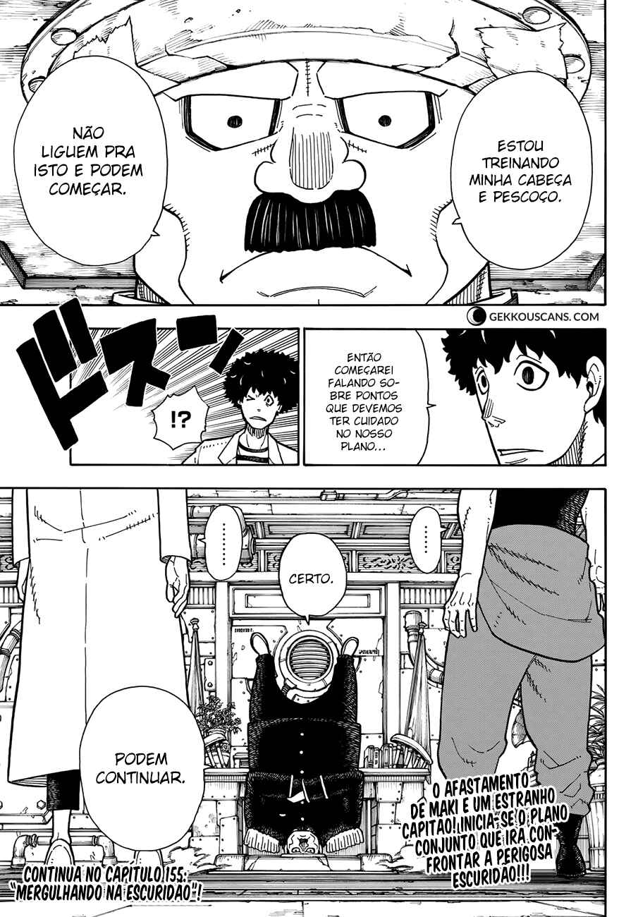 Capítulo 0 - Shinra Kusakabe entra na EquipeCapítulo - Roubar? ou Homenagem?Capítulo 1 - EstréiaCapítulo 2 - O Demônio, O Cavaleiro, E a BruxaCapítulo 3 - O Coração de um BombeiroCapítulo 4 - O Suspeito BlasfemoCapítulo 5 - O Torneio dos Bombeiros NovatosCapítulo 6 - O Mal de Descobrir a VerdadeCapítulo 7 - O Demônio e o JokerCapítulo 8 - Procurando pela VerdadeCapítulo 9 - O que a 8ª PersegueCapítulo 10 - O Indivíduo de Fogo com ConsciênciaCapítulo 11 - O Herói e a PrincesaCapítulo 12 - A 5ª e a 8ª BrigadaCapítulo 13 - EsperaCapítulo 14 - A Determinação da Donzela SagradaCapítulo 15 - A Guerra ComeçaCapítulo 16 - A Derrota do CavaleiroCapítulo 17 - Shinra VS HibanaCapítulo 18 - ConfrontoCapítulo 19 - A Promessa de HibanaCapítulo 20 - O Lugar Onde Nascem as ChamasCapítulo 21 - Início da InvestigaçãoCapítulo 22 - Plano de Infiltração no Primeiro BatalhãoCapítulo 24 - Shinra vs. BurnsCapítulo 25 - Persiga o InimigoCapítulo 26 - Inseto das ChamasCapítulo 27 - Mal ImperdoávelCapítulo 28 - Shinra vs. RekkaCapítulo 29 - Punho ou Perna?Capítulo 30 - O Homem Que Está por TrásCapítulo 31 - O Mal que se Espalha Como ChamasCapítulo 32 - Um Novo InimigoCapítulo 33 - Heróis se Reúnem!Capítulo 34 - Jovem CavaleiroCapítulo 35 - PromessaCapítulo 36 - Formação da Oitava Brigada Especial de Incêndio - 1ª ParteCapítulo 37 - Formação da Oitava Brigada Especial de Incêndio - 2ª ParteCapítulo 38 - Onde os Que Vestem Branco EstãoCapítulo 39 - Extintor Mais PotenteCapítulo 40 - A Noite Antes da Guerra de AsakusaCapítulo 41 - A Aliança de Bombeiros do ÓdioCapítulo 42 - Oubi VS BenimaruCapítulo 43 - O Motivo da LutaCapítulo 44 - O Sétimo Batalhão NasceCapítulo 45 - A Armadilha PlanejadaCapítulo 46 - Persiga o Atirador!Capítulo 47 - Luta de Dois Contra DoisCapítulo 48 - O Orgulho de AsakusaCapítulo 49 - Festival de BrigasCapítulo 50 - Chama Para Quem?Capítulo 51 - TaçasCapítulo 52 - O Mundo das ChamasCapítulo 53 - O Deus da Forja!Capítulo 54 - Aqueles com Manobras SecretasCapítulo 55 - O Sonho do EngenheiroCapítulo 56 - Rei Cavaleiro CavalgandoCapítulo 57 - Dilema!!Capítulo 58 - Nós Somos FamiliaCapítulo 59 - Chegada!Capítulo 60 - Preto, Branco e CinzaCapítulo 61 - Espada SagradaCapítulo 62 - PromessaCapítulo 63 - AmigoCapítulo 64 - O Local do TreinamentoCapítulo 65 - O Ponto de IgniçãoCapítulo 66 - Os Resultados de Cada UmCapítulo 67 - Indo ao NetherCapítulo 68 - Perdidos no EscuroCapítulo 69 - Maki Vs FlailCapítulo 70 - O Que é ProtegerCapítulo 71 - Tamaki vs AssaultCapítulo 72 - Aonde a Bala VaiCapítulo 73 - Se OrgulhandoCapítulo 74 - Espada Longa RelâmpagoCapítulo 75 - Orgulho da Brigada de IncêndioCapítulo 76 - Desejo PerfuranteCapítulo 77 - Aquele Que Se ConectaCapítulo 78 - IrmãosCapítulo 79 - Além da Luta até a MorteCapítulo 80 - A Habilidade de ShouCapítulo 81 - A Força de Vontade do IrmãoCapítulo 82 - A Proteção Divina do ConversorCapítulo 83 - Quarta GeraçãoCapítulo 84 - SorrisoCapítulo 85 - Conspiração DeclaradaCapítulo 86 - RecuperaçãoCapítulo 87 - Doutora e ChamaCapítulo 88 - O Passado e o PresenteCapítulo 89 - Passado em ChamasCapítulo 90 - O Final da TragédiaCapítulo 91 - A Luta dos HomensCapítulo 92 - Replanejamento do Chefe da CompanhiaCapítulo 93 - Quarto BatalhãoCapítulo 94 - Souichirou ArgCapítulo 95 - Chamas da RaivaCapítulo 96 - Colegas ReunidosCapítulo 97 - O Motivo do Cavaleiro ReiCapítulo 98 - Shinra vs. ArthurCapítulo 99 - Uma Nova LenhaCapítulo 100 - Aroma das ChamasCapítulo 101 - Tragédia em ChamasCapítulo 102 - Punho SelvagemCapítulo 103 - Tateando nas ChamasCapítulo 104 - Laços do IncêndioCapítulo 105 - ConclusãoCapítulo 106 - Segunda GeraçãoCapítulo 107 - Selo de ChifresCapítulo 108 - O Plano Secreto de LichtCapítulo 109 - Momento CriticoCapítulo 110 - A Hora da EscolhaCapítulo 111 - O Próximo PassoCapítulo 112 - Rumo ao DesconhecidoCapítulo 113 - O Mundo de ForaCapítulo 114 - O Caminho Para o OásisCapítulo 115 - OásisCapítulo 116 - Terra SagradaCapítulo 117 - O Mal Escondido nas ChamasCapítulo 118 - O LíderCapítulo 119 - O Mistério do DeusCapítulo 120 - NúcleoCapítulo 121 - 1 Segundo - 250 AnosCapítulo 122 - Mulher ObscuraCapítulo 123 - Uma Sombra ApareceCapítulo 124 - Herói SombrioCapítulo 125 - A Luz Que Nasce das TrevasCapítulo 126 - Na Sombra do SolCapítulo 127 - Ignição FrontalCapítulo 128 - Grupal e IndividualCapítulo 129 - Caolhos se EnfrentamCapítulo 130 - A Verdade OcultaCapítulo 131 - PesquisadorCapítulo 132 - Confiança e VerdadeCapítulo 133 - O Forte e o MalignoCapítulo 134 - A verdade da MaqueteCapítulo 135 - Shinigami das CinzasCapítulo 136 - Luta em Território InimigoCapítulo 137 - Anjo VS BruxaCapítulo 138 - Coração que confiaCapítulo 139 - Batalha Entre os Três GrandesCapítulo 140 - Batalha de MulheresCapítulo 141Capítulo 142Capítulo 143Capítulo 144Capítulo 145Capítulo 146Capítulo 147Capítulo 148Capítulo 149Capítulo 150Capítulo 151Capítulo 152Capítulo 153Capítulo 154Capítulo 155Capítulo 156Capítulo 157Capítulo 158Capítulo 159Capítulo 160Capítulo 161Capítulo 162Capítulo 163Capítulo 164Capítulo 165Capítulo 166Capítulo 167Capítulo 168Capítulo 169Capítulo 170Capítulo 171Capítulo 172Capítulo 173Capítulo 174Capítulo 175Capítulo 176Capítulo 177Capítulo 178Capítulo 179Capítulo 180Capítulo 181Capítulo 182Capítulo 183Capítulo 184Capítulo 185Capítulo 186Capítulo 187Capítulo 188Capítulo 189Capítulo 190Capítulo 191Capítulo 192Capítulo 193Capítulo 194Capítulo 195Capítulo 196Capítulo 197Capítulo 198Capítulo 199Capítulo 200Capítulo 201Capítulo 202 - A Grande Aventura do Cavaleiro ReiCapítulo 203 - Uma DescobertaCapítulo 204 - A Família do Cavaleiro ReiCapítulo 205 - A lâmina Sagrada Renasce!Capítulo 206 - ConexãoCapítulo 207 - FugaCapítulo 208 - A Reunião FinalCapítulo 209 - Feudo SecretoCapí