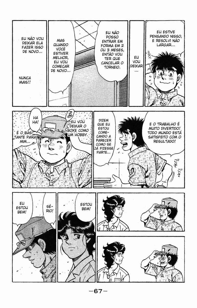Capítulo 1 - O Primeiro PassoCapítulo 2 - Operação TartarugaCapítulo 3 - Pose de LutaCapítulo 4 - Lágrimas de FelicidadeCapítulo 5 - Uppercut de 1965Capítulo 6 - ShadowboxingCapítulo 7 - TécnicoCapítulo 8 - TreinamentoCapítulo 9 - Gongo da RevancheCapítulo 10 - Coragem do CoraçãoCapítulo 11 - Chance!!Capítulo 12 - Uma Arma InesperadaCapítulo 13 - Poder Destrutivo de 1cmCapítulo 14 - Cardápio do TakamuraCapítulo 15 - Encontro a TrêsCapítulo 16 - Licença de Classe CCapítulo 17 - Mau CaráterCapítulo 18 - Calções ArtesanaisCapítulo 19 - EstreiaCapítulo 20 - Deus!!Capítulo 21 - Parada Médica!?Capítulo 22 - De Repente, SouthpawCapítulo 23 - O Gosto da Primeira VitóriaCapítulo 24 - Peek-a-booCapítulo 25 - ObjetivoCapítulo 26 - AmigoCapítulo 27 - Nome de LutaCapítulo 28 - Pugilista NegroCapítulo 29 - Gancho AssassinoCapítulo 30 - Abertura do Torneio do Rei dos NovatosCapítulo 31 - Iniciativa para a VitóriaCapítulo 32 - Pare Ozuma!!Capítulo 33 - Está Doendo ou Não?Capítulo 34 - Contagem de 9Capítulo 35 - Aplausos para o DerrotadoCapítulo 36 - ShampooCapítulo 37 - AgitaçãoCapítulo 38 - Primeiro ProdígioCapítulo 39 - Ippo na PraiaCapítulo 40 - TreinamentoCapítulo 41 - O Segredo na Sola do PéCapítulo 42 - Pedido para as EstrelasCapítulo 43 - Memorando (Secreto) da VitóriaCapítulo 44 - Campeão FracoCapítulo 45 - ClinchCapítulo 46 - Círculo VazioCapítulo 47 - A Tática AbertaCapítulo 48 - Situação Facilmente PerigosaCapítulo 49 - O Sonho DefinidoCapítulo 50 - Luta pelo Título do Peso Médio do JapãoCapítulo 51 - O Retorno do DesafianteCapítulo 52 - Conferência Sobre o FuturoCapítulo 53 - Assassinato dos InfightersCapítulo 54 - A Força do ShotgunCapítulo 55 - PopularCapítulo 56 - A Face do GênioCapítulo 57 - ManbakenCapítulo 58 - Semifinal do Torneio Rei dos Novatos do Leste JaponêsCapítulo 59 - InesperadoCapítulo 60 - O Wind CarCapítulo 61 - Em Frente como um JavaliCapítulo 62 - A Luta nas CordasCapítulo 63 - Resultado Inesperado!?Capítulo 64 - A Derrota do ProdígioCapítulo 65 - O Primeiro Descanso em TemposCapítulo 66 - A Outra Semi-finalCapítulo 67 - HitmanCapítulo 68 - Ele Está EsperandoCapítulo 69 - Sapatos de BoxeCapítulo 70 - Pássaro Sem AsasCapítulo 71 - Lutando em Uma PernaCapítulo 72 - MensagemCapítulo 73 - Objetivo PerdidoCapítulo 74 - Protagonista do SofrimentoCapítulo 75 - O Irmãos do MashibaCapítulo 76 - Distância de 20cmCapítulo 77 - Punho RevitalizadoCapítulo 78 - Final do Torneio Rei dos Novatos do Leste JaponêsCapítulo 79 - Hitman VS Peek-a-booCapítulo 80 - Muito ForteCapítulo 81 - Murmúrio EstranhoCapítulo 82 - Punho QuebradoCapítulo 83 - Braço Esquerdo CaídoCapítulo 84 - Mashiba Se Levanta como um ReiCapítulo 85 - Energia NegraCapítulo 86 - O Retorno do HitmanCapítulo 87 - Ippo em GlóriaCapítulo 88 - Amante do IppoCapítulo 89 - Eu Adoro Grudar em Alguém!!Capítulo 90 - Sparring InútilCapítulo 91 - Recordação de TokyoCapítulo 92 - Super Doutor YCapítulo 93 - Treino DeliciosoCapítulo 94 - Estrela de OsakaCapítulo 95 - Um Inimigo InesperadoCapítulo 96 - Aumentando a Ansiedade....Capítulo 97 - InjeçãoCapítulo 98 - Grande Sentimento de TemorCapítulo 99 - Sendou PressionaCapítulo 100 - O Punho Direito RecuperadaCapítulo 101 - O Smash ModificadoCapítulo 102 - Foram Essas Palavras que Ele FalouCapítulo 103 - Aquilo que se PareceCapítulo 104 - Sendou no ChãoCapítulo 105 - Surra CompletaCapítulo 106 - Auxiliares, ForaCapítulo 107 - A Dicisão do Rei dos Novatos do JapãoCapítulo 108 - A Estranha CelebraçãoCapítulo 109 - FormaturaCapítulo 110 - Seguidores!?Capítulo 111 - Encontro Acidental com o CampeãoCapítulo 112 - As 9 Pessoas EntreCapítulo 113 - Quando o Punho se CuraCapítulo 114 - Empreste os OmbrosCapítulo 115 - Recupere Seu Estilo de LutaCapítulo 116 - O Soco MágicoCapítulo 117 - O Segredo Atrás da MágicaCapítulo 118 - O Mais Forte CovardeCapítulo 119 - InvejaCapítulo 120 - A Luta Entre Antigo e o Novo Rei dos NovatosCapítulo 121 - CorkscrewCapítulo 122 - O Estilo AdmiradoCapítulo 123 - Admiração do OkitaCapítulo 124 - Aqueles que Ultrapassam os OutrosCapítulo 125 - O Retorno de MiyataCapítulo 126 - Uma Contagem para Superá-losCapítulo 127 - O Homem que Nunca SorriCapítulo 128 - Chances de 1 em 30Capítulo 129 - JoltCapítulo 130 - TempestadeCapítulo 131 - Um Único SorrisoCapítulo 132 - Entrevista de um ÍdoloCapítulo 133 - Dê o Seu Melhor! Gero-MichiCapítulo 134 - O Torneio de Boxe Classe ACapítulo 135 - Eu Sinto MuitoCapítulo 136 - Abandonar ou Não!?Capítulo 137 - Soco de Boas VindasCapítulo 138 - Operação BMGCapítulo 139 - O Anúncio da LutaCapítulo 140 - O Punho Mais Forte VS o Homem Mais RápidoCapítulo 141 - O Homem da AceleraçãoCapítulo 142 - Sumindo com as Mãos e PésCapítulo 143 - Para Todos que Estavam PreocupadosCapítulo 144 - Zona de SegurançaCapítulo 145 - Um Dano Chamado MedoCapítulo 146 - A Declaração para Continuar de PéCapítulo 147 - White FangCapítulo 148 - Minha Canção FavoritaCapítulo 149 - O Tesouro de Gero-MichiCapítulo 150 - O Golpe das Lágrimas no FígadoCapítulo 151 - Grito de GuerraCapítulo 152 - A Luz e a Sombra no RingueCapítulo 153 - As Dúvidas da RaivaCapítulo 154 - Eu Quero Ser uma Gazela!Capítulo 155 - Gazelle PunchCapítulo 156 - A Depressão de um ArtistaCapítulo 157 - Sopa QuenteCapítulo 158 - Véspera das Finais do Torneio Classe ACapítulo 159 - A Fera EnjauladaCapítulo 160 - Você Não Pode FugirCapítulo 161 - Lobo Muito GentilCapítulo 162 - Começa a CaçadaCapítulo 163 - AcreditarCapítulo 164 - A Gazela DesesperadaCapítulo 165 - Aquilo que se Tinha AntesCapítulo 166 - Superando o Talento Natural....Capítulo 167 - Grito de Uma Memória DistanteCapítulo 168 - Exercício sem Oxigênio ExternoCapítulo 169 - O Vencedor em uma BaladaCapítulo 170 - MaçãCapítulo 171 - Entre Encontros e Ser um Bom FilhoCapítulo 172 - 