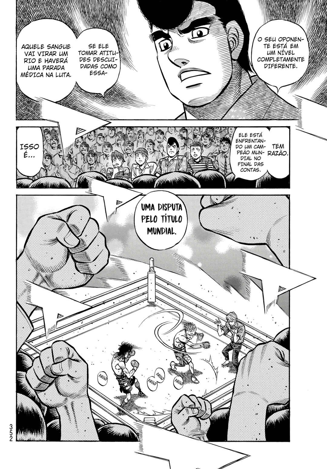 Capítulo 1 - O Primeiro PassoCapítulo 2 - Operação TartarugaCapítulo 3 - Pose de LutaCapítulo 4 - Lágrimas de FelicidadeCapítulo 5 - Uppercut de 1965Capítulo 6 - ShadowboxingCapítulo 7 - TécnicoCapítulo 8 - TreinamentoCapítulo 9 - Gongo da RevancheCapítulo 10 - Coragem do CoraçãoCapítulo 11 - Chance!!Capítulo 12 - Uma Arma InesperadaCapítulo 13 - Poder Destrutivo de 1cmCapítulo 14 - Cardápio do TakamuraCapítulo 15 - Encontro a TrêsCapítulo 16 - Licença de Classe CCapítulo 17 - Mau CaráterCapítulo 18 - Calções ArtesanaisCapítulo 19 - EstreiaCapítulo 20 - Deus!!Capítulo 21 - Parada Médica!?Capítulo 22 - De Repente, SouthpawCapítulo 23 - O Gosto da Primeira VitóriaCapítulo 24 - Peek-a-booCapítulo 25 - ObjetivoCapítulo 26 - AmigoCapítulo 27 - Nome de LutaCapítulo 28 - Pugilista NegroCapítulo 29 - Gancho AssassinoCapítulo 30 - Abertura do Torneio do Rei dos NovatosCapítulo 31 - Iniciativa para a VitóriaCapítulo 32 - Pare Ozuma!!Capítulo 33 - Está Doendo ou Não?Capítulo 34 - Contagem de 9Capítulo 35 - Aplausos para o DerrotadoCapítulo 36 - ShampooCapítulo 37 - AgitaçãoCapítulo 38 - Primeiro ProdígioCapítulo 39 - Ippo na PraiaCapítulo 40 - TreinamentoCapítulo 41 - O Segredo na Sola do PéCapítulo 42 - Pedido para as EstrelasCapítulo 43 - Memorando (Secreto) da VitóriaCapítulo 44 - Campeão FracoCapítulo 45 - ClinchCapítulo 46 - Círculo VazioCapítulo 47 - A Tática AbertaCapítulo 48 - Situação Facilmente PerigosaCapítulo 49 - O Sonho DefinidoCapítulo 50 - Luta pelo Título do Peso Médio do JapãoCapítulo 51 - O Retorno do DesafianteCapítulo 52 - Conferência Sobre o FuturoCapítulo 53 - Assassinato dos InfightersCapítulo 54 - A Força do ShotgunCapítulo 55 - PopularCapítulo 56 - A Face do GênioCapítulo 57 - ManbakenCapítulo 58 - Semifinal do Torneio Rei dos Novatos do Leste JaponêsCapítulo 59 - InesperadoCapítulo 60 - O Wind CarCapítulo 61 - Em Frente como um JavaliCapítulo 62 - A Luta nas CordasCapítulo 63 - Resultado Inesperado!?Capítulo 64 - A Derrota do ProdígioCapítulo 65 - O Primeiro Descanso em TemposCapítulo 66 - A Outra Semi-finalCapítulo 67 - HitmanCapítulo 68 - Ele Está EsperandoCapítulo 69 - Sapatos de BoxeCapítulo 70 - Pássaro Sem AsasCapítulo 71 - Lutando em Uma PernaCapítulo 72 - MensagemCapítulo 73 - Objetivo PerdidoCapítulo 74 - Protagonista do SofrimentoCapítulo 75 - O Irmãos do MashibaCapítulo 76 - Distância de 20cmCapítulo 77 - Punho RevitalizadoCapítulo 78 - Final do Torneio Rei dos Novatos do Leste JaponêsCapítulo 79 - Hitman VS Peek-a-booCapítulo 80 - Muito ForteCapítulo 81 - Murmúrio EstranhoCapítulo 82 - Punho QuebradoCapítulo 83 - Braço Esquerdo CaídoCapítulo 84 - Mashiba Se Levanta como um ReiCapítulo 85 - Energia NegraCapítulo 86 - O Retorno do HitmanCapítulo 87 - Ippo em GlóriaCapítulo 88 - Amante do IppoCapítulo 89 - Eu Adoro Grudar em Alguém!!Capítulo 90 - Sparring InútilCapítulo 91 - Recordação de TokyoCapítulo 92 - Super Doutor YCapítulo 93 - Treino DeliciosoCapítulo 94 - Estrela de OsakaCapítulo 95 - Um Inimigo InesperadoCapítulo 96 - Aumentando a Ansiedade....Capítulo 97 - InjeçãoCapítulo 98 - Grande Sentimento de TemorCapítulo 99 - Sendou PressionaCapítulo 100 - O Punho Direito RecuperadaCapítulo 101 - O Smash ModificadoCapítulo 102 - Foram Essas Palavras que Ele FalouCapítulo 103 - Aquilo que se PareceCapítulo 104 - Sendou no ChãoCapítulo 105 - Surra CompletaCapítulo 106 - Auxiliares, ForaCapítulo 107 - A Dicisão do Rei dos Novatos do JapãoCapítulo 108 - A Estranha CelebraçãoCapítulo 109 - FormaturaCapítulo 110 - Seguidores!?Capítulo 111 - Encontro Acidental com o CampeãoCapítulo 112 - As 9 Pessoas EntreCapítulo 113 - Quando o Punho se CuraCapítulo 114 - Empreste os OmbrosCapítulo 115 - Recupere Seu Estilo de LutaCapítulo 116 - O Soco MágicoCapítulo 117 - O Segredo Atrás da MágicaCapítulo 118 - O Mais Forte CovardeCapítulo 119 - InvejaCapítulo 120 - A Luta Entre Antigo e o Novo Rei dos NovatosCapítulo 121 - CorkscrewCapítulo 122 - O Estilo AdmiradoCapítulo 123 - Admiração do OkitaCapítulo 124 - Aqueles que Ultrapassam os OutrosCapítulo 125 - O Retorno de MiyataCapítulo 126 - Uma Contagem para Superá-losCapítulo 127 - O Homem que Nunca SorriCapítulo 128 - Chances de 1 em 30Capítulo 129 - JoltCapítulo 130 - TempestadeCapítulo 131 - Um Único SorrisoCapítulo 132 - Entrevista de um ÍdoloCapítulo 133 - Dê o Seu Melhor! Gero-MichiCapítulo 134 - O Torneio de Boxe Classe ACapítulo 135 - Eu Sinto MuitoCapítulo 136 - Abandonar ou Não!?Capítulo 137 - Soco de Boas VindasCapítulo 138 - Operação BMGCapítulo 139 - O Anúncio da LutaCapítulo 140 - O Punho Mais Forte VS o Homem Mais RápidoCapítulo 141 - O Homem da AceleraçãoCapítulo 142 - Sumindo com as Mãos e PésCapítulo 143 - Para Todos que Estavam PreocupadosCapítulo 144 - Zona de SegurançaCapítulo 145 - Um Dano Chamado MedoCapítulo 146 - A Declaração para Continuar de PéCapítulo 147 - White FangCapítulo 148 - Minha Canção FavoritaCapítulo 149 - O Tesouro de Gero-MichiCapítulo 150 - O Golpe das Lágrimas no FígadoCapítulo 151 - Grito de GuerraCapítulo 152 - A Luz e a Sombra no RingueCapítulo 153 - As Dúvidas da RaivaCapítulo 154 - Eu Quero Ser uma Gazela!Capítulo 155 - Gazelle PunchCapítulo 156 - A Depressão de um ArtistaCapítulo 157 - Sopa QuenteCapítulo 158 - Véspera das Finais do Torneio Classe ACapítulo 159 - A Fera EnjauladaCapítulo 160 - Você Não Pode FugirCapítulo 161 - Lobo Muito GentilCapítulo 162 - Começa a CaçadaCapítulo 163 - AcreditarCapítulo 164 - A Gazela DesesperadaCapítulo 165 - Aquilo que se Tinha AntesCapítulo 166 - Superando o Talento Natural....Capítulo 167 - Grito de Uma Memória DistanteCapítulo 168 - Exercício sem Oxigênio ExternoCapítulo 169 - O Vencedor em uma BaladaCapítulo 170 - MaçãCapítulo 171 - Entre Encontros e Ser um Bom FilhoCapítulo 172 - 