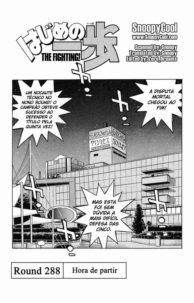 Capítulo 1 - O Primeiro PassoCapítulo 2 - Operação TartarugaCapítulo 3 - Pose de LutaCapítulo 4 - Lágrimas de FelicidadeCapítulo 5 - Uppercut de 1965Capítulo 6 - ShadowboxingCapítulo 7 - TécnicoCapítulo 8 - TreinamentoCapítulo 9 - Gongo da RevancheCapítulo 10 - Coragem do CoraçãoCapítulo 11 - Chance!!Capítulo 12 - Uma Arma InesperadaCapítulo 13 - Poder Destrutivo de 1cmCapítulo 14 - Cardápio do TakamuraCapítulo 15 - Encontro a TrêsCapítulo 16 - Licença de Classe CCapítulo 17 - Mau CaráterCapítulo 18 - Calções ArtesanaisCapítulo 19 - EstreiaCapítulo 20 - Deus!!Capítulo 21 - Parada Médica!?Capítulo 22 - De Repente, SouthpawCapítulo 23 - O Gosto da Primeira VitóriaCapítulo 24 - Peek-a-booCapítulo 25 - ObjetivoCapítulo 26 - AmigoCapítulo 27 - Nome de LutaCapítulo 28 - Pugilista NegroCapítulo 29 - Gancho AssassinoCapítulo 30 - Abertura do Torneio do Rei dos NovatosCapítulo 31 - Iniciativa para a VitóriaCapítulo 32 - Pare Ozuma!!Capítulo 33 - Está Doendo ou Não?Capítulo 34 - Contagem de 9Capítulo 35 - Aplausos para o DerrotadoCapítulo 36 - ShampooCapítulo 37 - AgitaçãoCapítulo 38 - Primeiro ProdígioCapítulo 39 - Ippo na PraiaCapítulo 40 - TreinamentoCapítulo 41 - O Segredo na Sola do PéCapítulo 42 - Pedido para as EstrelasCapítulo 43 - Memorando (Secreto) da VitóriaCapítulo 44 - Campeão FracoCapítulo 45 - ClinchCapítulo 46 - Círculo VazioCapítulo 47 - A Tática AbertaCapítulo 48 - Situação Facilmente PerigosaCapítulo 49 - O Sonho DefinidoCapítulo 50 - Luta pelo Título do Peso Médio do JapãoCapítulo 51 - O Retorno do DesafianteCapítulo 52 - Conferência Sobre o FuturoCapítulo 53 - Assassinato dos InfightersCapítulo 54 - A Força do ShotgunCapítulo 55 - PopularCapítulo 56 - A Face do GênioCapítulo 57 - ManbakenCapítulo 58 - Semifinal do Torneio Rei dos Novatos do Leste JaponêsCapítulo 59 - InesperadoCapítulo 60 - O Wind CarCapítulo 61 - Em Frente como um JavaliCapítulo 62 - A Luta nas CordasCapítulo 63 - Resultado Inesperado!?Capítulo 64 - A Derrota do ProdígioCapítulo 65 - O Primeiro Descanso em TemposCapítulo 66 - A Outra Semi-finalCapítulo 67 - HitmanCapítulo 68 - Ele Está EsperandoCapítulo 69 - Sapatos de BoxeCapítulo 70 - Pássaro Sem AsasCapítulo 71 - Lutando em Uma PernaCapítulo 72 - MensagemCapítulo 73 - Objetivo PerdidoCapítulo 74 - Protagonista do SofrimentoCapítulo 75 - O Irmãos do MashibaCapítulo 76 - Distância de 20cmCapítulo 77 - Punho RevitalizadoCapítulo 78 - Final do Torneio Rei dos Novatos do Leste JaponêsCapítulo 79 - Hitman VS Peek-a-booCapítulo 80 - Muito ForteCapítulo 81 - Murmúrio EstranhoCapítulo 82 - Punho QuebradoCapítulo 83 - Braço Esquerdo CaídoCapítulo 84 - Mashiba Se Levanta como um ReiCapítulo 85 - Energia NegraCapítulo 86 - O Retorno do HitmanCapítulo 87 - Ippo em GlóriaCapítulo 88 - Amante do IppoCapítulo 89 - Eu Adoro Grudar em Alguém!!Capítulo 90 - Sparring InútilCapítulo 91 - Recordação de TokyoCapítulo 92 - Super Doutor YCapítulo 93 - Treino DeliciosoCapítulo 94 - Estrela de OsakaCapítulo 95 - Um Inimigo InesperadoCapítulo 96 - Aumentando a Ansiedade....Capítulo 97 - InjeçãoCapítulo 98 - Grande Sentimento de TemorCapítulo 99 - Sendou PressionaCapítulo 100 - O Punho Direito RecuperadaCapítulo 101 - O Smash ModificadoCapítulo 102 - Foram Essas Palavras que Ele FalouCapítulo 103 - Aquilo que se PareceCapítulo 104 - Sendou no ChãoCapítulo 105 - Surra CompletaCapítulo 106 - Auxiliares, ForaCapítulo 107 - A Dicisão do Rei dos Novatos do JapãoCapítulo 108 - A Estranha CelebraçãoCapítulo 109 - FormaturaCapítulo 110 - Seguidores!?Capítulo 111 - Encontro Acidental com o CampeãoCapítulo 112 - As 9 Pessoas EntreCapítulo 113 - Quando o Punho se CuraCapítulo 114 - Empreste os OmbrosCapítulo 115 - Recupere Seu Estilo de LutaCapítulo 116 - O Soco MágicoCapítulo 117 - O Segredo Atrás da MágicaCapítulo 118 - O Mais Forte CovardeCapítulo 119 - InvejaCapítulo 120 - A Luta Entre Antigo e o Novo Rei dos NovatosCapítulo 121 - CorkscrewCapítulo 122 - O Estilo AdmiradoCapítulo 123 - Admiração do OkitaCapítulo 124 - Aqueles que Ultrapassam os OutrosCapítulo 125 - O Retorno de MiyataCapítulo 126 - Uma Contagem para Superá-losCapítulo 127 - O Homem que Nunca SorriCapítulo 128 - Chances de 1 em 30Capítulo 129 - JoltCapítulo 130 - TempestadeCapítulo 131 - Um Único SorrisoCapítulo 132 - Entrevista de um ÍdoloCapítulo 133 - Dê o Seu Melhor! Gero-MichiCapítulo 134 - O Torneio de Boxe Classe ACapítulo 135 - Eu Sinto MuitoCapítulo 136 - Abandonar ou Não!?Capítulo 137 - Soco de Boas VindasCapítulo 138 - Operação BMGCapítulo 139 - O Anúncio da LutaCapítulo 140 - O Punho Mais Forte VS o Homem Mais RápidoCapítulo 141 - O Homem da AceleraçãoCapítulo 142 - Sumindo com as Mãos e PésCapítulo 143 - Para Todos que Estavam PreocupadosCapítulo 144 - Zona de SegurançaCapítulo 145 - Um Dano Chamado MedoCapítulo 146 - A Declaração para Continuar de PéCapítulo 147 - White FangCapítulo 148 - Minha Canção FavoritaCapítulo 149 - O Tesouro de Gero-MichiCapítulo 150 - O Golpe das Lágrimas no FígadoCapítulo 151 - Grito de GuerraCapítulo 152 - A Luz e a Sombra no RingueCapítulo 153 - As Dúvidas da RaivaCapítulo 154 - Eu Quero Ser uma Gazela!Capítulo 155 - Gazelle PunchCapítulo 156 - A Depressão de um ArtistaCapítulo 157 - Sopa QuenteCapítulo 158 - Véspera das Finais do Torneio Classe ACapítulo 159 - A Fera EnjauladaCapítulo 160 - Você Não Pode FugirCapítulo 161 - Lobo Muito GentilCapítulo 162 - Começa a CaçadaCapítulo 163 - AcreditarCapítulo 164 - A Gazela DesesperadaCapítulo 165 - Aquilo que se Tinha AntesCapítulo 166 - Superando o Talento Natural....Capítulo 167 - Grito de Uma Memória DistanteCapítulo 168 - Exercício sem Oxigênio ExternoCapítulo 169 - O Vencedor em uma BaladaCapítulo 170 - MaçãCapítulo 171 - Entre Encontros e Ser um Bom FilhoCapítulo 172 - 
