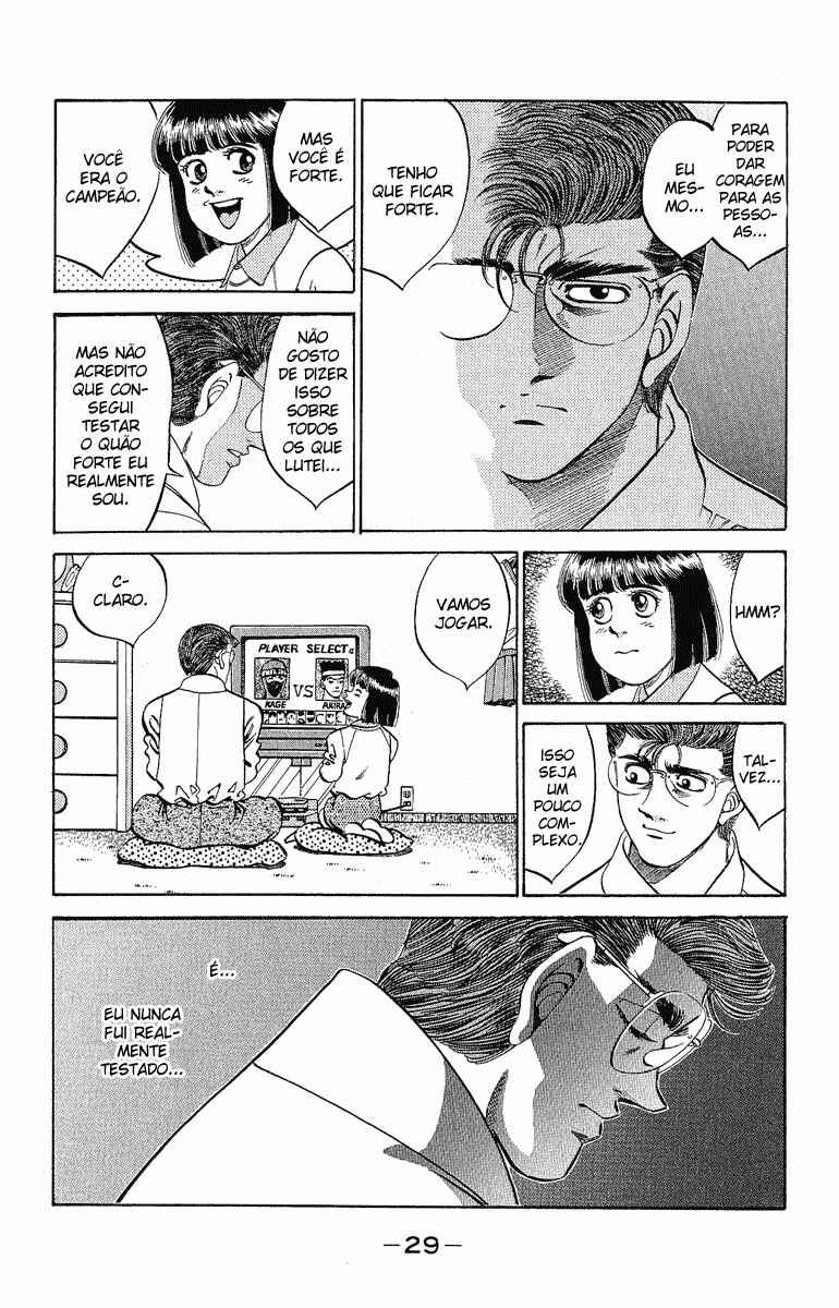 Capítulo 1 - O Primeiro PassoCapítulo 2 - Operação TartarugaCapítulo 3 - Pose de LutaCapítulo 4 - Lágrimas de FelicidadeCapítulo 5 - Uppercut de 1965Capítulo 6 - ShadowboxingCapítulo 7 - TécnicoCapítulo 8 - TreinamentoCapítulo 9 - Gongo da RevancheCapítulo 10 - Coragem do CoraçãoCapítulo 11 - Chance!!Capítulo 12 - Uma Arma InesperadaCapítulo 13 - Poder Destrutivo de 1cmCapítulo 14 - Cardápio do TakamuraCapítulo 15 - Encontro a TrêsCapítulo 16 - Licença de Classe CCapítulo 17 - Mau CaráterCapítulo 18 - Calções ArtesanaisCapítulo 19 - EstreiaCapítulo 20 - Deus!!Capítulo 21 - Parada Médica!?Capítulo 22 - De Repente, SouthpawCapítulo 23 - O Gosto da Primeira VitóriaCapítulo 24 - Peek-a-booCapítulo 25 - ObjetivoCapítulo 26 - AmigoCapítulo 27 - Nome de LutaCapítulo 28 - Pugilista NegroCapítulo 29 - Gancho AssassinoCapítulo 30 - Abertura do Torneio do Rei dos NovatosCapítulo 31 - Iniciativa para a VitóriaCapítulo 32 - Pare Ozuma!!Capítulo 33 - Está Doendo ou Não?Capítulo 34 - Contagem de 9Capítulo 35 - Aplausos para o DerrotadoCapítulo 36 - ShampooCapítulo 37 - AgitaçãoCapítulo 38 - Primeiro ProdígioCapítulo 39 - Ippo na PraiaCapítulo 40 - TreinamentoCapítulo 41 - O Segredo na Sola do PéCapítulo 42 - Pedido para as EstrelasCapítulo 43 - Memorando (Secreto) da VitóriaCapítulo 44 - Campeão FracoCapítulo 45 - ClinchCapítulo 46 - Círculo VazioCapítulo 47 - A Tática AbertaCapítulo 48 - Situação Facilmente PerigosaCapítulo 49 - O Sonho DefinidoCapítulo 50 - Luta pelo Título do Peso Médio do JapãoCapítulo 51 - O Retorno do DesafianteCapítulo 52 - Conferência Sobre o FuturoCapítulo 53 - Assassinato dos InfightersCapítulo 54 - A Força do ShotgunCapítulo 55 - PopularCapítulo 56 - A Face do GênioCapítulo 57 - ManbakenCapítulo 58 - Semifinal do Torneio Rei dos Novatos do Leste JaponêsCapítulo 59 - InesperadoCapítulo 60 - O Wind CarCapítulo 61 - Em Frente como um JavaliCapítulo 62 - A Luta nas CordasCapítulo 63 - Resultado Inesperado!?Capítulo 64 - A Derrota do ProdígioCapítulo 65 - O Primeiro Descanso em TemposCapítulo 66 - A Outra Semi-finalCapítulo 67 - HitmanCapítulo 68 - Ele Está EsperandoCapítulo 69 - Sapatos de BoxeCapítulo 70 - Pássaro Sem AsasCapítulo 71 - Lutando em Uma PernaCapítulo 72 - MensagemCapítulo 73 - Objetivo PerdidoCapítulo 74 - Protagonista do SofrimentoCapítulo 75 - O Irmãos do MashibaCapítulo 76 - Distância de 20cmCapítulo 77 - Punho RevitalizadoCapítulo 78 - Final do Torneio Rei dos Novatos do Leste JaponêsCapítulo 79 - Hitman VS Peek-a-booCapítulo 80 - Muito ForteCapítulo 81 - Murmúrio EstranhoCapítulo 82 - Punho QuebradoCapítulo 83 - Braço Esquerdo CaídoCapítulo 84 - Mashiba Se Levanta como um ReiCapítulo 85 - Energia NegraCapítulo 86 - O Retorno do HitmanCapítulo 87 - Ippo em GlóriaCapítulo 88 - Amante do IppoCapítulo 89 - Eu Adoro Grudar em Alguém!!Capítulo 90 - Sparring InútilCapítulo 91 - Recordação de TokyoCapítulo 92 - Super Doutor YCapítulo 93 - Treino DeliciosoCapítulo 94 - Estrela de OsakaCapítulo 95 - Um Inimigo InesperadoCapítulo 96 - Aumentando a Ansiedade....Capítulo 97 - InjeçãoCapítulo 98 - Grande Sentimento de TemorCapítulo 99 - Sendou PressionaCapítulo 100 - O Punho Direito RecuperadaCapítulo 101 - O Smash ModificadoCapítulo 102 - Foram Essas Palavras que Ele FalouCapítulo 103 - Aquilo que se PareceCapítulo 104 - Sendou no ChãoCapítulo 105 - Surra CompletaCapítulo 106 - Auxiliares, ForaCapítulo 107 - A Dicisão do Rei dos Novatos do JapãoCapítulo 108 - A Estranha CelebraçãoCapítulo 109 - FormaturaCapítulo 110 - Seguidores!?Capítulo 111 - Encontro Acidental com o CampeãoCapítulo 112 - As 9 Pessoas EntreCapítulo 113 - Quando o Punho se CuraCapítulo 114 - Empreste os OmbrosCapítulo 115 - Recupere Seu Estilo de LutaCapítulo 116 - O Soco MágicoCapítulo 117 - O Segredo Atrás da MágicaCapítulo 118 - O Mais Forte CovardeCapítulo 119 - InvejaCapítulo 120 - A Luta Entre Antigo e o Novo Rei dos NovatosCapítulo 121 - CorkscrewCapítulo 122 - O Estilo AdmiradoCapítulo 123 - Admiração do OkitaCapítulo 124 - Aqueles que Ultrapassam os OutrosCapítulo 125 - O Retorno de MiyataCapítulo 126 - Uma Contagem para Superá-losCapítulo 127 - O Homem que Nunca SorriCapítulo 128 - Chances de 1 em 30Capítulo 129 - JoltCapítulo 130 - TempestadeCapítulo 131 - Um Único SorrisoCapítulo 132 - Entrevista de um ÍdoloCapítulo 133 - Dê o Seu Melhor! Gero-MichiCapítulo 134 - O Torneio de Boxe Classe ACapítulo 135 - Eu Sinto MuitoCapítulo 136 - Abandonar ou Não!?Capítulo 137 - Soco de Boas VindasCapítulo 138 - Operação BMGCapítulo 139 - O Anúncio da LutaCapítulo 140 - O Punho Mais Forte VS o Homem Mais RápidoCapítulo 141 - O Homem da AceleraçãoCapítulo 142 - Sumindo com as Mãos e PésCapítulo 143 - Para Todos que Estavam PreocupadosCapítulo 144 - Zona de SegurançaCapítulo 145 - Um Dano Chamado MedoCapítulo 146 - A Declaração para Continuar de PéCapítulo 147 - White FangCapítulo 148 - Minha Canção FavoritaCapítulo 149 - O Tesouro de Gero-MichiCapítulo 150 - O Golpe das Lágrimas no FígadoCapítulo 151 - Grito de GuerraCapítulo 152 - A Luz e a Sombra no RingueCapítulo 153 - As Dúvidas da RaivaCapítulo 154 - Eu Quero Ser uma Gazela!Capítulo 155 - Gazelle PunchCapítulo 156 - A Depressão de um ArtistaCapítulo 157 - Sopa QuenteCapítulo 158 - Véspera das Finais do Torneio Classe ACapítulo 159 - A Fera EnjauladaCapítulo 160 - Você Não Pode FugirCapítulo 161 - Lobo Muito GentilCapítulo 162 - Começa a CaçadaCapítulo 163 - AcreditarCapítulo 164 - A Gazela DesesperadaCapítulo 165 - Aquilo que se Tinha AntesCapítulo 166 - Superando o Talento Natural....Capítulo 167 - Grito de Uma Memória DistanteCapítulo 168 - Exercício sem Oxigênio ExternoCapítulo 169 - O Vencedor em uma BaladaCapítulo 170 - MaçãCapítulo 171 - Entre Encontros e Ser um Bom FilhoCapítulo 172 - 