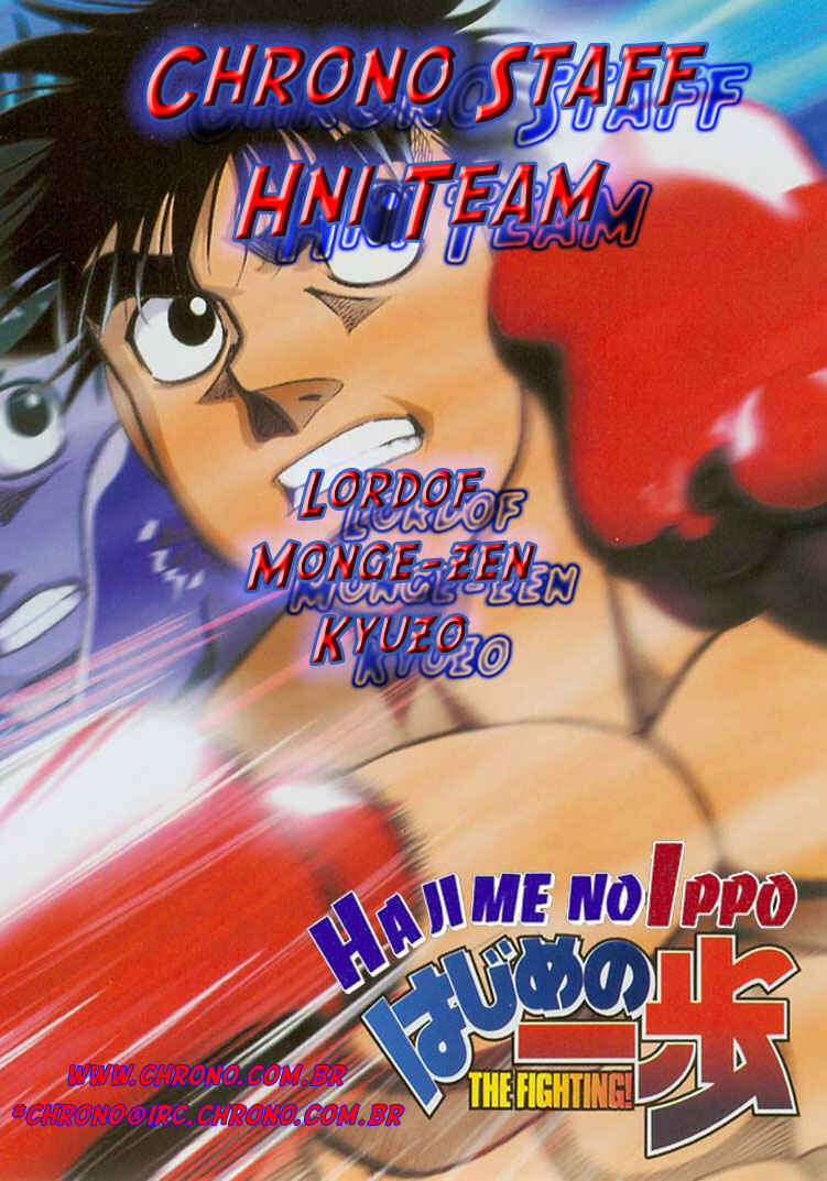 Capítulo 1 - O Primeiro PassoCapítulo 2 - Operação TartarugaCapítulo 3 - Pose de LutaCapítulo 4 - Lágrimas de FelicidadeCapítulo 5 - Uppercut de 1965Capítulo 6 - ShadowboxingCapítulo 7 - TécnicoCapítulo 8 - TreinamentoCapítulo 9 - Gongo da RevancheCapítulo 10 - Coragem do CoraçãoCapítulo 11 - Chance!!Capítulo 12 - Uma Arma InesperadaCapítulo 13 - Poder Destrutivo de 1cmCapítulo 14 - Cardápio do TakamuraCapítulo 15 - Encontro a TrêsCapítulo 16 - Licença de Classe CCapítulo 17 - Mau CaráterCapítulo 18 - Calções ArtesanaisCapítulo 19 - EstreiaCapítulo 20 - Deus!!Capítulo 21 - Parada Médica!?Capítulo 22 - De Repente, SouthpawCapítulo 23 - O Gosto da Primeira VitóriaCapítulo 24 - Peek-a-booCapítulo 25 - ObjetivoCapítulo 26 - AmigoCapítulo 27 - Nome de LutaCapítulo 28 - Pugilista NegroCapítulo 29 - Gancho AssassinoCapítulo 30 - Abertura do Torneio do Rei dos NovatosCapítulo 31 - Iniciativa para a VitóriaCapítulo 32 - Pare Ozuma!!Capítulo 33 - Está Doendo ou Não?Capítulo 34 - Contagem de 9Capítulo 35 - Aplausos para o DerrotadoCapítulo 36 - ShampooCapítulo 37 - AgitaçãoCapítulo 38 - Primeiro ProdígioCapítulo 39 - Ippo na PraiaCapítulo 40 - TreinamentoCapítulo 41 - O Segredo na Sola do PéCapítulo 42 - Pedido para as EstrelasCapítulo 43 - Memorando (Secreto) da VitóriaCapítulo 44 - Campeão FracoCapítulo 45 - ClinchCapítulo 46 - Círculo VazioCapítulo 47 - A Tática AbertaCapítulo 48 - Situação Facilmente PerigosaCapítulo 49 - O Sonho DefinidoCapítulo 50 - Luta pelo Título do Peso Médio do JapãoCapítulo 51 - O Retorno do DesafianteCapítulo 52 - Conferência Sobre o FuturoCapítulo 53 - Assassinato dos InfightersCapítulo 54 - A Força do ShotgunCapítulo 55 - PopularCapítulo 56 - A Face do GênioCapítulo 57 - ManbakenCapítulo 58 - Semifinal do Torneio Rei dos Novatos do Leste JaponêsCapítulo 59 - InesperadoCapítulo 60 - O Wind CarCapítulo 61 - Em Frente como um JavaliCapítulo 62 - A Luta nas CordasCapítulo 63 - Resultado Inesperado!?Capítulo 64 - A Derrota do ProdígioCapítulo 65 - O Primeiro Descanso em TemposCapítulo 66 - A Outra Semi-finalCapítulo 67 - HitmanCapítulo 68 - Ele Está EsperandoCapítulo 69 - Sapatos de BoxeCapítulo 70 - Pássaro Sem AsasCapítulo 71 - Lutando em Uma PernaCapítulo 72 - MensagemCapítulo 73 - Objetivo PerdidoCapítulo 74 - Protagonista do SofrimentoCapítulo 75 - O Irmãos do MashibaCapítulo 76 - Distância de 20cmCapítulo 77 - Punho RevitalizadoCapítulo 78 - Final do Torneio Rei dos Novatos do Leste JaponêsCapítulo 79 - Hitman VS Peek-a-booCapítulo 80 - Muito ForteCapítulo 81 - Murmúrio EstranhoCapítulo 82 - Punho QuebradoCapítulo 83 - Braço Esquerdo CaídoCapítulo 84 - Mashiba Se Levanta como um ReiCapítulo 85 - Energia NegraCapítulo 86 - O Retorno do HitmanCapítulo 87 - Ippo em GlóriaCapítulo 88 - Amante do IppoCapítulo 89 - Eu Adoro Grudar em Alguém!!Capítulo 90 - Sparring InútilCapítulo 91 - Recordação de TokyoCapítulo 92 - Super Doutor YCapítulo 93 - Treino DeliciosoCapítulo 94 - Estrela de OsakaCapítulo 95 - Um Inimigo InesperadoCapítulo 96 - Aumentando a Ansiedade....Capítulo 97 - InjeçãoCapítulo 98 - Grande Sentimento de TemorCapítulo 99 - Sendou PressionaCapítulo 100 - O Punho Direito RecuperadaCapítulo 101 - O Smash ModificadoCapítulo 102 - Foram Essas Palavras que Ele FalouCapítulo 103 - Aquilo que se PareceCapítulo 104 - Sendou no ChãoCapítulo 105 - Surra CompletaCapítulo 106 - Auxiliares, ForaCapítulo 107 - A Dicisão do Rei dos Novatos do JapãoCapítulo 108 - A Estranha CelebraçãoCapítulo 109 - FormaturaCapítulo 110 - Seguidores!?Capítulo 111 - Encontro Acidental com o CampeãoCapítulo 112 - As 9 Pessoas EntreCapítulo 113 - Quando o Punho se CuraCapítulo 114 - Empreste os OmbrosCapítulo 115 - Recupere Seu Estilo de LutaCapítulo 116 - O Soco MágicoCapítulo 117 - O Segredo Atrás da MágicaCapítulo 118 - O Mais Forte CovardeCapítulo 119 - InvejaCapítulo 120 - A Luta Entre Antigo e o Novo Rei dos NovatosCapítulo 121 - CorkscrewCapítulo 122 - O Estilo AdmiradoCapítulo 123 - Admiração do OkitaCapítulo 124 - Aqueles que Ultrapassam os OutrosCapítulo 125 - O Retorno de MiyataCapítulo 126 - Uma Contagem para Superá-losCapítulo 127 - O Homem que Nunca SorriCapítulo 128 - Chances de 1 em 30Capítulo 129 - JoltCapítulo 130 - TempestadeCapítulo 131 - Um Único SorrisoCapítulo 132 - Entrevista de um ÍdoloCapítulo 133 - Dê o Seu Melhor! Gero-MichiCapítulo 134 - O Torneio de Boxe Classe ACapítulo 135 - Eu Sinto MuitoCapítulo 136 - Abandonar ou Não!?Capítulo 137 - Soco de Boas VindasCapítulo 138 - Operação BMGCapítulo 139 - O Anúncio da LutaCapítulo 140 - O Punho Mais Forte VS o Homem Mais RápidoCapítulo 141 - O Homem da AceleraçãoCapítulo 142 - Sumindo com as Mãos e PésCapítulo 143 - Para Todos que Estavam PreocupadosCapítulo 144 - Zona de SegurançaCapítulo 145 - Um Dano Chamado MedoCapítulo 146 - A Declaração para Continuar de PéCapítulo 147 - White FangCapítulo 148 - Minha Canção FavoritaCapítulo 149 - O Tesouro de Gero-MichiCapítulo 150 - O Golpe das Lágrimas no FígadoCapítulo 151 - Grito de GuerraCapítulo 152 - A Luz e a Sombra no RingueCapítulo 153 - As Dúvidas da RaivaCapítulo 154 - Eu Quero Ser uma Gazela!Capítulo 155 - Gazelle PunchCapítulo 156 - A Depressão de um ArtistaCapítulo 157 - Sopa QuenteCapítulo 158 - Véspera das Finais do Torneio Classe ACapítulo 159 - A Fera EnjauladaCapítulo 160 - Você Não Pode FugirCapítulo 161 - Lobo Muito GentilCapítulo 162 - Começa a CaçadaCapítulo 163 - AcreditarCapítulo 164 - A Gazela DesesperadaCapítulo 165 - Aquilo que se Tinha AntesCapítulo 166 - Superando o Talento Natural....Capítulo 167 - Grito de Uma Memória DistanteCapítulo 168 - Exercício sem Oxigênio ExternoCapítulo 169 - O Vencedor em uma BaladaCapítulo 170 - MaçãCapítulo 171 - Entre Encontros e Ser um Bom FilhoCapítulo 172 - 