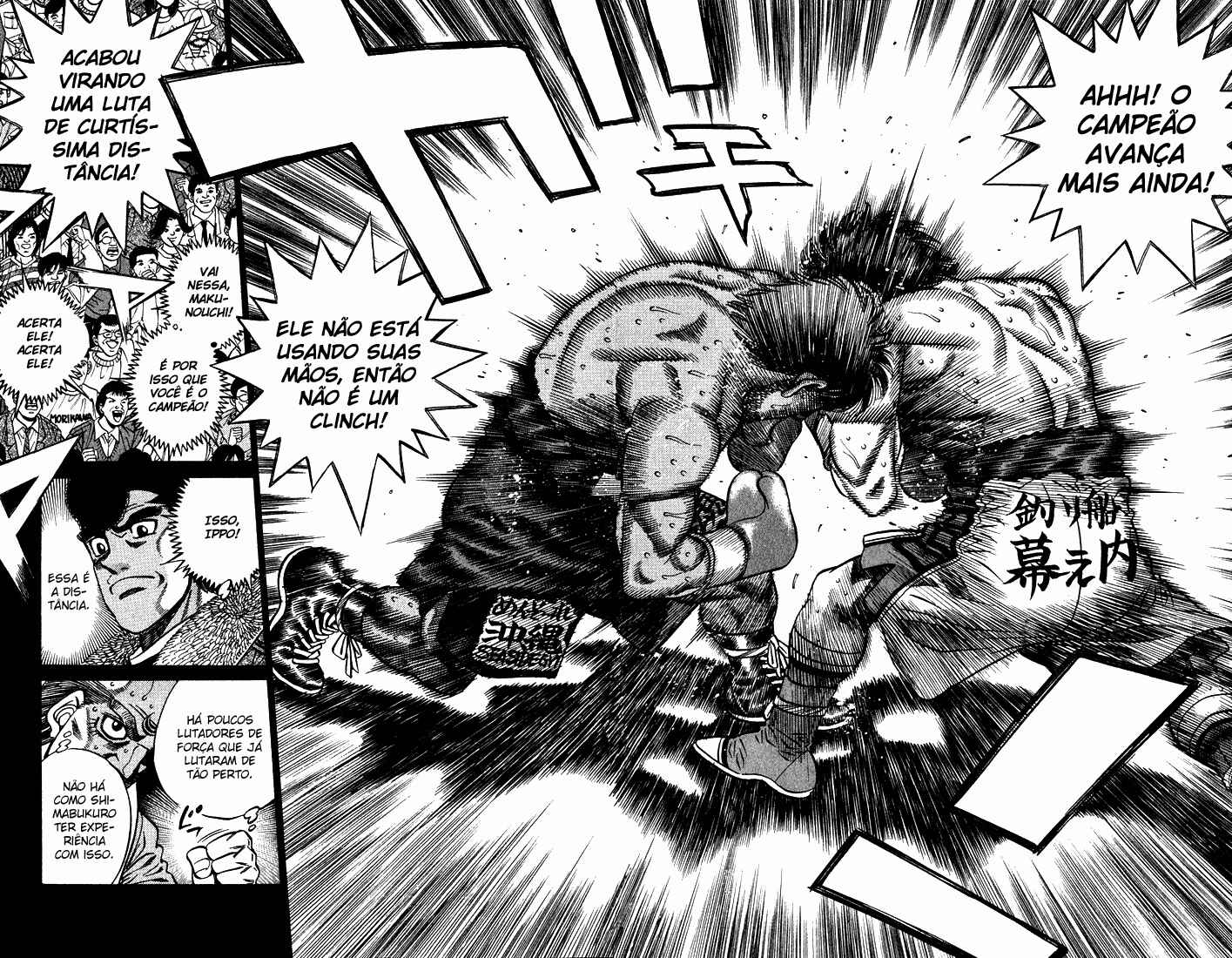 Capítulo 1 - O Primeiro PassoCapítulo 2 - Operação TartarugaCapítulo 3 - Pose de LutaCapítulo 4 - Lágrimas de FelicidadeCapítulo 5 - Uppercut de 1965Capítulo 6 - ShadowboxingCapítulo 7 - TécnicoCapítulo 8 - TreinamentoCapítulo 9 - Gongo da RevancheCapítulo 10 - Coragem do CoraçãoCapítulo 11 - Chance!!Capítulo 12 - Uma Arma InesperadaCapítulo 13 - Poder Destrutivo de 1cmCapítulo 14 - Cardápio do TakamuraCapítulo 15 - Encontro a TrêsCapítulo 16 - Licença de Classe CCapítulo 17 - Mau CaráterCapítulo 18 - Calções ArtesanaisCapítulo 19 - EstreiaCapítulo 20 - Deus!!Capítulo 21 - Parada Médica!?Capítulo 22 - De Repente, SouthpawCapítulo 23 - O Gosto da Primeira VitóriaCapítulo 24 - Peek-a-booCapítulo 25 - ObjetivoCapítulo 26 - AmigoCapítulo 27 - Nome de LutaCapítulo 28 - Pugilista NegroCapítulo 29 - Gancho AssassinoCapítulo 30 - Abertura do Torneio do Rei dos NovatosCapítulo 31 - Iniciativa para a VitóriaCapítulo 32 - Pare Ozuma!!Capítulo 33 - Está Doendo ou Não?Capítulo 34 - Contagem de 9Capítulo 35 - Aplausos para o DerrotadoCapítulo 36 - ShampooCapítulo 37 - AgitaçãoCapítulo 38 - Primeiro ProdígioCapítulo 39 - Ippo na PraiaCapítulo 40 - TreinamentoCapítulo 41 - O Segredo na Sola do PéCapítulo 42 - Pedido para as EstrelasCapítulo 43 - Memorando (Secreto) da VitóriaCapítulo 44 - Campeão FracoCapítulo 45 - ClinchCapítulo 46 - Círculo VazioCapítulo 47 - A Tática AbertaCapítulo 48 - Situação Facilmente PerigosaCapítulo 49 - O Sonho DefinidoCapítulo 50 - Luta pelo Título do Peso Médio do JapãoCapítulo 51 - O Retorno do DesafianteCapítulo 52 - Conferência Sobre o FuturoCapítulo 53 - Assassinato dos InfightersCapítulo 54 - A Força do ShotgunCapítulo 55 - PopularCapítulo 56 - A Face do GênioCapítulo 57 - ManbakenCapítulo 58 - Semifinal do Torneio Rei dos Novatos do Leste JaponêsCapítulo 59 - InesperadoCapítulo 60 - O Wind CarCapítulo 61 - Em Frente como um JavaliCapítulo 62 - A Luta nas CordasCapítulo 63 - Resultado Inesperado!?Capítulo 64 - A Derrota do ProdígioCapítulo 65 - O Primeiro Descanso em TemposCapítulo 66 - A Outra Semi-finalCapítulo 67 - HitmanCapítulo 68 - Ele Está EsperandoCapítulo 69 - Sapatos de BoxeCapítulo 70 - Pássaro Sem AsasCapítulo 71 - Lutando em Uma PernaCapítulo 72 - MensagemCapítulo 73 - Objetivo PerdidoCapítulo 74 - Protagonista do SofrimentoCapítulo 75 - O Irmãos do MashibaCapítulo 76 - Distância de 20cmCapítulo 77 - Punho RevitalizadoCapítulo 78 - Final do Torneio Rei dos Novatos do Leste JaponêsCapítulo 79 - Hitman VS Peek-a-booCapítulo 80 - Muito ForteCapítulo 81 - Murmúrio EstranhoCapítulo 82 - Punho QuebradoCapítulo 83 - Braço Esquerdo CaídoCapítulo 84 - Mashiba Se Levanta como um ReiCapítulo 85 - Energia NegraCapítulo 86 - O Retorno do HitmanCapítulo 87 - Ippo em GlóriaCapítulo 88 - Amante do IppoCapítulo 89 - Eu Adoro Grudar em Alguém!!Capítulo 90 - Sparring InútilCapítulo 91 - Recordação de TokyoCapítulo 92 - Super Doutor YCapítulo 93 - Treino DeliciosoCapítulo 94 - Estrela de OsakaCapítulo 95 - Um Inimigo InesperadoCapítulo 96 - Aumentando a Ansiedade....Capítulo 97 - InjeçãoCapítulo 98 - Grande Sentimento de TemorCapítulo 99 - Sendou PressionaCapítulo 100 - O Punho Direito RecuperadaCapítulo 101 - O Smash ModificadoCapítulo 102 - Foram Essas Palavras que Ele FalouCapítulo 103 - Aquilo que se PareceCapítulo 104 - Sendou no ChãoCapítulo 105 - Surra CompletaCapítulo 106 - Auxiliares, ForaCapítulo 107 - A Dicisão do Rei dos Novatos do JapãoCapítulo 108 - A Estranha CelebraçãoCapítulo 109 - FormaturaCapítulo 110 - Seguidores!?Capítulo 111 - Encontro Acidental com o CampeãoCapítulo 112 - As 9 Pessoas EntreCapítulo 113 - Quando o Punho se CuraCapítulo 114 - Empreste os OmbrosCapítulo 115 - Recupere Seu Estilo de LutaCapítulo 116 - O Soco MágicoCapítulo 117 - O Segredo Atrás da MágicaCapítulo 118 - O Mais Forte CovardeCapítulo 119 - InvejaCapítulo 120 - A Luta Entre Antigo e o Novo Rei dos NovatosCapítulo 121 - CorkscrewCapítulo 122 - O Estilo AdmiradoCapítulo 123 - Admiração do OkitaCapítulo 124 - Aqueles que Ultrapassam os OutrosCapítulo 125 - O Retorno de MiyataCapítulo 126 - Uma Contagem para Superá-losCapítulo 127 - O Homem que Nunca SorriCapítulo 128 - Chances de 1 em 30Capítulo 129 - JoltCapítulo 130 - TempestadeCapítulo 131 - Um Único SorrisoCapítulo 132 - Entrevista de um ÍdoloCapítulo 133 - Dê o Seu Melhor! Gero-MichiCapítulo 134 - O Torneio de Boxe Classe ACapítulo 135 - Eu Sinto MuitoCapítulo 136 - Abandonar ou Não!?Capítulo 137 - Soco de Boas VindasCapítulo 138 - Operação BMGCapítulo 139 - O Anúncio da LutaCapítulo 140 - O Punho Mais Forte VS o Homem Mais RápidoCapítulo 141 - O Homem da AceleraçãoCapítulo 142 - Sumindo com as Mãos e PésCapítulo 143 - Para Todos que Estavam PreocupadosCapítulo 144 - Zona de SegurançaCapítulo 145 - Um Dano Chamado MedoCapítulo 146 - A Declaração para Continuar de PéCapítulo 147 - White FangCapítulo 148 - Minha Canção FavoritaCapítulo 149 - O Tesouro de Gero-MichiCapítulo 150 - O Golpe das Lágrimas no FígadoCapítulo 151 - Grito de GuerraCapítulo 152 - A Luz e a Sombra no RingueCapítulo 153 - As Dúvidas da RaivaCapítulo 154 - Eu Quero Ser uma Gazela!Capítulo 155 - Gazelle PunchCapítulo 156 - A Depressão de um ArtistaCapítulo 157 - Sopa QuenteCapítulo 158 - Véspera das Finais do Torneio Classe ACapítulo 159 - A Fera EnjauladaCapítulo 160 - Você Não Pode FugirCapítulo 161 - Lobo Muito GentilCapítulo 162 - Começa a CaçadaCapítulo 163 - AcreditarCapítulo 164 - A Gazela DesesperadaCapítulo 165 - Aquilo que se Tinha AntesCapítulo 166 - Superando o Talento Natural....Capítulo 167 - Grito de Uma Memória DistanteCapítulo 168 - Exercício sem Oxigênio ExternoCapítulo 169 - O Vencedor em uma BaladaCapítulo 170 - MaçãCapítulo 171 - Entre Encontros e Ser um Bom FilhoCapítulo 172 - 