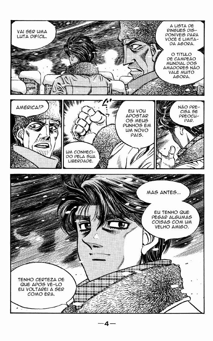 Capítulo 1 - O Primeiro PassoCapítulo 2 - Operação TartarugaCapítulo 3 - Pose de LutaCapítulo 4 - Lágrimas de FelicidadeCapítulo 5 - Uppercut de 1965Capítulo 6 - ShadowboxingCapítulo 7 - TécnicoCapítulo 8 - TreinamentoCapítulo 9 - Gongo da RevancheCapítulo 10 - Coragem do CoraçãoCapítulo 11 - Chance!!Capítulo 12 - Uma Arma InesperadaCapítulo 13 - Poder Destrutivo de 1cmCapítulo 14 - Cardápio do TakamuraCapítulo 15 - Encontro a TrêsCapítulo 16 - Licença de Classe CCapítulo 17 - Mau CaráterCapítulo 18 - Calções ArtesanaisCapítulo 19 - EstreiaCapítulo 20 - Deus!!Capítulo 21 - Parada Médica!?Capítulo 22 - De Repente, SouthpawCapítulo 23 - O Gosto da Primeira VitóriaCapítulo 24 - Peek-a-booCapítulo 25 - ObjetivoCapítulo 26 - AmigoCapítulo 27 - Nome de LutaCapítulo 28 - Pugilista NegroCapítulo 29 - Gancho AssassinoCapítulo 30 - Abertura do Torneio do Rei dos NovatosCapítulo 31 - Iniciativa para a VitóriaCapítulo 32 - Pare Ozuma!!Capítulo 33 - Está Doendo ou Não?Capítulo 34 - Contagem de 9Capítulo 35 - Aplausos para o DerrotadoCapítulo 36 - ShampooCapítulo 37 - AgitaçãoCapítulo 38 - Primeiro ProdígioCapítulo 39 - Ippo na PraiaCapítulo 40 - TreinamentoCapítulo 41 - O Segredo na Sola do PéCapítulo 42 - Pedido para as EstrelasCapítulo 43 - Memorando (Secreto) da VitóriaCapítulo 44 - Campeão FracoCapítulo 45 - ClinchCapítulo 46 - Círculo VazioCapítulo 47 - A Tática AbertaCapítulo 48 - Situação Facilmente PerigosaCapítulo 49 - O Sonho DefinidoCapítulo 50 - Luta pelo Título do Peso Médio do JapãoCapítulo 51 - O Retorno do DesafianteCapítulo 52 - Conferência Sobre o FuturoCapítulo 53 - Assassinato dos InfightersCapítulo 54 - A Força do ShotgunCapítulo 55 - PopularCapítulo 56 - A Face do GênioCapítulo 57 - ManbakenCapítulo 58 - Semifinal do Torneio Rei dos Novatos do Leste JaponêsCapítulo 59 - InesperadoCapítulo 60 - O Wind CarCapítulo 61 - Em Frente como um JavaliCapítulo 62 - A Luta nas CordasCapítulo 63 - Resultado Inesperado!?Capítulo 64 - A Derrota do ProdígioCapítulo 65 - O Primeiro Descanso em TemposCapítulo 66 - A Outra Semi-finalCapítulo 67 - HitmanCapítulo 68 - Ele Está EsperandoCapítulo 69 - Sapatos de BoxeCapítulo 70 - Pássaro Sem AsasCapítulo 71 - Lutando em Uma PernaCapítulo 72 - MensagemCapítulo 73 - Objetivo PerdidoCapítulo 74 - Protagonista do SofrimentoCapítulo 75 - O Irmãos do MashibaCapítulo 76 - Distância de 20cmCapítulo 77 - Punho RevitalizadoCapítulo 78 - Final do Torneio Rei dos Novatos do Leste JaponêsCapítulo 79 - Hitman VS Peek-a-booCapítulo 80 - Muito ForteCapítulo 81 - Murmúrio EstranhoCapítulo 82 - Punho QuebradoCapítulo 83 - Braço Esquerdo CaídoCapítulo 84 - Mashiba Se Levanta como um ReiCapítulo 85 - Energia NegraCapítulo 86 - O Retorno do HitmanCapítulo 87 - Ippo em GlóriaCapítulo 88 - Amante do IppoCapítulo 89 - Eu Adoro Grudar em Alguém!!Capítulo 90 - Sparring InútilCapítulo 91 - Recordação de TokyoCapítulo 92 - Super Doutor YCapítulo 93 - Treino DeliciosoCapítulo 94 - Estrela de OsakaCapítulo 95 - Um Inimigo InesperadoCapítulo 96 - Aumentando a Ansiedade....Capítulo 97 - InjeçãoCapítulo 98 - Grande Sentimento de TemorCapítulo 99 - Sendou PressionaCapítulo 100 - O Punho Direito RecuperadaCapítulo 101 - O Smash ModificadoCapítulo 102 - Foram Essas Palavras que Ele FalouCapítulo 103 - Aquilo que se PareceCapítulo 104 - Sendou no ChãoCapítulo 105 - Surra CompletaCapítulo 106 - Auxiliares, ForaCapítulo 107 - A Dicisão do Rei dos Novatos do JapãoCapítulo 108 - A Estranha CelebraçãoCapítulo 109 - FormaturaCapítulo 110 - Seguidores!?Capítulo 111 - Encontro Acidental com o CampeãoCapítulo 112 - As 9 Pessoas EntreCapítulo 113 - Quando o Punho se CuraCapítulo 114 - Empreste os OmbrosCapítulo 115 - Recupere Seu Estilo de LutaCapítulo 116 - O Soco MágicoCapítulo 117 - O Segredo Atrás da MágicaCapítulo 118 - O Mais Forte CovardeCapítulo 119 - InvejaCapítulo 120 - A Luta Entre Antigo e o Novo Rei dos NovatosCapítulo 121 - CorkscrewCapítulo 122 - O Estilo AdmiradoCapítulo 123 - Admiração do OkitaCapítulo 124 - Aqueles que Ultrapassam os OutrosCapítulo 125 - O Retorno de MiyataCapítulo 126 - Uma Contagem para Superá-losCapítulo 127 - O Homem que Nunca SorriCapítulo 128 - Chances de 1 em 30Capítulo 129 - JoltCapítulo 130 - TempestadeCapítulo 131 - Um Único SorrisoCapítulo 132 - Entrevista de um ÍdoloCapítulo 133 - Dê o Seu Melhor! Gero-MichiCapítulo 134 - O Torneio de Boxe Classe ACapítulo 135 - Eu Sinto MuitoCapítulo 136 - Abandonar ou Não!?Capítulo 137 - Soco de Boas VindasCapítulo 138 - Operação BMGCapítulo 139 - O Anúncio da LutaCapítulo 140 - O Punho Mais Forte VS o Homem Mais RápidoCapítulo 141 - O Homem da AceleraçãoCapítulo 142 - Sumindo com as Mãos e PésCapítulo 143 - Para Todos que Estavam PreocupadosCapítulo 144 - Zona de SegurançaCapítulo 145 - Um Dano Chamado MedoCapítulo 146 - A Declaração para Continuar de PéCapítulo 147 - White FangCapítulo 148 - Minha Canção FavoritaCapítulo 149 - O Tesouro de Gero-MichiCapítulo 150 - O Golpe das Lágrimas no FígadoCapítulo 151 - Grito de GuerraCapítulo 152 - A Luz e a Sombra no RingueCapítulo 153 - As Dúvidas da RaivaCapítulo 154 - Eu Quero Ser uma Gazela!Capítulo 155 - Gazelle PunchCapítulo 156 - A Depressão de um ArtistaCapítulo 157 - Sopa QuenteCapítulo 158 - Véspera das Finais do Torneio Classe ACapítulo 159 - A Fera EnjauladaCapítulo 160 - Você Não Pode FugirCapítulo 161 - Lobo Muito GentilCapítulo 162 - Começa a CaçadaCapítulo 163 - AcreditarCapítulo 164 - A Gazela DesesperadaCapítulo 165 - Aquilo que se Tinha AntesCapítulo 166 - Superando o Talento Natural....Capítulo 167 - Grito de Uma Memória DistanteCapítulo 168 - Exercício sem Oxigênio ExternoCapítulo 169 - O Vencedor em uma BaladaCapítulo 170 - MaçãCapítulo 171 - Entre Encontros e Ser um Bom FilhoCapítulo 172 - 