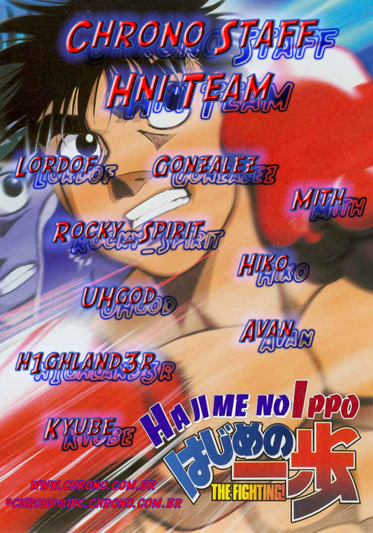 Capítulo 1 - O Primeiro PassoCapítulo 2 - Operação TartarugaCapítulo 3 - Pose de LutaCapítulo 4 - Lágrimas de FelicidadeCapítulo 5 - Uppercut de 1965Capítulo 6 - ShadowboxingCapítulo 7 - TécnicoCapítulo 8 - TreinamentoCapítulo 9 - Gongo da RevancheCapítulo 10 - Coragem do CoraçãoCapítulo 11 - Chance!!Capítulo 12 - Uma Arma InesperadaCapítulo 13 - Poder Destrutivo de 1cmCapítulo 14 - Cardápio do TakamuraCapítulo 15 - Encontro a TrêsCapítulo 16 - Licença de Classe CCapítulo 17 - Mau CaráterCapítulo 18 - Calções ArtesanaisCapítulo 19 - EstreiaCapítulo 20 - Deus!!Capítulo 21 - Parada Médica!?Capítulo 22 - De Repente, SouthpawCapítulo 23 - O Gosto da Primeira VitóriaCapítulo 24 - Peek-a-booCapítulo 25 - ObjetivoCapítulo 26 - AmigoCapítulo 27 - Nome de LutaCapítulo 28 - Pugilista NegroCapítulo 29 - Gancho AssassinoCapítulo 30 - Abertura do Torneio do Rei dos NovatosCapítulo 31 - Iniciativa para a VitóriaCapítulo 32 - Pare Ozuma!!Capítulo 33 - Está Doendo ou Não?Capítulo 34 - Contagem de 9Capítulo 35 - Aplausos para o DerrotadoCapítulo 36 - ShampooCapítulo 37 - AgitaçãoCapítulo 38 - Primeiro ProdígioCapítulo 39 - Ippo na PraiaCapítulo 40 - TreinamentoCapítulo 41 - O Segredo na Sola do PéCapítulo 42 - Pedido para as EstrelasCapítulo 43 - Memorando (Secreto) da VitóriaCapítulo 44 - Campeão FracoCapítulo 45 - ClinchCapítulo 46 - Círculo VazioCapítulo 47 - A Tática AbertaCapítulo 48 - Situação Facilmente PerigosaCapítulo 49 - O Sonho DefinidoCapítulo 50 - Luta pelo Título do Peso Médio do JapãoCapítulo 51 - O Retorno do DesafianteCapítulo 52 - Conferência Sobre o FuturoCapítulo 53 - Assassinato dos InfightersCapítulo 54 - A Força do ShotgunCapítulo 55 - PopularCapítulo 56 - A Face do GênioCapítulo 57 - ManbakenCapítulo 58 - Semifinal do Torneio Rei dos Novatos do Leste JaponêsCapítulo 59 - InesperadoCapítulo 60 - O Wind CarCapítulo 61 - Em Frente como um JavaliCapítulo 62 - A Luta nas CordasCapítulo 63 - Resultado Inesperado!?Capítulo 64 - A Derrota do ProdígioCapítulo 65 - O Primeiro Descanso em TemposCapítulo 66 - A Outra Semi-finalCapítulo 67 - HitmanCapítulo 68 - Ele Está EsperandoCapítulo 69 - Sapatos de BoxeCapítulo 70 - Pássaro Sem AsasCapítulo 71 - Lutando em Uma PernaCapítulo 72 - MensagemCapítulo 73 - Objetivo PerdidoCapítulo 74 - Protagonista do SofrimentoCapítulo 75 - O Irmãos do MashibaCapítulo 76 - Distância de 20cmCapítulo 77 - Punho RevitalizadoCapítulo 78 - Final do Torneio Rei dos Novatos do Leste JaponêsCapítulo 79 - Hitman VS Peek-a-booCapítulo 80 - Muito ForteCapítulo 81 - Murmúrio EstranhoCapítulo 82 - Punho QuebradoCapítulo 83 - Braço Esquerdo CaídoCapítulo 84 - Mashiba Se Levanta como um ReiCapítulo 85 - Energia NegraCapítulo 86 - O Retorno do HitmanCapítulo 87 - Ippo em GlóriaCapítulo 88 - Amante do IppoCapítulo 89 - Eu Adoro Grudar em Alguém!!Capítulo 90 - Sparring InútilCapítulo 91 - Recordação de TokyoCapítulo 92 - Super Doutor YCapítulo 93 - Treino DeliciosoCapítulo 94 - Estrela de OsakaCapítulo 95 - Um Inimigo InesperadoCapítulo 96 - Aumentando a Ansiedade....Capítulo 97 - InjeçãoCapítulo 98 - Grande Sentimento de TemorCapítulo 99 - Sendou PressionaCapítulo 100 - O Punho Direito RecuperadaCapítulo 101 - O Smash ModificadoCapítulo 102 - Foram Essas Palavras que Ele FalouCapítulo 103 - Aquilo que se PareceCapítulo 104 - Sendou no ChãoCapítulo 105 - Surra CompletaCapítulo 106 - Auxiliares, ForaCapítulo 107 - A Dicisão do Rei dos Novatos do JapãoCapítulo 108 - A Estranha CelebraçãoCapítulo 109 - FormaturaCapítulo 110 - Seguidores!?Capítulo 111 - Encontro Acidental com o CampeãoCapítulo 112 - As 9 Pessoas EntreCapítulo 113 - Quando o Punho se CuraCapítulo 114 - Empreste os OmbrosCapítulo 115 - Recupere Seu Estilo de LutaCapítulo 116 - O Soco MágicoCapítulo 117 - O Segredo Atrás da MágicaCapítulo 118 - O Mais Forte CovardeCapítulo 119 - InvejaCapítulo 120 - A Luta Entre Antigo e o Novo Rei dos NovatosCapítulo 121 - CorkscrewCapítulo 122 - O Estilo AdmiradoCapítulo 123 - Admiração do OkitaCapítulo 124 - Aqueles que Ultrapassam os OutrosCapítulo 125 - O Retorno de MiyataCapítulo 126 - Uma Contagem para Superá-losCapítulo 127 - O Homem que Nunca SorriCapítulo 128 - Chances de 1 em 30Capítulo 129 - JoltCapítulo 130 - TempestadeCapítulo 131 - Um Único SorrisoCapítulo 132 - Entrevista de um ÍdoloCapítulo 133 - Dê o Seu Melhor! Gero-MichiCapítulo 134 - O Torneio de Boxe Classe ACapítulo 135 - Eu Sinto MuitoCapítulo 136 - Abandonar ou Não!?Capítulo 137 - Soco de Boas VindasCapítulo 138 - Operação BMGCapítulo 139 - O Anúncio da LutaCapítulo 140 - O Punho Mais Forte VS o Homem Mais RápidoCapítulo 141 - O Homem da AceleraçãoCapítulo 142 - Sumindo com as Mãos e PésCapítulo 143 - Para Todos que Estavam PreocupadosCapítulo 144 - Zona de SegurançaCapítulo 145 - Um Dano Chamado MedoCapítulo 146 - A Declaração para Continuar de PéCapítulo 147 - White FangCapítulo 148 - Minha Canção FavoritaCapítulo 149 - O Tesouro de Gero-MichiCapítulo 150 - O Golpe das Lágrimas no FígadoCapítulo 151 - Grito de GuerraCapítulo 152 - A Luz e a Sombra no RingueCapítulo 153 - As Dúvidas da RaivaCapítulo 154 - Eu Quero Ser uma Gazela!Capítulo 155 - Gazelle PunchCapítulo 156 - A Depressão de um ArtistaCapítulo 157 - Sopa QuenteCapítulo 158 - Véspera das Finais do Torneio Classe ACapítulo 159 - A Fera EnjauladaCapítulo 160 - Você Não Pode FugirCapítulo 161 - Lobo Muito GentilCapítulo 162 - Começa a CaçadaCapítulo 163 - AcreditarCapítulo 164 - A Gazela DesesperadaCapítulo 165 - Aquilo que se Tinha AntesCapítulo 166 - Superando o Talento Natural....Capítulo 167 - Grito de Uma Memória DistanteCapítulo 168 - Exercício sem Oxigênio ExternoCapítulo 169 - O Vencedor em uma BaladaCapítulo 170 - MaçãCapítulo 171 - Entre Encontros e Ser um Bom FilhoCapítulo 172 - 