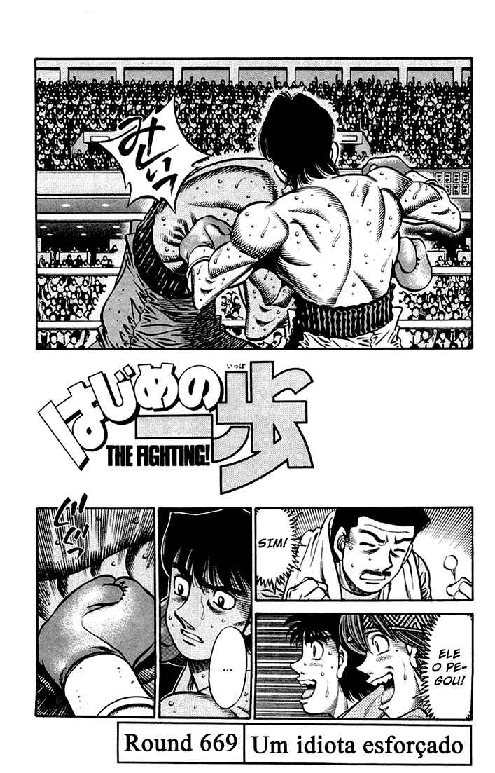 Capítulo 1 - O Primeiro PassoCapítulo 2 - Operação TartarugaCapítulo 3 - Pose de LutaCapítulo 4 - Lágrimas de FelicidadeCapítulo 5 - Uppercut de 1965Capítulo 6 - ShadowboxingCapítulo 7 - TécnicoCapítulo 8 - TreinamentoCapítulo 9 - Gongo da RevancheCapítulo 10 - Coragem do CoraçãoCapítulo 11 - Chance!!Capítulo 12 - Uma Arma InesperadaCapítulo 13 - Poder Destrutivo de 1cmCapítulo 14 - Cardápio do TakamuraCapítulo 15 - Encontro a TrêsCapítulo 16 - Licença de Classe CCapítulo 17 - Mau CaráterCapítulo 18 - Calções ArtesanaisCapítulo 19 - EstreiaCapítulo 20 - Deus!!Capítulo 21 - Parada Médica!?Capítulo 22 - De Repente, SouthpawCapítulo 23 - O Gosto da Primeira VitóriaCapítulo 24 - Peek-a-booCapítulo 25 - ObjetivoCapítulo 26 - AmigoCapítulo 27 - Nome de LutaCapítulo 28 - Pugilista NegroCapítulo 29 - Gancho AssassinoCapítulo 30 - Abertura do Torneio do Rei dos NovatosCapítulo 31 - Iniciativa para a VitóriaCapítulo 32 - Pare Ozuma!!Capítulo 33 - Está Doendo ou Não?Capítulo 34 - Contagem de 9Capítulo 35 - Aplausos para o DerrotadoCapítulo 36 - ShampooCapítulo 37 - AgitaçãoCapítulo 38 - Primeiro ProdígioCapítulo 39 - Ippo na PraiaCapítulo 40 - TreinamentoCapítulo 41 - O Segredo na Sola do PéCapítulo 42 - Pedido para as EstrelasCapítulo 43 - Memorando (Secreto) da VitóriaCapítulo 44 - Campeão FracoCapítulo 45 - ClinchCapítulo 46 - Círculo VazioCapítulo 47 - A Tática AbertaCapítulo 48 - Situação Facilmente PerigosaCapítulo 49 - O Sonho DefinidoCapítulo 50 - Luta pelo Título do Peso Médio do JapãoCapítulo 51 - O Retorno do DesafianteCapítulo 52 - Conferência Sobre o FuturoCapítulo 53 - Assassinato dos InfightersCapítulo 54 - A Força do ShotgunCapítulo 55 - PopularCapítulo 56 - A Face do GênioCapítulo 57 - ManbakenCapítulo 58 - Semifinal do Torneio Rei dos Novatos do Leste JaponêsCapítulo 59 - InesperadoCapítulo 60 - O Wind CarCapítulo 61 - Em Frente como um JavaliCapítulo 62 - A Luta nas CordasCapítulo 63 - Resultado Inesperado!?Capítulo 64 - A Derrota do ProdígioCapítulo 65 - O Primeiro Descanso em TemposCapítulo 66 - A Outra Semi-finalCapítulo 67 - HitmanCapítulo 68 - Ele Está EsperandoCapítulo 69 - Sapatos de BoxeCapítulo 70 - Pássaro Sem AsasCapítulo 71 - Lutando em Uma PernaCapítulo 72 - MensagemCapítulo 73 - Objetivo PerdidoCapítulo 74 - Protagonista do SofrimentoCapítulo 75 - O Irmãos do MashibaCapítulo 76 - Distância de 20cmCapítulo 77 - Punho RevitalizadoCapítulo 78 - Final do Torneio Rei dos Novatos do Leste JaponêsCapítulo 79 - Hitman VS Peek-a-booCapítulo 80 - Muito ForteCapítulo 81 - Murmúrio EstranhoCapítulo 82 - Punho QuebradoCapítulo 83 - Braço Esquerdo CaídoCapítulo 84 - Mashiba Se Levanta como um ReiCapítulo 85 - Energia NegraCapítulo 86 - O Retorno do HitmanCapítulo 87 - Ippo em GlóriaCapítulo 88 - Amante do IppoCapítulo 89 - Eu Adoro Grudar em Alguém!!Capítulo 90 - Sparring InútilCapítulo 91 - Recordação de TokyoCapítulo 92 - Super Doutor YCapítulo 93 - Treino DeliciosoCapítulo 94 - Estrela de OsakaCapítulo 95 - Um Inimigo InesperadoCapítulo 96 - Aumentando a Ansiedade....Capítulo 97 - InjeçãoCapítulo 98 - Grande Sentimento de TemorCapítulo 99 - Sendou PressionaCapítulo 100 - O Punho Direito RecuperadaCapítulo 101 - O Smash ModificadoCapítulo 102 - Foram Essas Palavras que Ele FalouCapítulo 103 - Aquilo que se PareceCapítulo 104 - Sendou no ChãoCapítulo 105 - Surra CompletaCapítulo 106 - Auxiliares, ForaCapítulo 107 - A Dicisão do Rei dos Novatos do JapãoCapítulo 108 - A Estranha CelebraçãoCapítulo 109 - FormaturaCapítulo 110 - Seguidores!?Capítulo 111 - Encontro Acidental com o CampeãoCapítulo 112 - As 9 Pessoas EntreCapítulo 113 - Quando o Punho se CuraCapítulo 114 - Empreste os OmbrosCapítulo 115 - Recupere Seu Estilo de LutaCapítulo 116 - O Soco MágicoCapítulo 117 - O Segredo Atrás da MágicaCapítulo 118 - O Mais Forte CovardeCapítulo 119 - InvejaCapítulo 120 - A Luta Entre Antigo e o Novo Rei dos NovatosCapítulo 121 - CorkscrewCapítulo 122 - O Estilo AdmiradoCapítulo 123 - Admiração do OkitaCapítulo 124 - Aqueles que Ultrapassam os OutrosCapítulo 125 - O Retorno de MiyataCapítulo 126 - Uma Contagem para Superá-losCapítulo 127 - O Homem que Nunca SorriCapítulo 128 - Chances de 1 em 30Capítulo 129 - JoltCapítulo 130 - TempestadeCapítulo 131 - Um Único SorrisoCapítulo 132 - Entrevista de um ÍdoloCapítulo 133 - Dê o Seu Melhor! Gero-MichiCapítulo 134 - O Torneio de Boxe Classe ACapítulo 135 - Eu Sinto MuitoCapítulo 136 - Abandonar ou Não!?Capítulo 137 - Soco de Boas VindasCapítulo 138 - Operação BMGCapítulo 139 - O Anúncio da LutaCapítulo 140 - O Punho Mais Forte VS o Homem Mais RápidoCapítulo 141 - O Homem da AceleraçãoCapítulo 142 - Sumindo com as Mãos e PésCapítulo 143 - Para Todos que Estavam PreocupadosCapítulo 144 - Zona de SegurançaCapítulo 145 - Um Dano Chamado MedoCapítulo 146 - A Declaração para Continuar de PéCapítulo 147 - White FangCapítulo 148 - Minha Canção FavoritaCapítulo 149 - O Tesouro de Gero-MichiCapítulo 150 - O Golpe das Lágrimas no FígadoCapítulo 151 - Grito de GuerraCapítulo 152 - A Luz e a Sombra no RingueCapítulo 153 - As Dúvidas da RaivaCapítulo 154 - Eu Quero Ser uma Gazela!Capítulo 155 - Gazelle PunchCapítulo 156 - A Depressão de um ArtistaCapítulo 157 - Sopa QuenteCapítulo 158 - Véspera das Finais do Torneio Classe ACapítulo 159 - A Fera EnjauladaCapítulo 160 - Você Não Pode FugirCapítulo 161 - Lobo Muito GentilCapítulo 162 - Começa a CaçadaCapítulo 163 - AcreditarCapítulo 164 - A Gazela DesesperadaCapítulo 165 - Aquilo que se Tinha AntesCapítulo 166 - Superando o Talento Natural....Capítulo 167 - Grito de Uma Memória DistanteCapítulo 168 - Exercício sem Oxigênio ExternoCapítulo 169 - O Vencedor em uma BaladaCapítulo 170 - MaçãCapítulo 171 - Entre Encontros e Ser um Bom FilhoCapítulo 172 - 