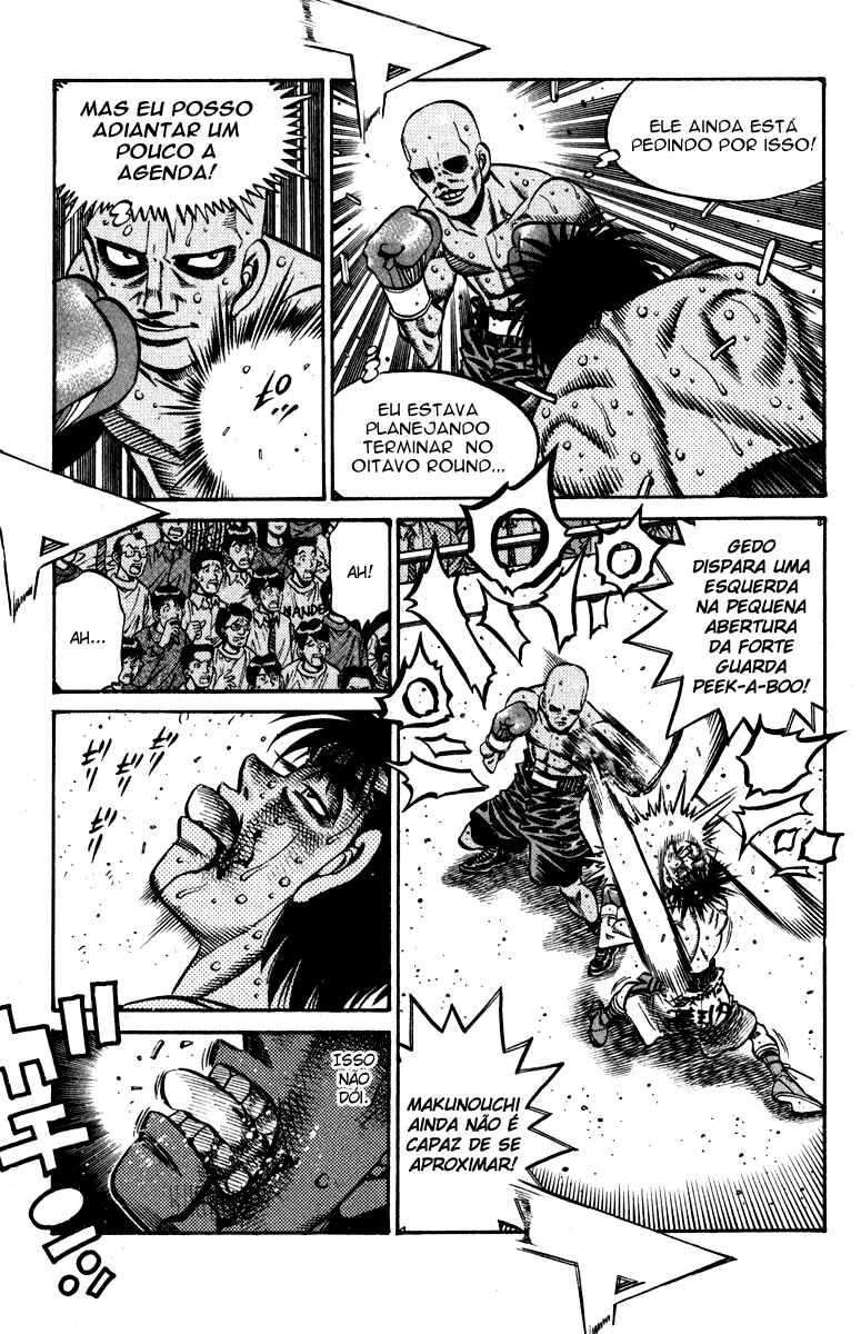 Capítulo 1 - O Primeiro PassoCapítulo 2 - Operação TartarugaCapítulo 3 - Pose de LutaCapítulo 4 - Lágrimas de FelicidadeCapítulo 5 - Uppercut de 1965Capítulo 6 - ShadowboxingCapítulo 7 - TécnicoCapítulo 8 - TreinamentoCapítulo 9 - Gongo da RevancheCapítulo 10 - Coragem do CoraçãoCapítulo 11 - Chance!!Capítulo 12 - Uma Arma InesperadaCapítulo 13 - Poder Destrutivo de 1cmCapítulo 14 - Cardápio do TakamuraCapítulo 15 - Encontro a TrêsCapítulo 16 - Licença de Classe CCapítulo 17 - Mau CaráterCapítulo 18 - Calções ArtesanaisCapítulo 19 - EstreiaCapítulo 20 - Deus!!Capítulo 21 - Parada Médica!?Capítulo 22 - De Repente, SouthpawCapítulo 23 - O Gosto da Primeira VitóriaCapítulo 24 - Peek-a-booCapítulo 25 - ObjetivoCapítulo 26 - AmigoCapítulo 27 - Nome de LutaCapítulo 28 - Pugilista NegroCapítulo 29 - Gancho AssassinoCapítulo 30 - Abertura do Torneio do Rei dos NovatosCapítulo 31 - Iniciativa para a VitóriaCapítulo 32 - Pare Ozuma!!Capítulo 33 - Está Doendo ou Não?Capítulo 34 - Contagem de 9Capítulo 35 - Aplausos para o DerrotadoCapítulo 36 - ShampooCapítulo 37 - AgitaçãoCapítulo 38 - Primeiro ProdígioCapítulo 39 - Ippo na PraiaCapítulo 40 - TreinamentoCapítulo 41 - O Segredo na Sola do PéCapítulo 42 - Pedido para as EstrelasCapítulo 43 - Memorando (Secreto) da VitóriaCapítulo 44 - Campeão FracoCapítulo 45 - ClinchCapítulo 46 - Círculo VazioCapítulo 47 - A Tática AbertaCapítulo 48 - Situação Facilmente PerigosaCapítulo 49 - O Sonho DefinidoCapítulo 50 - Luta pelo Título do Peso Médio do JapãoCapítulo 51 - O Retorno do DesafianteCapítulo 52 - Conferência Sobre o FuturoCapítulo 53 - Assassinato dos InfightersCapítulo 54 - A Força do ShotgunCapítulo 55 - PopularCapítulo 56 - A Face do GênioCapítulo 57 - ManbakenCapítulo 58 - Semifinal do Torneio Rei dos Novatos do Leste JaponêsCapítulo 59 - InesperadoCapítulo 60 - O Wind CarCapítulo 61 - Em Frente como um JavaliCapítulo 62 - A Luta nas CordasCapítulo 63 - Resultado Inesperado!?Capítulo 64 - A Derrota do ProdígioCapítulo 65 - O Primeiro Descanso em TemposCapítulo 66 - A Outra Semi-finalCapítulo 67 - HitmanCapítulo 68 - Ele Está EsperandoCapítulo 69 - Sapatos de BoxeCapítulo 70 - Pássaro Sem AsasCapítulo 71 - Lutando em Uma PernaCapítulo 72 - MensagemCapítulo 73 - Objetivo PerdidoCapítulo 74 - Protagonista do SofrimentoCapítulo 75 - O Irmãos do MashibaCapítulo 76 - Distância de 20cmCapítulo 77 - Punho RevitalizadoCapítulo 78 - Final do Torneio Rei dos Novatos do Leste JaponêsCapítulo 79 - Hitman VS Peek-a-booCapítulo 80 - Muito ForteCapítulo 81 - Murmúrio EstranhoCapítulo 82 - Punho QuebradoCapítulo 83 - Braço Esquerdo CaídoCapítulo 84 - Mashiba Se Levanta como um ReiCapítulo 85 - Energia NegraCapítulo 86 - O Retorno do HitmanCapítulo 87 - Ippo em GlóriaCapítulo 88 - Amante do IppoCapítulo 89 - Eu Adoro Grudar em Alguém!!Capítulo 90 - Sparring InútilCapítulo 91 - Recordação de TokyoCapítulo 92 - Super Doutor YCapítulo 93 - Treino DeliciosoCapítulo 94 - Estrela de OsakaCapítulo 95 - Um Inimigo InesperadoCapítulo 96 - Aumentando a Ansiedade....Capítulo 97 - InjeçãoCapítulo 98 - Grande Sentimento de TemorCapítulo 99 - Sendou PressionaCapítulo 100 - O Punho Direito RecuperadaCapítulo 101 - O Smash ModificadoCapítulo 102 - Foram Essas Palavras que Ele FalouCapítulo 103 - Aquilo que se PareceCapítulo 104 - Sendou no ChãoCapítulo 105 - Surra CompletaCapítulo 106 - Auxiliares, ForaCapítulo 107 - A Dicisão do Rei dos Novatos do JapãoCapítulo 108 - A Estranha CelebraçãoCapítulo 109 - FormaturaCapítulo 110 - Seguidores!?Capítulo 111 - Encontro Acidental com o CampeãoCapítulo 112 - As 9 Pessoas EntreCapítulo 113 - Quando o Punho se CuraCapítulo 114 - Empreste os OmbrosCapítulo 115 - Recupere Seu Estilo de LutaCapítulo 116 - O Soco MágicoCapítulo 117 - O Segredo Atrás da MágicaCapítulo 118 - O Mais Forte CovardeCapítulo 119 - InvejaCapítulo 120 - A Luta Entre Antigo e o Novo Rei dos NovatosCapítulo 121 - CorkscrewCapítulo 122 - O Estilo AdmiradoCapítulo 123 - Admiração do OkitaCapítulo 124 - Aqueles que Ultrapassam os OutrosCapítulo 125 - O Retorno de MiyataCapítulo 126 - Uma Contagem para Superá-losCapítulo 127 - O Homem que Nunca SorriCapítulo 128 - Chances de 1 em 30Capítulo 129 - JoltCapítulo 130 - TempestadeCapítulo 131 - Um Único SorrisoCapítulo 132 - Entrevista de um ÍdoloCapítulo 133 - Dê o Seu Melhor! Gero-MichiCapítulo 134 - O Torneio de Boxe Classe ACapítulo 135 - Eu Sinto MuitoCapítulo 136 - Abandonar ou Não!?Capítulo 137 - Soco de Boas VindasCapítulo 138 - Operação BMGCapítulo 139 - O Anúncio da LutaCapítulo 140 - O Punho Mais Forte VS o Homem Mais RápidoCapítulo 141 - O Homem da AceleraçãoCapítulo 142 - Sumindo com as Mãos e PésCapítulo 143 - Para Todos que Estavam PreocupadosCapítulo 144 - Zona de SegurançaCapítulo 145 - Um Dano Chamado MedoCapítulo 146 - A Declaração para Continuar de PéCapítulo 147 - White FangCapítulo 148 - Minha Canção FavoritaCapítulo 149 - O Tesouro de Gero-MichiCapítulo 150 - O Golpe das Lágrimas no FígadoCapítulo 151 - Grito de GuerraCapítulo 152 - A Luz e a Sombra no RingueCapítulo 153 - As Dúvidas da RaivaCapítulo 154 - Eu Quero Ser uma Gazela!Capítulo 155 - Gazelle PunchCapítulo 156 - A Depressão de um ArtistaCapítulo 157 - Sopa QuenteCapítulo 158 - Véspera das Finais do Torneio Classe ACapítulo 159 - A Fera EnjauladaCapítulo 160 - Você Não Pode FugirCapítulo 161 - Lobo Muito GentilCapítulo 162 - Começa a CaçadaCapítulo 163 - AcreditarCapítulo 164 - A Gazela DesesperadaCapítulo 165 - Aquilo que se Tinha AntesCapítulo 166 - Superando o Talento Natural....Capítulo 167 - Grito de Uma Memória DistanteCapítulo 168 - Exercício sem Oxigênio ExternoCapítulo 169 - O Vencedor em uma BaladaCapítulo 170 - MaçãCapítulo 171 - Entre Encontros e Ser um Bom FilhoCapítulo 172 - 