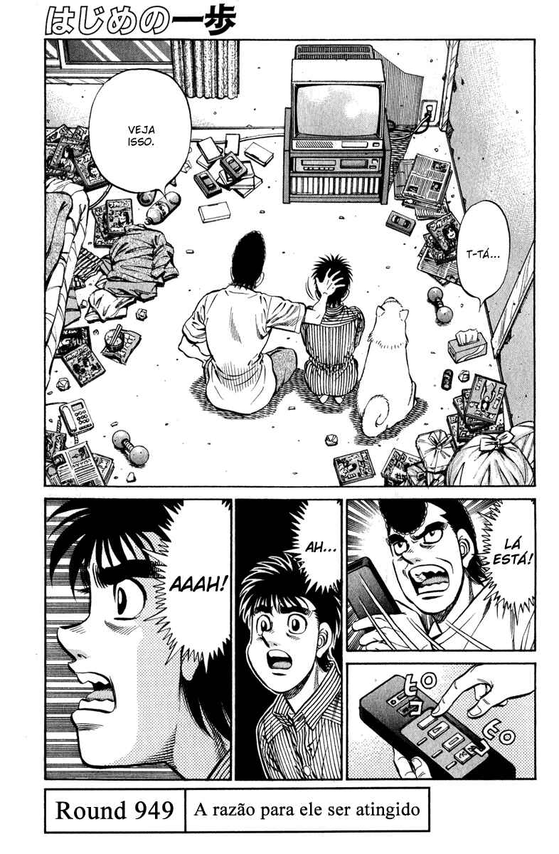 Capítulo 1 - O Primeiro PassoCapítulo 2 - Operação TartarugaCapítulo 3 - Pose de LutaCapítulo 4 - Lágrimas de FelicidadeCapítulo 5 - Uppercut de 1965Capítulo 6 - ShadowboxingCapítulo 7 - TécnicoCapítulo 8 - TreinamentoCapítulo 9 - Gongo da RevancheCapítulo 10 - Coragem do CoraçãoCapítulo 11 - Chance!!Capítulo 12 - Uma Arma InesperadaCapítulo 13 - Poder Destrutivo de 1cmCapítulo 14 - Cardápio do TakamuraCapítulo 15 - Encontro a TrêsCapítulo 16 - Licença de Classe CCapítulo 17 - Mau CaráterCapítulo 18 - Calções ArtesanaisCapítulo 19 - EstreiaCapítulo 20 - Deus!!Capítulo 21 - Parada Médica!?Capítulo 22 - De Repente, SouthpawCapítulo 23 - O Gosto da Primeira VitóriaCapítulo 24 - Peek-a-booCapítulo 25 - ObjetivoCapítulo 26 - AmigoCapítulo 27 - Nome de LutaCapítulo 28 - Pugilista NegroCapítulo 29 - Gancho AssassinoCapítulo 30 - Abertura do Torneio do Rei dos NovatosCapítulo 31 - Iniciativa para a VitóriaCapítulo 32 - Pare Ozuma!!Capítulo 33 - Está Doendo ou Não?Capítulo 34 - Contagem de 9Capítulo 35 - Aplausos para o DerrotadoCapítulo 36 - ShampooCapítulo 37 - AgitaçãoCapítulo 38 - Primeiro ProdígioCapítulo 39 - Ippo na PraiaCapítulo 40 - TreinamentoCapítulo 41 - O Segredo na Sola do PéCapítulo 42 - Pedido para as EstrelasCapítulo 43 - Memorando (Secreto) da VitóriaCapítulo 44 - Campeão FracoCapítulo 45 - ClinchCapítulo 46 - Círculo VazioCapítulo 47 - A Tática AbertaCapítulo 48 - Situação Facilmente PerigosaCapítulo 49 - O Sonho DefinidoCapítulo 50 - Luta pelo Título do Peso Médio do JapãoCapítulo 51 - O Retorno do DesafianteCapítulo 52 - Conferência Sobre o FuturoCapítulo 53 - Assassinato dos InfightersCapítulo 54 - A Força do ShotgunCapítulo 55 - PopularCapítulo 56 - A Face do GênioCapítulo 57 - ManbakenCapítulo 58 - Semifinal do Torneio Rei dos Novatos do Leste JaponêsCapítulo 59 - InesperadoCapítulo 60 - O Wind CarCapítulo 61 - Em Frente como um JavaliCapítulo 62 - A Luta nas CordasCapítulo 63 - Resultado Inesperado!?Capítulo 64 - A Derrota do ProdígioCapítulo 65 - O Primeiro Descanso em TemposCapítulo 66 - A Outra Semi-finalCapítulo 67 - HitmanCapítulo 68 - Ele Está EsperandoCapítulo 69 - Sapatos de BoxeCapítulo 70 - Pássaro Sem AsasCapítulo 71 - Lutando em Uma PernaCapítulo 72 - MensagemCapítulo 73 - Objetivo PerdidoCapítulo 74 - Protagonista do SofrimentoCapítulo 75 - O Irmãos do MashibaCapítulo 76 - Distância de 20cmCapítulo 77 - Punho RevitalizadoCapítulo 78 - Final do Torneio Rei dos Novatos do Leste JaponêsCapítulo 79 - Hitman VS Peek-a-booCapítulo 80 - Muito ForteCapítulo 81 - Murmúrio EstranhoCapítulo 82 - Punho QuebradoCapítulo 83 - Braço Esquerdo CaídoCapítulo 84 - Mashiba Se Levanta como um ReiCapítulo 85 - Energia NegraCapítulo 86 - O Retorno do HitmanCapítulo 87 - Ippo em GlóriaCapítulo 88 - Amante do IppoCapítulo 89 - Eu Adoro Grudar em Alguém!!Capítulo 90 - Sparring InútilCapítulo 91 - Recordação de TokyoCapítulo 92 - Super Doutor YCapítulo 93 - Treino DeliciosoCapítulo 94 - Estrela de OsakaCapítulo 95 - Um Inimigo InesperadoCapítulo 96 - Aumentando a Ansiedade....Capítulo 97 - InjeçãoCapítulo 98 - Grande Sentimento de TemorCapítulo 99 - Sendou PressionaCapítulo 100 - O Punho Direito RecuperadaCapítulo 101 - O Smash ModificadoCapítulo 102 - Foram Essas Palavras que Ele FalouCapítulo 103 - Aquilo que se PareceCapítulo 104 - Sendou no ChãoCapítulo 105 - Surra CompletaCapítulo 106 - Auxiliares, ForaCapítulo 107 - A Dicisão do Rei dos Novatos do JapãoCapítulo 108 - A Estranha CelebraçãoCapítulo 109 - FormaturaCapítulo 110 - Seguidores!?Capítulo 111 - Encontro Acidental com o CampeãoCapítulo 112 - As 9 Pessoas EntreCapítulo 113 - Quando o Punho se CuraCapítulo 114 - Empreste os OmbrosCapítulo 115 - Recupere Seu Estilo de LutaCapítulo 116 - O Soco MágicoCapítulo 117 - O Segredo Atrás da MágicaCapítulo 118 - O Mais Forte CovardeCapítulo 119 - InvejaCapítulo 120 - A Luta Entre Antigo e o Novo Rei dos NovatosCapítulo 121 - CorkscrewCapítulo 122 - O Estilo AdmiradoCapítulo 123 - Admiração do OkitaCapítulo 124 - Aqueles que Ultrapassam os OutrosCapítulo 125 - O Retorno de MiyataCapítulo 126 - Uma Contagem para Superá-losCapítulo 127 - O Homem que Nunca SorriCapítulo 128 - Chances de 1 em 30Capítulo 129 - JoltCapítulo 130 - TempestadeCapítulo 131 - Um Único SorrisoCapítulo 132 - Entrevista de um ÍdoloCapítulo 133 - Dê o Seu Melhor! Gero-MichiCapítulo 134 - O Torneio de Boxe Classe ACapítulo 135 - Eu Sinto MuitoCapítulo 136 - Abandonar ou Não!?Capítulo 137 - Soco de Boas VindasCapítulo 138 - Operação BMGCapítulo 139 - O Anúncio da LutaCapítulo 140 - O Punho Mais Forte VS o Homem Mais RápidoCapítulo 141 - O Homem da AceleraçãoCapítulo 142 - Sumindo com as Mãos e PésCapítulo 143 - Para Todos que Estavam PreocupadosCapítulo 144 - Zona de SegurançaCapítulo 145 - Um Dano Chamado MedoCapítulo 146 - A Declaração para Continuar de PéCapítulo 147 - White FangCapítulo 148 - Minha Canção FavoritaCapítulo 149 - O Tesouro de Gero-MichiCapítulo 150 - O Golpe das Lágrimas no FígadoCapítulo 151 - Grito de GuerraCapítulo 152 - A Luz e a Sombra no RingueCapítulo 153 - As Dúvidas da RaivaCapítulo 154 - Eu Quero Ser uma Gazela!Capítulo 155 - Gazelle PunchCapítulo 156 - A Depressão de um ArtistaCapítulo 157 - Sopa QuenteCapítulo 158 - Véspera das Finais do Torneio Classe ACapítulo 159 - A Fera EnjauladaCapítulo 160 - Você Não Pode FugirCapítulo 161 - Lobo Muito GentilCapítulo 162 - Começa a CaçadaCapítulo 163 - AcreditarCapítulo 164 - A Gazela DesesperadaCapítulo 165 - Aquilo que se Tinha AntesCapítulo 166 - Superando o Talento Natural....Capítulo 167 - Grito de Uma Memória DistanteCapítulo 168 - Exercício sem Oxigênio ExternoCapítulo 169 - O Vencedor em uma BaladaCapítulo 170 - MaçãCapítulo 171 - Entre Encontros e Ser um Bom FilhoCapítulo 172 - 