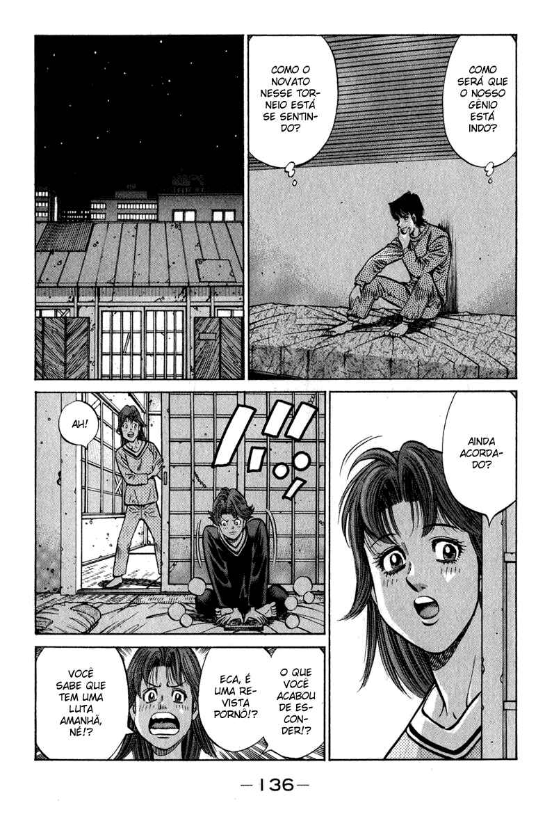 Capítulo 1 - O Primeiro PassoCapítulo 2 - Operação TartarugaCapítulo 3 - Pose de LutaCapítulo 4 - Lágrimas de FelicidadeCapítulo 5 - Uppercut de 1965Capítulo 6 - ShadowboxingCapítulo 7 - TécnicoCapítulo 8 - TreinamentoCapítulo 9 - Gongo da RevancheCapítulo 10 - Coragem do CoraçãoCapítulo 11 - Chance!!Capítulo 12 - Uma Arma InesperadaCapítulo 13 - Poder Destrutivo de 1cmCapítulo 14 - Cardápio do TakamuraCapítulo 15 - Encontro a TrêsCapítulo 16 - Licença de Classe CCapítulo 17 - Mau CaráterCapítulo 18 - Calções ArtesanaisCapítulo 19 - EstreiaCapítulo 20 - Deus!!Capítulo 21 - Parada Médica!?Capítulo 22 - De Repente, SouthpawCapítulo 23 - O Gosto da Primeira VitóriaCapítulo 24 - Peek-a-booCapítulo 25 - ObjetivoCapítulo 26 - AmigoCapítulo 27 - Nome de LutaCapítulo 28 - Pugilista NegroCapítulo 29 - Gancho AssassinoCapítulo 30 - Abertura do Torneio do Rei dos NovatosCapítulo 31 - Iniciativa para a VitóriaCapítulo 32 - Pare Ozuma!!Capítulo 33 - Está Doendo ou Não?Capítulo 34 - Contagem de 9Capítulo 35 - Aplausos para o DerrotadoCapítulo 36 - ShampooCapítulo 37 - AgitaçãoCapítulo 38 - Primeiro ProdígioCapítulo 39 - Ippo na PraiaCapítulo 40 - TreinamentoCapítulo 41 - O Segredo na Sola do PéCapítulo 42 - Pedido para as EstrelasCapítulo 43 - Memorando (Secreto) da VitóriaCapítulo 44 - Campeão FracoCapítulo 45 - ClinchCapítulo 46 - Círculo VazioCapítulo 47 - A Tática AbertaCapítulo 48 - Situação Facilmente PerigosaCapítulo 49 - O Sonho DefinidoCapítulo 50 - Luta pelo Título do Peso Médio do JapãoCapítulo 51 - O Retorno do DesafianteCapítulo 52 - Conferência Sobre o FuturoCapítulo 53 - Assassinato dos InfightersCapítulo 54 - A Força do ShotgunCapítulo 55 - PopularCapítulo 56 - A Face do GênioCapítulo 57 - ManbakenCapítulo 58 - Semifinal do Torneio Rei dos Novatos do Leste JaponêsCapítulo 59 - InesperadoCapítulo 60 - O Wind CarCapítulo 61 - Em Frente como um JavaliCapítulo 62 - A Luta nas CordasCapítulo 63 - Resultado Inesperado!?Capítulo 64 - A Derrota do ProdígioCapítulo 65 - O Primeiro Descanso em TemposCapítulo 66 - A Outra Semi-finalCapítulo 67 - HitmanCapítulo 68 - Ele Está EsperandoCapítulo 69 - Sapatos de BoxeCapítulo 70 - Pássaro Sem AsasCapítulo 71 - Lutando em Uma PernaCapítulo 72 - MensagemCapítulo 73 - Objetivo PerdidoCapítulo 74 - Protagonista do SofrimentoCapítulo 75 - O Irmãos do MashibaCapítulo 76 - Distância de 20cmCapítulo 77 - Punho RevitalizadoCapítulo 78 - Final do Torneio Rei dos Novatos do Leste JaponêsCapítulo 79 - Hitman VS Peek-a-booCapítulo 80 - Muito ForteCapítulo 81 - Murmúrio EstranhoCapítulo 82 - Punho QuebradoCapítulo 83 - Braço Esquerdo CaídoCapítulo 84 - Mashiba Se Levanta como um ReiCapítulo 85 - Energia NegraCapítulo 86 - O Retorno do HitmanCapítulo 87 - Ippo em GlóriaCapítulo 88 - Amante do IppoCapítulo 89 - Eu Adoro Grudar em Alguém!!Capítulo 90 - Sparring InútilCapítulo 91 - Recordação de TokyoCapítulo 92 - Super Doutor YCapítulo 93 - Treino DeliciosoCapítulo 94 - Estrela de OsakaCapítulo 95 - Um Inimigo InesperadoCapítulo 96 - Aumentando a Ansiedade....Capítulo 97 - InjeçãoCapítulo 98 - Grande Sentimento de TemorCapítulo 99 - Sendou PressionaCapítulo 100 - O Punho Direito RecuperadaCapítulo 101 - O Smash ModificadoCapítulo 102 - Foram Essas Palavras que Ele FalouCapítulo 103 - Aquilo que se PareceCapítulo 104 - Sendou no ChãoCapítulo 105 - Surra CompletaCapítulo 106 - Auxiliares, ForaCapítulo 107 - A Dicisão do Rei dos Novatos do JapãoCapítulo 108 - A Estranha CelebraçãoCapítulo 109 - FormaturaCapítulo 110 - Seguidores!?Capítulo 111 - Encontro Acidental com o CampeãoCapítulo 112 - As 9 Pessoas EntreCapítulo 113 - Quando o Punho se CuraCapítulo 114 - Empreste os OmbrosCapítulo 115 - Recupere Seu Estilo de LutaCapítulo 116 - O Soco MágicoCapítulo 117 - O Segredo Atrás da MágicaCapítulo 118 - O Mais Forte CovardeCapítulo 119 - InvejaCapítulo 120 - A Luta Entre Antigo e o Novo Rei dos NovatosCapítulo 121 - CorkscrewCapítulo 122 - O Estilo AdmiradoCapítulo 123 - Admiração do OkitaCapítulo 124 - Aqueles que Ultrapassam os OutrosCapítulo 125 - O Retorno de MiyataCapítulo 126 - Uma Contagem para Superá-losCapítulo 127 - O Homem que Nunca SorriCapítulo 128 - Chances de 1 em 30Capítulo 129 - JoltCapítulo 130 - TempestadeCapítulo 131 - Um Único SorrisoCapítulo 132 - Entrevista de um ÍdoloCapítulo 133 - Dê o Seu Melhor! Gero-MichiCapítulo 134 - O Torneio de Boxe Classe ACapítulo 135 - Eu Sinto MuitoCapítulo 136 - Abandonar ou Não!?Capítulo 137 - Soco de Boas VindasCapítulo 138 - Operação BMGCapítulo 139 - O Anúncio da LutaCapítulo 140 - O Punho Mais Forte VS o Homem Mais RápidoCapítulo 141 - O Homem da AceleraçãoCapítulo 142 - Sumindo com as Mãos e PésCapítulo 143 - Para Todos que Estavam PreocupadosCapítulo 144 - Zona de SegurançaCapítulo 145 - Um Dano Chamado MedoCapítulo 146 - A Declaração para Continuar de PéCapítulo 147 - White FangCapítulo 148 - Minha Canção FavoritaCapítulo 149 - O Tesouro de Gero-MichiCapítulo 150 - O Golpe das Lágrimas no FígadoCapítulo 151 - Grito de GuerraCapítulo 152 - A Luz e a Sombra no RingueCapítulo 153 - As Dúvidas da RaivaCapítulo 154 - Eu Quero Ser uma Gazela!Capítulo 155 - Gazelle PunchCapítulo 156 - A Depressão de um ArtistaCapítulo 157 - Sopa QuenteCapítulo 158 - Véspera das Finais do Torneio Classe ACapítulo 159 - A Fera EnjauladaCapítulo 160 - Você Não Pode FugirCapítulo 161 - Lobo Muito GentilCapítulo 162 - Começa a CaçadaCapítulo 163 - AcreditarCapítulo 164 - A Gazela DesesperadaCapítulo 165 - Aquilo que se Tinha AntesCapítulo 166 - Superando o Talento Natural....Capítulo 167 - Grito de Uma Memória DistanteCapítulo 168 - Exercício sem Oxigênio ExternoCapítulo 169 - O Vencedor em uma BaladaCapítulo 170 - MaçãCapítulo 171 - Entre Encontros e Ser um Bom FilhoCapítulo 172 - 