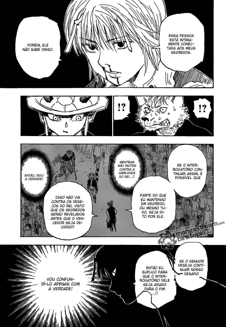 Capítulo 0 - Memórias de Kurapika - parte 1Capítulo 0.5 - Memórias de Kurapika - parte 2Capítulo 1Capítulo 2Capítulo 3Capítulo 4Capítulo 5Capítulo 6Capítulo 7Capítulo 8Capítulo 9Capítulo 10Capítulo 11Capítulo 12Capítulo 13Capítulo 14Capítulo 15Capítulo 16Capítulo 17Capítulo 18Capítulo 19Capítulo 20Capítulo 21Capítulo 22Capítulo 23Capítulo 24Capítulo 25Capítulo 26Capítulo 27Capítulo 28Capítulo 29Capítulo 30Capítulo 31Capítulo 32Capítulo 33Capítulo 34Capítulo 35Capítulo 36Capítulo 37Capítulo 38Capítulo 39Capítulo 40Capítulo 41Capítulo 42Capítulo 43Capítulo 44Capítulo 45Capítulo 46Capítulo 47Capítulo 48Capítulo 49Capítulo 50Capítulo 51Capítulo 52Capítulo 54Capítulo 55Capítulo 56Capítulo 57Capítulo 58Capítulo 59Capítulo 60Capítulo 61Capítulo 62Capítulo 63Capítulo 64Capítulo 65Capítulo 66Capítulo 67Capítulo 68Capítulo 69Capítulo 70Capítulo 71Capítulo 72Capítulo 73Capítulo 74Capítulo 75Capítulo 76Capítulo 77Capítulo 78Capítulo 79Capítulo 80Capítulo 81Capítulo 82Capítulo 83Capítulo 84Capítulo 85Capítulo 86Capítulo 87Capítulo 88Capítulo 89Capítulo 90Capítulo 91Capítulo 92Capítulo 93Capítulo 94Capítulo 95Capítulo 96Capítulo 97Capítulo 98Capítulo 99Capítulo 100Capítulo 101Capítulo 102Capítulo 103Capítulo 104Capítulo 105Capítulo 106Capítulo 107Capítulo 108Capítulo 109Capítulo 110Capítulo 111Capítulo 112Capítulo 113Capítulo 114Capítulo 115Capítulo 116Capítulo 117Capítulo 118Capítulo 119Capítulo 120Capítulo 121Capítulo 122Capítulo 123Capítulo 124Capítulo 125Capítulo 126Capítulo 127Capítulo 128Capítulo 129Capítulo 130Capítulo 131Capítulo 132Capítulo 133Capítulo 134Capítulo 135Capítulo 136Capítulo 137Capítulo 138Capítulo 139Capítulo 140Capítulo 141Capítulo 142Capítulo 143Capítulo 144Capítulo 145Capítulo 146Capítulo 147Capítulo 148Capítulo 149Capítulo 150Capítulo 151Capítulo 152Capítulo 153Capítulo 154Capítulo 155Capítulo 156Capítulo 157Capítulo 158Capítulo 159Capítulo 160Capítulo 161Capítulo 162Capítulo 163Capítulo 164Capítulo 165Capítulo 166Capítulo 167Capítulo 168Capítulo 169Capítulo 170Capítulo 171Capítulo 172Capítulo 173Capítulo 174Capítulo 175Capítulo 176Capítulo 177Capítulo 178Capítulo 179Capítulo 180Capítulo 181Capítulo 182Capítulo 183Capítulo 184Capítulo 185Capítulo 186Capítulo 187Capítulo 188Capítulo 189Capítulo 190Capítulo 191Capítulo 192Capítulo 193Capítulo 194Capítulo 195Capítulo 196Capítulo 197Capítulo 198Capítulo 199Capítulo 200Capítulo 201Capítulo 202Capítulo 203Capítulo 204Capítulo 205Capítulo 206Capítulo 207Capítulo 208Capítulo 209Capítulo 210Capítulo 211Capítulo 212Capítulo 213Capítulo 214Capítulo 215Capítulo 216Capítulo 217Capítulo 218Capítulo 219Capítulo 220Capítulo 221Capítulo 222Capítulo 223Capítulo 224Capítulo 225Capítulo 226Capítulo 227Capítulo 228Capítulo 229Capítulo 230Capítulo 231Capítulo 232Capítulo 233Capítulo 234Capítulo 235Capítulo 236Capítulo 237Capítulo 238Capítulo 239Capítulo 240Capítulo 241Capítulo 242Capítulo 243Capítulo 244Capítulo 245Capítulo 246Capítulo 247Capítulo 248Capítulo 249Capítulo 250Capítulo 251Capítulo 252Capítulo 253Capítulo 254Capítulo 255Capítulo 256Capítulo 257Capítulo 258Capítulo 259Capítulo 260Capítulo 261Capítulo 262Capítulo 263Capítulo 264Capítulo 265Capítulo 266Capítulo 267Capítulo 268Capítulo 269Capítulo 270Capítulo 271Capítulo 272Capítulo 273Capítulo 274Capítulo 275Capítulo 276Capítulo 277Capítulo 278Capítulo 279Capítulo 280Capítulo 281 - KanmaruCapítulo 282 - SeladoCapítulo 283 - DecisãoCapítulo 284 - 15 MinutosCapítulo 285 - ClonesCapítulo 286 - Corpo PrincipalCapítulo 287 - SituaçãoCapítulo 288 - AdmiraçãoCapítulo 289 - CondiçãoCapítulo 290 - NomeCapítulo 291 - Perguntando a si mesmoCapítulo 292 - ExpectativasCapítulo 293 - MetamorfoseCapítulo 294 - RupturaCapítulo 295 - DeterminaçãoCapítulo 296 - MemóriasCapítulo 297 - O FimCapítulo 298 - RosaCapítulo 299 - RenascimentoCapítulo 300 - GarantiaCapítulo 301 - MemóriasCapítulo 302 - AlvoCapítulo 303 - AflicãoCapítulo 304 - MágicaCapítulo 305 - MágoaCapítulo 306 - AlívioCapítulo 307 - PerdaCapítulo 308 - FlashCapítulo 309 - CompetiçãoCapítulo 310 - ComeçarCapítulo 311 - Limite de TempoCapítulo 312 - ResoluçãoCapítulo 313 - Uma única palavraCapítulo 314 - PersuasãoCapítulo 315 - De Volta para CasaCapítulo 316 - Nome VerdadeiroCapítulo 317 - RespostaCapítulo 318 - TestamentoCapítulo 319 - VotaçãoCapítulo 320 - EleiçãoCapítulo 321 - Besta EstranhaCapítulo 322 - IrmãosCapítulo 323 - PedidoCapítulo 324 - MordomosCapítulo 325 - Entrando na BatalhaCapítulo 326 - A Abertura de BatalhaCapítulo 327 - EnigmaCapítulo 328 - PreparativosCapítulo 329 - EspiãoCapítulo 330 - CofissãoCapítulo 331 - Dia XCapítulo 332 - AplausoCapítulo 333 - EstrondoCapítulo 334 - Derrota CompletaCapítulo 335 - DecisãoCapítulo 336 - CancelarCapítulo 337 - ConfissãoCapítulo 338 - Na ÁrvoreCapítulo 339 - SilêncioCapítulo 340 - Missão EspecialCapítulo 340.5 - Memórias de Kurapika - Parte 1Capítulo 340.6 - Memórias de Kurapika - Parte 2Capítulo 341 - CalamidadesCapítulo 342 - DesafioCapítulo 343 - ConviteCapítulo 344 - AutorCapítulo 345 - AssinnaturaCapítulo 346 - OpçõesCapítulo 347Capítulo 348Capítulo 349Capítulo 350Capítulo 351Capítulo 352Capítulo 353Capítulo 354Capítulo 355Capítulo 356Capítulo 357Capítulo 358Capítulo 359Capítulo 360Capítulo 361Capítulo 362Capítulo 363Capítulo 364Capítulo 365Capítulo 366Capítulo 367Capítulo 368Capítulo 369Capítulo 370Capítulo 371Capítulo 372Capítulo 373Capítulo 374Capítulo 375Capítulo 376Capítulo 377Capítulo 378Capítulo 379Capítulo 380Capítulo 381Capítulo 382Capítulo 383Capítulo 384Capítulo 385Capítulo 385Capítulo 386 - HipóteseCapítulo 387Capítulo 387 - RetornoCapítulo 388