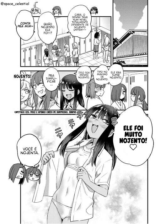 Capítulo 0Capítulo 1 - Senpai, você é um pouco...Capítulo 2 - Te observar é divertidoCapítulo 3 - Senpai, por favor, saia comigoCapítulo 4 - Parece que o desejo do Senpai foi realizado!!Capítulo 4.5 - Senpai, o que você imaginou?Capítulo 5 - Por favor, escove seus dentes, SenpaiCapítulo 6 - Fala tu, Senpai!Capítulo 7 - Senpai, ainda tem espuma nas suas mãos!Capítulo 7.5 - O que você esperava, Senpai?Capítulo 8 - Senpai, você é um pouco...Capítulo 8.1 - Omake 1: Senpai, quem te deu chocolate...?Capítulo 8.2 - Omake 2: Eu fiz o Senpai ter pensamento sujos? ❤Capítulo 9 - Senpai, você é um alvo fácilCapítulo 10 - Senpai! Tsundere, Tsundere!Capítulo 10.1 - Senpai, me elogieCapítulo 10.3 - White DayCapítulo 11 - Senpai, Chega Ai~Capítulo 12 - Senpai, vamos jogar um jogoCapítulo 13 - Nop, esse desenho é do senpaiCapítulo 14 - Senpai está com medo ~Capítulo 14.2 - Omake 2: Você parece ser sensível, senpaiCapítulo 14.4 - Omake 2: Senpai esta me espiandoCapítulo 15 - Senpai, seus braços são tão finos!!Capítulo 16 - Senpai é felpudo ~Capítulo 17 - Ei, senpai?Capítulo 18 - Vamos fazer isso de novo outra hora, senpaiCapítulo 19 - Que nojo, senpai ~Capítulo 20 - Valeu, senpai...Capítulo 21 - Valeu, senpai!!Capítulo 22 - Senpai! Vamos pra praia ~ !!Capítulo 23 - Deixa que eu passo em você, ♡ senpaiCapítulo 23.1 - Omake 1: E ai, senpai!! Olha meu bambolê!Capítulo 23.2 - Omake 2: Vamos motivar o senpaiCapítulo 23.3Capítulo 23.4 - Extra: Você é totalmente nojento, SenpaiCapítulo 24 - Senpai, quer ir ao festival?Capítulo 25 - Não me segura, senpai~Capítulo 26 - Isso parece um encontro, senpai!♡Capítulo 27 - Vamos para casa, senpai!Capítulo 27.5 - Levanta aí, senpai!Capítulo 28 - Eu vi aquilo, senpai...Capítulo 29 - Fica quieto, senpai!Capítulo 30 - Vamos jogar pedra papel tesoura, senpai!!!Capítulo 30.5Capítulo 31 - Te falta um espírito aventureiro, senpai.Capítulo 32 - Senpai é um grande pervertido!Capítulo 33 - Então você trouxe um bento.Capítulo 34 - Sem chance do nojento do senpai ter uma encontro de verdade!Capítulo 34.5 - Capítulo EspecialCapítulo 35 - Nós não nos tornariamos as senpais do paisen?Capítulo 36 - Você me fez fazer isso, SenpaiCapítulo 37 - O Senpai tá BrisandoCapítulo 38 - Vamos fazer isso, Senpai!!Capítulo 38.5 - ExtrasCapítulo 39 - O que você acha, senpai?Capítulo 40 - Você não é honesto, senpai!~ ♡Capítulo 41 - Você está bem, senpai?Capítulo 42 - Você está subestimando essa competição não é, senpai?Capítulo 43 - Você definitivamente pode travar uma boa luta senpai!!Capítulo 44 - Não subestime a Toro CatCapítulo 45 - A primavera finalmente chegou para o nosso impopular senpai?Capítulo 46 - Ela está falando que há "amor", senpai.Capítulo 46.5 - Volume 6 ExtrasCapítulo 47 - Nós somos próximos afinal~Capítulo 48 - É uma predição realista do seu futuro, senpai.Capítulo 49 - Você é o protagonista!Capítulo 50 - Você está e convidando, senpai?Capítulo 51 - Me dê uma mãozinha e me ensine tudo, senpaiCapítulo 52 - Você têm algum problema com o meu senpai...?Capítulo 53 - Senpai, coloca em mim, rápido~♡Capítulo 53.5 - Volume 7 ExtrasCapítulo 54 - Então você lê mangás shoujo, senpaiCapítulo 55 - Então... eu vou chupar o seu~♡Capítulo 56 - Qual o problema? Senpai~?Capítulo 57 - Foi uma frase bem legal~ vindo de você, paisen!!Capítulo 58 - Senpai... você ouviu... o que eu falei...?Capítulo 59 - Pode entrar, Senpai-kun.Capítulo 60 - Senpai... obrigada... por vir.Capítulo 61 - Senpai... Sobre o Que Você Conversou Com a minha Irmã...?Capítulo 62 - Então Você Quer Saber... Meu Nome... Senpai!Capítulo 62.5 - Volume 8 ExtrasCapítulo 63 - Dia~ SenpaiCapítulo 64 - Então Esse é o Seu Quarto, Senpai?Capítulo 64.5 - Nagatoro-san x Tejina Senpai CrossoverCapítulo 65 - Cuida da Casa Pra Mim. Okay, Senpa~i♥Capítulo 66 - Você é Só o Senpai!Capítulo 67 - Não Vou te Falar, Senpai♡Capítulo 68 - Bem... Estou Cheia, Senpai!Capítulo 69 - Você Vai Ficar Sozinho No Natal Não é? Senpai!!Capítulo 70 - Então Vou Te Dar Um Também, Senpai...Capítulo 70.5Capítulo 71 - Então, Qual a Sua Sorte Esse Ano, Senpai?Capítulo 72 - Então, o Que Você Pediu, Senpai?Capítulo 73 - Então Você usa Lentes de Contato, Senpai!!Capítulo 74 - É Exatamente o Que eu Esperava de Você, Senpai.Capítulo 75 - Não Foi Nada Mal, Senpai.Capítulo 76 - Que Tal Tentar se Exercitar um Pouco, Paisen?Capítulo 77 - Você definitivamente não está interessado em nada disso, Senpai!!!Capítulo 78 - Você Tava Morreeendo de Medo, Senpai~!Capítulo 78.5 - Extra do Volume 10Capítulo 79 - O Que Foi, Senpai?Capítulo 80 - ...se você vencer uma única partida, senpaiCapítulo 81 - Não esperava acabar do mesmo jeito que você, SenpaiCapítulo 82 - Vamos lá! O que você quer faze!? Senpai!Capítulo 83 - Hachiouji senpai cuidou muito bem de mimCapítulo 84 - Foi porquê você a encontrou, senpaiCapítulo 85 - Você não se sente sozinho quanto eu não estou por perto, senpai?Capítulo 86 - Senpai, vamos juntos!!Capítulo 87 - Cuidando dela nas sombras. Essa é a "irmã mais velha perfeita"!Capítulo 88 - A gente só tá praticando pro seu encontro, ok, Senpai!?Capítulo 89 - Vou te dizer sua nota, senpaiCapítulo 90 - Entãp... Vamos fazer algo digno de um encontro de verdadeCapítulo 91 - E então, Senpai, vai querer?Capítulo 92 - Afinal de contas, eu realmente quero surpreender o senpaiCapítulo 93 - Senpai...você tá baixando a guardaCapítulo 94 - Ah, senpai...esse cara é...Capítulo 94.5 - Extras do volume 12Capítulo 95 - Você consegue NagatoroCapítulo 96 - Você tem algum problema com o meu senpai...?Capítulo 97 - Ah senpai, dá pra ver que você tá nervosoCapítulo 98 - Que tal, senpai?Capítulo 99 - Senpai...Você aproveitou sua cota de bunda e peitos?Capítulo 100 - Se estivéssemos no mesmo ano letivo...Capítulo 101 - Senpai, seu idiota!!Capítu