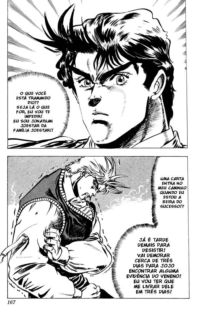Capítulo 1 - A vinda de DioCapítulo 2 - Um novo amigoCapítulo 3 - Querida ErinaCapítulo 4 - Vão vou perderCapítulo 5 - Danny em chamasCapítulo 6 - Uma carta do passadoCapítulo 7 - O juramento para o paiCapítulo 8 - Batalha na Rua OgreCapítulo 9 - O experimento vivo para a máscaraCapítulo 10 - A sede de sangueCapítulo 11 - Transcendendo a humanidadeCapítulo 12 - Os dois anéisCapítulo 13 - Monstro imortalCapítulo 14 - Ataque dos mortos vivosCapítulo 15 - Acertando a juventude com Dio!Capítulo 16 - Estátua da deusa do amorCapítulo 17 - Rosto nostálgicoCapítulo 18 - Jack, o vilão e Zepelli o exêntricoCapítulo 19 - A energia milagrosaCapítulo 20 - Tragédia em alto marCapítulo 21 - Cidade malditaCapítulo 22 - Retalhe seus medosCapítulo 23 - Vento do norte e vikingsCapítulo 24 - Convite para uma armadilhaCapítulo 25 - O poder da máscara que congela o sangueCapítulo 26 - Os cavaleiros negrosCapítulo 27 - Demônio vingativo do passadoCapítulo 28 - Os heróis dos 72 anéisCapítulo 29 - A maldição do cavaleiro negroCapítulo 30 - Durma como um heróiCapítulo 31 - Ruínas de um cavaleiroCapítulo 32 - A sala de decapitação do dragãoCapítulo 33 - A coragem do amanhãCapítulo 34 - A profecia do anciãoCapítulo 35 - Exploda-o com fúria!Capítulo 36 - Os três de um país distante.Capítulo 37 - O monstro DubeeCapítulo 38 - Ataque cortante da cruz do trovãoCapítulo 39 - Batalha de sangue Jojo vs Dio!Capítulo 40 - Fogo e geloCapítulo 41 - O fim de um demônioCapítulo 42 - Prefácio a tempestadeCapítulo 43 - O Hamon finalCapítulo 44 - No esquecimento