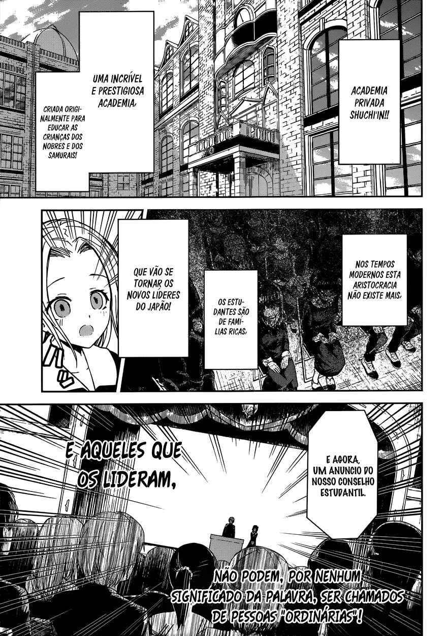 Capítulo 1 - Eu quero ser convidada para o cinemaCapítulo 2 - Eu quero jogar micoCapítulo 3 - Kaguya não sabe muitoCapítulo 4Capítulo 5 - Kaguya quer comerCapítulo 5.5 - ExtraCapítulo 6 - Shirogane Miyuki quer esconderCapítulo 7 - Quer ir em uma ViagemCapítulo 8 - Kaguya quer ser RespondidaCapítulo 9 - Kaguya quer CaminharCapítulo 10 - O Conselho Estudantil quer fazer uma BrincadeiraCapítulo 10.5Capítulo 11 - Kaguya quer TrocarCapítulo 12 - Kaguya quer ser IntrometidaCapítulo 13 - Kaguya quer ser indiretaCapítulo 14 - Shirogane miyuki não fez issoCapítulo 15 - Shirogami miyuki quer fugirCapítulo 16 - Kaguya quer fazer direitoCapítulo 17 - Kaguya quer adorarCapítulo 18 - O conselho estudantil quer conversarCapítulo 19 - Kaguya quer ser enviadaCapítulo 20 - Miyuki shirogane quer falarCapítulo 20.5 - ExtraCapítulo 21 - Kaguya quer segurarCapítulo 22 - Chika fujiwara quer ser comidaCapítulo 23 - Miyuki shirogane quer mostrarCapítulo 24 - Ishigami yu quer sobreviverCapítulo 25 - Kaguya quer ser notadaCapítulo 26 - Miyuki shirogane quer trabalharCapítulo 27 - Kaguya tenta resistirCapítulo 27.5 - ExtraCapítulo 28 - Fujiwara chika quer testarCapítulo 29 - Kaguya quer se juntarCapítulo 30 - Hayasaka ai quer defenderCapítulo 31 - Shirogane miyuki não pode perderCapítulo 32 - Kaguya quer ser odiadaCapítulo 33 - Kaguya quer oferecerCapítulo 34 - Fujiwara chika quer visitarCapítulo 35 - Em relação a shinomiya kaguya, parte 1Capítulo 36 - Miyuki shirogane quer cantarCapítulo 37 - Kaguya não vai cederCapítulo 38 - Kaguya quer perdoarCapítulo 39 - Kaguya quer ser chamadaCapítulo 40 - Shirogane miyuki quer viajarCapítulo 41 - Shirogane miyuki quer se encontrarCapítulo 42 - Hayasaka ai quer mergulharCapítulo 43 - Fujiwara chika quer comerCapítulo 44 - Eu não consigo ouvir os fogos,parte 1Capítulo 45 - Eu não consigo ouvir os fogos,parte 2Capítulo 46 - Kaguya não quer fugirCapítulo 47 - Kaguya quer escolherCapítulo 48 - O conselho estudantil não fezCapítulo 49 - Shirogane miyuki quer prepararCapítulo 50 - Nagisa kashiwagi não consegue assistirCapítulo 51 - Kaguya quer comemorarCapítulo 52 - Kaguya quer perguntarCapítulo 53 - Kaguya quer darCapítulo 54 - Chika fujiwara quer confirmarCapítulo 55 - Assim, yu ishigami fechou seus olhos, parte 1Capítulo 56 - Miyuki shirogane quer observarCapítulo 57 - Kaguya quer se casarCapítulo 58 - Ai hayasaka quer seduzirCapítulo 59 - O 67° conselho estudantilCapítulo 60Capítulo 61 - Kaguya quer uma confissãoCapítulo 62Capítulo 63 - Miyuki shirogane quer ser popularCapítulo 64 - Nagisa kashiwagi quer consolarCapítulo 65 - Miko lino quer corrigirCapítulo 66 - Kaguya quer eliminarCapítulo 67 - Miko lino não pode ser ridicularizadaCapítulo 68 - Eu quero fazer a miko lino sorrirCapítulo 69 - Kaguya não quer ser chamadaCapítulo 70 - Kaguya quer tirarCapítulo 71 - Kaguya quer produzirCapítulo 72 - Miko lino quer restringirCapítulo 73 - Shirogame miyuki quer lerCapítulo 74 - Kaguya♡AquárioCapítulo 75 - Kaguya quer coletarCapítulo 76 - Nagisa kashiwagi é irritanteCapítulo 77 - Chika fujiwara quer obter informaçãoCapítulo 78 - Kaguya não está assustadaCapítulo 79 - Kaguya quer ser examinadaCapítulo 80 - Assim, yu ishigami fechou seus olhos, parte 2Capítulo 81 - Kaguya quer tocarCapítulo 82 - Kaguya não vai recusarCapítulo 83 - Kai shirogane não consegue dizer issoCapítulo 84 - Miyuki shirogane quer dançarCapítulo 85 - Osaragui kobashi quer controlarCapítulo 86 - Shirogane pai quer perguntarCapítulo 87 - Festival de atletismo da shuuichiinCapítulo 88 - Assim, yu ishigami fechou seus olhos, parte 3Capítulo 89 - Miyuki shirogane e yu ishigamiCapítulo 90 - Kyoko ootomo não percebeCapítulo 91 - Chika Fujiwara Quer Fazer CrescerCapítulo 92 - Eu Quero Fazer a Kaguya CorarCapítulo 93 - Kaguya Quer Tirá-lo de LáCapítulo 94 - Kaguya Quer InterromperCapítulo 95 - Miko Iino Quer RelaxarCapítulo 96 - Kaguya Quer Alimentar EleCapítulo 97 - Nagisa Kashiwagi Quer Matá-loCapítulo 101 - O Conselho Estudantil Quer Ser Fotografado, Parte 2Capítulo 102 - Kaguya-sama Não PercebeCapítulo 103 - Miyuki Shirogane Quer MediarCapítulo 104 - O Desafio Impossível de Kaguya Shinomiya: “A Concha Koyasugai”, Parte 1Capítulo 105 - Yu Ishigami Quer ResponderCapítulo 106 - Chika Fujiwara Quer Uma Festa do PijamaCapítulo 107 - Chika Fujiwara Quer Manter o RitmoCapítulo 108 - Ai Hayasaka Quer Dizer AlgoCapítulo 109 - Maki Shijo Quer Pedir AjudaCapítulo 110 - Yu Ishigami Quer ConversarCapítulo 111 - O Conselho Estudantil Quer AvançarCapítulo 112 - Miyuki Shirogane Quer Receber Uma Confissão, Parte 1Capítulo 113 - Miyuki Shirogane Quer Receber Uma Confissão, Parte 2Capítulo 114 - Miyuki Shirogane Quer Receber Uma Confissão, Parte 3Capítulo 115 - Miko Iino Não Consegue Amar, Parte 1Capítulo 116 - Queremos Falar Sobre o Festival CulturalCapítulo 117 - Chika Fujiwara Quer LutarCapítulo 118 - Miyuki Shirogane Quer ExpandirCapítulo 119 - Kei Shirogane Quer se ExibirCapítulo 120 - Sobre Kaguya Shinomiya, Parte 2Capítulo 121 - Primeiro Ano, PrimaveraCapítulo 122 - Kaguya Quer se Confessar, Parte 1Capítulo 123 - Festival Cultural da KaguyaCapítulo 124 - Festival Cultural do Yu IshigamiCapítulo 125 - Kozue Makihara Quer BrincarCapítulo 126 - Chika Fujiwara Quer Acertar as ContasCapítulo 127 - Festival Cultural de Miyuki ShiroganeCapítulo 128 - Kaguya Quer Derrubá-losCapítulo 129 - Miyuki Shirogane Quer Receber Uma Confissão, Parte 4Capítulo 130 - Tsubame Koyasu Quer Rejeitá-loCapítulo 131 - Miyuki Shirogane Quer Receber Uma Confissão, Parte 5Capítulo 132 - Kaguya Quer Se Confessar, Parte 2Capítulo 133 - Kaguya Quer Se Confessar, Parte 3Capítulo 134 - Confissões Duplas, Parte 1Capítulo 135 - Confissões Duplas, Parte 2Capítulo 136 - Confissões Duplas, Parte 3Capítulo 137 - O Pós-festa da Shuchi’inCapítulo 138 - Kaguya Quer ExplicarCapítulo 139 -