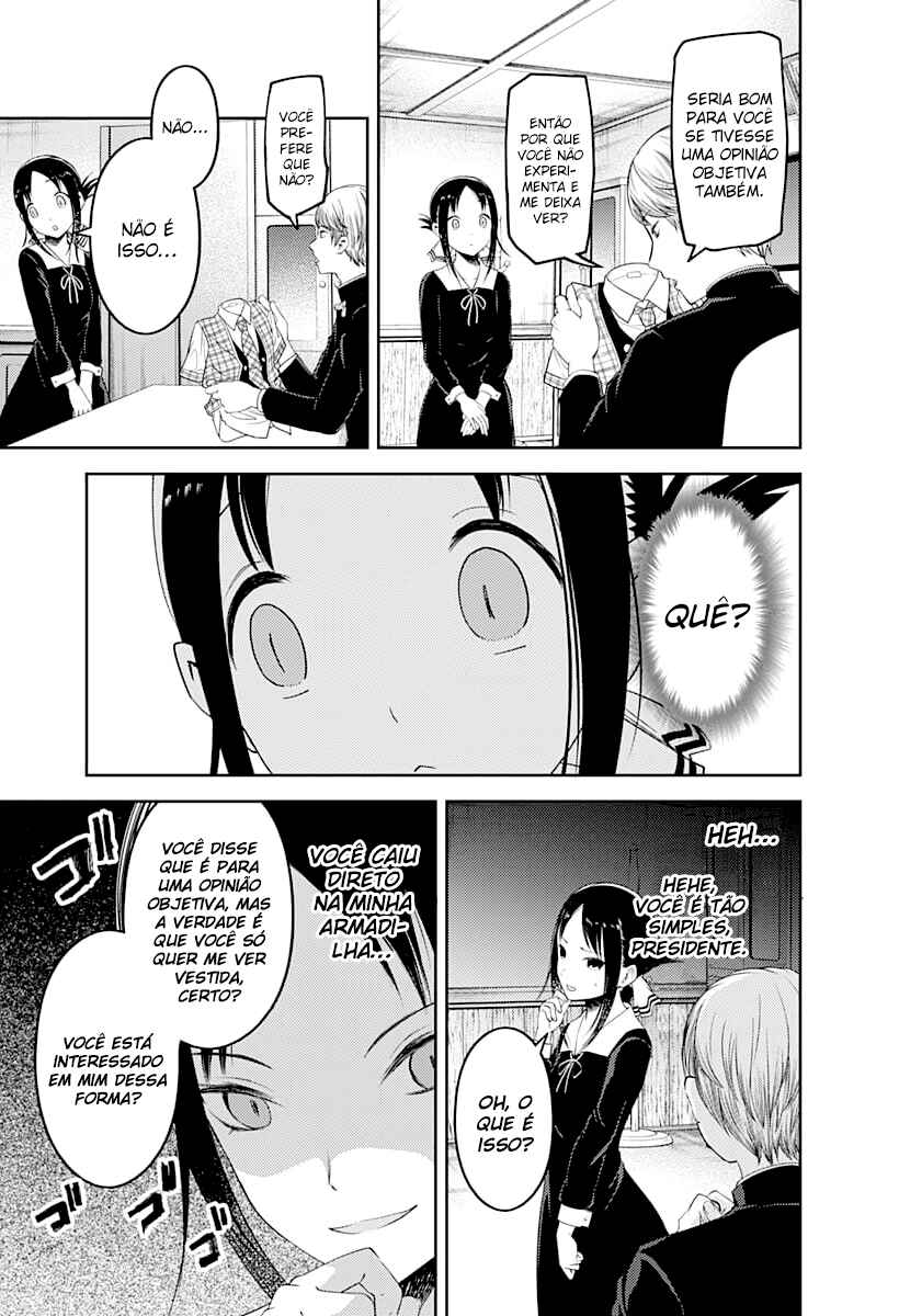 Capítulo 1 - Eu quero ser convidada para o cinemaCapítulo 2 - Eu quero jogar micoCapítulo 3 - Kaguya não sabe muitoCapítulo 4Capítulo 5 - Kaguya quer comerCapítulo 5.5 - ExtraCapítulo 6 - Shirogane Miyuki quer esconderCapítulo 7 - Quer ir em uma ViagemCapítulo 8 - Kaguya quer ser RespondidaCapítulo 9 - Kaguya quer CaminharCapítulo 10 - O Conselho Estudantil quer fazer uma BrincadeiraCapítulo 10.5Capítulo 11 - Kaguya quer TrocarCapítulo 12 - Kaguya quer ser IntrometidaCapítulo 13 - Kaguya quer ser indiretaCapítulo 14 - Shirogane miyuki não fez issoCapítulo 15 - Shirogami miyuki quer fugirCapítulo 16 - Kaguya quer fazer direitoCapítulo 17 - Kaguya quer adorarCapítulo 18 - O conselho estudantil quer conversarCapítulo 19 - Kaguya quer ser enviadaCapítulo 20 - Miyuki shirogane quer falarCapítulo 20.5 - ExtraCapítulo 21 - Kaguya quer segurarCapítulo 22 - Chika fujiwara quer ser comidaCapítulo 23 - Miyuki shirogane quer mostrarCapítulo 24 - Ishigami yu quer sobreviverCapítulo 25 - Kaguya quer ser notadaCapítulo 26 - Miyuki shirogane quer trabalharCapítulo 27 - Kaguya tenta resistirCapítulo 27.5 - ExtraCapítulo 28 - Fujiwara chika quer testarCapítulo 29 - Kaguya quer se juntarCapítulo 30 - Hayasaka ai quer defenderCapítulo 31 - Shirogane miyuki não pode perderCapítulo 32 - Kaguya quer ser odiadaCapítulo 33 - Kaguya quer oferecerCapítulo 34 - Fujiwara chika quer visitarCapítulo 35 - Em relação a shinomiya kaguya, parte 1Capítulo 36 - Miyuki shirogane quer cantarCapítulo 37 - Kaguya não vai cederCapítulo 38 - Kaguya quer perdoarCapítulo 39 - Kaguya quer ser chamadaCapítulo 40 - Shirogane miyuki quer viajarCapítulo 41 - Shirogane miyuki quer se encontrarCapítulo 42 - Hayasaka ai quer mergulharCapítulo 43 - Fujiwara chika quer comerCapítulo 44 - Eu não consigo ouvir os fogos,parte 1Capítulo 45 - Eu não consigo ouvir os fogos,parte 2Capítulo 46 - Kaguya não quer fugirCapítulo 47 - Kaguya quer escolherCapítulo 48 - O conselho estudantil não fezCapítulo 49 - Shirogane miyuki quer prepararCapítulo 50 - Nagisa kashiwagi não consegue assistirCapítulo 51 - Kaguya quer comemorarCapítulo 52 - Kaguya quer perguntarCapítulo 53 - Kaguya quer darCapítulo 54 - Chika fujiwara quer confirmarCapítulo 55 - Assim, yu ishigami fechou seus olhos, parte 1Capítulo 56 - Miyuki shirogane quer observarCapítulo 57 - Kaguya quer se casarCapítulo 58 - Ai hayasaka quer seduzirCapítulo 59 - O 67° conselho estudantilCapítulo 60Capítulo 61 - Kaguya quer uma confissãoCapítulo 62Capítulo 63 - Miyuki shirogane quer ser popularCapítulo 64 - Nagisa kashiwagi quer consolarCapítulo 65 - Miko lino quer corrigirCapítulo 66 - Kaguya quer eliminarCapítulo 67 - Miko lino não pode ser ridicularizadaCapítulo 68 - Eu quero fazer a miko lino sorrirCapítulo 69 - Kaguya não quer ser chamadaCapítulo 70 - Kaguya quer tirarCapítulo 71 - Kaguya quer produzirCapítulo 72 - Miko lino quer restringirCapítulo 73 - Shirogame miyuki quer lerCapítulo 74 - Kaguya♡AquárioCapítulo 75 - Kaguya quer coletarCapítulo 76 - Nagisa kashiwagi é irritanteCapítulo 77 - Chika fujiwara quer obter informaçãoCapítulo 78 - Kaguya não está assustadaCapítulo 79 - Kaguya quer ser examinadaCapítulo 80 - Assim, yu ishigami fechou seus olhos, parte 2Capítulo 81 - Kaguya quer tocarCapítulo 82 - Kaguya não vai recusarCapítulo 83 - Kai shirogane não consegue dizer issoCapítulo 84 - Miyuki shirogane quer dançarCapítulo 85 - Osaragui kobashi quer controlarCapítulo 86 - Shirogane pai quer perguntarCapítulo 87 - Festival de atletismo da shuuichiinCapítulo 88 - Assim, yu ishigami fechou seus olhos, parte 3Capítulo 89 - Miyuki shirogane e yu ishigamiCapítulo 90 - Kyoko ootomo não percebeCapítulo 91 - Chika Fujiwara Quer Fazer CrescerCapítulo 92 - Eu Quero Fazer a Kaguya CorarCapítulo 93 - Kaguya Quer Tirá-lo de LáCapítulo 94 - Kaguya Quer InterromperCapítulo 95 - Miko Iino Quer RelaxarCapítulo 96 - Kaguya Quer Alimentar EleCapítulo 97 - Nagisa Kashiwagi Quer Matá-loCapítulo 101 - O Conselho Estudantil Quer Ser Fotografado, Parte 2Capítulo 102 - Kaguya-sama Não PercebeCapítulo 103 - Miyuki Shirogane Quer MediarCapítulo 104 - O Desafio Impossível de Kaguya Shinomiya: “A Concha Koyasugai”, Parte 1Capítulo 105 - Yu Ishigami Quer ResponderCapítulo 106 - Chika Fujiwara Quer Uma Festa do PijamaCapítulo 107 - Chika Fujiwara Quer Manter o RitmoCapítulo 108 - Ai Hayasaka Quer Dizer AlgoCapítulo 109 - Maki Shijo Quer Pedir AjudaCapítulo 110 - Yu Ishigami Quer ConversarCapítulo 111 - O Conselho Estudantil Quer AvançarCapítulo 112 - Miyuki Shirogane Quer Receber Uma Confissão, Parte 1Capítulo 113 - Miyuki Shirogane Quer Receber Uma Confissão, Parte 2Capítulo 114 - Miyuki Shirogane Quer Receber Uma Confissão, Parte 3Capítulo 115 - Miko Iino Não Consegue Amar, Parte 1Capítulo 116 - Queremos Falar Sobre o Festival CulturalCapítulo 117 - Chika Fujiwara Quer LutarCapítulo 118 - Miyuki Shirogane Quer ExpandirCapítulo 119 - Kei Shirogane Quer se ExibirCapítulo 120 - Sobre Kaguya Shinomiya, Parte 2Capítulo 121 - Primeiro Ano, PrimaveraCapítulo 122 - Kaguya Quer se Confessar, Parte 1Capítulo 123 - Festival Cultural da KaguyaCapítulo 124 - Festival Cultural do Yu IshigamiCapítulo 125 - Kozue Makihara Quer BrincarCapítulo 126 - Chika Fujiwara Quer Acertar as ContasCapítulo 127 - Festival Cultural de Miyuki ShiroganeCapítulo 128 - Kaguya Quer Derrubá-losCapítulo 129 - Miyuki Shirogane Quer Receber Uma Confissão, Parte 4Capítulo 130 - Tsubame Koyasu Quer Rejeitá-loCapítulo 131 - Miyuki Shirogane Quer Receber Uma Confissão, Parte 5Capítulo 132 - Kaguya Quer Se Confessar, Parte 2Capítulo 133 - Kaguya Quer Se Confessar, Parte 3Capítulo 134 - Confissões Duplas, Parte 1Capítulo 135 - Confissões Duplas, Parte 2Capítulo 136 - Confissões Duplas, Parte 3Capítulo 137 - O Pós-festa da Shuchi’inCapítulo 138 - Kaguya Quer ExplicarCapítulo 139 -