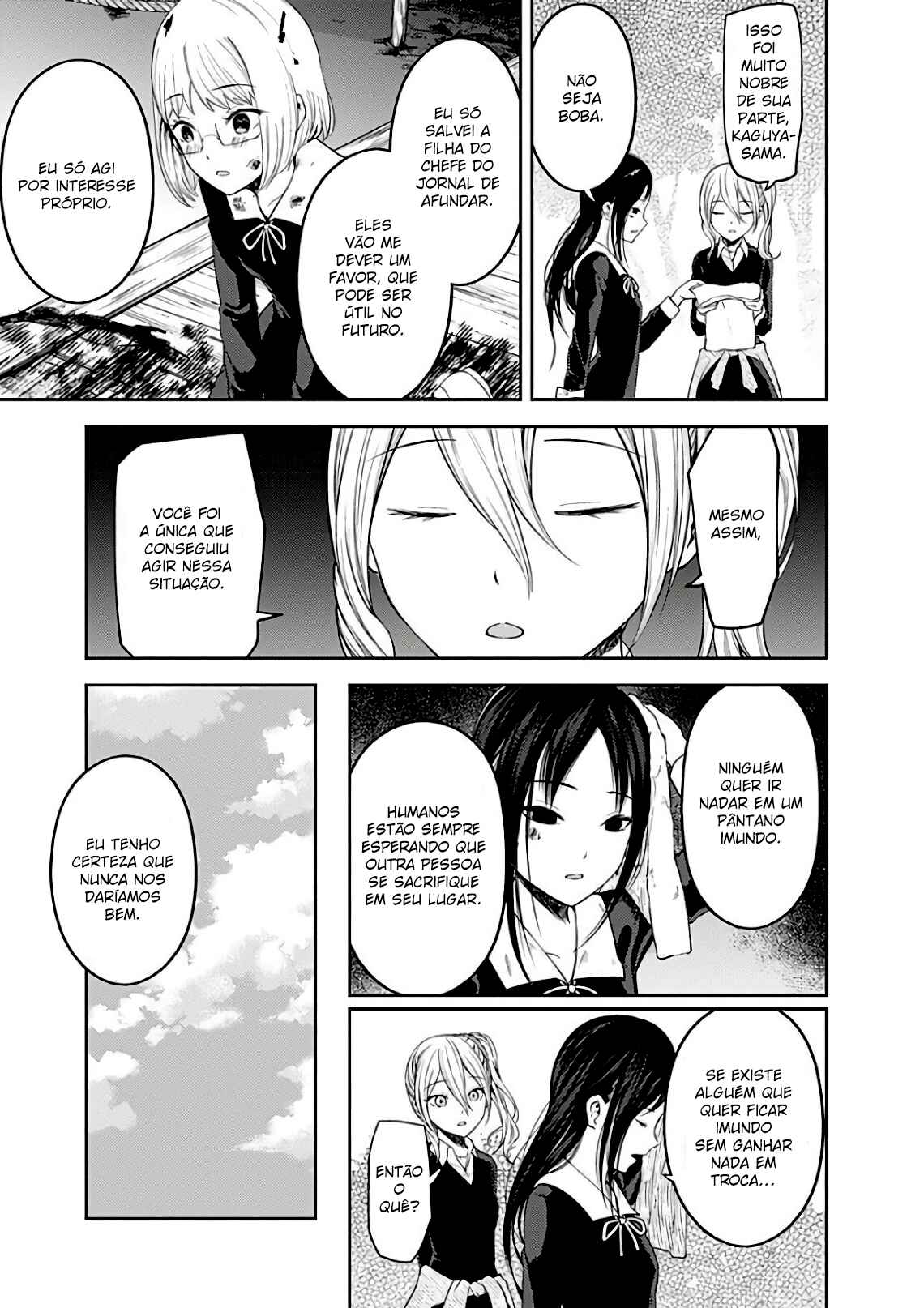 Capítulo 1 - Eu quero ser convidada para o cinemaCapítulo 2 - Eu quero jogar micoCapítulo 3 - Kaguya não sabe muitoCapítulo 4Capítulo 5 - Kaguya quer comerCapítulo 5.5 - ExtraCapítulo 6 - Shirogane Miyuki quer esconderCapítulo 7 - Quer ir em uma ViagemCapítulo 8 - Kaguya quer ser RespondidaCapítulo 9 - Kaguya quer CaminharCapítulo 10 - O Conselho Estudantil quer fazer uma BrincadeiraCapítulo 10.5Capítulo 11 - Kaguya quer TrocarCapítulo 12 - Kaguya quer ser IntrometidaCapítulo 13 - Kaguya quer ser indiretaCapítulo 14 - Shirogane miyuki não fez issoCapítulo 15 - Shirogami miyuki quer fugirCapítulo 16 - Kaguya quer fazer direitoCapítulo 17 - Kaguya quer adorarCapítulo 18 - O conselho estudantil quer conversarCapítulo 19 - Kaguya quer ser enviadaCapítulo 20 - Miyuki shirogane quer falarCapítulo 20.5 - ExtraCapítulo 21 - Kaguya quer segurarCapítulo 22 - Chika fujiwara quer ser comidaCapítulo 23 - Miyuki shirogane quer mostrarCapítulo 24 - Ishigami yu quer sobreviverCapítulo 25 - Kaguya quer ser notadaCapítulo 26 - Miyuki shirogane quer trabalharCapítulo 27 - Kaguya tenta resistirCapítulo 27.5 - ExtraCapítulo 28 - Fujiwara chika quer testarCapítulo 29 - Kaguya quer se juntarCapítulo 30 - Hayasaka ai quer defenderCapítulo 31 - Shirogane miyuki não pode perderCapítulo 32 - Kaguya quer ser odiadaCapítulo 33 - Kaguya quer oferecerCapítulo 34 - Fujiwara chika quer visitarCapítulo 35 - Em relação a shinomiya kaguya, parte 1Capítulo 36 - Miyuki shirogane quer cantarCapítulo 37 - Kaguya não vai cederCapítulo 38 - Kaguya quer perdoarCapítulo 39 - Kaguya quer ser chamadaCapítulo 40 - Shirogane miyuki quer viajarCapítulo 41 - Shirogane miyuki quer se encontrarCapítulo 42 - Hayasaka ai quer mergulharCapítulo 43 - Fujiwara chika quer comerCapítulo 44 - Eu não consigo ouvir os fogos,parte 1Capítulo 45 - Eu não consigo ouvir os fogos,parte 2Capítulo 46 - Kaguya não quer fugirCapítulo 47 - Kaguya quer escolherCapítulo 48 - O conselho estudantil não fezCapítulo 49 - Shirogane miyuki quer prepararCapítulo 50 - Nagisa kashiwagi não consegue assistirCapítulo 51 - Kaguya quer comemorarCapítulo 52 - Kaguya quer perguntarCapítulo 53 - Kaguya quer darCapítulo 54 - Chika fujiwara quer confirmarCapítulo 55 - Assim, yu ishigami fechou seus olhos, parte 1Capítulo 56 - Miyuki shirogane quer observarCapítulo 57 - Kaguya quer se casarCapítulo 58 - Ai hayasaka quer seduzirCapítulo 59 - O 67° conselho estudantilCapítulo 60Capítulo 61 - Kaguya quer uma confissãoCapítulo 62Capítulo 63 - Miyuki shirogane quer ser popularCapítulo 64 - Nagisa kashiwagi quer consolarCapítulo 65 - Miko lino quer corrigirCapítulo 66 - Kaguya quer eliminarCapítulo 67 - Miko lino não pode ser ridicularizadaCapítulo 68 - Eu quero fazer a miko lino sorrirCapítulo 69 - Kaguya não quer ser chamadaCapítulo 70 - Kaguya quer tirarCapítulo 71 - Kaguya quer produzirCapítulo 72 - Miko lino quer restringirCapítulo 73 - Shirogame miyuki quer lerCapítulo 74 - Kaguya♡AquárioCapítulo 75 - Kaguya quer coletarCapítulo 76 - Nagisa kashiwagi é irritanteCapítulo 77 - Chika fujiwara quer obter informaçãoCapítulo 78 - Kaguya não está assustadaCapítulo 79 - Kaguya quer ser examinadaCapítulo 80 - Assim, yu ishigami fechou seus olhos, parte 2Capítulo 81 - Kaguya quer tocarCapítulo 82 - Kaguya não vai recusarCapítulo 83 - Kai shirogane não consegue dizer issoCapítulo 84 - Miyuki shirogane quer dançarCapítulo 85 - Osaragui kobashi quer controlarCapítulo 86 - Shirogane pai quer perguntarCapítulo 87 - Festival de atletismo da shuuichiinCapítulo 88 - Assim, yu ishigami fechou seus olhos, parte 3Capítulo 89 - Miyuki shirogane e yu ishigamiCapítulo 90 - Kyoko ootomo não percebeCapítulo 91 - Chika Fujiwara Quer Fazer CrescerCapítulo 92 - Eu Quero Fazer a Kaguya CorarCapítulo 93 - Kaguya Quer Tirá-lo de LáCapítulo 94 - Kaguya Quer InterromperCapítulo 95 - Miko Iino Quer RelaxarCapítulo 96 - Kaguya Quer Alimentar EleCapítulo 97 - Nagisa Kashiwagi Quer Matá-loCapítulo 101 - O Conselho Estudantil Quer Ser Fotografado, Parte 2Capítulo 102 - Kaguya-sama Não PercebeCapítulo 103 - Miyuki Shirogane Quer MediarCapítulo 104 - O Desafio Impossível de Kaguya Shinomiya: “A Concha Koyasugai”, Parte 1Capítulo 105 - Yu Ishigami Quer ResponderCapítulo 106 - Chika Fujiwara Quer Uma Festa do PijamaCapítulo 107 - Chika Fujiwara Quer Manter o RitmoCapítulo 108 - Ai Hayasaka Quer Dizer AlgoCapítulo 109 - Maki Shijo Quer Pedir AjudaCapítulo 110 - Yu Ishigami Quer ConversarCapítulo 111 - O Conselho Estudantil Quer AvançarCapítulo 112 - Miyuki Shirogane Quer Receber Uma Confissão, Parte 1Capítulo 113 - Miyuki Shirogane Quer Receber Uma Confissão, Parte 2Capítulo 114 - Miyuki Shirogane Quer Receber Uma Confissão, Parte 3Capítulo 115 - Miko Iino Não Consegue Amar, Parte 1Capítulo 116 - Queremos Falar Sobre o Festival CulturalCapítulo 117 - Chika Fujiwara Quer LutarCapítulo 118 - Miyuki Shirogane Quer ExpandirCapítulo 119 - Kei Shirogane Quer se ExibirCapítulo 120 - Sobre Kaguya Shinomiya, Parte 2Capítulo 121 - Primeiro Ano, PrimaveraCapítulo 122 - Kaguya Quer se Confessar, Parte 1Capítulo 123 - Festival Cultural da KaguyaCapítulo 124 - Festival Cultural do Yu IshigamiCapítulo 125 - Kozue Makihara Quer BrincarCapítulo 126 - Chika Fujiwara Quer Acertar as ContasCapítulo 127 - Festival Cultural de Miyuki ShiroganeCapítulo 128 - Kaguya Quer Derrubá-losCapítulo 129 - Miyuki Shirogane Quer Receber Uma Confissão, Parte 4Capítulo 130 - Tsubame Koyasu Quer Rejeitá-loCapítulo 131 - Miyuki Shirogane Quer Receber Uma Confissão, Parte 5Capítulo 132 - Kaguya Quer Se Confessar, Parte 2Capítulo 133 - Kaguya Quer Se Confessar, Parte 3Capítulo 134 - Confissões Duplas, Parte 1Capítulo 135 - Confissões Duplas, Parte 2Capítulo 136 - Confissões Duplas, Parte 3Capítulo 137 - O Pós-festa da Shuchi’inCapítulo 138 - Kaguya Quer ExplicarCapítulo 139 -