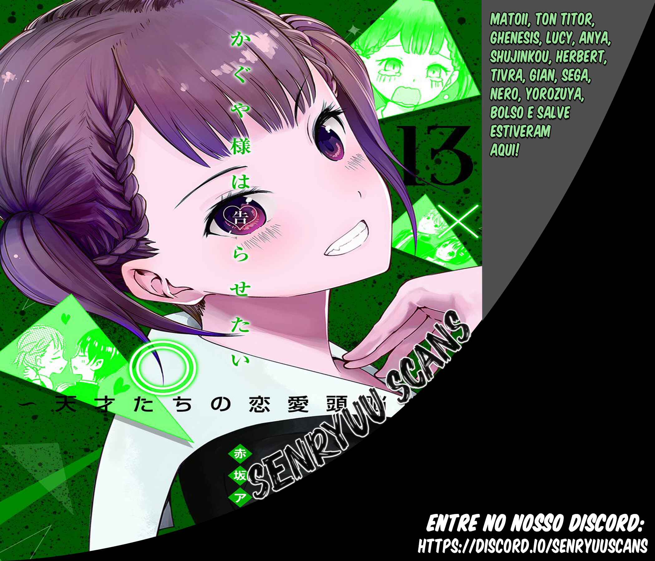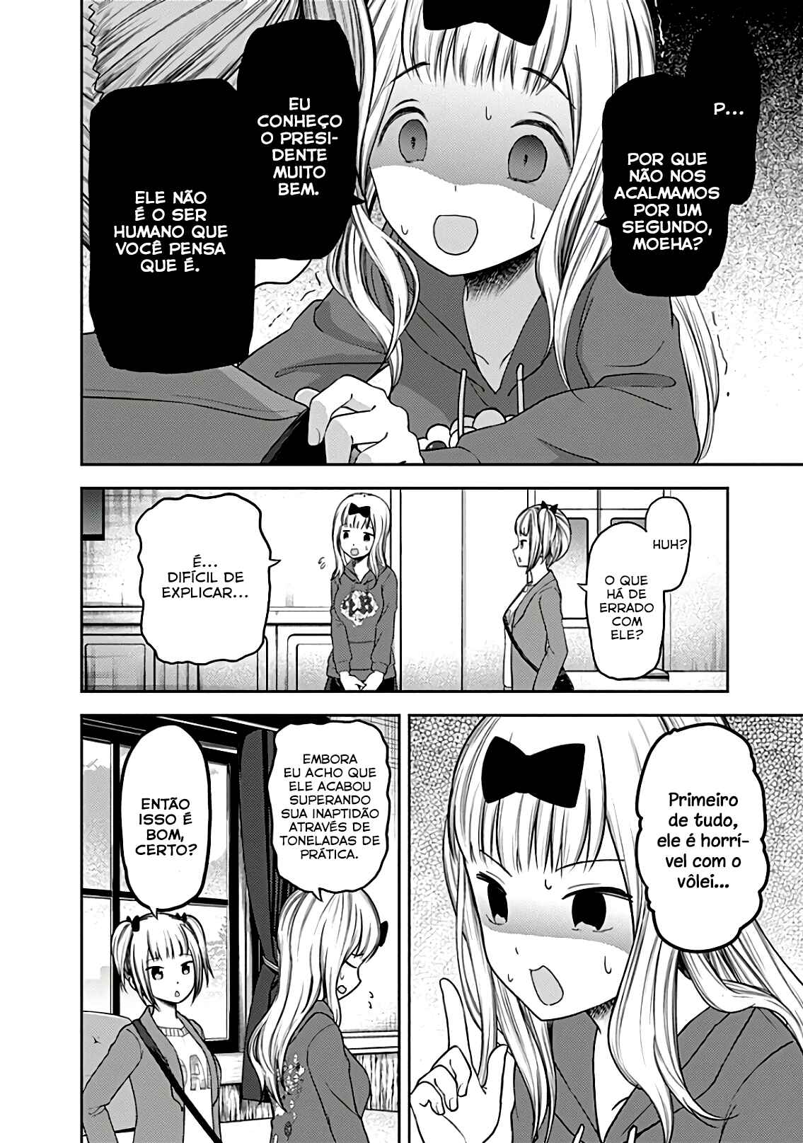 Capítulo 1 - Eu quero ser convidada para o cinemaCapítulo 2 - Eu quero jogar micoCapítulo 3 - Kaguya não sabe muitoCapítulo 4Capítulo 5 - Kaguya quer comerCapítulo 5.5 - ExtraCapítulo 6 - Shirogane Miyuki quer esconderCapítulo 7 - Quer ir em uma ViagemCapítulo 8 - Kaguya quer ser RespondidaCapítulo 9 - Kaguya quer CaminharCapítulo 10 - O Conselho Estudantil quer fazer uma BrincadeiraCapítulo 10.5Capítulo 11 - Kaguya quer TrocarCapítulo 12 - Kaguya quer ser IntrometidaCapítulo 13 - Kaguya quer ser indiretaCapítulo 14 - Shirogane miyuki não fez issoCapítulo 15 - Shirogami miyuki quer fugirCapítulo 16 - Kaguya quer fazer direitoCapítulo 17 - Kaguya quer adorarCapítulo 18 - O conselho estudantil quer conversarCapítulo 19 - Kaguya quer ser enviadaCapítulo 20 - Miyuki shirogane quer falarCapítulo 20.5 - ExtraCapítulo 21 - Kaguya quer segurarCapítulo 22 - Chika fujiwara quer ser comidaCapítulo 23 - Miyuki shirogane quer mostrarCapítulo 24 - Ishigami yu quer sobreviverCapítulo 25 - Kaguya quer ser notadaCapítulo 26 - Miyuki shirogane quer trabalharCapítulo 27 - Kaguya tenta resistirCapítulo 27.5 - ExtraCapítulo 28 - Fujiwara chika quer testarCapítulo 29 - Kaguya quer se juntarCapítulo 30 - Hayasaka ai quer defenderCapítulo 31 - Shirogane miyuki não pode perderCapítulo 32 - Kaguya quer ser odiadaCapítulo 33 - Kaguya quer oferecerCapítulo 34 - Fujiwara chika quer visitarCapítulo 35 - Em relação a shinomiya kaguya, parte 1Capítulo 36 - Miyuki shirogane quer cantarCapítulo 37 - Kaguya não vai cederCapítulo 38 - Kaguya quer perdoarCapítulo 39 - Kaguya quer ser chamadaCapítulo 40 - Shirogane miyuki quer viajarCapítulo 41 - Shirogane miyuki quer se encontrarCapítulo 42 - Hayasaka ai quer mergulharCapítulo 43 - Fujiwara chika quer comerCapítulo 44 - Eu não consigo ouvir os fogos,parte 1Capítulo 45 - Eu não consigo ouvir os fogos,parte 2Capítulo 46 - Kaguya não quer fugirCapítulo 47 - Kaguya quer escolherCapítulo 48 - O conselho estudantil não fezCapítulo 49 - Shirogane miyuki quer prepararCapítulo 50 - Nagisa kashiwagi não consegue assistirCapítulo 51 - Kaguya quer comemorarCapítulo 52 - Kaguya quer perguntarCapítulo 53 - Kaguya quer darCapítulo 54 - Chika fujiwara quer confirmarCapítulo 55 - Assim, yu ishigami fechou seus olhos, parte 1Capítulo 56 - Miyuki shirogane quer observarCapítulo 57 - Kaguya quer se casarCapítulo 58 - Ai hayasaka quer seduzirCapítulo 59 - O 67° conselho estudantilCapítulo 60Capítulo 61 - Kaguya quer uma confissãoCapítulo 62Capítulo 63 - Miyuki shirogane quer ser popularCapítulo 64 - Nagisa kashiwagi quer consolarCapítulo 65 - Miko lino quer corrigirCapítulo 66 - Kaguya quer eliminarCapítulo 67 - Miko lino não pode ser ridicularizadaCapítulo 68 - Eu quero fazer a miko lino sorrirCapítulo 69 - Kaguya não quer ser chamadaCapítulo 70 - Kaguya quer tirarCapítulo 71 - Kaguya quer produzirCapítulo 72 - Miko lino quer restringirCapítulo 73 - Shirogame miyuki quer lerCapítulo 74 - Kaguya♡AquárioCapítulo 75 - Kaguya quer coletarCapítulo 76 - Nagisa kashiwagi é irritanteCapítulo 77 - Chika fujiwara quer obter informaçãoCapítulo 78 - Kaguya não está assustadaCapítulo 79 - Kaguya quer ser examinadaCapítulo 80 - Assim, yu ishigami fechou seus olhos, parte 2Capítulo 81 - Kaguya quer tocarCapítulo 82 - Kaguya não vai recusarCapítulo 83 - Kai shirogane não consegue dizer issoCapítulo 84 - Miyuki shirogane quer dançarCapítulo 85 - Osaragui kobashi quer controlarCapítulo 86 - Shirogane pai quer perguntarCapítulo 87 - Festival de atletismo da shuuichiinCapítulo 88 - Assim, yu ishigami fechou seus olhos, parte 3Capítulo 89 - Miyuki shirogane e yu ishigamiCapítulo 90 - Kyoko ootomo não percebeCapítulo 91 - Chika Fujiwara Quer Fazer CrescerCapítulo 92 - Eu Quero Fazer a Kaguya CorarCapítulo 93 - Kaguya Quer Tirá-lo de LáCapítulo 94 - Kaguya Quer InterromperCapítulo 95 - Miko Iino Quer RelaxarCapítulo 96 - Kaguya Quer Alimentar EleCapítulo 97 - Nagisa Kashiwagi Quer Matá-loCapítulo 101 - O Conselho Estudantil Quer Ser Fotografado, Parte 2Capítulo 102 - Kaguya-sama Não PercebeCapítulo 103 - Miyuki Shirogane Quer MediarCapítulo 104 - O Desafio Impossível de Kaguya Shinomiya: “A Concha Koyasugai”, Parte 1Capítulo 105 - Yu Ishigami Quer ResponderCapítulo 106 - Chika Fujiwara Quer Uma Festa do PijamaCapítulo 107 - Chika Fujiwara Quer Manter o RitmoCapítulo 108 - Ai Hayasaka Quer Dizer AlgoCapítulo 109 - Maki Shijo Quer Pedir AjudaCapítulo 110 - Yu Ishigami Quer ConversarCapítulo 111 - O Conselho Estudantil Quer AvançarCapítulo 112 - Miyuki Shirogane Quer Receber Uma Confissão, Parte 1Capítulo 113 - Miyuki Shirogane Quer Receber Uma Confissão, Parte 2Capítulo 114 - Miyuki Shirogane Quer Receber Uma Confissão, Parte 3Capítulo 115 - Miko Iino Não Consegue Amar, Parte 1Capítulo 116 - Queremos Falar Sobre o Festival CulturalCapítulo 117 - Chika Fujiwara Quer LutarCapítulo 118 - Miyuki Shirogane Quer ExpandirCapítulo 119 - Kei Shirogane Quer se ExibirCapítulo 120 - Sobre Kaguya Shinomiya, Parte 2Capítulo 121 - Primeiro Ano, PrimaveraCapítulo 122 - Kaguya Quer se Confessar, Parte 1Capítulo 123 - Festival Cultural da KaguyaCapítulo 124 - Festival Cultural do Yu IshigamiCapítulo 125 - Kozue Makihara Quer BrincarCapítulo 126 - Chika Fujiwara Quer Acertar as ContasCapítulo 127 - Festival Cultural de Miyuki ShiroganeCapítulo 128 - Kaguya Quer Derrubá-losCapítulo 129 - Miyuki Shirogane Quer Receber Uma Confissão, Parte 4Capítulo 130 - Tsubame Koyasu Quer Rejeitá-loCapítulo 131 - Miyuki Shirogane Quer Receber Uma Confissão, Parte 5Capítulo 132 - Kaguya Quer Se Confessar, Parte 2Capítulo 133 - Kaguya Quer Se Confessar, Parte 3Capítulo 134 - Confissões Duplas, Parte 1Capítulo 135 - Confissões Duplas, Parte 2Capítulo 136 - Confissões Duplas, Parte 3Capítulo 137 - O Pós-festa da Shuchi’inCapítulo 138 - Kaguya Quer ExplicarCapítulo 139 -