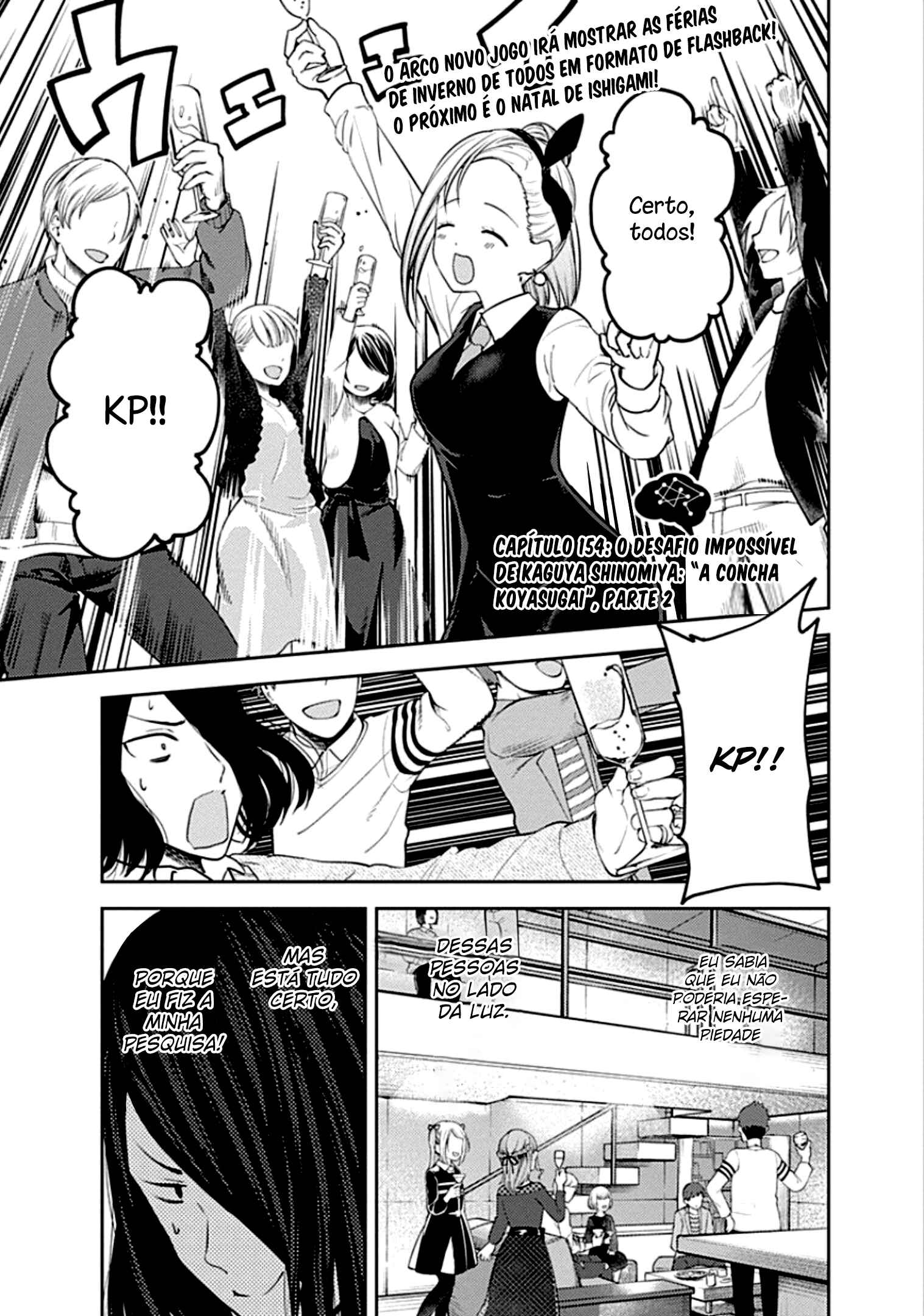 Capítulo 1 - Eu quero ser convidada para o cinemaCapítulo 2 - Eu quero jogar micoCapítulo 3 - Kaguya não sabe muitoCapítulo 4Capítulo 5 - Kaguya quer comerCapítulo 5.5 - ExtraCapítulo 6 - Shirogane Miyuki quer esconderCapítulo 7 - Quer ir em uma ViagemCapítulo 8 - Kaguya quer ser RespondidaCapítulo 9 - Kaguya quer CaminharCapítulo 10 - O Conselho Estudantil quer fazer uma BrincadeiraCapítulo 10.5Capítulo 11 - Kaguya quer TrocarCapítulo 12 - Kaguya quer ser IntrometidaCapítulo 13 - Kaguya quer ser indiretaCapítulo 14 - Shirogane miyuki não fez issoCapítulo 15 - Shirogami miyuki quer fugirCapítulo 16 - Kaguya quer fazer direitoCapítulo 17 - Kaguya quer adorarCapítulo 18 - O conselho estudantil quer conversarCapítulo 19 - Kaguya quer ser enviadaCapítulo 20 - Miyuki shirogane quer falarCapítulo 20.5 - ExtraCapítulo 21 - Kaguya quer segurarCapítulo 22 - Chika fujiwara quer ser comidaCapítulo 23 - Miyuki shirogane quer mostrarCapítulo 24 - Ishigami yu quer sobreviverCapítulo 25 - Kaguya quer ser notadaCapítulo 26 - Miyuki shirogane quer trabalharCapítulo 27 - Kaguya tenta resistirCapítulo 27.5 - ExtraCapítulo 28 - Fujiwara chika quer testarCapítulo 29 - Kaguya quer se juntarCapítulo 30 - Hayasaka ai quer defenderCapítulo 31 - Shirogane miyuki não pode perderCapítulo 32 - Kaguya quer ser odiadaCapítulo 33 - Kaguya quer oferecerCapítulo 34 - Fujiwara chika quer visitarCapítulo 35 - Em relação a shinomiya kaguya, parte 1Capítulo 36 - Miyuki shirogane quer cantarCapítulo 37 - Kaguya não vai cederCapítulo 38 - Kaguya quer perdoarCapítulo 39 - Kaguya quer ser chamadaCapítulo 40 - Shirogane miyuki quer viajarCapítulo 41 - Shirogane miyuki quer se encontrarCapítulo 42 - Hayasaka ai quer mergulharCapítulo 43 - Fujiwara chika quer comerCapítulo 44 - Eu não consigo ouvir os fogos,parte 1Capítulo 45 - Eu não consigo ouvir os fogos,parte 2Capítulo 46 - Kaguya não quer fugirCapítulo 47 - Kaguya quer escolherCapítulo 48 - O conselho estudantil não fezCapítulo 49 - Shirogane miyuki quer prepararCapítulo 50 - Nagisa kashiwagi não consegue assistirCapítulo 51 - Kaguya quer comemorarCapítulo 52 - Kaguya quer perguntarCapítulo 53 - Kaguya quer darCapítulo 54 - Chika fujiwara quer confirmarCapítulo 55 - Assim, yu ishigami fechou seus olhos, parte 1Capítulo 56 - Miyuki shirogane quer observarCapítulo 57 - Kaguya quer se casarCapítulo 58 - Ai hayasaka quer seduzirCapítulo 59 - O 67° conselho estudantilCapítulo 60Capítulo 61 - Kaguya quer uma confissãoCapítulo 62Capítulo 63 - Miyuki shirogane quer ser popularCapítulo 64 - Nagisa kashiwagi quer consolarCapítulo 65 - Miko lino quer corrigirCapítulo 66 - Kaguya quer eliminarCapítulo 67 - Miko lino não pode ser ridicularizadaCapítulo 68 - Eu quero fazer a miko lino sorrirCapítulo 69 - Kaguya não quer ser chamadaCapítulo 70 - Kaguya quer tirarCapítulo 71 - Kaguya quer produzirCapítulo 72 - Miko lino quer restringirCapítulo 73 - Shirogame miyuki quer lerCapítulo 74 - Kaguya♡AquárioCapítulo 75 - Kaguya quer coletarCapítulo 76 - Nagisa kashiwagi é irritanteCapítulo 77 - Chika fujiwara quer obter informaçãoCapítulo 78 - Kaguya não está assustadaCapítulo 79 - Kaguya quer ser examinadaCapítulo 80 - Assim, yu ishigami fechou seus olhos, parte 2Capítulo 81 - Kaguya quer tocarCapítulo 82 - Kaguya não vai recusarCapítulo 83 - Kai shirogane não consegue dizer issoCapítulo 84 - Miyuki shirogane quer dançarCapítulo 85 - Osaragui kobashi quer controlarCapítulo 86 - Shirogane pai quer perguntarCapítulo 87 - Festival de atletismo da shuuichiinCapítulo 88 - Assim, yu ishigami fechou seus olhos, parte 3Capítulo 89 - Miyuki shirogane e yu ishigamiCapítulo 90 - Kyoko ootomo não percebeCapítulo 91 - Chika Fujiwara Quer Fazer CrescerCapítulo 92 - Eu Quero Fazer a Kaguya CorarCapítulo 93 - Kaguya Quer Tirá-lo de LáCapítulo 94 - Kaguya Quer InterromperCapítulo 95 - Miko Iino Quer RelaxarCapítulo 96 - Kaguya Quer Alimentar EleCapítulo 97 - Nagisa Kashiwagi Quer Matá-loCapítulo 101 - O Conselho Estudantil Quer Ser Fotografado, Parte 2Capítulo 102 - Kaguya-sama Não PercebeCapítulo 103 - Miyuki Shirogane Quer MediarCapítulo 104 - O Desafio Impossível de Kaguya Shinomiya: “A Concha Koyasugai”, Parte 1Capítulo 105 - Yu Ishigami Quer ResponderCapítulo 106 - Chika Fujiwara Quer Uma Festa do PijamaCapítulo 107 - Chika Fujiwara Quer Manter o RitmoCapítulo 108 - Ai Hayasaka Quer Dizer AlgoCapítulo 109 - Maki Shijo Quer Pedir AjudaCapítulo 110 - Yu Ishigami Quer ConversarCapítulo 111 - O Conselho Estudantil Quer AvançarCapítulo 112 - Miyuki Shirogane Quer Receber Uma Confissão, Parte 1Capítulo 113 - Miyuki Shirogane Quer Receber Uma Confissão, Parte 2Capítulo 114 - Miyuki Shirogane Quer Receber Uma Confissão, Parte 3Capítulo 115 - Miko Iino Não Consegue Amar, Parte 1Capítulo 116 - Queremos Falar Sobre o Festival CulturalCapítulo 117 - Chika Fujiwara Quer LutarCapítulo 118 - Miyuki Shirogane Quer ExpandirCapítulo 119 - Kei Shirogane Quer se ExibirCapítulo 120 - Sobre Kaguya Shinomiya, Parte 2Capítulo 121 - Primeiro Ano, PrimaveraCapítulo 122 - Kaguya Quer se Confessar, Parte 1Capítulo 123 - Festival Cultural da KaguyaCapítulo 124 - Festival Cultural do Yu IshigamiCapítulo 125 - Kozue Makihara Quer BrincarCapítulo 126 - Chika Fujiwara Quer Acertar as ContasCapítulo 127 - Festival Cultural de Miyuki ShiroganeCapítulo 128 - Kaguya Quer Derrubá-losCapítulo 129 - Miyuki Shirogane Quer Receber Uma Confissão, Parte 4Capítulo 130 - Tsubame Koyasu Quer Rejeitá-loCapítulo 131 - Miyuki Shirogane Quer Receber Uma Confissão, Parte 5Capítulo 132 - Kaguya Quer Se Confessar, Parte 2Capítulo 133 - Kaguya Quer Se Confessar, Parte 3Capítulo 134 - Confissões Duplas, Parte 1Capítulo 135 - Confissões Duplas, Parte 2Capítulo 136 - Confissões Duplas, Parte 3Capítulo 137 - O Pós-festa da Shuchi’inCapítulo 138 - Kaguya Quer ExplicarCapítulo 139 -