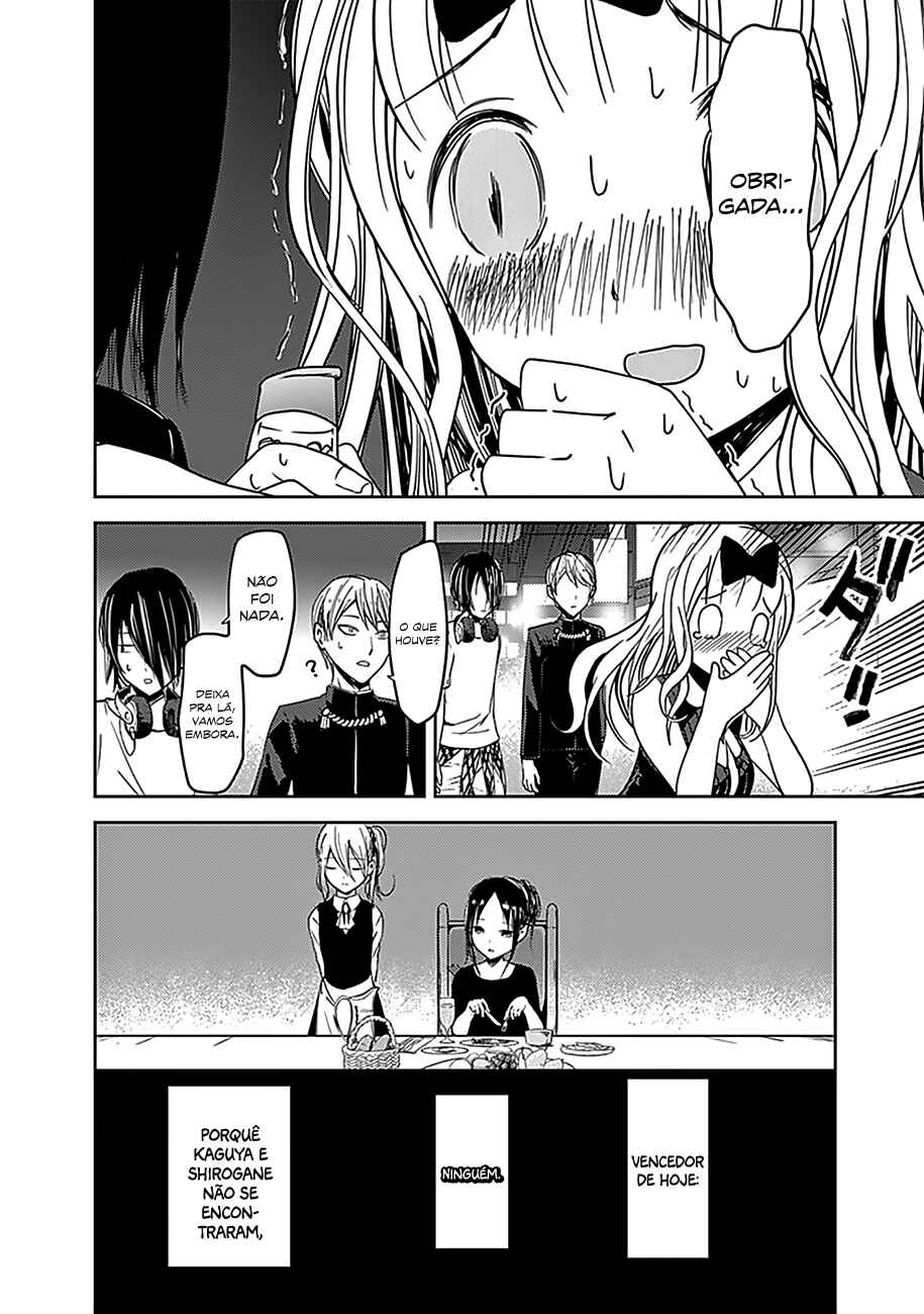Capítulo 1 - Eu quero ser convidada para o cinemaCapítulo 2 - Eu quero jogar micoCapítulo 3 - Kaguya não sabe muitoCapítulo 4Capítulo 5 - Kaguya quer comerCapítulo 5.5 - ExtraCapítulo 6 - Shirogane Miyuki quer esconderCapítulo 7 - Quer ir em uma ViagemCapítulo 8 - Kaguya quer ser RespondidaCapítulo 9 - Kaguya quer CaminharCapítulo 10 - O Conselho Estudantil quer fazer uma BrincadeiraCapítulo 10.5Capítulo 11 - Kaguya quer TrocarCapítulo 12 - Kaguya quer ser IntrometidaCapítulo 13 - Kaguya quer ser indiretaCapítulo 14 - Shirogane miyuki não fez issoCapítulo 15 - Shirogami miyuki quer fugirCapítulo 16 - Kaguya quer fazer direitoCapítulo 17 - Kaguya quer adorarCapítulo 18 - O conselho estudantil quer conversarCapítulo 19 - Kaguya quer ser enviadaCapítulo 20 - Miyuki shirogane quer falarCapítulo 20.5 - ExtraCapítulo 21 - Kaguya quer segurarCapítulo 22 - Chika fujiwara quer ser comidaCapítulo 23 - Miyuki shirogane quer mostrarCapítulo 24 - Ishigami yu quer sobreviverCapítulo 25 - Kaguya quer ser notadaCapítulo 26 - Miyuki shirogane quer trabalharCapítulo 27 - Kaguya tenta resistirCapítulo 27.5 - ExtraCapítulo 28 - Fujiwara chika quer testarCapítulo 29 - Kaguya quer se juntarCapítulo 30 - Hayasaka ai quer defenderCapítulo 31 - Shirogane miyuki não pode perderCapítulo 32 - Kaguya quer ser odiadaCapítulo 33 - Kaguya quer oferecerCapítulo 34 - Fujiwara chika quer visitarCapítulo 35 - Em relação a shinomiya kaguya, parte 1Capítulo 36 - Miyuki shirogane quer cantarCapítulo 37 - Kaguya não vai cederCapítulo 38 - Kaguya quer perdoarCapítulo 39 - Kaguya quer ser chamadaCapítulo 40 - Shirogane miyuki quer viajarCapítulo 41 - Shirogane miyuki quer se encontrarCapítulo 42 - Hayasaka ai quer mergulharCapítulo 43 - Fujiwara chika quer comerCapítulo 44 - Eu não consigo ouvir os fogos,parte 1Capítulo 45 - Eu não consigo ouvir os fogos,parte 2Capítulo 46 - Kaguya não quer fugirCapítulo 47 - Kaguya quer escolherCapítulo 48 - O conselho estudantil não fezCapítulo 49 - Shirogane miyuki quer prepararCapítulo 50 - Nagisa kashiwagi não consegue assistirCapítulo 51 - Kaguya quer comemorarCapítulo 52 - Kaguya quer perguntarCapítulo 53 - Kaguya quer darCapítulo 54 - Chika fujiwara quer confirmarCapítulo 55 - Assim, yu ishigami fechou seus olhos, parte 1Capítulo 56 - Miyuki shirogane quer observarCapítulo 57 - Kaguya quer se casarCapítulo 58 - Ai hayasaka quer seduzirCapítulo 59 - O 67° conselho estudantilCapítulo 60Capítulo 61 - Kaguya quer uma confissãoCapítulo 62Capítulo 63 - Miyuki shirogane quer ser popularCapítulo 64 - Nagisa kashiwagi quer consolarCapítulo 65 - Miko lino quer corrigirCapítulo 66 - Kaguya quer eliminarCapítulo 67 - Miko lino não pode ser ridicularizadaCapítulo 68 - Eu quero fazer a miko lino sorrirCapítulo 69 - Kaguya não quer ser chamadaCapítulo 70 - Kaguya quer tirarCapítulo 71 - Kaguya quer produzirCapítulo 72 - Miko lino quer restringirCapítulo 73 - Shirogame miyuki quer lerCapítulo 74 - Kaguya♡AquárioCapítulo 75 - Kaguya quer coletarCapítulo 76 - Nagisa kashiwagi é irritanteCapítulo 77 - Chika fujiwara quer obter informaçãoCapítulo 78 - Kaguya não está assustadaCapítulo 79 - Kaguya quer ser examinadaCapítulo 80 - Assim, yu ishigami fechou seus olhos, parte 2Capítulo 81 - Kaguya quer tocarCapítulo 82 - Kaguya não vai recusarCapítulo 83 - Kai shirogane não consegue dizer issoCapítulo 84 - Miyuki shirogane quer dançarCapítulo 85 - Osaragui kobashi quer controlarCapítulo 86 - Shirogane pai quer perguntarCapítulo 87 - Festival de atletismo da shuuichiinCapítulo 88 - Assim, yu ishigami fechou seus olhos, parte 3Capítulo 89 - Miyuki shirogane e yu ishigamiCapítulo 90 - Kyoko ootomo não percebeCapítulo 91 - Chika Fujiwara Quer Fazer CrescerCapítulo 92 - Eu Quero Fazer a Kaguya CorarCapítulo 93 - Kaguya Quer Tirá-lo de LáCapítulo 94 - Kaguya Quer InterromperCapítulo 95 - Miko Iino Quer RelaxarCapítulo 96 - Kaguya Quer Alimentar EleCapítulo 97 - Nagisa Kashiwagi Quer Matá-loCapítulo 101 - O Conselho Estudantil Quer Ser Fotografado, Parte 2Capítulo 102 - Kaguya-sama Não PercebeCapítulo 103 - Miyuki Shirogane Quer MediarCapítulo 104 - O Desafio Impossível de Kaguya Shinomiya: “A Concha Koyasugai”, Parte 1Capítulo 105 - Yu Ishigami Quer ResponderCapítulo 106 - Chika Fujiwara Quer Uma Festa do PijamaCapítulo 107 - Chika Fujiwara Quer Manter o RitmoCapítulo 108 - Ai Hayasaka Quer Dizer AlgoCapítulo 109 - Maki Shijo Quer Pedir AjudaCapítulo 110 - Yu Ishigami Quer ConversarCapítulo 111 - O Conselho Estudantil Quer AvançarCapítulo 112 - Miyuki Shirogane Quer Receber Uma Confissão, Parte 1Capítulo 113 - Miyuki Shirogane Quer Receber Uma Confissão, Parte 2Capítulo 114 - Miyuki Shirogane Quer Receber Uma Confissão, Parte 3Capítulo 115 - Miko Iino Não Consegue Amar, Parte 1Capítulo 116 - Queremos Falar Sobre o Festival CulturalCapítulo 117 - Chika Fujiwara Quer LutarCapítulo 118 - Miyuki Shirogane Quer ExpandirCapítulo 119 - Kei Shirogane Quer se ExibirCapítulo 120 - Sobre Kaguya Shinomiya, Parte 2Capítulo 121 - Primeiro Ano, PrimaveraCapítulo 122 - Kaguya Quer se Confessar, Parte 1Capítulo 123 - Festival Cultural da KaguyaCapítulo 124 - Festival Cultural do Yu IshigamiCapítulo 125 - Kozue Makihara Quer BrincarCapítulo 126 - Chika Fujiwara Quer Acertar as ContasCapítulo 127 - Festival Cultural de Miyuki ShiroganeCapítulo 128 - Kaguya Quer Derrubá-losCapítulo 129 - Miyuki Shirogane Quer Receber Uma Confissão, Parte 4Capítulo 130 - Tsubame Koyasu Quer Rejeitá-loCapítulo 131 - Miyuki Shirogane Quer Receber Uma Confissão, Parte 5Capítulo 132 - Kaguya Quer Se Confessar, Parte 2Capítulo 133 - Kaguya Quer Se Confessar, Parte 3Capítulo 134 - Confissões Duplas, Parte 1Capítulo 135 - Confissões Duplas, Parte 2Capítulo 136 - Confissões Duplas, Parte 3Capítulo 137 - O Pós-festa da Shuchi’inCapítulo 138 - Kaguya Quer ExplicarCapítulo 139 -