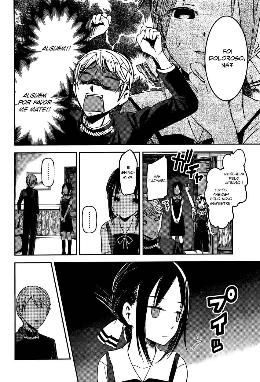 Capítulo 1 - Eu quero ser convidada para o cinemaCapítulo 2 - Eu quero jogar micoCapítulo 3 - Kaguya não sabe muitoCapítulo 4Capítulo 5 - Kaguya quer comerCapítulo 5.5 - ExtraCapítulo 6 - Shirogane Miyuki quer esconderCapítulo 7 - Quer ir em uma ViagemCapítulo 8 - Kaguya quer ser RespondidaCapítulo 9 - Kaguya quer CaminharCapítulo 10 - O Conselho Estudantil quer fazer uma BrincadeiraCapítulo 10.5Capítulo 11 - Kaguya quer TrocarCapítulo 12 - Kaguya quer ser IntrometidaCapítulo 13 - Kaguya quer ser indiretaCapítulo 14 - Shirogane miyuki não fez issoCapítulo 15 - Shirogami miyuki quer fugirCapítulo 16 - Kaguya quer fazer direitoCapítulo 17 - Kaguya quer adorarCapítulo 18 - O conselho estudantil quer conversarCapítulo 19 - Kaguya quer ser enviadaCapítulo 20 - Miyuki shirogane quer falarCapítulo 20.5 - ExtraCapítulo 21 - Kaguya quer segurarCapítulo 22 - Chika fujiwara quer ser comidaCapítulo 23 - Miyuki shirogane quer mostrarCapítulo 24 - Ishigami yu quer sobreviverCapítulo 25 - Kaguya quer ser notadaCapítulo 26 - Miyuki shirogane quer trabalharCapítulo 27 - Kaguya tenta resistirCapítulo 27.5 - ExtraCapítulo 28 - Fujiwara chika quer testarCapítulo 29 - Kaguya quer se juntarCapítulo 30 - Hayasaka ai quer defenderCapítulo 31 - Shirogane miyuki não pode perderCapítulo 32 - Kaguya quer ser odiadaCapítulo 33 - Kaguya quer oferecerCapítulo 34 - Fujiwara chika quer visitarCapítulo 35 - Em relação a shinomiya kaguya, parte 1Capítulo 36 - Miyuki shirogane quer cantarCapítulo 37 - Kaguya não vai cederCapítulo 38 - Kaguya quer perdoarCapítulo 39 - Kaguya quer ser chamadaCapítulo 40 - Shirogane miyuki quer viajarCapítulo 41 - Shirogane miyuki quer se encontrarCapítulo 42 - Hayasaka ai quer mergulharCapítulo 43 - Fujiwara chika quer comerCapítulo 44 - Eu não consigo ouvir os fogos,parte 1Capítulo 45 - Eu não consigo ouvir os fogos,parte 2Capítulo 46 - Kaguya não quer fugirCapítulo 47 - Kaguya quer escolherCapítulo 48 - O conselho estudantil não fezCapítulo 49 - Shirogane miyuki quer prepararCapítulo 50 - Nagisa kashiwagi não consegue assistirCapítulo 51 - Kaguya quer comemorarCapítulo 52 - Kaguya quer perguntarCapítulo 53 - Kaguya quer darCapítulo 54 - Chika fujiwara quer confirmarCapítulo 55 - Assim, yu ishigami fechou seus olhos, parte 1Capítulo 56 - Miyuki shirogane quer observarCapítulo 57 - Kaguya quer se casarCapítulo 58 - Ai hayasaka quer seduzirCapítulo 59 - O 67° conselho estudantilCapítulo 60Capítulo 61 - Kaguya quer uma confissãoCapítulo 62Capítulo 63 - Miyuki shirogane quer ser popularCapítulo 64 - Nagisa kashiwagi quer consolarCapítulo 65 - Miko lino quer corrigirCapítulo 66 - Kaguya quer eliminarCapítulo 67 - Miko lino não pode ser ridicularizadaCapítulo 68 - Eu quero fazer a miko lino sorrirCapítulo 69 - Kaguya não quer ser chamadaCapítulo 70 - Kaguya quer tirarCapítulo 71 - Kaguya quer produzirCapítulo 72 - Miko lino quer restringirCapítulo 73 - Shirogame miyuki quer lerCapítulo 74 - Kaguya♡AquárioCapítulo 75 - Kaguya quer coletarCapítulo 76 - Nagisa kashiwagi é irritanteCapítulo 77 - Chika fujiwara quer obter informaçãoCapítulo 78 - Kaguya não está assustadaCapítulo 79 - Kaguya quer ser examinadaCapítulo 80 - Assim, yu ishigami fechou seus olhos, parte 2Capítulo 81 - Kaguya quer tocarCapítulo 82 - Kaguya não vai recusarCapítulo 83 - Kai shirogane não consegue dizer issoCapítulo 84 - Miyuki shirogane quer dançarCapítulo 85 - Osaragui kobashi quer controlarCapítulo 86 - Shirogane pai quer perguntarCapítulo 87 - Festival de atletismo da shuuichiinCapítulo 88 - Assim, yu ishigami fechou seus olhos, parte 3Capítulo 89 - Miyuki shirogane e yu ishigamiCapítulo 90 - Kyoko ootomo não percebeCapítulo 91 - Chika Fujiwara Quer Fazer CrescerCapítulo 92 - Eu Quero Fazer a Kaguya CorarCapítulo 93 - Kaguya Quer Tirá-lo de LáCapítulo 94 - Kaguya Quer InterromperCapítulo 95 - Miko Iino Quer RelaxarCapítulo 96 - Kaguya Quer Alimentar EleCapítulo 97 - Nagisa Kashiwagi Quer Matá-loCapítulo 101 - O Conselho Estudantil Quer Ser Fotografado, Parte 2Capítulo 102 - Kaguya-sama Não PercebeCapítulo 103 - Miyuki Shirogane Quer MediarCapítulo 104 - O Desafio Impossível de Kaguya Shinomiya: “A Concha Koyasugai”, Parte 1Capítulo 105 - Yu Ishigami Quer ResponderCapítulo 106 - Chika Fujiwara Quer Uma Festa do PijamaCapítulo 107 - Chika Fujiwara Quer Manter o RitmoCapítulo 108 - Ai Hayasaka Quer Dizer AlgoCapítulo 109 - Maki Shijo Quer Pedir AjudaCapítulo 110 - Yu Ishigami Quer ConversarCapítulo 111 - O Conselho Estudantil Quer AvançarCapítulo 112 - Miyuki Shirogane Quer Receber Uma Confissão, Parte 1Capítulo 113 - Miyuki Shirogane Quer Receber Uma Confissão, Parte 2Capítulo 114 - Miyuki Shirogane Quer Receber Uma Confissão, Parte 3Capítulo 115 - Miko Iino Não Consegue Amar, Parte 1Capítulo 116 - Queremos Falar Sobre o Festival CulturalCapítulo 117 - Chika Fujiwara Quer LutarCapítulo 118 - Miyuki Shirogane Quer ExpandirCapítulo 119 - Kei Shirogane Quer se ExibirCapítulo 120 - Sobre Kaguya Shinomiya, Parte 2Capítulo 121 - Primeiro Ano, PrimaveraCapítulo 122 - Kaguya Quer se Confessar, Parte 1Capítulo 123 - Festival Cultural da KaguyaCapítulo 124 - Festival Cultural do Yu IshigamiCapítulo 125 - Kozue Makihara Quer BrincarCapítulo 126 - Chika Fujiwara Quer Acertar as ContasCapítulo 127 - Festival Cultural de Miyuki ShiroganeCapítulo 128 - Kaguya Quer Derrubá-losCapítulo 129 - Miyuki Shirogane Quer Receber Uma Confissão, Parte 4Capítulo 130 - Tsubame Koyasu Quer Rejeitá-loCapítulo 131 - Miyuki Shirogane Quer Receber Uma Confissão, Parte 5Capítulo 132 - Kaguya Quer Se Confessar, Parte 2Capítulo 133 - Kaguya Quer Se Confessar, Parte 3Capítulo 134 - Confissões Duplas, Parte 1Capítulo 135 - Confissões Duplas, Parte 2Capítulo 136 - Confissões Duplas, Parte 3Capítulo 137 - O Pós-festa da Shuchi’inCapítulo 138 - Kaguya Quer ExplicarCapítulo 139 -