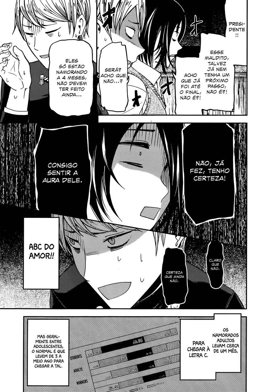 Capítulo 1 - Eu quero ser convidada para o cinemaCapítulo 2 - Eu quero jogar micoCapítulo 3 - Kaguya não sabe muitoCapítulo 4Capítulo 5 - Kaguya quer comerCapítulo 5.5 - ExtraCapítulo 6 - Shirogane Miyuki quer esconderCapítulo 7 - Quer ir em uma ViagemCapítulo 8 - Kaguya quer ser RespondidaCapítulo 9 - Kaguya quer CaminharCapítulo 10 - O Conselho Estudantil quer fazer uma BrincadeiraCapítulo 10.5Capítulo 11 - Kaguya quer TrocarCapítulo 12 - Kaguya quer ser IntrometidaCapítulo 13 - Kaguya quer ser indiretaCapítulo 14 - Shirogane miyuki não fez issoCapítulo 15 - Shirogami miyuki quer fugirCapítulo 16 - Kaguya quer fazer direitoCapítulo 17 - Kaguya quer adorarCapítulo 18 - O conselho estudantil quer conversarCapítulo 19 - Kaguya quer ser enviadaCapítulo 20 - Miyuki shirogane quer falarCapítulo 20.5 - ExtraCapítulo 21 - Kaguya quer segurarCapítulo 22 - Chika fujiwara quer ser comidaCapítulo 23 - Miyuki shirogane quer mostrarCapítulo 24 - Ishigami yu quer sobreviverCapítulo 25 - Kaguya quer ser notadaCapítulo 26 - Miyuki shirogane quer trabalharCapítulo 27 - Kaguya tenta resistirCapítulo 27.5 - ExtraCapítulo 28 - Fujiwara chika quer testarCapítulo 29 - Kaguya quer se juntarCapítulo 30 - Hayasaka ai quer defenderCapítulo 31 - Shirogane miyuki não pode perderCapítulo 32 - Kaguya quer ser odiadaCapítulo 33 - Kaguya quer oferecerCapítulo 34 - Fujiwara chika quer visitarCapítulo 35 - Em relação a shinomiya kaguya, parte 1Capítulo 36 - Miyuki shirogane quer cantarCapítulo 37 - Kaguya não vai cederCapítulo 38 - Kaguya quer perdoarCapítulo 39 - Kaguya quer ser chamadaCapítulo 40 - Shirogane miyuki quer viajarCapítulo 41 - Shirogane miyuki quer se encontrarCapítulo 42 - Hayasaka ai quer mergulharCapítulo 43 - Fujiwara chika quer comerCapítulo 44 - Eu não consigo ouvir os fogos,parte 1Capítulo 45 - Eu não consigo ouvir os fogos,parte 2Capítulo 46 - Kaguya não quer fugirCapítulo 47 - Kaguya quer escolherCapítulo 48 - O conselho estudantil não fezCapítulo 49 - Shirogane miyuki quer prepararCapítulo 50 - Nagisa kashiwagi não consegue assistirCapítulo 51 - Kaguya quer comemorarCapítulo 52 - Kaguya quer perguntarCapítulo 53 - Kaguya quer darCapítulo 54 - Chika fujiwara quer confirmarCapítulo 55 - Assim, yu ishigami fechou seus olhos, parte 1Capítulo 56 - Miyuki shirogane quer observarCapítulo 57 - Kaguya quer se casarCapítulo 58 - Ai hayasaka quer seduzirCapítulo 59 - O 67° conselho estudantilCapítulo 60Capítulo 61 - Kaguya quer uma confissãoCapítulo 62Capítulo 63 - Miyuki shirogane quer ser popularCapítulo 64 - Nagisa kashiwagi quer consolarCapítulo 65 - Miko lino quer corrigirCapítulo 66 - Kaguya quer eliminarCapítulo 67 - Miko lino não pode ser ridicularizadaCapítulo 68 - Eu quero fazer a miko lino sorrirCapítulo 69 - Kaguya não quer ser chamadaCapítulo 70 - Kaguya quer tirarCapítulo 71 - Kaguya quer produzirCapítulo 72 - Miko lino quer restringirCapítulo 73 - Shirogame miyuki quer lerCapítulo 74 - Kaguya♡AquárioCapítulo 75 - Kaguya quer coletarCapítulo 76 - Nagisa kashiwagi é irritanteCapítulo 77 - Chika fujiwara quer obter informaçãoCapítulo 78 - Kaguya não está assustadaCapítulo 79 - Kaguya quer ser examinadaCapítulo 80 - Assim, yu ishigami fechou seus olhos, parte 2Capítulo 81 - Kaguya quer tocarCapítulo 82 - Kaguya não vai recusarCapítulo 83 - Kai shirogane não consegue dizer issoCapítulo 84 - Miyuki shirogane quer dançarCapítulo 85 - Osaragui kobashi quer controlarCapítulo 86 - Shirogane pai quer perguntarCapítulo 87 - Festival de atletismo da shuuichiinCapítulo 88 - Assim, yu ishigami fechou seus olhos, parte 3Capítulo 89 - Miyuki shirogane e yu ishigamiCapítulo 90 - Kyoko ootomo não percebeCapítulo 91 - Chika Fujiwara Quer Fazer CrescerCapítulo 92 - Eu Quero Fazer a Kaguya CorarCapítulo 93 - Kaguya Quer Tirá-lo de LáCapítulo 94 - Kaguya Quer InterromperCapítulo 95 - Miko Iino Quer RelaxarCapítulo 96 - Kaguya Quer Alimentar EleCapítulo 97 - Nagisa Kashiwagi Quer Matá-loCapítulo 101 - O Conselho Estudantil Quer Ser Fotografado, Parte 2Capítulo 102 - Kaguya-sama Não PercebeCapítulo 103 - Miyuki Shirogane Quer MediarCapítulo 104 - O Desafio Impossível de Kaguya Shinomiya: “A Concha Koyasugai”, Parte 1Capítulo 105 - Yu Ishigami Quer ResponderCapítulo 106 - Chika Fujiwara Quer Uma Festa do PijamaCapítulo 107 - Chika Fujiwara Quer Manter o RitmoCapítulo 108 - Ai Hayasaka Quer Dizer AlgoCapítulo 109 - Maki Shijo Quer Pedir AjudaCapítulo 110 - Yu Ishigami Quer ConversarCapítulo 111 - O Conselho Estudantil Quer AvançarCapítulo 112 - Miyuki Shirogane Quer Receber Uma Confissão, Parte 1Capítulo 113 - Miyuki Shirogane Quer Receber Uma Confissão, Parte 2Capítulo 114 - Miyuki Shirogane Quer Receber Uma Confissão, Parte 3Capítulo 115 - Miko Iino Não Consegue Amar, Parte 1Capítulo 116 - Queremos Falar Sobre o Festival CulturalCapítulo 117 - Chika Fujiwara Quer LutarCapítulo 118 - Miyuki Shirogane Quer ExpandirCapítulo 119 - Kei Shirogane Quer se ExibirCapítulo 120 - Sobre Kaguya Shinomiya, Parte 2Capítulo 121 - Primeiro Ano, PrimaveraCapítulo 122 - Kaguya Quer se Confessar, Parte 1Capítulo 123 - Festival Cultural da KaguyaCapítulo 124 - Festival Cultural do Yu IshigamiCapítulo 125 - Kozue Makihara Quer BrincarCapítulo 126 - Chika Fujiwara Quer Acertar as ContasCapítulo 127 - Festival Cultural de Miyuki ShiroganeCapítulo 128 - Kaguya Quer Derrubá-losCapítulo 129 - Miyuki Shirogane Quer Receber Uma Confissão, Parte 4Capítulo 130 - Tsubame Koyasu Quer Rejeitá-loCapítulo 131 - Miyuki Shirogane Quer Receber Uma Confissão, Parte 5Capítulo 132 - Kaguya Quer Se Confessar, Parte 2Capítulo 133 - Kaguya Quer Se Confessar, Parte 3Capítulo 134 - Confissões Duplas, Parte 1Capítulo 135 - Confissões Duplas, Parte 2Capítulo 136 - Confissões Duplas, Parte 3Capítulo 137 - O Pós-festa da Shuchi’inCapítulo 138 - Kaguya Quer ExplicarCapítulo 139 -