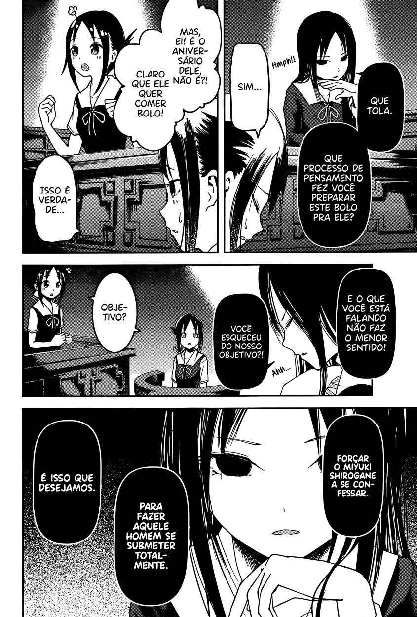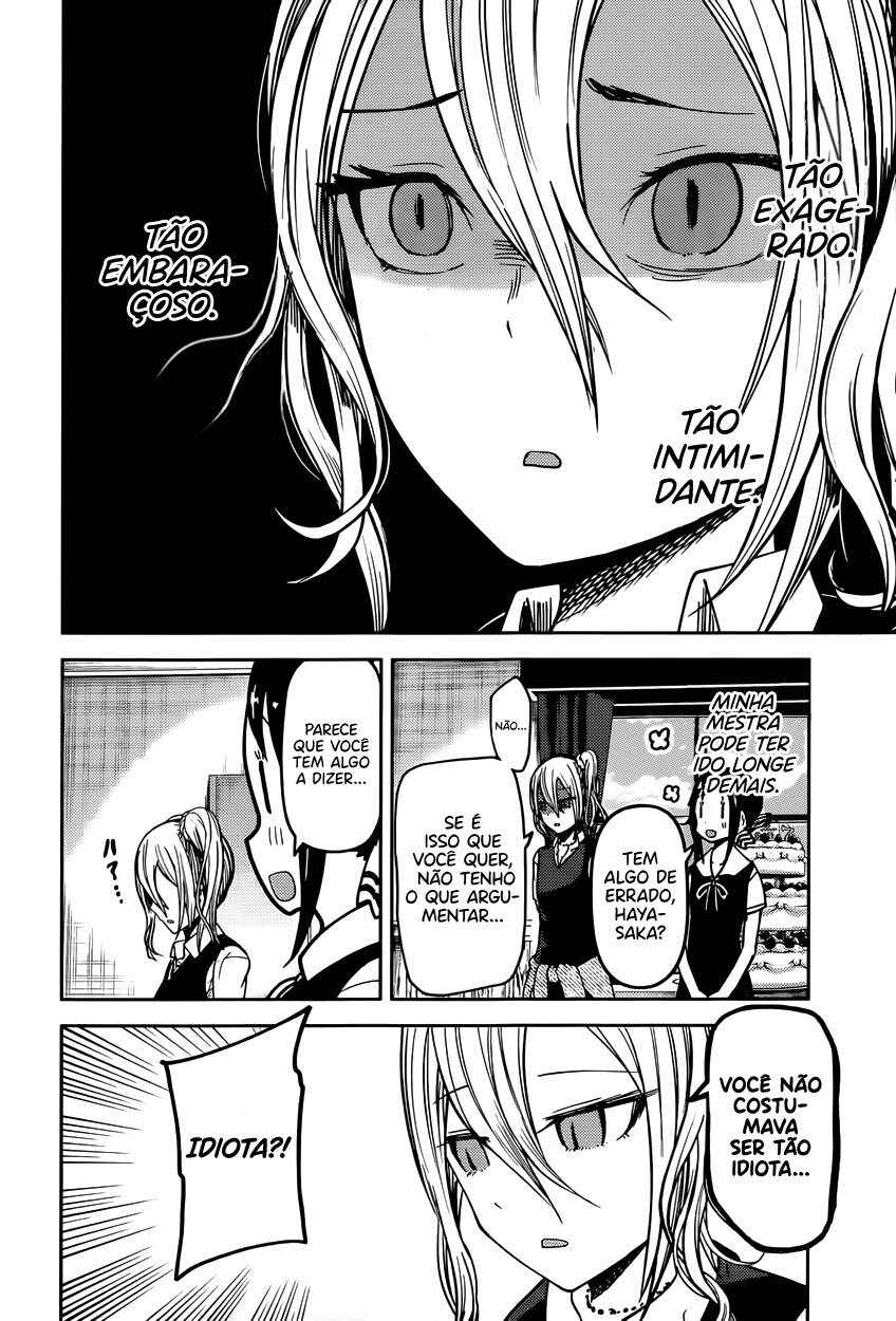 Capítulo 1 - Eu quero ser convidada para o cinemaCapítulo 2 - Eu quero jogar micoCapítulo 3 - Kaguya não sabe muitoCapítulo 4Capítulo 5 - Kaguya quer comerCapítulo 5.5 - ExtraCapítulo 6 - Shirogane Miyuki quer esconderCapítulo 7 - Quer ir em uma ViagemCapítulo 8 - Kaguya quer ser RespondidaCapítulo 9 - Kaguya quer CaminharCapítulo 10 - O Conselho Estudantil quer fazer uma BrincadeiraCapítulo 10.5Capítulo 11 - Kaguya quer TrocarCapítulo 12 - Kaguya quer ser IntrometidaCapítulo 13 - Kaguya quer ser indiretaCapítulo 14 - Shirogane miyuki não fez issoCapítulo 15 - Shirogami miyuki quer fugirCapítulo 16 - Kaguya quer fazer direitoCapítulo 17 - Kaguya quer adorarCapítulo 18 - O conselho estudantil quer conversarCapítulo 19 - Kaguya quer ser enviadaCapítulo 20 - Miyuki shirogane quer falarCapítulo 20.5 - ExtraCapítulo 21 - Kaguya quer segurarCapítulo 22 - Chika fujiwara quer ser comidaCapítulo 23 - Miyuki shirogane quer mostrarCapítulo 24 - Ishigami yu quer sobreviverCapítulo 25 - Kaguya quer ser notadaCapítulo 26 - Miyuki shirogane quer trabalharCapítulo 27 - Kaguya tenta resistirCapítulo 27.5 - ExtraCapítulo 28 - Fujiwara chika quer testarCapítulo 29 - Kaguya quer se juntarCapítulo 30 - Hayasaka ai quer defenderCapítulo 31 - Shirogane miyuki não pode perderCapítulo 32 - Kaguya quer ser odiadaCapítulo 33 - Kaguya quer oferecerCapítulo 34 - Fujiwara chika quer visitarCapítulo 35 - Em relação a shinomiya kaguya, parte 1Capítulo 36 - Miyuki shirogane quer cantarCapítulo 37 - Kaguya não vai cederCapítulo 38 - Kaguya quer perdoarCapítulo 39 - Kaguya quer ser chamadaCapítulo 40 - Shirogane miyuki quer viajarCapítulo 41 - Shirogane miyuki quer se encontrarCapítulo 42 - Hayasaka ai quer mergulharCapítulo 43 - Fujiwara chika quer comerCapítulo 44 - Eu não consigo ouvir os fogos,parte 1Capítulo 45 - Eu não consigo ouvir os fogos,parte 2Capítulo 46 - Kaguya não quer fugirCapítulo 47 - Kaguya quer escolherCapítulo 48 - O conselho estudantil não fezCapítulo 49 - Shirogane miyuki quer prepararCapítulo 50 - Nagisa kashiwagi não consegue assistirCapítulo 51 - Kaguya quer comemorarCapítulo 52 - Kaguya quer perguntarCapítulo 53 - Kaguya quer darCapítulo 54 - Chika fujiwara quer confirmarCapítulo 55 - Assim, yu ishigami fechou seus olhos, parte 1Capítulo 56 - Miyuki shirogane quer observarCapítulo 57 - Kaguya quer se casarCapítulo 58 - Ai hayasaka quer seduzirCapítulo 59 - O 67° conselho estudantilCapítulo 60Capítulo 61 - Kaguya quer uma confissãoCapítulo 62Capítulo 63 - Miyuki shirogane quer ser popularCapítulo 64 - Nagisa kashiwagi quer consolarCapítulo 65 - Miko lino quer corrigirCapítulo 66 - Kaguya quer eliminarCapítulo 67 - Miko lino não pode ser ridicularizadaCapítulo 68 - Eu quero fazer a miko lino sorrirCapítulo 69 - Kaguya não quer ser chamadaCapítulo 70 - Kaguya quer tirarCapítulo 71 - Kaguya quer produzirCapítulo 72 - Miko lino quer restringirCapítulo 73 - Shirogame miyuki quer lerCapítulo 74 - Kaguya♡AquárioCapítulo 75 - Kaguya quer coletarCapítulo 76 - Nagisa kashiwagi é irritanteCapítulo 77 - Chika fujiwara quer obter informaçãoCapítulo 78 - Kaguya não está assustadaCapítulo 79 - Kaguya quer ser examinadaCapítulo 80 - Assim, yu ishigami fechou seus olhos, parte 2Capítulo 81 - Kaguya quer tocarCapítulo 82 - Kaguya não vai recusarCapítulo 83 - Kai shirogane não consegue dizer issoCapítulo 84 - Miyuki shirogane quer dançarCapítulo 85 - Osaragui kobashi quer controlarCapítulo 86 - Shirogane pai quer perguntarCapítulo 87 - Festival de atletismo da shuuichiinCapítulo 88 - Assim, yu ishigami fechou seus olhos, parte 3Capítulo 89 - Miyuki shirogane e yu ishigamiCapítulo 90 - Kyoko ootomo não percebeCapítulo 91 - Chika Fujiwara Quer Fazer CrescerCapítulo 92 - Eu Quero Fazer a Kaguya CorarCapítulo 93 - Kaguya Quer Tirá-lo de LáCapítulo 94 - Kaguya Quer InterromperCapítulo 95 - Miko Iino Quer RelaxarCapítulo 96 - Kaguya Quer Alimentar EleCapítulo 97 - Nagisa Kashiwagi Quer Matá-loCapítulo 101 - O Conselho Estudantil Quer Ser Fotografado, Parte 2Capítulo 102 - Kaguya-sama Não PercebeCapítulo 103 - Miyuki Shirogane Quer MediarCapítulo 104 - O Desafio Impossível de Kaguya Shinomiya: “A Concha Koyasugai”, Parte 1Capítulo 105 - Yu Ishigami Quer ResponderCapítulo 106 - Chika Fujiwara Quer Uma Festa do PijamaCapítulo 107 - Chika Fujiwara Quer Manter o RitmoCapítulo 108 - Ai Hayasaka Quer Dizer AlgoCapítulo 109 - Maki Shijo Quer Pedir AjudaCapítulo 110 - Yu Ishigami Quer ConversarCapítulo 111 - O Conselho Estudantil Quer AvançarCapítulo 112 - Miyuki Shirogane Quer Receber Uma Confissão, Parte 1Capítulo 113 - Miyuki Shirogane Quer Receber Uma Confissão, Parte 2Capítulo 114 - Miyuki Shirogane Quer Receber Uma Confissão, Parte 3Capítulo 115 - Miko Iino Não Consegue Amar, Parte 1Capítulo 116 - Queremos Falar Sobre o Festival CulturalCapítulo 117 - Chika Fujiwara Quer LutarCapítulo 118 - Miyuki Shirogane Quer ExpandirCapítulo 119 - Kei Shirogane Quer se ExibirCapítulo 120 - Sobre Kaguya Shinomiya, Parte 2Capítulo 121 - Primeiro Ano, PrimaveraCapítulo 122 - Kaguya Quer se Confessar, Parte 1Capítulo 123 - Festival Cultural da KaguyaCapítulo 124 - Festival Cultural do Yu IshigamiCapítulo 125 - Kozue Makihara Quer BrincarCapítulo 126 - Chika Fujiwara Quer Acertar as ContasCapítulo 127 - Festival Cultural de Miyuki ShiroganeCapítulo 128 - Kaguya Quer Derrubá-losCapítulo 129 - Miyuki Shirogane Quer Receber Uma Confissão, Parte 4Capítulo 130 - Tsubame Koyasu Quer Rejeitá-loCapítulo 131 - Miyuki Shirogane Quer Receber Uma Confissão, Parte 5Capítulo 132 - Kaguya Quer Se Confessar, Parte 2Capítulo 133 - Kaguya Quer Se Confessar, Parte 3Capítulo 134 - Confissões Duplas, Parte 1Capítulo 135 - Confissões Duplas, Parte 2Capítulo 136 - Confissões Duplas, Parte 3Capítulo 137 - O Pós-festa da Shuchi’inCapítulo 138 - Kaguya Quer ExplicarCapítulo 139 -