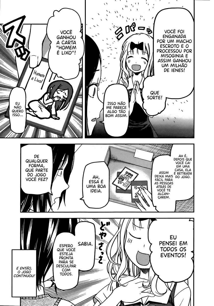 Capítulo 1 - Eu quero ser convidada para o cinemaCapítulo 2 - Eu quero jogar micoCapítulo 3 - Kaguya não sabe muitoCapítulo 4Capítulo 5 - Kaguya quer comerCapítulo 5.5 - ExtraCapítulo 6 - Shirogane Miyuki quer esconderCapítulo 7 - Quer ir em uma ViagemCapítulo 8 - Kaguya quer ser RespondidaCapítulo 9 - Kaguya quer CaminharCapítulo 10 - O Conselho Estudantil quer fazer uma BrincadeiraCapítulo 10.5Capítulo 11 - Kaguya quer TrocarCapítulo 12 - Kaguya quer ser IntrometidaCapítulo 13 - Kaguya quer ser indiretaCapítulo 14 - Shirogane miyuki não fez issoCapítulo 15 - Shirogami miyuki quer fugirCapítulo 16 - Kaguya quer fazer direitoCapítulo 17 - Kaguya quer adorarCapítulo 18 - O conselho estudantil quer conversarCapítulo 19 - Kaguya quer ser enviadaCapítulo 20 - Miyuki shirogane quer falarCapítulo 20.5 - ExtraCapítulo 21 - Kaguya quer segurarCapítulo 22 - Chika fujiwara quer ser comidaCapítulo 23 - Miyuki shirogane quer mostrarCapítulo 24 - Ishigami yu quer sobreviverCapítulo 25 - Kaguya quer ser notadaCapítulo 26 - Miyuki shirogane quer trabalharCapítulo 27 - Kaguya tenta resistirCapítulo 27.5 - ExtraCapítulo 28 - Fujiwara chika quer testarCapítulo 29 - Kaguya quer se juntarCapítulo 30 - Hayasaka ai quer defenderCapítulo 31 - Shirogane miyuki não pode perderCapítulo 32 - Kaguya quer ser odiadaCapítulo 33 - Kaguya quer oferecerCapítulo 34 - Fujiwara chika quer visitarCapítulo 35 - Em relação a shinomiya kaguya, parte 1Capítulo 36 - Miyuki shirogane quer cantarCapítulo 37 - Kaguya não vai cederCapítulo 38 - Kaguya quer perdoarCapítulo 39 - Kaguya quer ser chamadaCapítulo 40 - Shirogane miyuki quer viajarCapítulo 41 - Shirogane miyuki quer se encontrarCapítulo 42 - Hayasaka ai quer mergulharCapítulo 43 - Fujiwara chika quer comerCapítulo 44 - Eu não consigo ouvir os fogos,parte 1Capítulo 45 - Eu não consigo ouvir os fogos,parte 2Capítulo 46 - Kaguya não quer fugirCapítulo 47 - Kaguya quer escolherCapítulo 48 - O conselho estudantil não fezCapítulo 49 - Shirogane miyuki quer prepararCapítulo 50 - Nagisa kashiwagi não consegue assistirCapítulo 51 - Kaguya quer comemorarCapítulo 52 - Kaguya quer perguntarCapítulo 53 - Kaguya quer darCapítulo 54 - Chika fujiwara quer confirmarCapítulo 55 - Assim, yu ishigami fechou seus olhos, parte 1Capítulo 56 - Miyuki shirogane quer observarCapítulo 57 - Kaguya quer se casarCapítulo 58 - Ai hayasaka quer seduzirCapítulo 59 - O 67° conselho estudantilCapítulo 60Capítulo 61 - Kaguya quer uma confissãoCapítulo 62Capítulo 63 - Miyuki shirogane quer ser popularCapítulo 64 - Nagisa kashiwagi quer consolarCapítulo 65 - Miko lino quer corrigirCapítulo 66 - Kaguya quer eliminarCapítulo 67 - Miko lino não pode ser ridicularizadaCapítulo 68 - Eu quero fazer a miko lino sorrirCapítulo 69 - Kaguya não quer ser chamadaCapítulo 70 - Kaguya quer tirarCapítulo 71 - Kaguya quer produzirCapítulo 72 - Miko lino quer restringirCapítulo 73 - Shirogame miyuki quer lerCapítulo 74 - Kaguya♡AquárioCapítulo 75 - Kaguya quer coletarCapítulo 76 - Nagisa kashiwagi é irritanteCapítulo 77 - Chika fujiwara quer obter informaçãoCapítulo 78 - Kaguya não está assustadaCapítulo 79 - Kaguya quer ser examinadaCapítulo 80 - Assim, yu ishigami fechou seus olhos, parte 2Capítulo 81 - Kaguya quer tocarCapítulo 82 - Kaguya não vai recusarCapítulo 83 - Kai shirogane não consegue dizer issoCapítulo 84 - Miyuki shirogane quer dançarCapítulo 85 - Osaragui kobashi quer controlarCapítulo 86 - Shirogane pai quer perguntarCapítulo 87 - Festival de atletismo da shuuichiinCapítulo 88 - Assim, yu ishigami fechou seus olhos, parte 3Capítulo 89 - Miyuki shirogane e yu ishigamiCapítulo 90 - Kyoko ootomo não percebeCapítulo 91 - Chika Fujiwara Quer Fazer CrescerCapítulo 92 - Eu Quero Fazer a Kaguya CorarCapítulo 93 - Kaguya Quer Tirá-lo de LáCapítulo 94 - Kaguya Quer InterromperCapítulo 95 - Miko Iino Quer RelaxarCapítulo 96 - Kaguya Quer Alimentar EleCapítulo 97 - Nagisa Kashiwagi Quer Matá-loCapítulo 101 - O Conselho Estudantil Quer Ser Fotografado, Parte 2Capítulo 102 - Kaguya-sama Não PercebeCapítulo 103 - Miyuki Shirogane Quer MediarCapítulo 104 - O Desafio Impossível de Kaguya Shinomiya: “A Concha Koyasugai”, Parte 1Capítulo 105 - Yu Ishigami Quer ResponderCapítulo 106 - Chika Fujiwara Quer Uma Festa do PijamaCapítulo 107 - Chika Fujiwara Quer Manter o RitmoCapítulo 108 - Ai Hayasaka Quer Dizer AlgoCapítulo 109 - Maki Shijo Quer Pedir AjudaCapítulo 110 - Yu Ishigami Quer ConversarCapítulo 111 - O Conselho Estudantil Quer AvançarCapítulo 112 - Miyuki Shirogane Quer Receber Uma Confissão, Parte 1Capítulo 113 - Miyuki Shirogane Quer Receber Uma Confissão, Parte 2Capítulo 114 - Miyuki Shirogane Quer Receber Uma Confissão, Parte 3Capítulo 115 - Miko Iino Não Consegue Amar, Parte 1Capítulo 116 - Queremos Falar Sobre o Festival CulturalCapítulo 117 - Chika Fujiwara Quer LutarCapítulo 118 - Miyuki Shirogane Quer ExpandirCapítulo 119 - Kei Shirogane Quer se ExibirCapítulo 120 - Sobre Kaguya Shinomiya, Parte 2Capítulo 121 - Primeiro Ano, PrimaveraCapítulo 122 - Kaguya Quer se Confessar, Parte 1Capítulo 123 - Festival Cultural da KaguyaCapítulo 124 - Festival Cultural do Yu IshigamiCapítulo 125 - Kozue Makihara Quer BrincarCapítulo 126 - Chika Fujiwara Quer Acertar as ContasCapítulo 127 - Festival Cultural de Miyuki ShiroganeCapítulo 128 - Kaguya Quer Derrubá-losCapítulo 129 - Miyuki Shirogane Quer Receber Uma Confissão, Parte 4Capítulo 130 - Tsubame Koyasu Quer Rejeitá-loCapítulo 131 - Miyuki Shirogane Quer Receber Uma Confissão, Parte 5Capítulo 132 - Kaguya Quer Se Confessar, Parte 2Capítulo 133 - Kaguya Quer Se Confessar, Parte 3Capítulo 134 - Confissões Duplas, Parte 1Capítulo 135 - Confissões Duplas, Parte 2Capítulo 136 - Confissões Duplas, Parte 3Capítulo 137 - O Pós-festa da Shuchi’inCapítulo 138 - Kaguya Quer ExplicarCapítulo 139 -