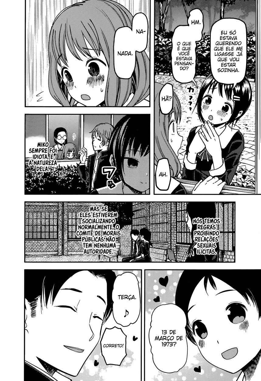 Capítulo 1 - Eu quero ser convidada para o cinemaCapítulo 2 - Eu quero jogar micoCapítulo 3 - Kaguya não sabe muitoCapítulo 4Capítulo 5 - Kaguya quer comerCapítulo 5.5 - ExtraCapítulo 6 - Shirogane Miyuki quer esconderCapítulo 7 - Quer ir em uma ViagemCapítulo 8 - Kaguya quer ser RespondidaCapítulo 9 - Kaguya quer CaminharCapítulo 10 - O Conselho Estudantil quer fazer uma BrincadeiraCapítulo 10.5Capítulo 11 - Kaguya quer TrocarCapítulo 12 - Kaguya quer ser IntrometidaCapítulo 13 - Kaguya quer ser indiretaCapítulo 14 - Shirogane miyuki não fez issoCapítulo 15 - Shirogami miyuki quer fugirCapítulo 16 - Kaguya quer fazer direitoCapítulo 17 - Kaguya quer adorarCapítulo 18 - O conselho estudantil quer conversarCapítulo 19 - Kaguya quer ser enviadaCapítulo 20 - Miyuki shirogane quer falarCapítulo 20.5 - ExtraCapítulo 21 - Kaguya quer segurarCapítulo 22 - Chika fujiwara quer ser comidaCapítulo 23 - Miyuki shirogane quer mostrarCapítulo 24 - Ishigami yu quer sobreviverCapítulo 25 - Kaguya quer ser notadaCapítulo 26 - Miyuki shirogane quer trabalharCapítulo 27 - Kaguya tenta resistirCapítulo 27.5 - ExtraCapítulo 28 - Fujiwara chika quer testarCapítulo 29 - Kaguya quer se juntarCapítulo 30 - Hayasaka ai quer defenderCapítulo 31 - Shirogane miyuki não pode perderCapítulo 32 - Kaguya quer ser odiadaCapítulo 33 - Kaguya quer oferecerCapítulo 34 - Fujiwara chika quer visitarCapítulo 35 - Em relação a shinomiya kaguya, parte 1Capítulo 36 - Miyuki shirogane quer cantarCapítulo 37 - Kaguya não vai cederCapítulo 38 - Kaguya quer perdoarCapítulo 39 - Kaguya quer ser chamadaCapítulo 40 - Shirogane miyuki quer viajarCapítulo 41 - Shirogane miyuki quer se encontrarCapítulo 42 - Hayasaka ai quer mergulharCapítulo 43 - Fujiwara chika quer comerCapítulo 44 - Eu não consigo ouvir os fogos,parte 1Capítulo 45 - Eu não consigo ouvir os fogos,parte 2Capítulo 46 - Kaguya não quer fugirCapítulo 47 - Kaguya quer escolherCapítulo 48 - O conselho estudantil não fezCapítulo 49 - Shirogane miyuki quer prepararCapítulo 50 - Nagisa kashiwagi não consegue assistirCapítulo 51 - Kaguya quer comemorarCapítulo 52 - Kaguya quer perguntarCapítulo 53 - Kaguya quer darCapítulo 54 - Chika fujiwara quer confirmarCapítulo 55 - Assim, yu ishigami fechou seus olhos, parte 1Capítulo 56 - Miyuki shirogane quer observarCapítulo 57 - Kaguya quer se casarCapítulo 58 - Ai hayasaka quer seduzirCapítulo 59 - O 67° conselho estudantilCapítulo 60Capítulo 61 - Kaguya quer uma confissãoCapítulo 62Capítulo 63 - Miyuki shirogane quer ser popularCapítulo 64 - Nagisa kashiwagi quer consolarCapítulo 65 - Miko lino quer corrigirCapítulo 66 - Kaguya quer eliminarCapítulo 67 - Miko lino não pode ser ridicularizadaCapítulo 68 - Eu quero fazer a miko lino sorrirCapítulo 69 - Kaguya não quer ser chamadaCapítulo 70 - Kaguya quer tirarCapítulo 71 - Kaguya quer produzirCapítulo 72 - Miko lino quer restringirCapítulo 73 - Shirogame miyuki quer lerCapítulo 74 - Kaguya♡AquárioCapítulo 75 - Kaguya quer coletarCapítulo 76 - Nagisa kashiwagi é irritanteCapítulo 77 - Chika fujiwara quer obter informaçãoCapítulo 78 - Kaguya não está assustadaCapítulo 79 - Kaguya quer ser examinadaCapítulo 80 - Assim, yu ishigami fechou seus olhos, parte 2Capítulo 81 - Kaguya quer tocarCapítulo 82 - Kaguya não vai recusarCapítulo 83 - Kai shirogane não consegue dizer issoCapítulo 84 - Miyuki shirogane quer dançarCapítulo 85 - Osaragui kobashi quer controlarCapítulo 86 - Shirogane pai quer perguntarCapítulo 87 - Festival de atletismo da shuuichiinCapítulo 88 - Assim, yu ishigami fechou seus olhos, parte 3Capítulo 89 - Miyuki shirogane e yu ishigamiCapítulo 90 - Kyoko ootomo não percebeCapítulo 91 - Chika Fujiwara Quer Fazer CrescerCapítulo 92 - Eu Quero Fazer a Kaguya CorarCapítulo 93 - Kaguya Quer Tirá-lo de LáCapítulo 94 - Kaguya Quer InterromperCapítulo 95 - Miko Iino Quer RelaxarCapítulo 96 - Kaguya Quer Alimentar EleCapítulo 97 - Nagisa Kashiwagi Quer Matá-loCapítulo 101 - O Conselho Estudantil Quer Ser Fotografado, Parte 2Capítulo 102 - Kaguya-sama Não PercebeCapítulo 103 - Miyuki Shirogane Quer MediarCapítulo 104 - O Desafio Impossível de Kaguya Shinomiya: “A Concha Koyasugai”, Parte 1Capítulo 105 - Yu Ishigami Quer ResponderCapítulo 106 - Chika Fujiwara Quer Uma Festa do PijamaCapítulo 107 - Chika Fujiwara Quer Manter o RitmoCapítulo 108 - Ai Hayasaka Quer Dizer AlgoCapítulo 109 - Maki Shijo Quer Pedir AjudaCapítulo 110 - Yu Ishigami Quer ConversarCapítulo 111 - O Conselho Estudantil Quer AvançarCapítulo 112 - Miyuki Shirogane Quer Receber Uma Confissão, Parte 1Capítulo 113 - Miyuki Shirogane Quer Receber Uma Confissão, Parte 2Capítulo 114 - Miyuki Shirogane Quer Receber Uma Confissão, Parte 3Capítulo 115 - Miko Iino Não Consegue Amar, Parte 1Capítulo 116 - Queremos Falar Sobre o Festival CulturalCapítulo 117 - Chika Fujiwara Quer LutarCapítulo 118 - Miyuki Shirogane Quer ExpandirCapítulo 119 - Kei Shirogane Quer se ExibirCapítulo 120 - Sobre Kaguya Shinomiya, Parte 2Capítulo 121 - Primeiro Ano, PrimaveraCapítulo 122 - Kaguya Quer se Confessar, Parte 1Capítulo 123 - Festival Cultural da KaguyaCapítulo 124 - Festival Cultural do Yu IshigamiCapítulo 125 - Kozue Makihara Quer BrincarCapítulo 126 - Chika Fujiwara Quer Acertar as ContasCapítulo 127 - Festival Cultural de Miyuki ShiroganeCapítulo 128 - Kaguya Quer Derrubá-losCapítulo 129 - Miyuki Shirogane Quer Receber Uma Confissão, Parte 4Capítulo 130 - Tsubame Koyasu Quer Rejeitá-loCapítulo 131 - Miyuki Shirogane Quer Receber Uma Confissão, Parte 5Capítulo 132 - Kaguya Quer Se Confessar, Parte 2Capítulo 133 - Kaguya Quer Se Confessar, Parte 3Capítulo 134 - Confissões Duplas, Parte 1Capítulo 135 - Confissões Duplas, Parte 2Capítulo 136 - Confissões Duplas, Parte 3Capítulo 137 - O Pós-festa da Shuchi’inCapítulo 138 - Kaguya Quer ExplicarCapítulo 139 -