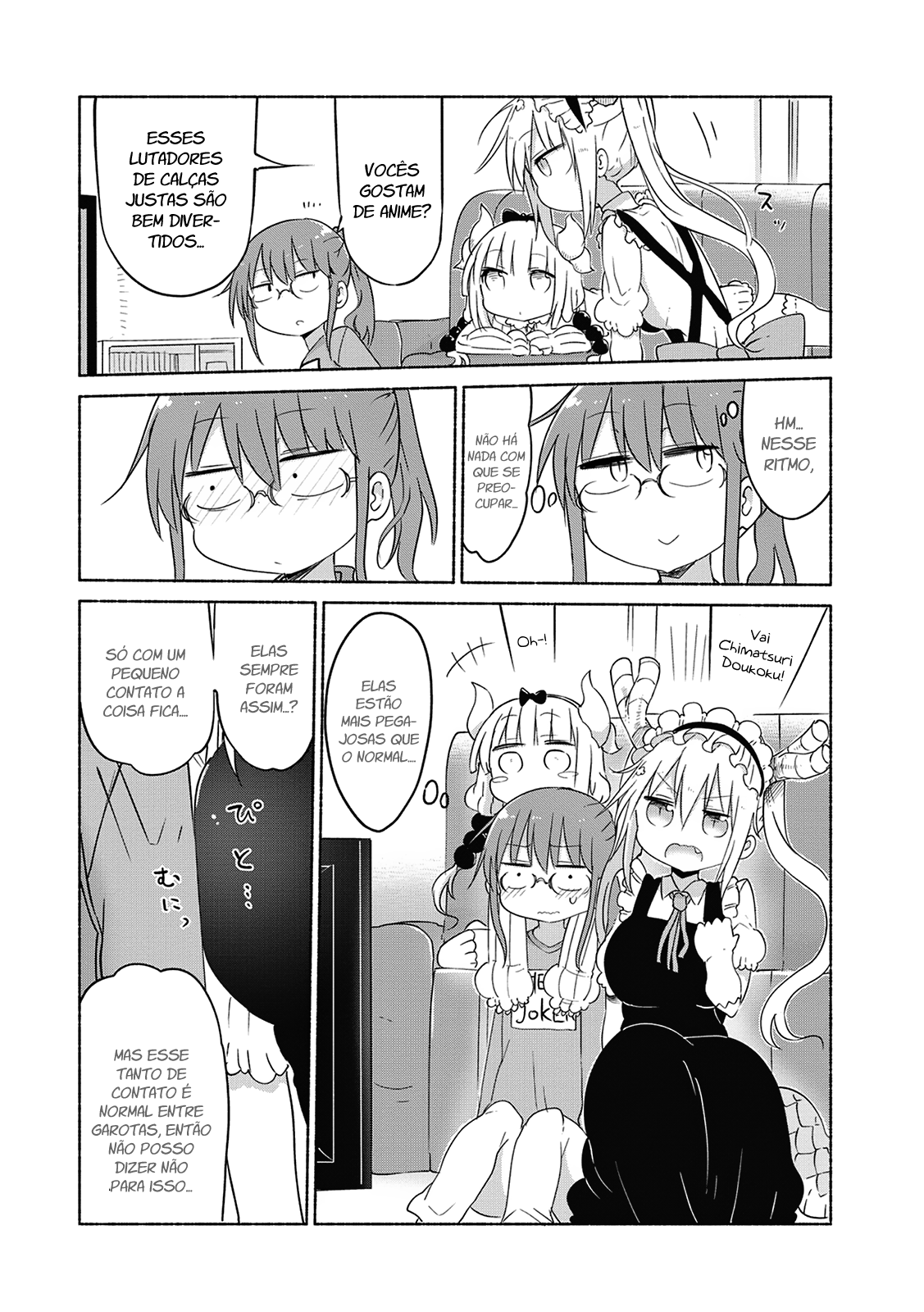 Capítulo 1 - Tooru e Kobayashi-sanCapítulo 2 - O Encontro com a TooruCapítulo 3 - Tooru e LavanderiaCapítulo 4 - Tohru e CiúmesCapítulo 5 - Tohru e as ComprasCapítulo 6 - Tohru e KannaCapítulo 7 - Tohru e o Senso ComumCapítulo 8 - Tohru e o NatalCapítulo 9 - Tohru e os Jogos PerigososCapítulo 10 - Tohru e o Dia dos NamoradosCapítulo 11 - Tohru e a LimpezaCapítulo 12 - Tohru e o Omelete de ArrozCapítulo 13 - Kanna e a EscolaCapítulo 14 - Tohru e o EscritórioCapítulo 15 - Tohru e a Procura de uma CasaCapítulo 16 - Tohru e a PraiaCapítulo 17 - Tohru e a ComiketCapítulo 18 - Tohru e os SuperpoderesCapítulo 19 - Tohru e Essa CidadeCapítulo 20 - Tohru e o PaiCapítulo 21 - Tohru e a QueimadaCapítulo 22 - Tohru e Problemas com VizinhosCapítulo 23 - Tohru e o Dever do LancheCapítulo 24 - Tohru e ElmaCapítulo 25 - Elma e o TrabalhoCapítulo 26 - Tohru e a RivalidadeCapítulo 27 - Tohru e a Familia de LucoaCapítulo 28 - Tohru e o Passado ICapítulo 29 - Kanna e SaikawaCapítulo 30 - Tohru e o Trabalho de DetetiveCapítulo 31 - Tohru e IluluCapítulo 32 - Tohru e o Encontro IICapítulo 33 - Tohru e as Fontes TermaisCapítulo 34 - Kanna e o Dia dos PaisCapítulo 35 - Elma e a CompanhiaCapítulo 36 - Ilulu e a KobayashiCapítulo 37 - Tohru e a "Coisa"Capítulo 38 - Kobayashi e a IluluCapítulo 39 - Tohru e a BabáCapítulo 40 - Tohru e o HanamiCapítulo 41 - Tohru e o SonoCapítulo 42 - Tohru e a EnfermagemCapítulo 43 - Tohru e a PatrulhaCapítulo 44 - Tohru e Elma IICapítulo 45 - Ilulu e SaikawaCapítulo 46 - Lucoa e ShoutaCapítulo 47 - Tohru e o Maid CaféCapítulo 48 - Tohru e o FestivalCapítulo 49 - Tohru e o RelaxamentoCapítulo 50 - Tohru e o Parque de DiversõesCapítulo 51 - Ilulu e o EstágioCapítulo 52 - Ilulu e o Estágio IICapítulo 53 - Kobayashi e o Uniforme de EmpregadaCapítulo 54 - Takiya e FafnirCapítulo 55 - Elma e a Nova Visão de LiberdadeCapítulo 56 - Tohru e a MagiaCapítulo 57 - Tohru e a LendaCapítulo 58 - Tohru e a Lenda IICapítulo 59 - Elma e o PiqueniqueCapítulo 60 - Tohru e InteressesCapítulo 61 - Fafnir e LucoaCapítulo 62 - Kanna em Nova YorkCapítulo 63 - Iruru e bonecaCapítulo 64 - Elma e TooruCapítulo 65 - Shouta e Escola de Magia (Primeira Metade)Capítulo 66 - Shouta e Escola de Magia (Segunda Metade)Capítulo 67 - Kanna e GruposCapítulo 68 - Kobayashi e a AbstinênciaCapítulo 69 - Kobayashi e o Pai da KannaCapítulo 70 - Kanna e o ParqueCapítulo 71 - Kobayashi e as CartasCapítulo 72 - Ilulu e a InvestigaçãoCapítulo 73 - Kanna Deixando a CartaCapítulo 74 - Kanna e Saikawa IIICapítulo 75 - Kanna e as PegadinhasCapítulo 76 - Kobayashi e a Técnica SecretaCapítulo 77 - Kanna e Kimun KamuyCapítulo 78 - O Pai de Kanna Kamuy e a Filha de Kimun KamuyCapítulo 79 - Tohru e a ModaCapítulo 80 - Tohru e o MenuCapítulo 81 - Ilulu e a Época de AcasalamentoCapítulo 82 - Fafnir e AkihabaraCapítulo 83 - Tohru e a Batalha DecisivaCapítulo 84 - Kobayashi e a Visita DomiciliarCapítulo 85 - Tohru e a Troca de PeleCapítulo 86 - Elma e o CarroCapítulo 87 - Shouta e Lucoa, a EspectadoraCapítulo 88 - Kobayashi e a VozCapítulo 89 - Ilulu e a Paixão?Capítulo 90 - Azad e GeorgieCapítulo 91 - Um Dia Sozinho com a TohruCapítulo 92 - Elma e TerneCapítulo 93 - Azad e Georgie IICapítulo 94 - Tohru e a Escama EncravadaCapítulo 95 - Shouta e a Dor de CrescerCapítulo 96 - Tohru e Elma 3Capítulo 97 - Kobayashi e o CasamentoCapítulo 98 - Tohru e a Merenda EscolarCapítulo 99 - Kobayashi e a Espada SagradaCapítulo 100 - Tohru e a coisa IICapítulo 101 - Fafnir e a Busca da Nova CasaCapítulo 102 - Saikawa e Kimun KamuyCapítulo 103 - Elma e o Papo de AmorCapítulo 104 - Tohru, Taketo e ShoutaCapítulo 105 - Elma e Tohru IICapítulo 106 - Elma e o CasamentoCapítulo 107 - Elma e o Casamento IICapítulo 108 - Elma e o Casamento IIICapítulo 109 - Elma e o EcoCapítulo 110 - Tohru e a BigamiaCapítulo 111 - Tohru e JidaCapítulo 112 - Telne, Elma e TohruCapítulo 113 - Elma e a SaciedadeCapítulo 114 - Kanna, Ilulu e TelneCapítulo 115 - Tohru e o Robô aspiradorCapítulo 116 - Tohru e a Espada SagradaCapítulo 117 - O dia de Lucoa e ElmaCapítulo 118 - Saikawa e AzadCapítulo 119 - Tohru e a Inveja IICapítulo 120 - Ilulu e FafnirCapítulo 121 - Tohru e as FotosCapítulo 122 - Jida e as DesculpasCapítulo 123 - Tohru e a Mãe ICapítulo 124 - Tohru e Tatsuzawa-sanCapítulo 125 - Lucoa e SkinshipCapítulo 126 - Tohru e as ArmasCapítulo 127 - Kobayashi e o Dragão DesconhecidoCapítulo 128 - Kobayashi e as AvaliaçõesCapítulo 129 - Kobayashi e FafnirCapítulo 130 - Iruru e Dormir Fora (Primeira Metade)Capítulo 131 - Iruru e Dormir Fora (Segunda Metade)Capítulo 132 - Kobayashi e o Usual...Capítulo 133 - Elma e o Interesse AmorosoCapítulo 134 - Kanna e Eletricidade EstáticaCapítulo 135 - Kobayashi e LokiCapítulo 136 - Tohru e seu Livro de JogoCapítulo 137 - Lucoa e a IrmãCapítulo 138 - Elma e HabilidadesCapítulo 139Capítulo 140Capítulo 141Capítulo 141.5Capítulo 141.6Capítulo 141.7Capítulo 142Capítulo 143Capítulo 144 - Tohru e FafnirCapítulo 145 - Kobayashi e RindoCapítulo 146 - Kobayashi e ShinCapítulo 147 - Kobayashi e Shin II