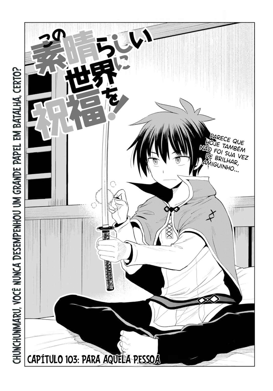 Capítulo 1Capítulo 1Capítulo 2Capítulo 3Capítulo 4Capítulo 5Capítulo 6Capítulo 7Capítulo 8Capítulo 9Capítulo 10Capítulo 11Capítulo 12Capítulo 13Capítulo 14Capítulo 15Capítulo 16Capítulo 17Capítulo 18Capítulo 19Capítulo 20Capítulo 21Capítulo 22Capítulo 22.5Capítulo 23Capítulo 24Capítulo 25Capítulo 26Capítulo 27Capítulo 28Capítulo 29Capítulo 30Capítulo 31Capítulo 32Capítulo 33Capítulo 34Capítulo 35Capítulo 36Capítulo 37Capítulo 37Capítulo 38Capítulo 39Capítulo 40Capítulo 41Capítulo 42Capítulo 43 - Pode Haver Uma Resolução Para Essa Carta PóstumaCapítulo 44 - Que Haja um Golpe Sem MIsericórdia Nessa Anrakushi Shoujo!Capítulo 45 - Poderia Kazuma, O Virgem, Ser Salvo Deste Perigo Iminente À Sua CastidadeCapítulo 46 - Podemos Conseguir Um Pouco De Descanso Nesse Vilarejo DeplorávelCapítulo 47 - Podemos Conseguir Um Pouco De Descanso Nesse Vilarejo Deplorável - Parte 2Capítulo 48 - Que Haja Uma Boa Razão Para Esta Noite Sem SonoCapítulo 49Capítulo 50Capítulo 51 - Talvez tenha sido uma explosão para essa relíquia odiosa!Capítulo 52 - Um golpe final para quimera cobra gigante!Capítulo 53 - O que eu quero, é o mago mais forteCapítulo 54 - Vamos dar às bençãos a esse futuro brilhante!Capítulo 55 - Reeducação para essa garota espertaCapítulo 56 - Um companheiro para esta princesa inocente!Capítulo 57 - Retribuição para este bom ladrão! 1Capítulo 58 - Retribuição para este bom ladrão! 2Capítulo 59 - Tome cuidado com este item mágico questionável!Capítulo 60 - Há um sonho que este item mágico pode realizar (1)Capítulo 61 - Há um sonho que este item mágico pode realizar (2)Capítulo 62Capítulo 63Capítulo 64Capítulo 65Capítulo 66Capítulo 67Capítulo 68Capítulo 69Capítulo 70Capítulo 71Capítulo 72Capítulo 73Capítulo 74Capítulo 75Capítulo 76Capítulo 77Capítulo 78Capítulo 79Capítulo 80Capítulo 81Capítulo 82Capítulo 83Capítulo 84Capítulo 85 - Sucesso para este dia de ação de graçasCapítulo 86 - Flores Brilhantes Para Este Céu NoturnoCapítulo 87 - Flores brilhantes para este céu noturno! (2)Capítulo 88 - Uma lenda nesta cidade incipiente!Capítulo 89 - A visita de agradecimento da DarknessCapítulo 90Capítulo 91 - Pós FestivalCapítulo 92 - Bençãos para estes dias de paz!Capítulo 93 - Mudanças nessas aventuras imutáveis (1)Capítulo 94 - Que esses aventureiros incansáveis cresçam!Capítulo 95 - Curtindo com esta bela ruiva à noite! ①Capítulo 96 - Curtindo com esta bela ruiva a noite! ②Capítulo 97 - Ira divina sobre esta deusa! ①Capítulo 98 - Ira divina sobre esta deusa! ②Capítulo 99 - Vamos explodir esta Deusa maligna! ①Capítulo 100 - Vamos explodir esta deusa maligna! ②Capítulo 101 - Dando determinação para essa garota explosiva para lutar!Capítulo 102 - Chamas explosivas para esta deusa maligna!Capítulo 103 - Para aquela pessoaCapítulo 104 - Fazendo uma objeção sobre esse noivado repentino!Capítulo 105 - Conspirando para acabar com este casamente!Capítulo 106 - Conspirando para acabar com este casamento! ②Capítulo 107 - Deixando playboys cuidarem destas garotas problemáticas!Capítulo 108 - Dando um castigo para este noivo indigno! 1Capítulo 109 - Dando um castigo para este noivo indigno! 2Capítulo 110 - Salve a princesa guerreira!Capítulo 110 - Bençãoes para esta princesa guerreira!Capítulo 111 - Castigo para este príncipe insolente!Capítulo 112 - Louvada seja esta princesa guerreira!Capítulo 113 - Louvada seja esta princesa guerreira! ②Capítulo 114 - Colocando um fim Nessa Conspiração inútilCapítulo 115 - Ponha um fim à está conspiração deplorável ①Capítulo 116 - Ponha um fim à está conspiração deplorável ②Capítulo 117 - O Despertar Deste Neet Lolicon! ①Capítulo 118 - O Despertar deste Neet Lolicon! ②Capítulo 119 - Uma Punição Severa para esse Fugitivo Teimoso!Capítulo 120Capítulo 121Capítulo 122Capítulo 123Capítulo 124