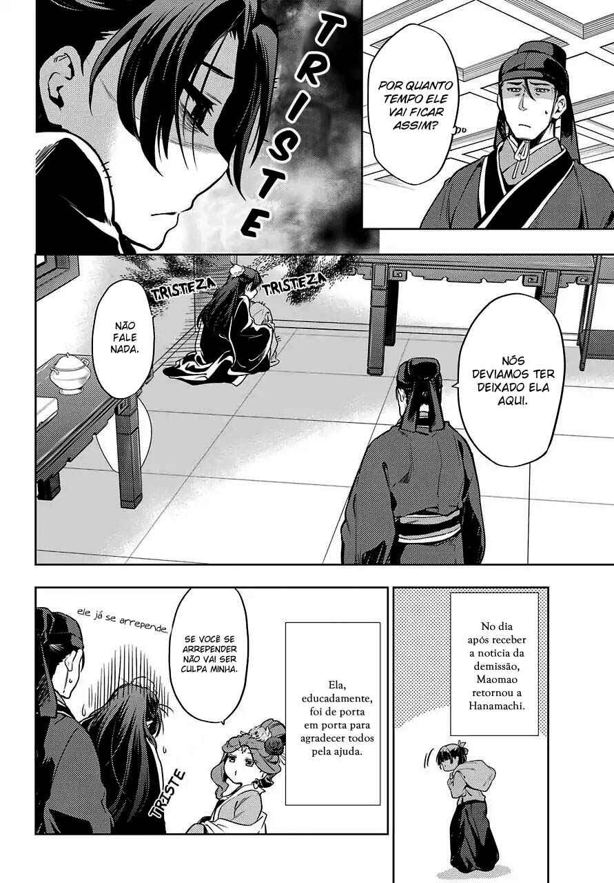 Capítulo 1 - A Maldição do HarémCapítulo 2 - Cientista LoucaCapítulo 3 - A Ninfa da Corte ImperialCapítulo 4 - O Fantasma do LuarCapítulo 5 - Sendo a EnfermeiraCapítulo 6 - Festa do Jardim (Parte 1)Capítulo 7 - Festa do Jardim (Parte 2)Capítulo 8 - Festa do Jardim (Parte 3)Capítulo 9 - A perspicácia de MaomaoCapítulo 10 - O significado da presilhaCapítulo 11 - De volta ao larCapítulo 12 - Canudo de PalhaCapítulo 13 - DesentendimentoCapítulo 14 - SaquêCapítulo 15 - Um pedido para MaomaoCapítulo 16 - Mel parte 1Capítulo 17 - Mel (parte 2)Capítulo 18 - A companheira AaduoCapítulo 19 - EncruzilhadaCapítulo 20 - O Eunuco e a CortesãCapítulo 21 - Cercada por irmãs...Capítulo 22 - Os Deveres do Pátio ExteriorCapítulo 23 - Lições do Pátio InteriorCapítulo 24 - Um CachimboCapítulo 25 - NamasuCapítulo 26 - O PrincipalCapítulo 27 - CosméticosCapítulo 28.1 - Um Passeio pela Cidade - ICapítulo 28.2 - Um Passeio pela Cidade - IICapítulo 29.1 - Sífilis - ICapítulo 29.2 - Sífilis - IICapítulo 30 - Sui ReiCapítulo 31 - Coincidência ou Inevitável?Capítulo 32 - O Mestre de Rituais MédiosCapítulo 33 - A Trombeta do DiaboCapítulo 34 - Gao ShunCapítulo 35.1 - De Volta ao Palácio Interior - ICapítulo 35.2 - De Volta ao Palácio Interior - IICapítulo 36.1 - Rosas e Esmaltes - ICapítulo 36.2 - Rosas e Esmaltes - IICapítulo 36.3 - Rosas e Esmaltes - IIICapítulo 37 - Bálsamo e Oxalis - ICapítulo 38 - Bálsamo e Oxalis - IICapítulo 39 - Bálsamo e Oxalis - IIICapítulo 40 - DespacheCapítulo 41 - O LivroCapítulo 42.1 - Gato (parte 1)Capítulo 42.2 - Gato (parte 2)Capítulo 43.1 - Caravana (parte 1)Capítulo 43.2 - Caravana (parte 2)Capítulo 44.1 - Cordyceps (parte 1)Capítulo 44.2 - Cordyceps humano (parte 2)Capítulo 45.1 - Cordyceps (epílogo)Capítulo 45.2 - Cordyceps (epílogo, parte 2)Capítulo 46 - EspelhoCapítulo 47 - Fada da lua (parte 1)Capítulo 48.1 - Fada da lua (parte 2)Capítulo 48.2 - Fada da lua (parte 3)Capítulo 49 - A clínicaCapítulo 50 - Na terceira vez dá certo (parte 1)Capítulo 51 - Na terceira vez dá certo (parte 2)Capítulo 52.1 - Na terceira vez dá certo (parte 3)Capítulo 52.2 - Na terceira vez dá certo (parte 4)Capítulo 53 - O Templo da Escolha (Parte 1)Capítulo 54 - O templo da escolha (parte 2)Capítulo 55.1 - Imperatriz Viúva (Parte 1)Capítulo 55.2 - Imperatriz Viúva (Parte 2)Capítulo 56Capítulo 57Capítulo 58Capítulo 59.1 - História de Terror (Parte 1)Capítulo 60.1 - Retiro de Verão (Parte 1)Capítulo 60.2 - Retiro de Verão (Parte 2)Capítulo 61 - A Caçada (Parte 1)Capítulo 62 - A Caçada (Parte 2)Capítulo 63.1 - A Caçada (Parte 3)Capítulo 63.2 - A Caçada (Parte 4)Capítulo 64 - O homem mascaradoCapítulo 65 - O BanhoCapítulo 66 - SekiuCapítulo 67 - O Fantasma DançarinoCapítulo 68 - O Famoso Eunuco e SorveteCapítulo 68 - O Eunuco dos rumores e o SorveteCapítulo 69 - Feto em Posição PodálicaCapítulo 69 - Parto PélvicoCapítulo 70 - Malícia Oculta (parte 1)Capítulo 70 - Malícia Repulsiva Parte 1Capítulo 71 - Malícia Repulsiva Parte 2Capítulo 71 - Malícia Oculta (Parte 2)Capítulo 72 - A Raposa e o Texugo se enfrentam Capítulo 73 - Rastreando os PassosCapítulo 73 - PegadasCapítulo 74.1 - A Terra da Raposa (Parte I)Capítulo 74.1 - A vila da Raposa (1)Capítulo 74.2 - A Terra da Raposa (parte 2)Capítulo 74.2 - A vila da Raposa (2)Capítulo 75 - Physalis (Parte 1)Capítulo 75.1 - Hozuki ①Capítulo 75.2 - Physalis (Parte 2)Capítulo 76.1 - Festival (Parte 1)Capítulo 76.1 - Festival ①Capítulo 76.2 - Festival ②Capítulo 76.2 - Festival (parte 2)Capítulo 77 - Local da TransaçãoCapítulo 77.1 - Área de trocaCapítulo 77.2 - Local de transação ②Capítulo 77.2 - Local da Transação (Parte 2)Capítulo 78 - A Fortaleza (Parte 1)Capítulo 78.1 - Fortaleza ①Capítulo 78.2 - Fortaleza (2)Capítulo 78.2 - A Fortaleza (Parte 2)Capítulo 79.1 - Taibon (parte 1)Capítulo 79.1 - O Poço ①Capítulo 79.2 - Taibon (parte 2)Capítulo 79.2 - O poço (2)